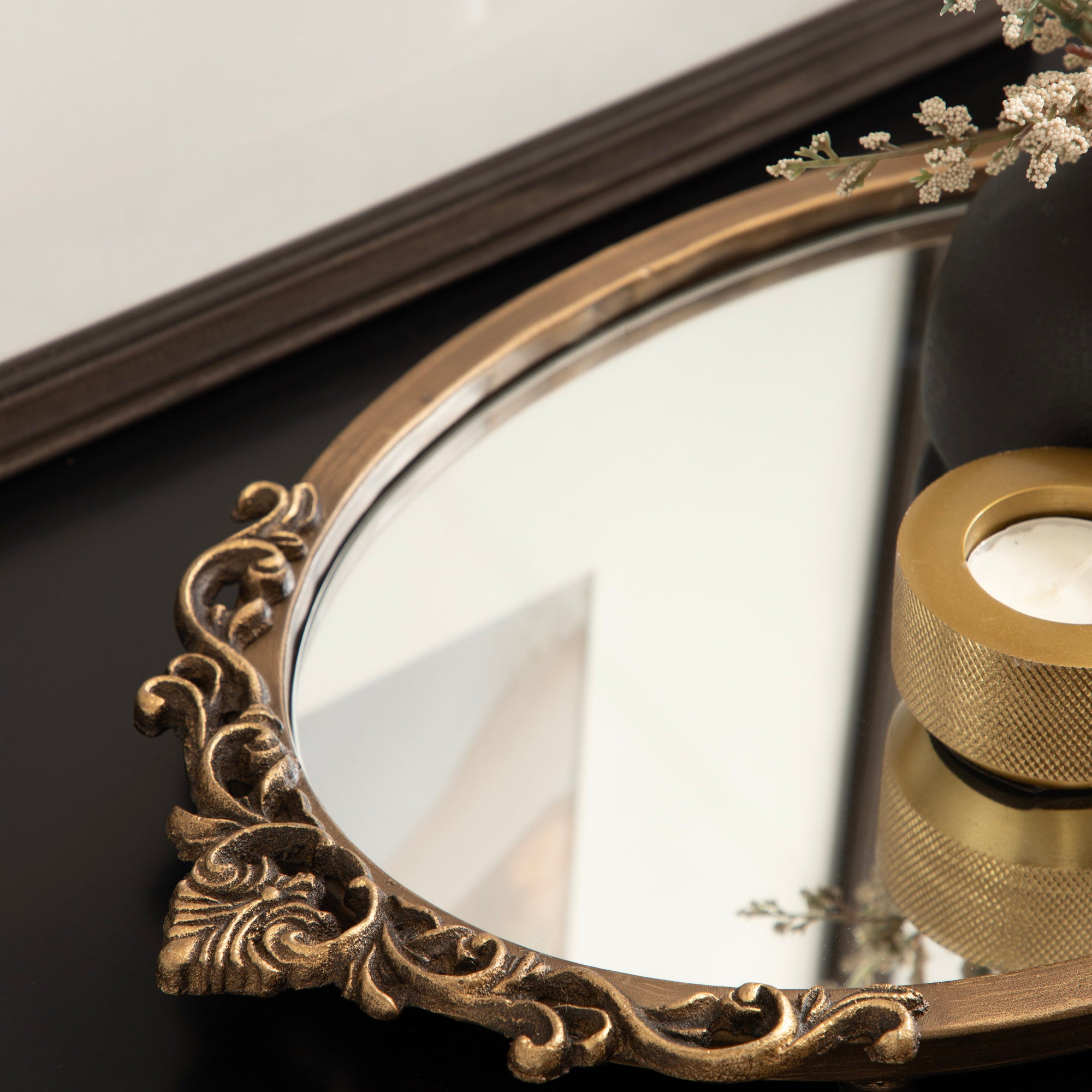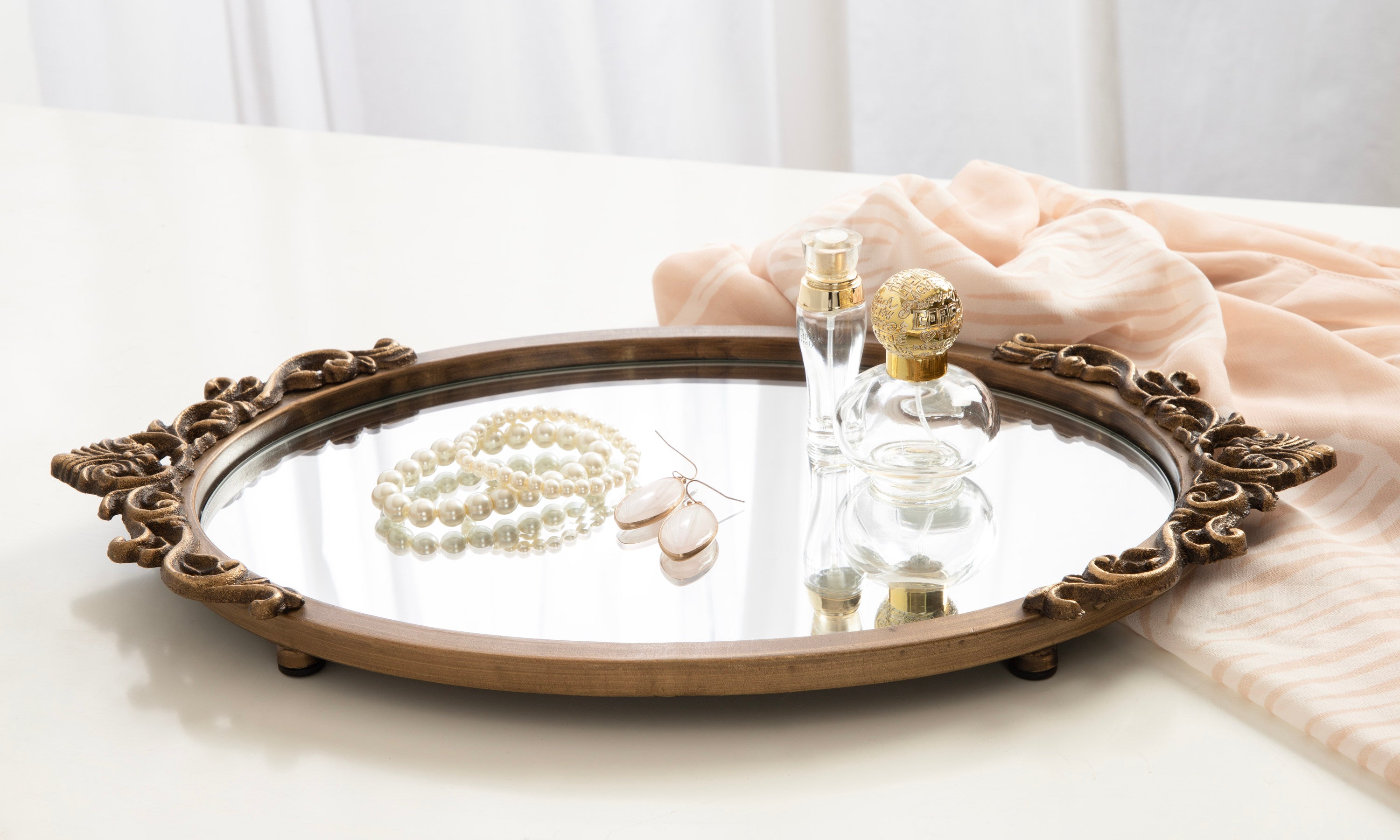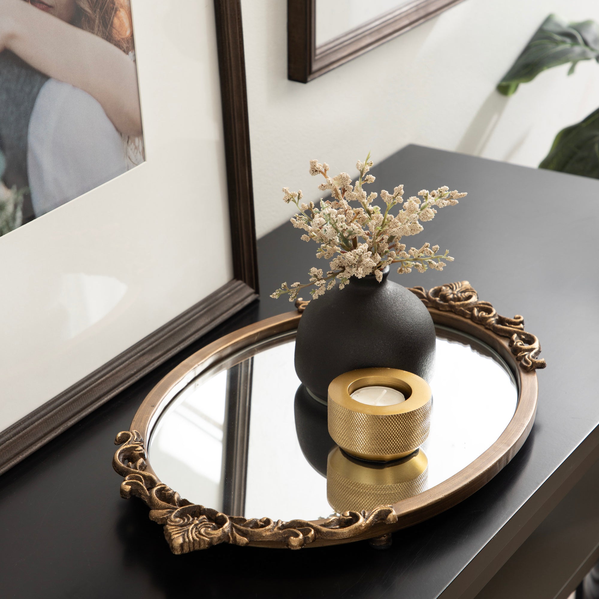 Crafted with attention to detail, the Arendahl vintage tray boasts an antique-inspired design with intricate ornate detailing, adding a touch of luxury to your space. The mirrored surface reflects light beautifully, making it a captivating decor accent for your coffee table, ottoman, or countertop. It's not just a tray; it's a decor piece that instantly elevates the ambiance of any room. Its petite size provides a stylish way to organize and display a variety of items, such as decorative accents, candles, jewelry, or gorgeous perfume bottles.