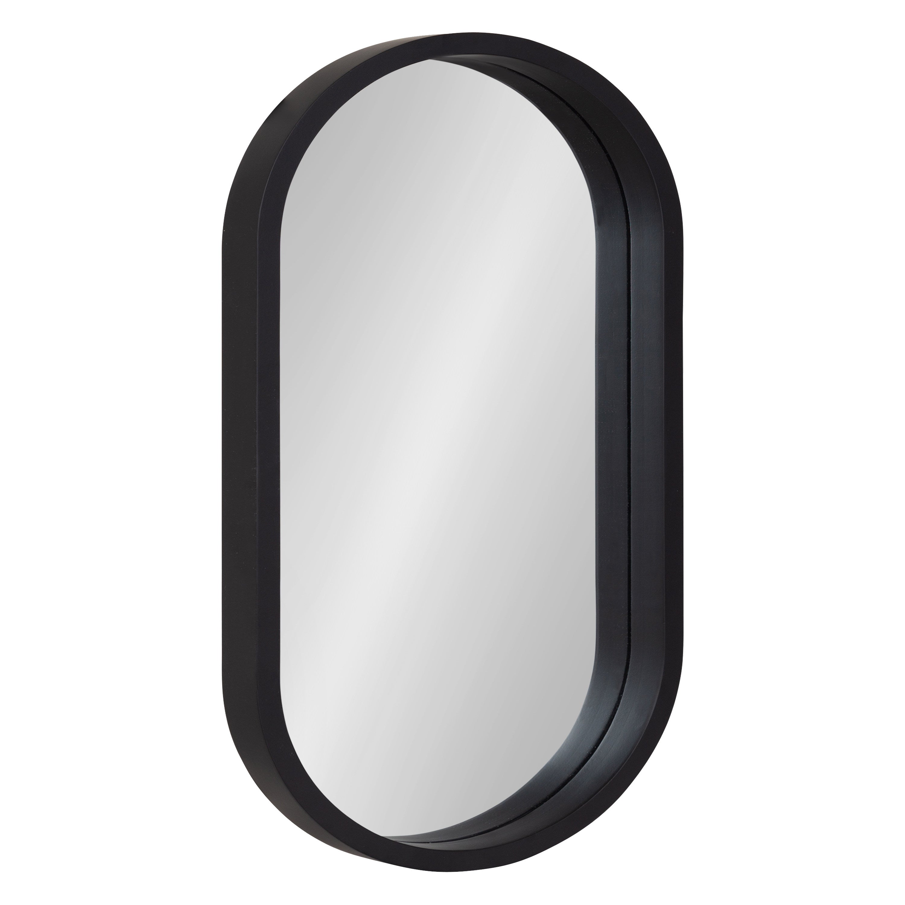 The capsule shape of this Travis mirror brings a modern, bold look to any wall. It features a narrow frame to emphasize its generous surface area, presenting a grand opportunity to spread light and dimension throughout your space. The metal D-ring hangers allow you to hang it vertically or horizontally, making it an excellent decorative accent or bathroom mirror.