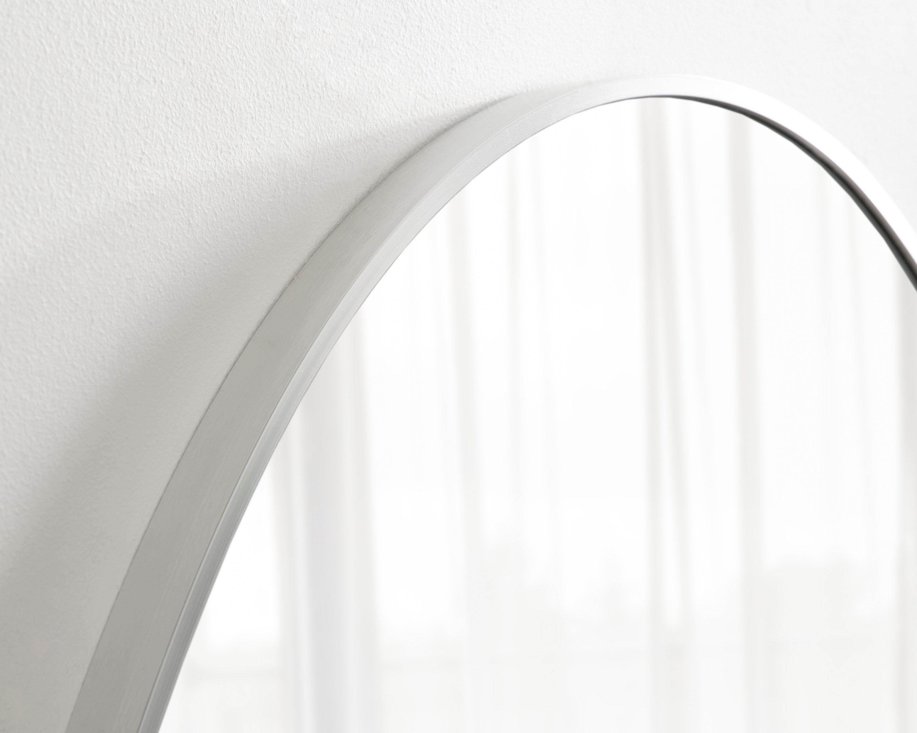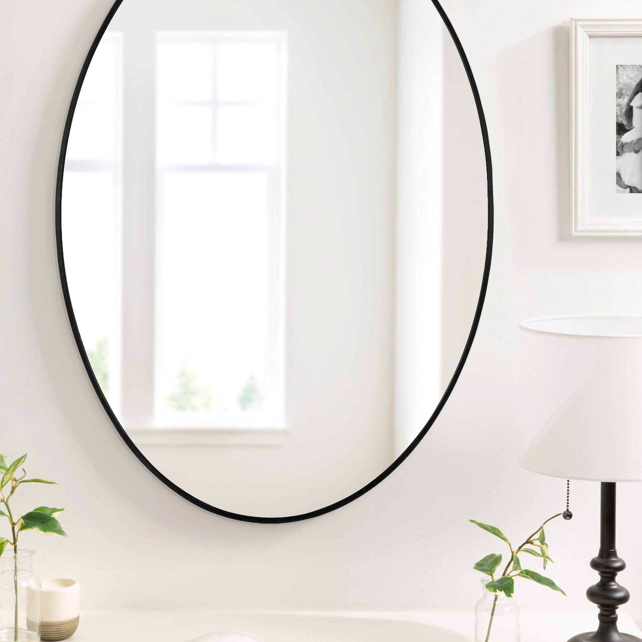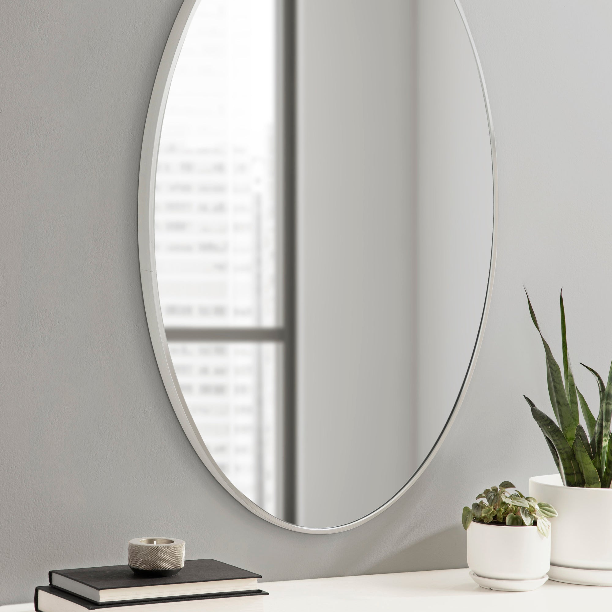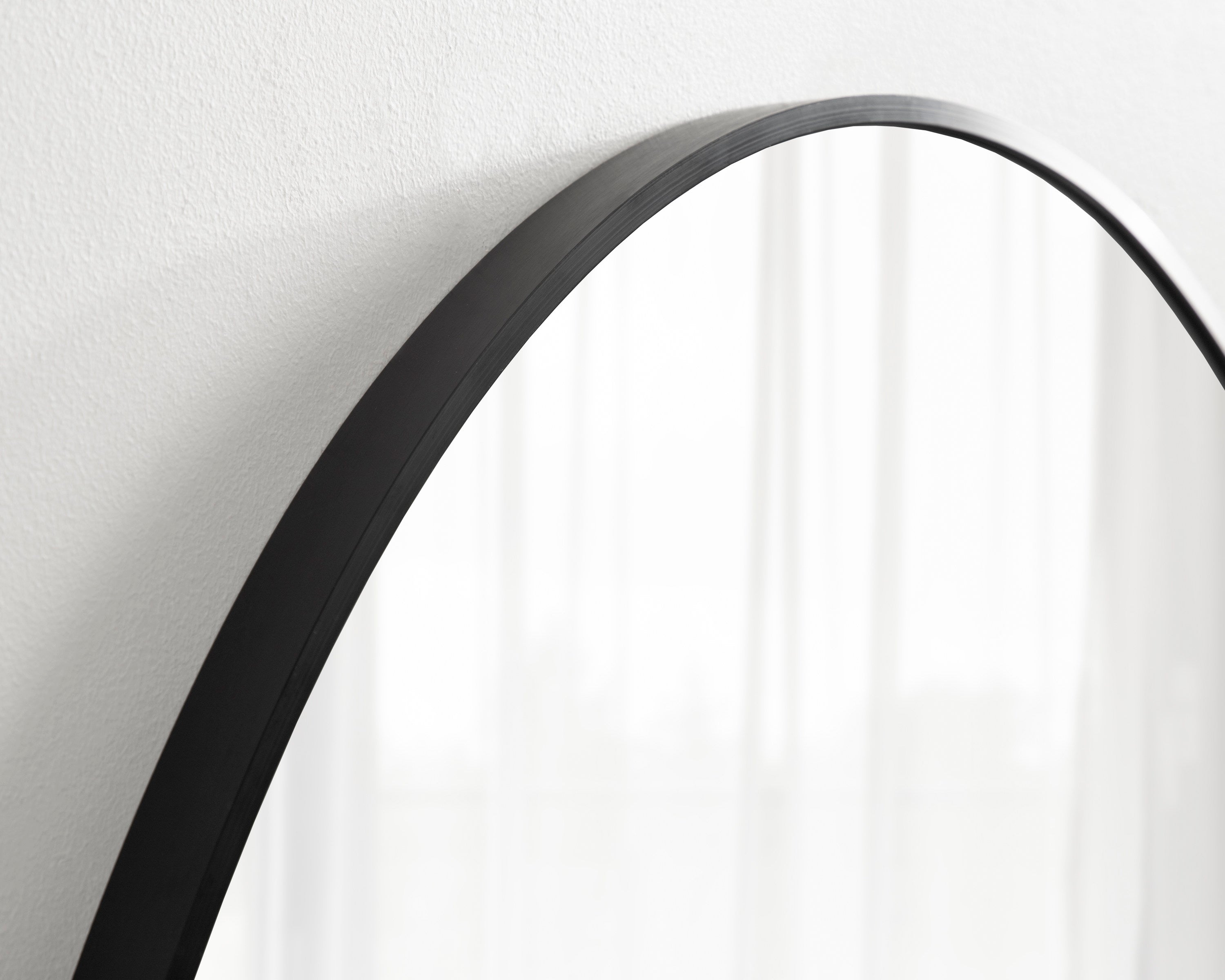 The Zayda round mirror defines stylish simplicity. The combination of smooth curves and a slim frame profile catches attention but blends seamlessly with your decor. This modern option is constructed from resilient aluminum, making it durable and light enough to hang easily.