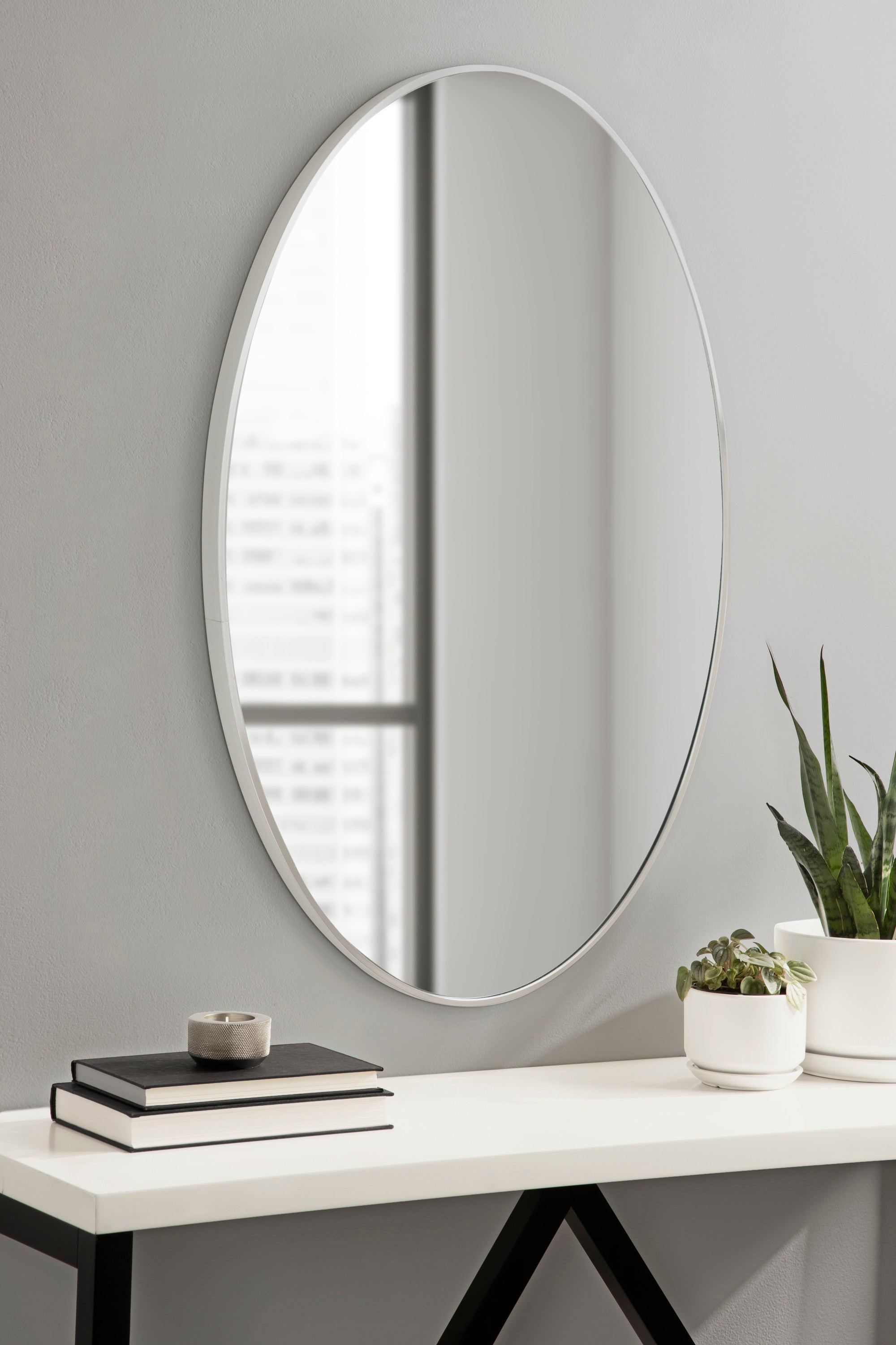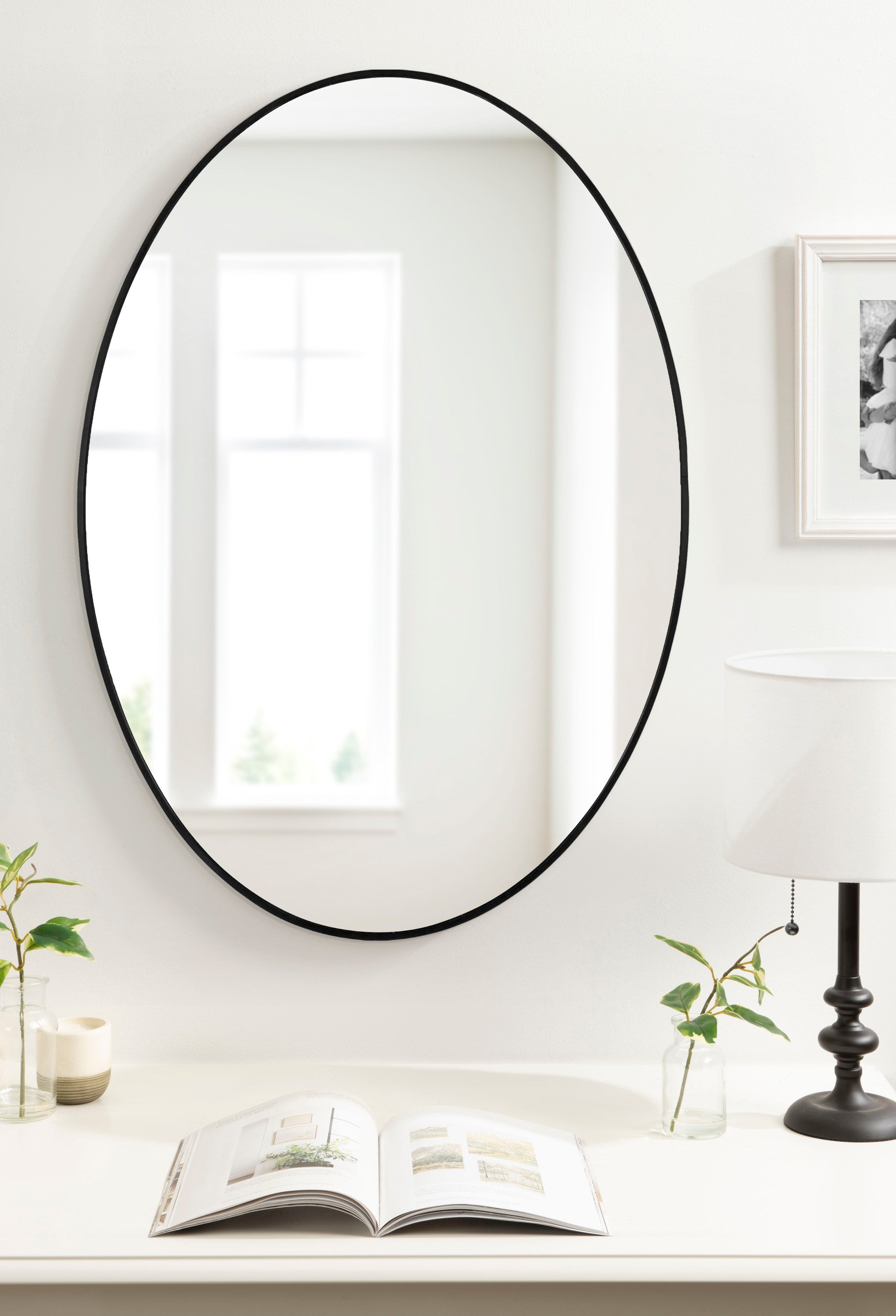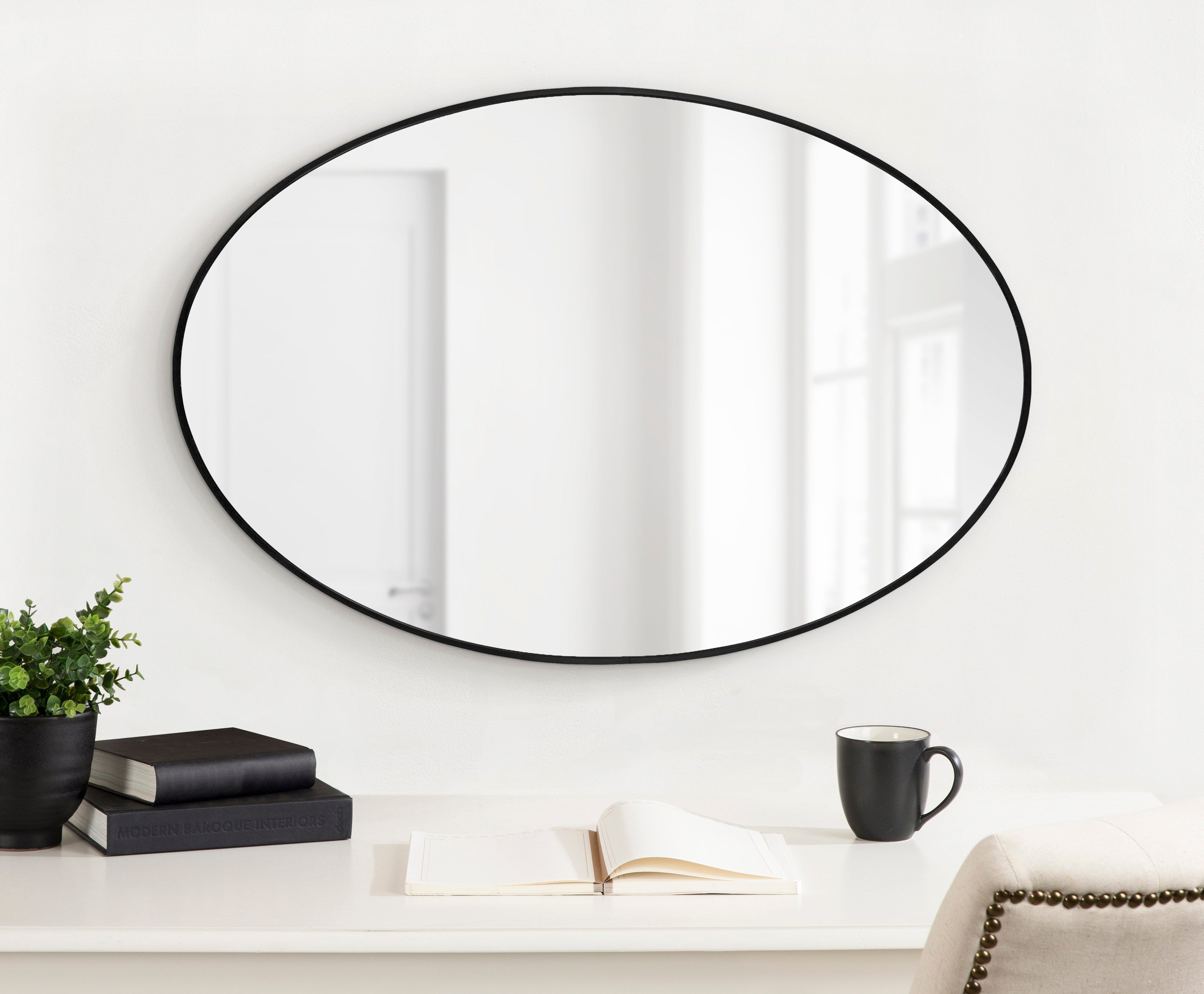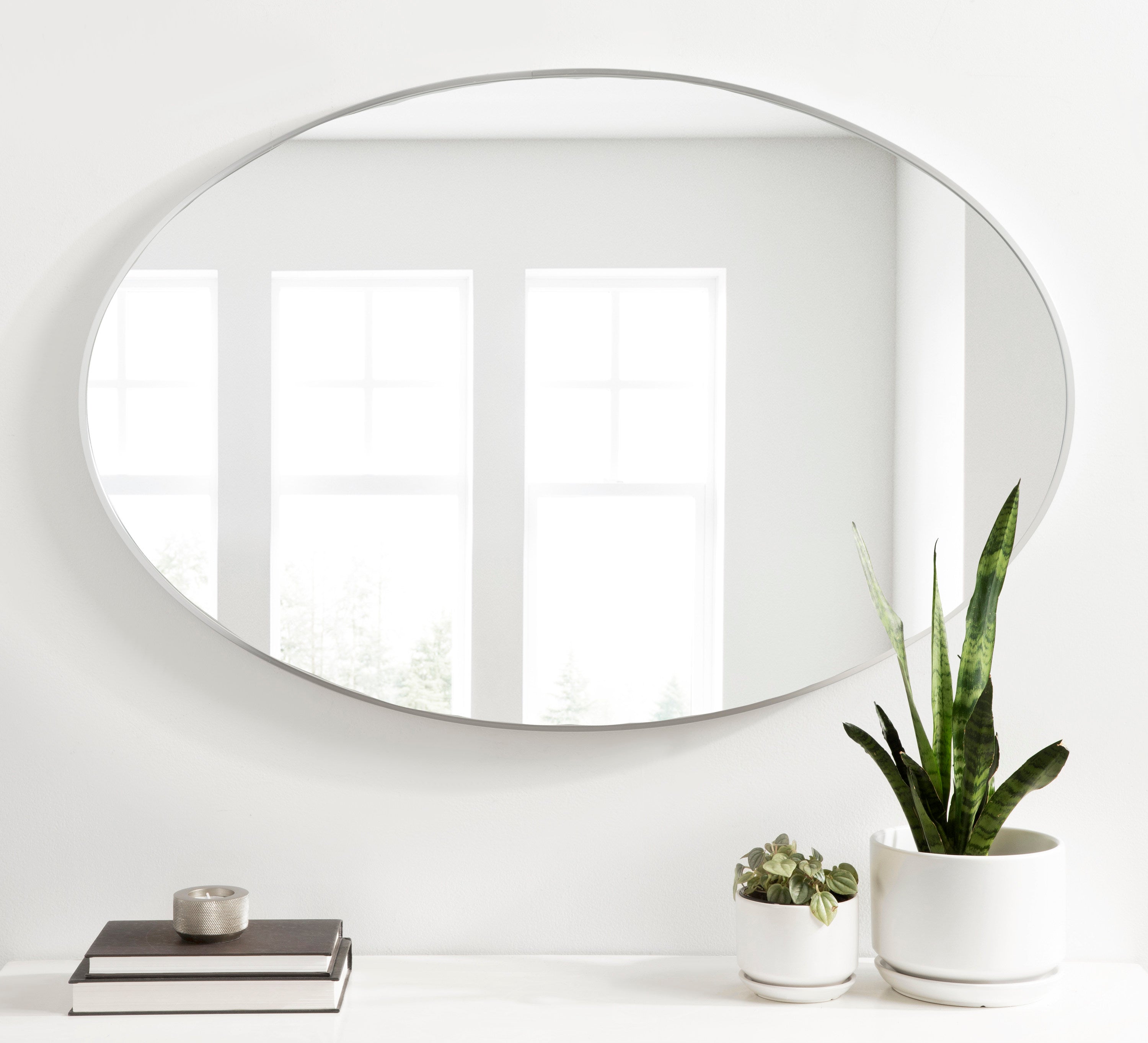 The Zayda round mirror defines stylish simplicity. The combination of smooth curves and a slim frame profile catches attention but blends seamlessly with your decor. This modern option is constructed from resilient aluminum, making it durable and light enough to hang easily.