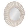 Transform your living room or bathroom decor with this charming round wall mirror. Crafted with precision, the mirror features delicately carved indentations that radiate from the center, creating a captivating sunburst effect. This intricate detailing adds depth and texture, elevating the mirror from a functional piece to a work of art. The high-quality wooden frame ensures durability and longevity, while the carefully selected materials contribute to its natural, organic look. This versatile mirror is not only a practical addition to your living space but also a decorative statement piece.