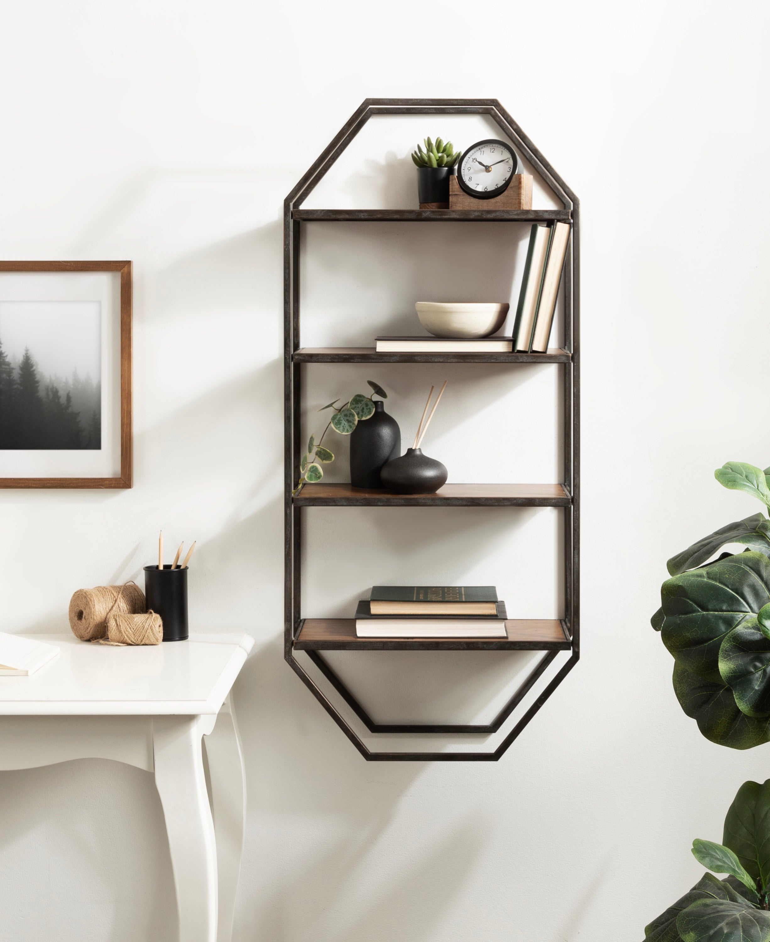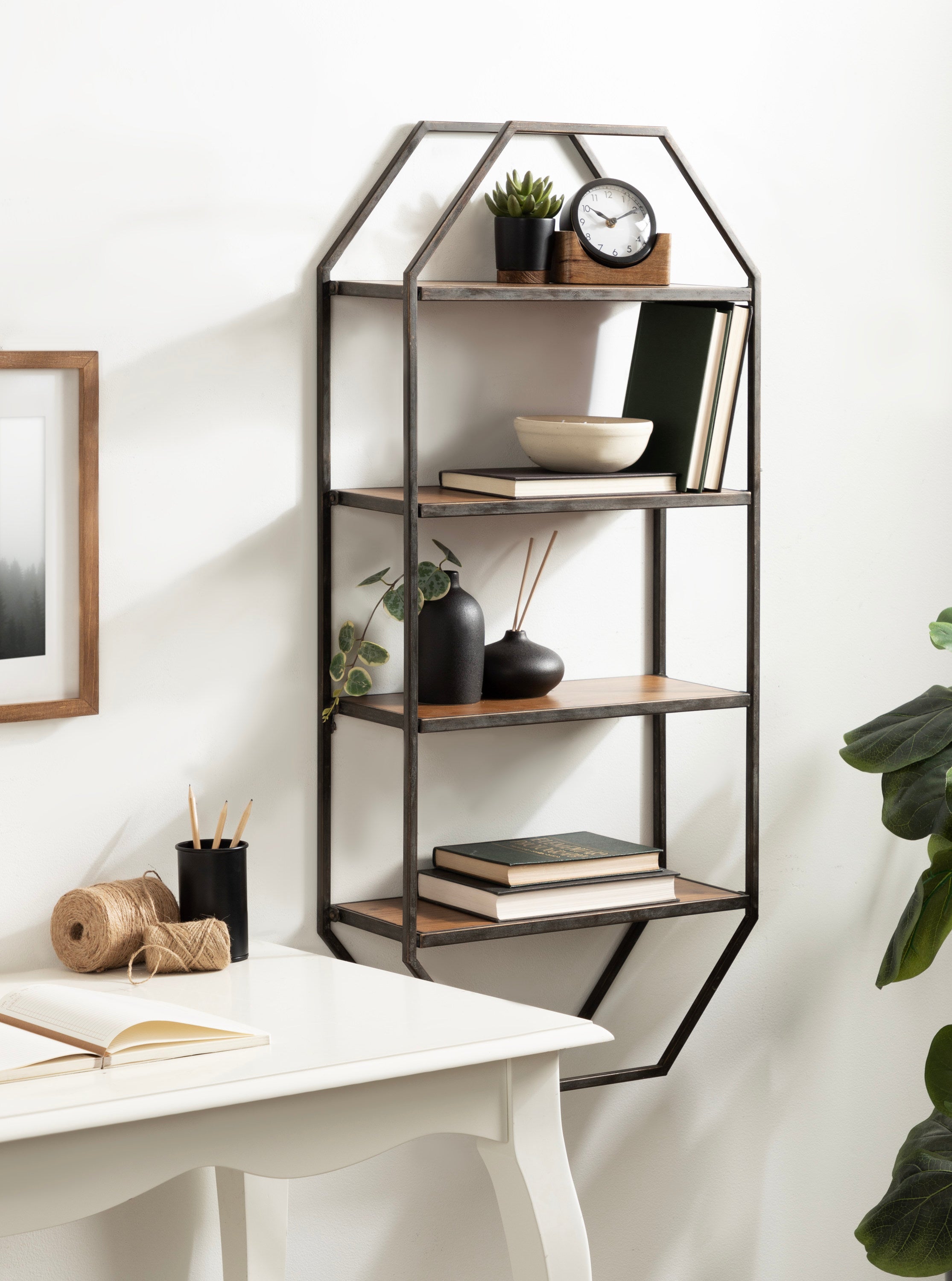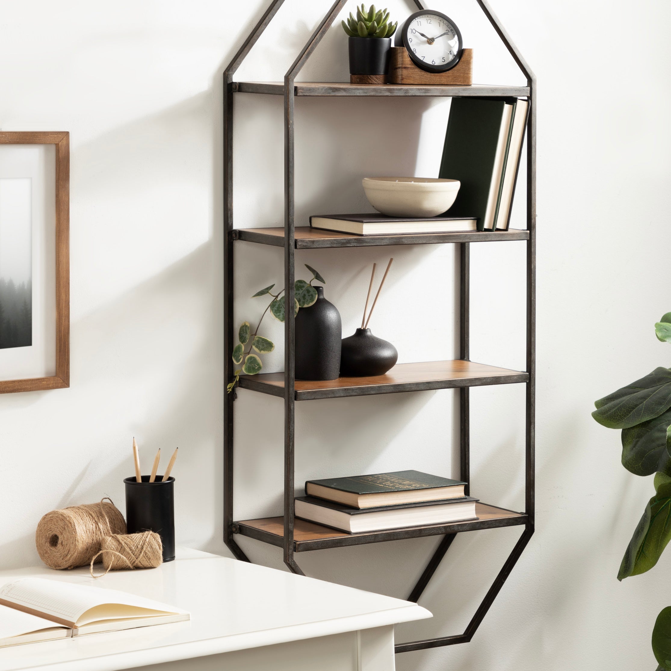 Create multifunctional floating storage in your home with the Adela wall shelf. Inspired by modern design, this unit has tiers of shelves to store and display your favorite keepsakes, books, and household odds and ends. The two-tone finish makes it fantastic for glamorous aesthetics, showcasing an elegant yet functional wall display that captures the eye.