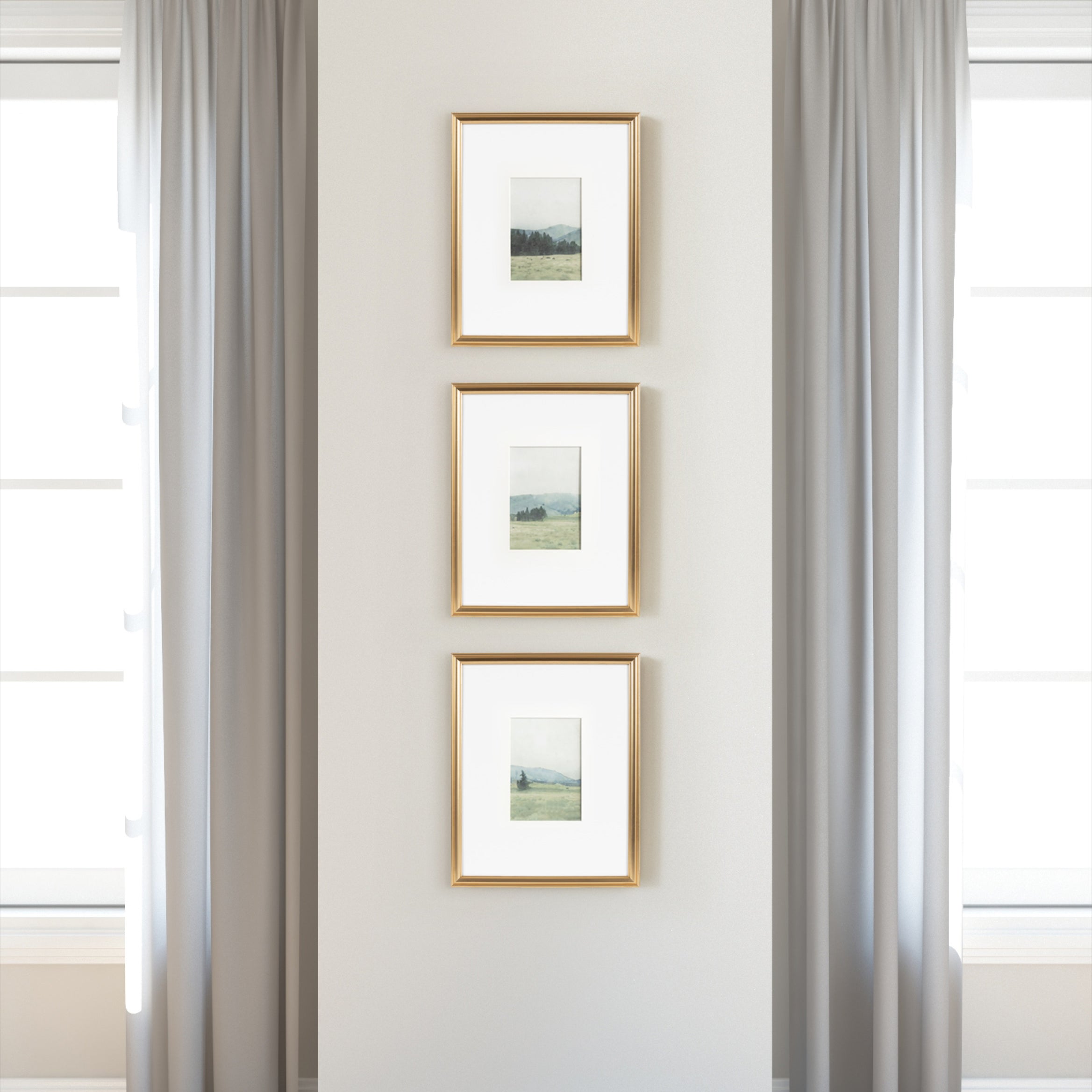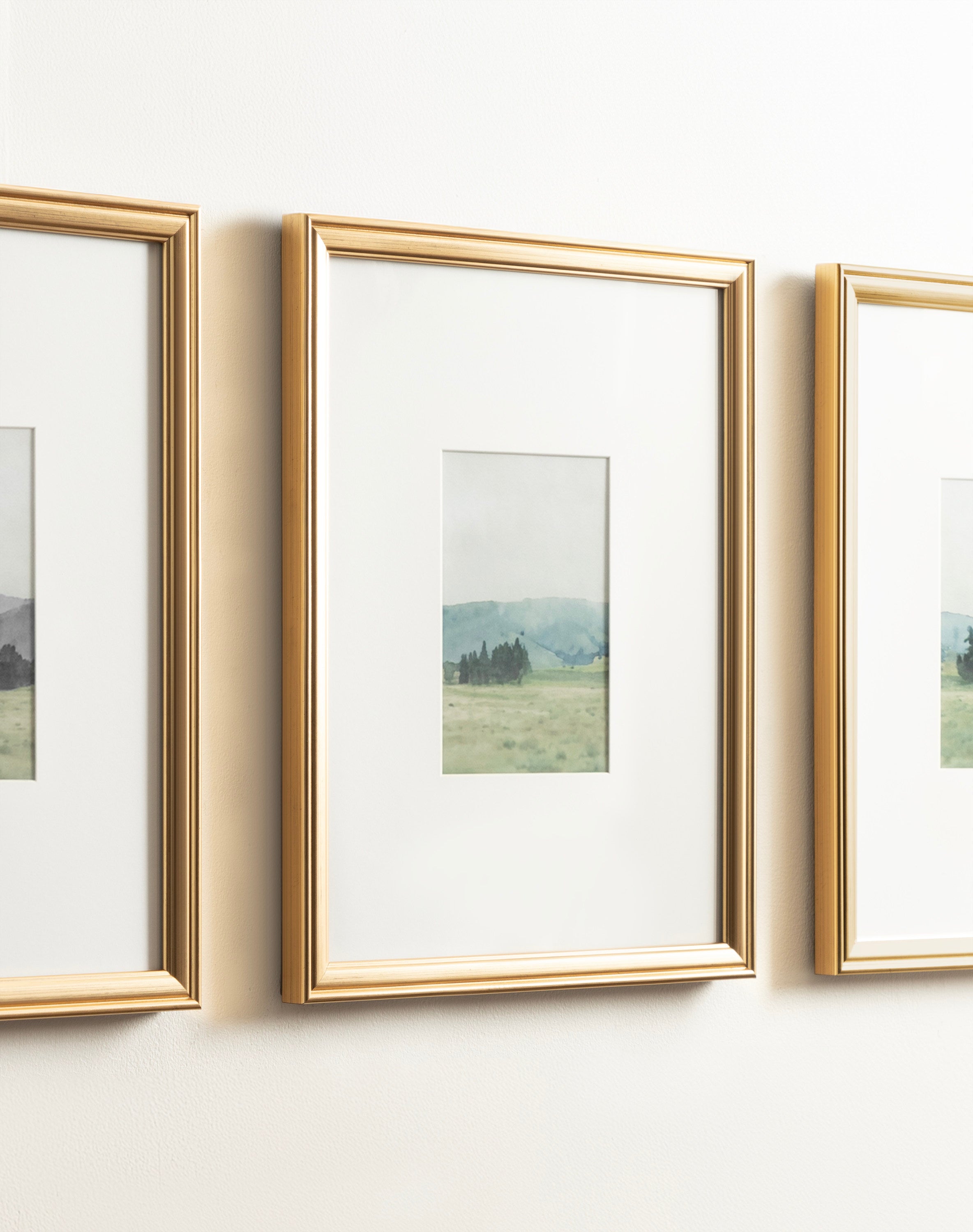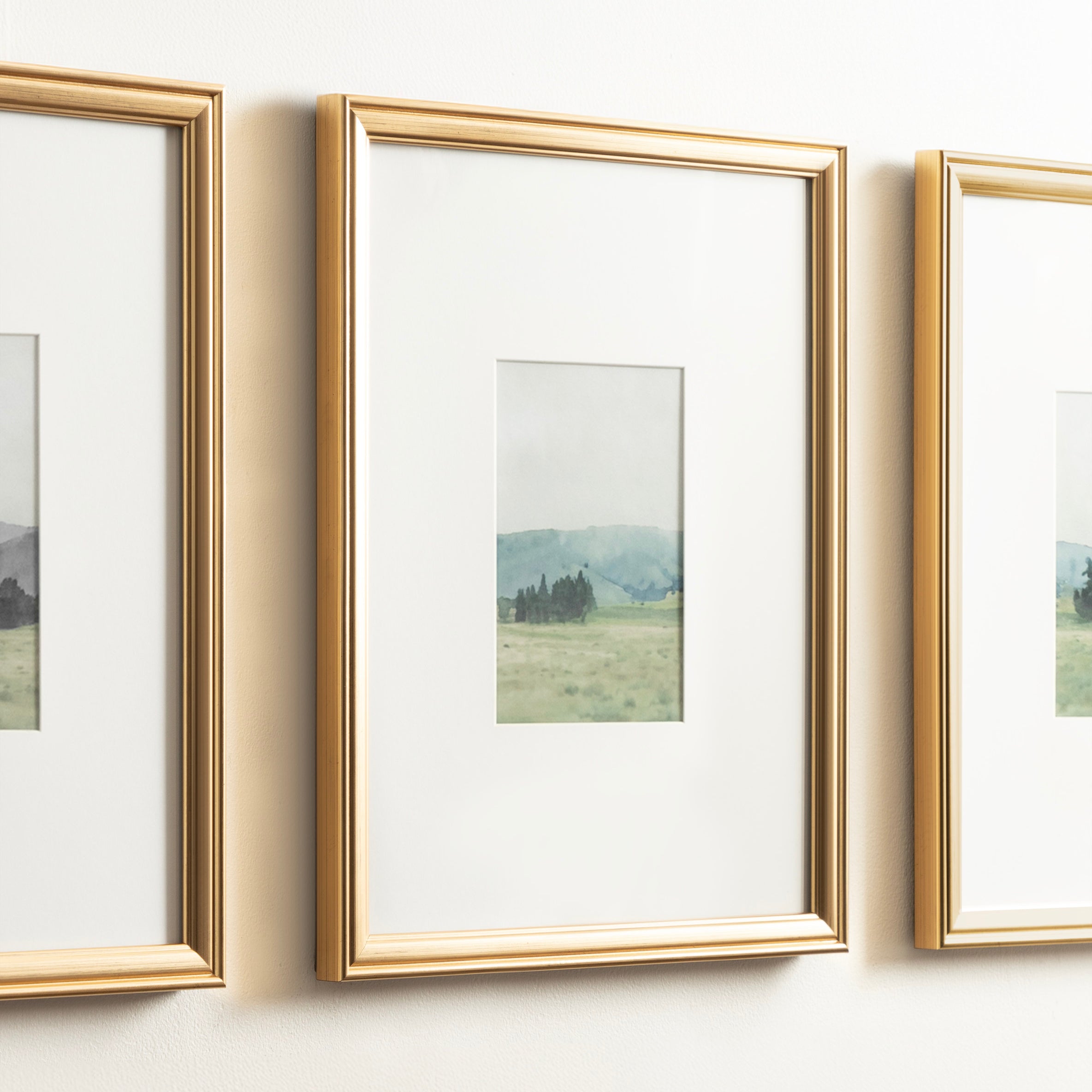 Enjoy the latest addition to our viral Adlynn collection with this framed art set. This set comes with a soft watercolor artwork that can be removed and replaced with other art pieces or photographs. This three-piece set fills your space with a cohesive, refined look at an affordable price. The soft landscape design of this art blends well with a variety of decor styles as it can skew both vintage or modern. With three separate frames, you can showcase them together for a statement look or throughout your home for a sprawling connective look. The Kate and Laurel Adlynn picture frame set helps you tell your story creatively, tastefully and with the theme you have in mind. These refined frame profiles create a classic look and feel that accentuates the artwork.