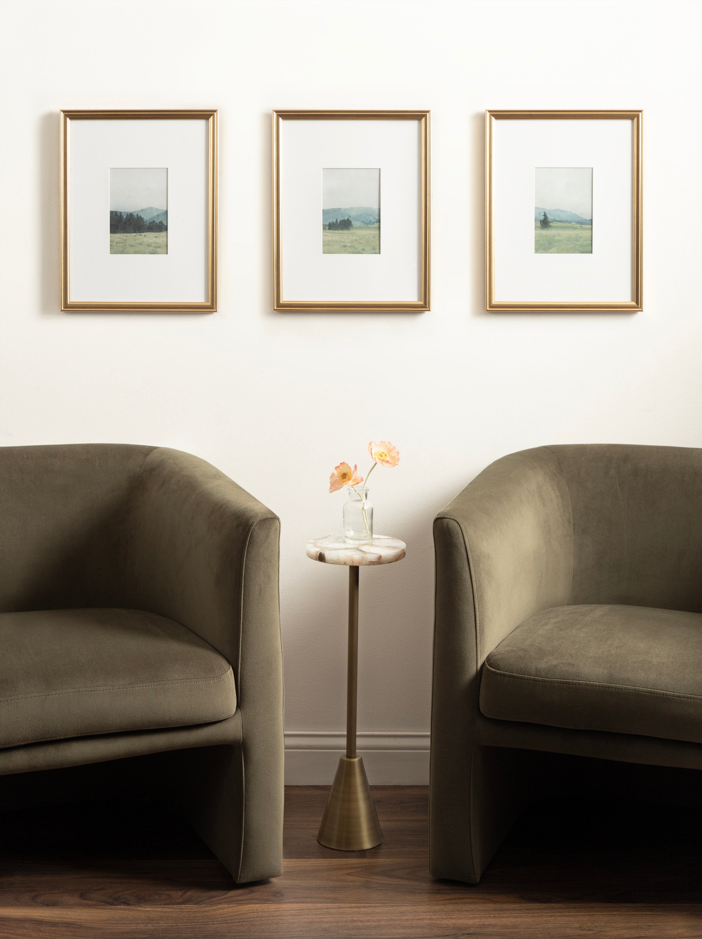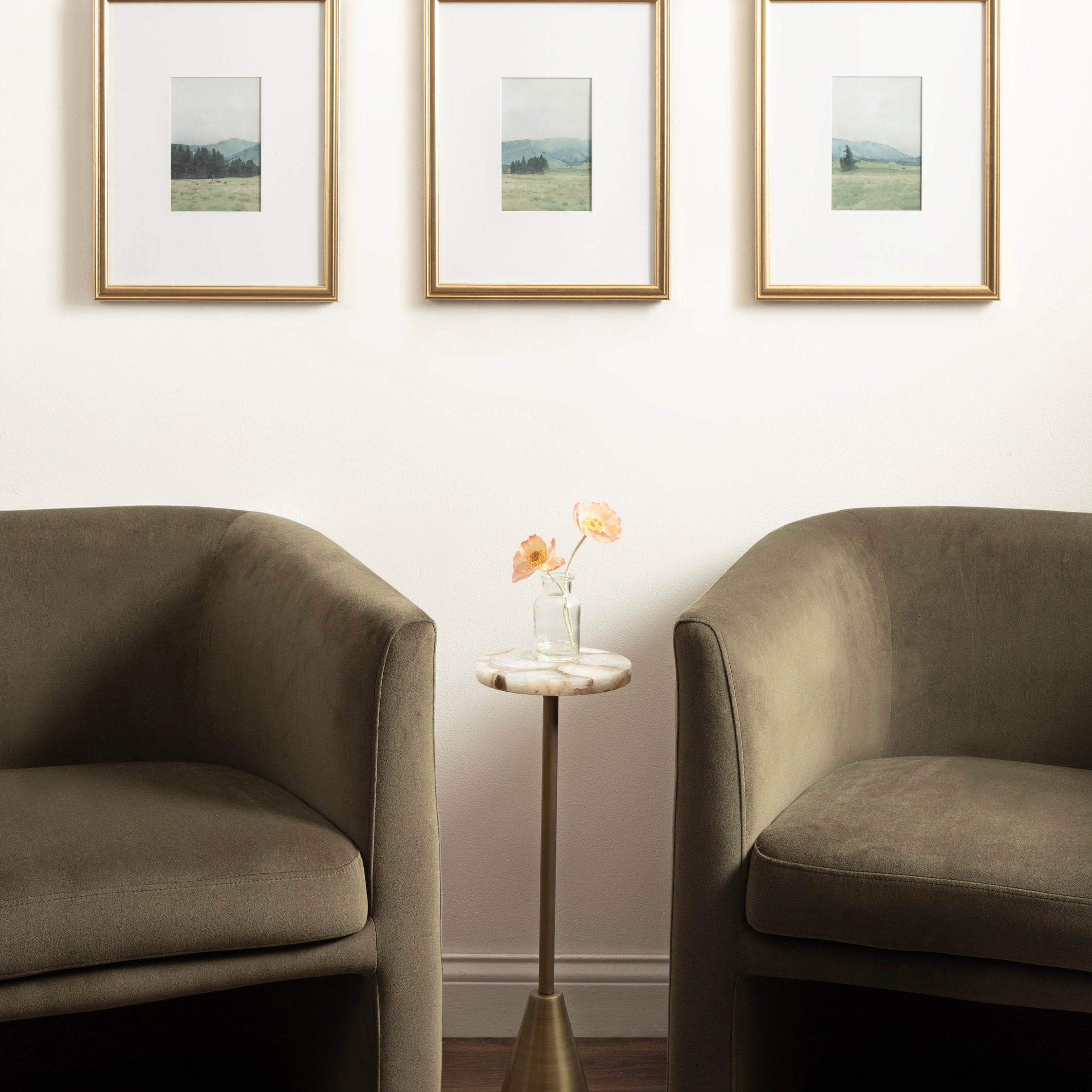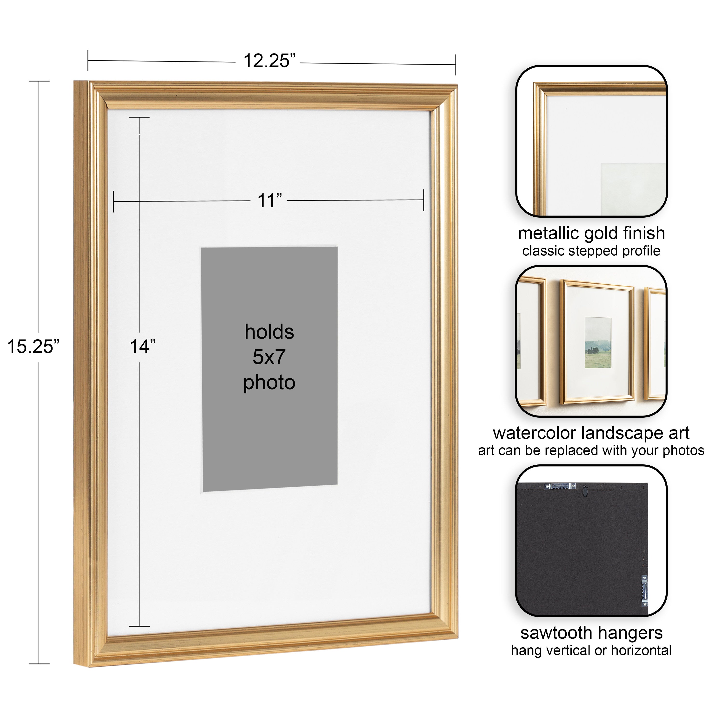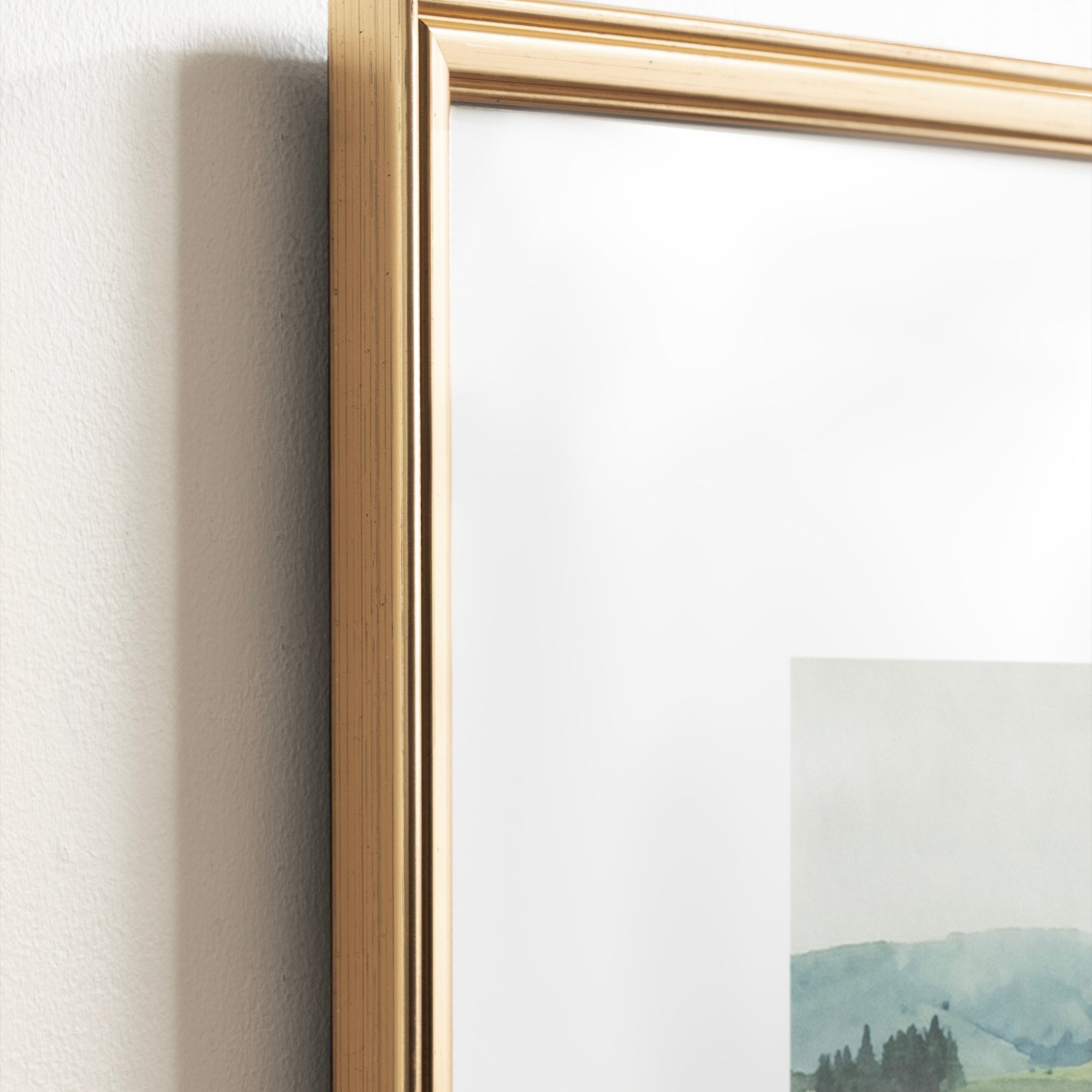 Enjoy the latest addition to our viral Adlynn collection with this framed art set. This set comes with a soft watercolor artwork that can be removed and replaced with other art pieces or photographs. This three-piece set fills your space with a cohesive, refined look at an affordable price. The soft landscape design of this art blends well with a variety of decor styles as it can skew both vintage or modern. With three separate frames, you can showcase them together for a statement look or throughout your home for a sprawling connective look. The Kate and Laurel Adlynn picture frame set helps you tell your story creatively, tastefully and with the theme you have in mind. These refined frame profiles create a classic look and feel that accentuates the artwork.
