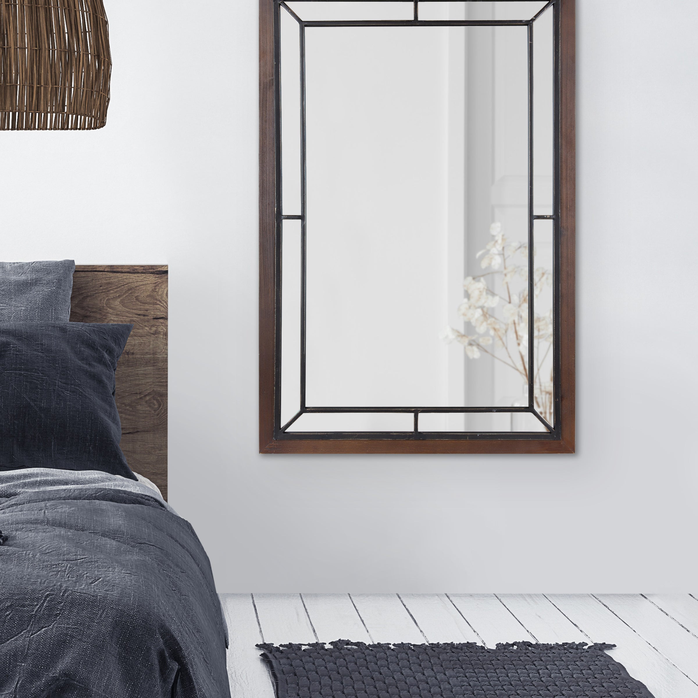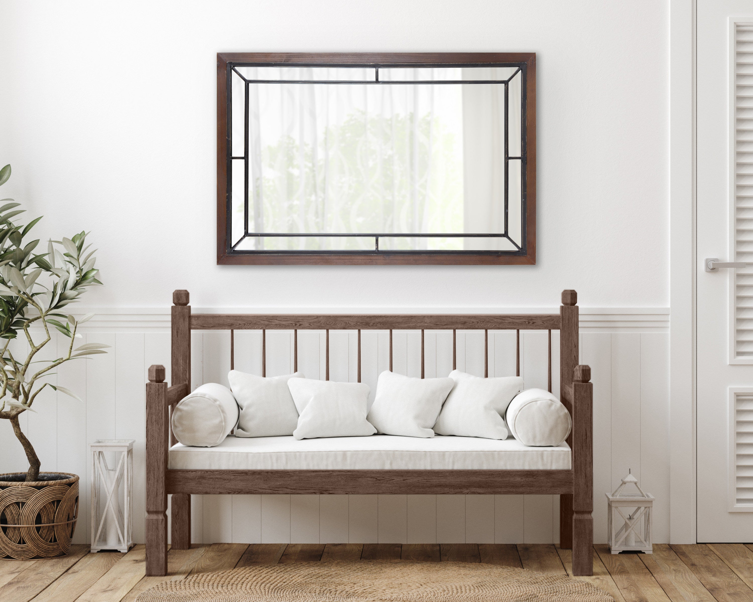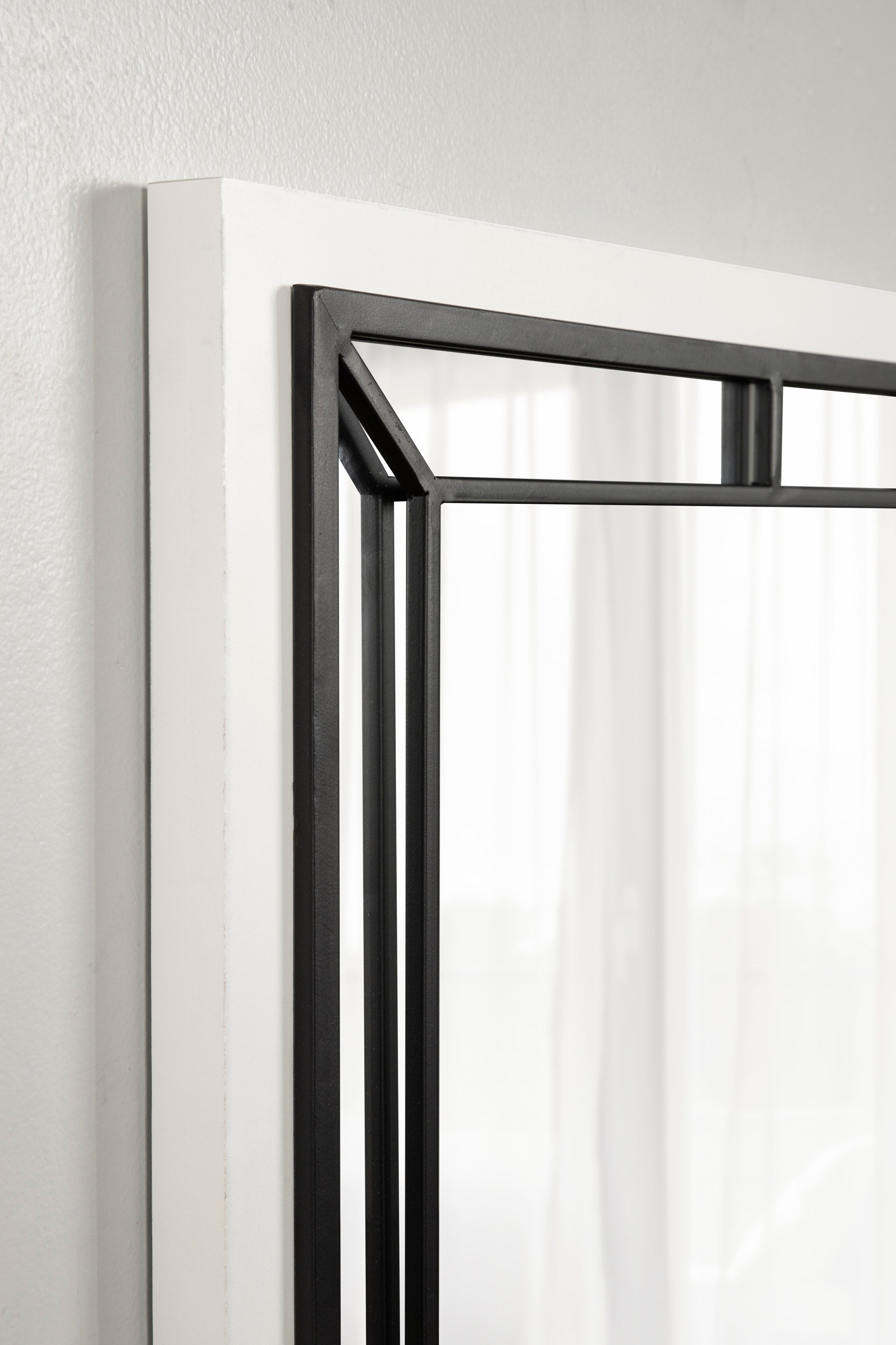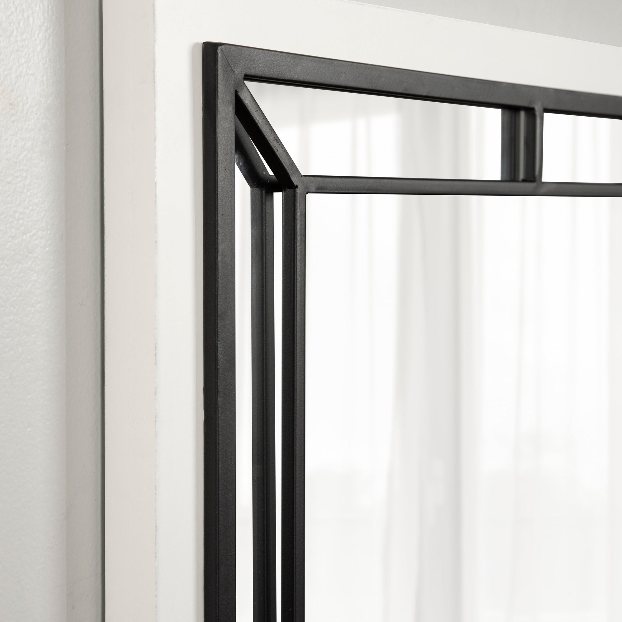 Bring a refined update to farmhouse aesthetics with the Audubon wall mirror. Featuring an iron inlay with a spoke-like design, the Audubon incorporates clean lines while breaking up the reflective glass's visual presentation. The Audubon's rectangular frame looks incredible in vertical and horizontal orientations, making a fantastic complement to a console table, bed, couch, or dresser. It's also excellent for showcasing a modern farmhouse look while fitting into various rooms with a sleek black finish.