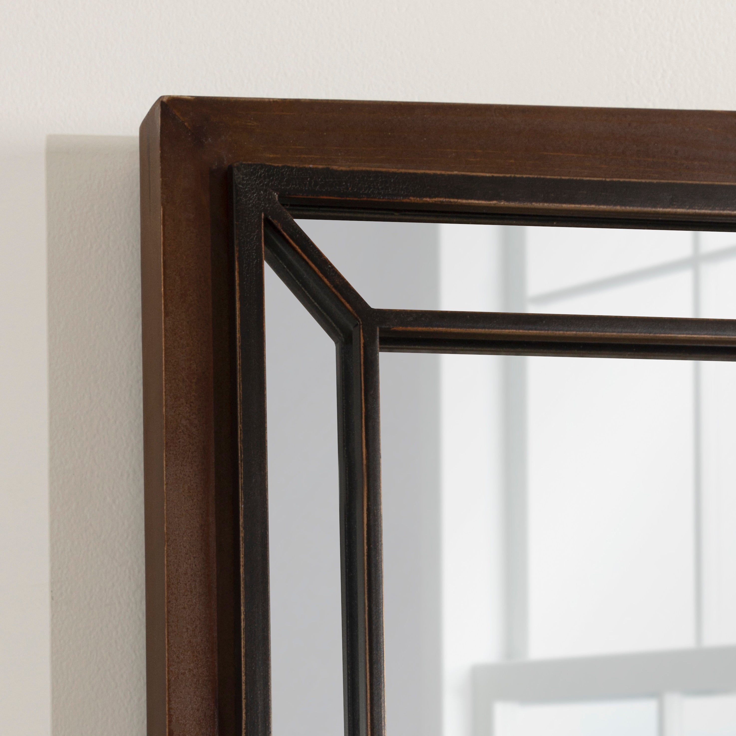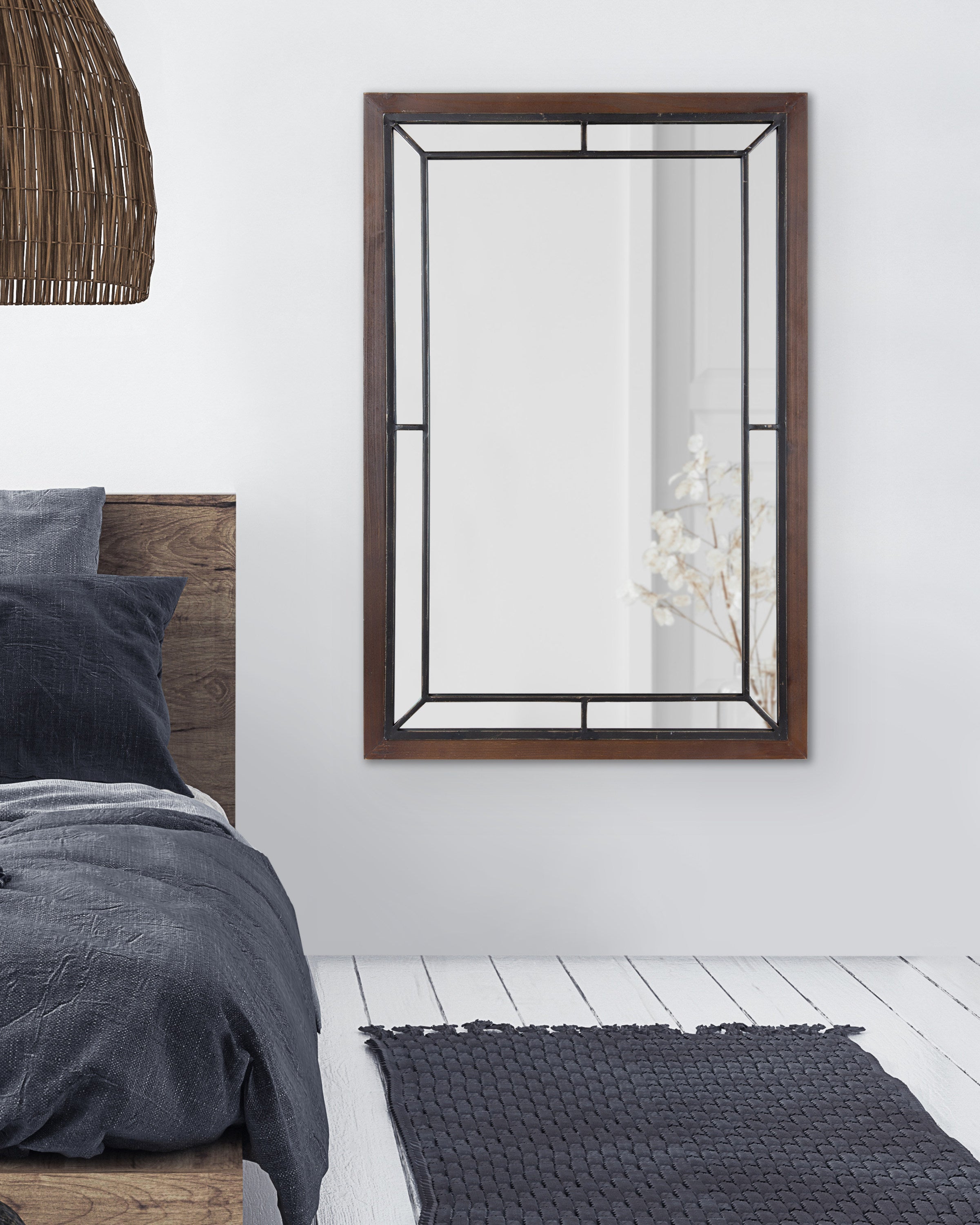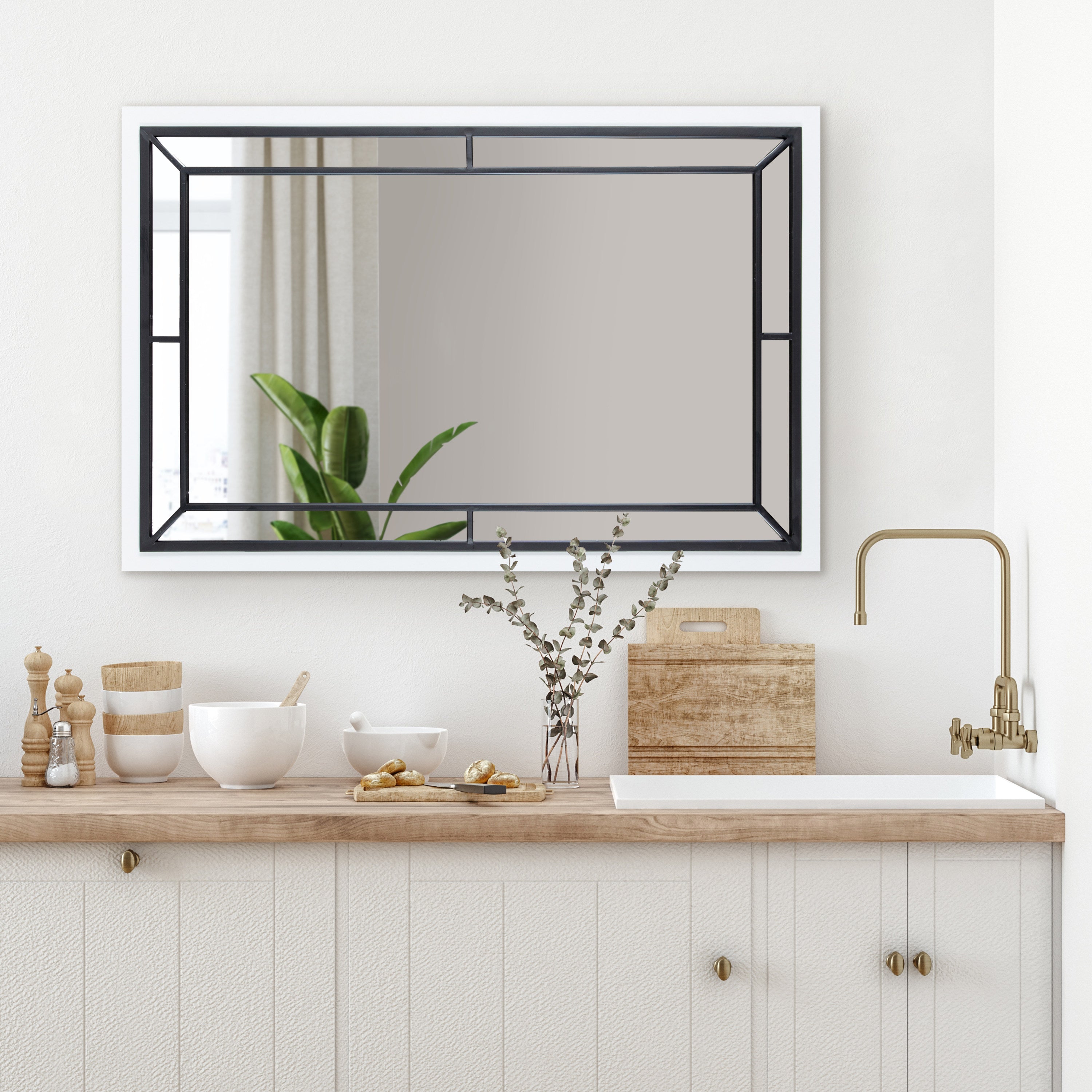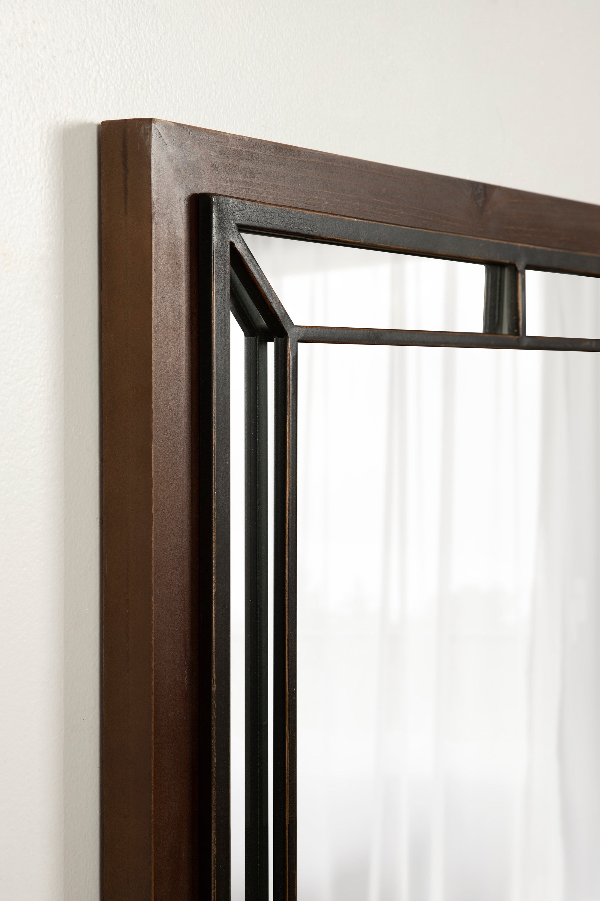 Bring a refined update to farmhouse aesthetics with the Audubon wall mirror. Featuring an iron inlay with a spoke-like design, the Audubon incorporates clean lines while breaking up the reflective glass's visual presentation. The Audubon's rectangular frame looks incredible in vertical and horizontal orientations, making a fantastic complement to a console table, bed, couch, or dresser. It's also excellent for showcasing a modern farmhouse look while fitting into various rooms with a sleek black finish.