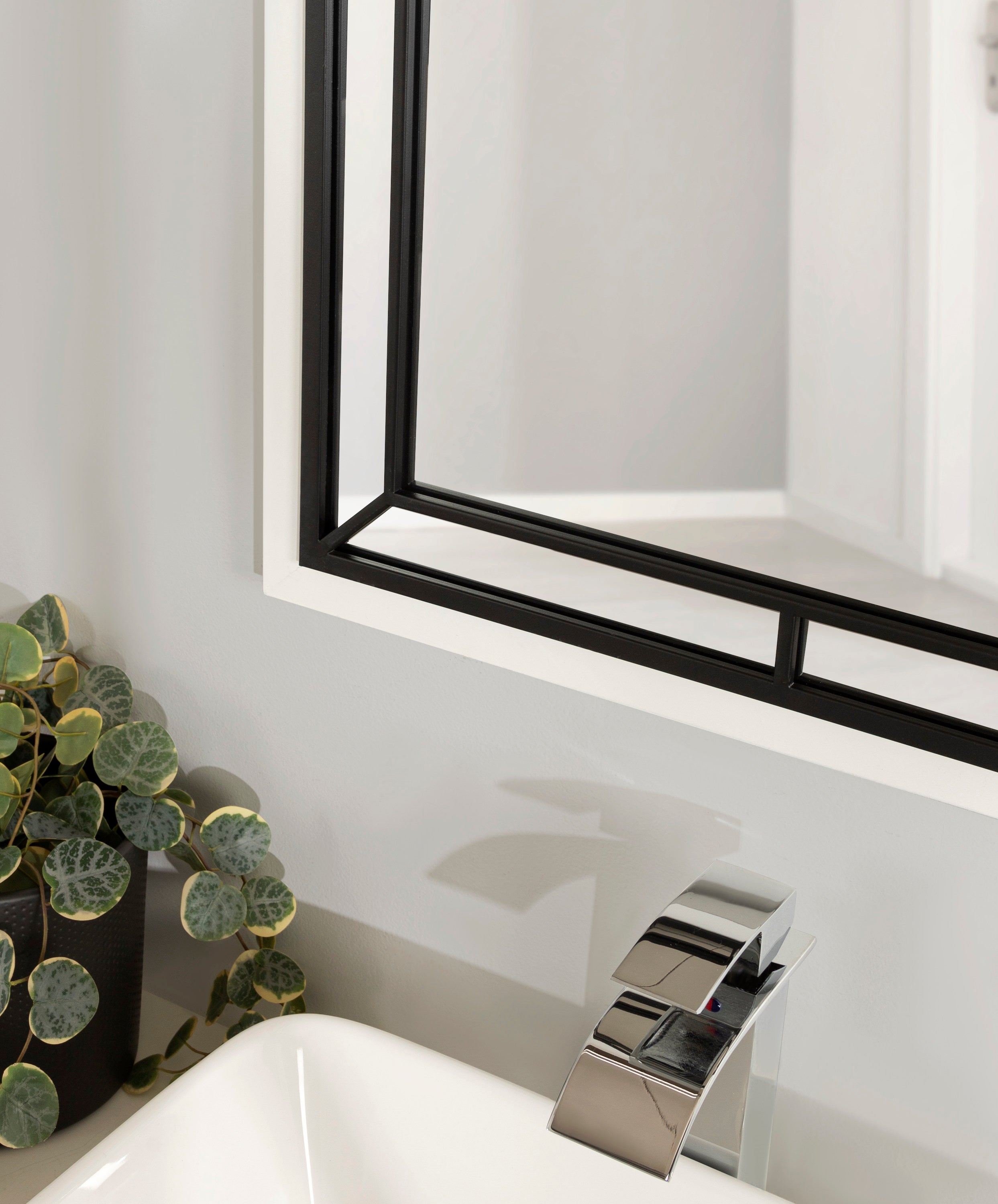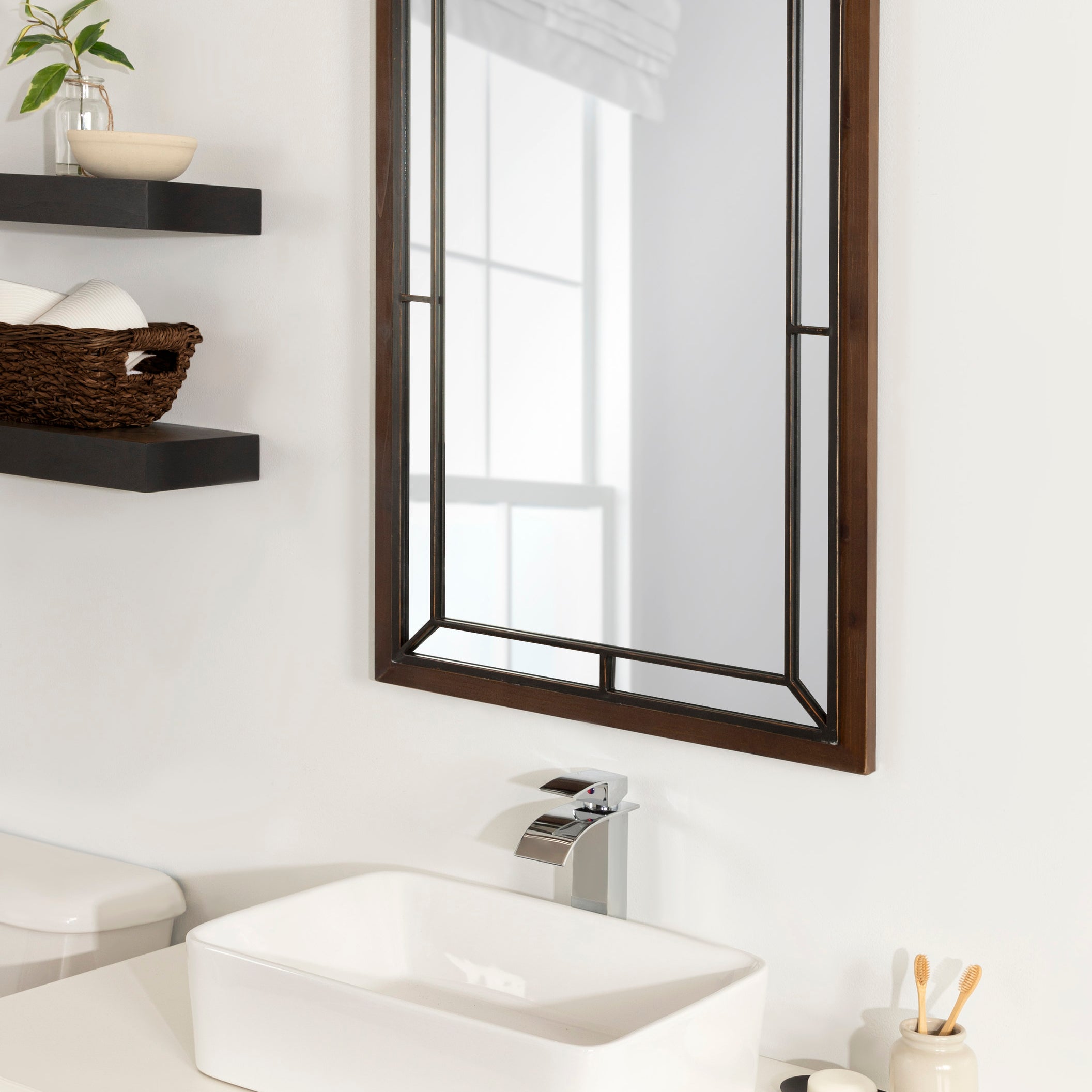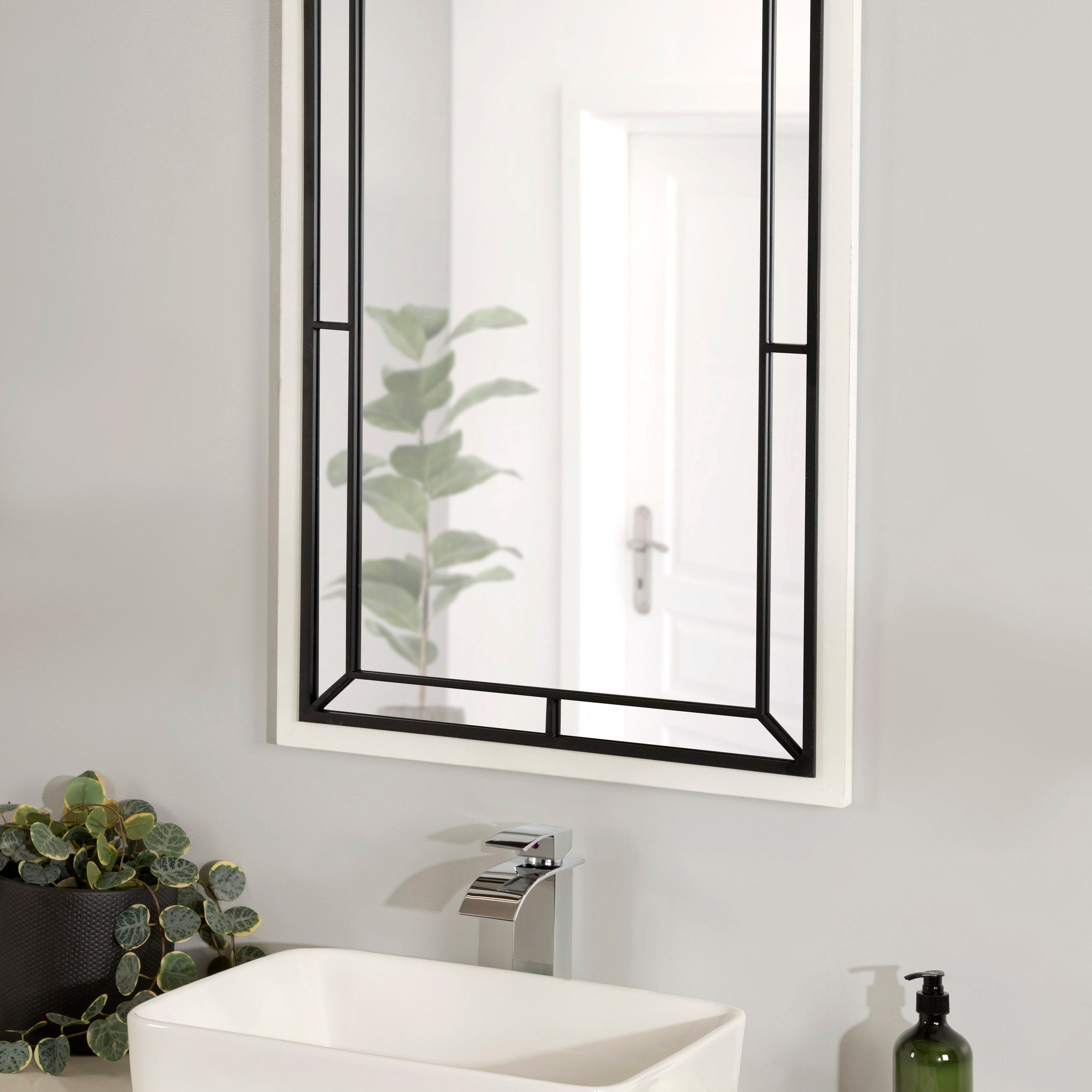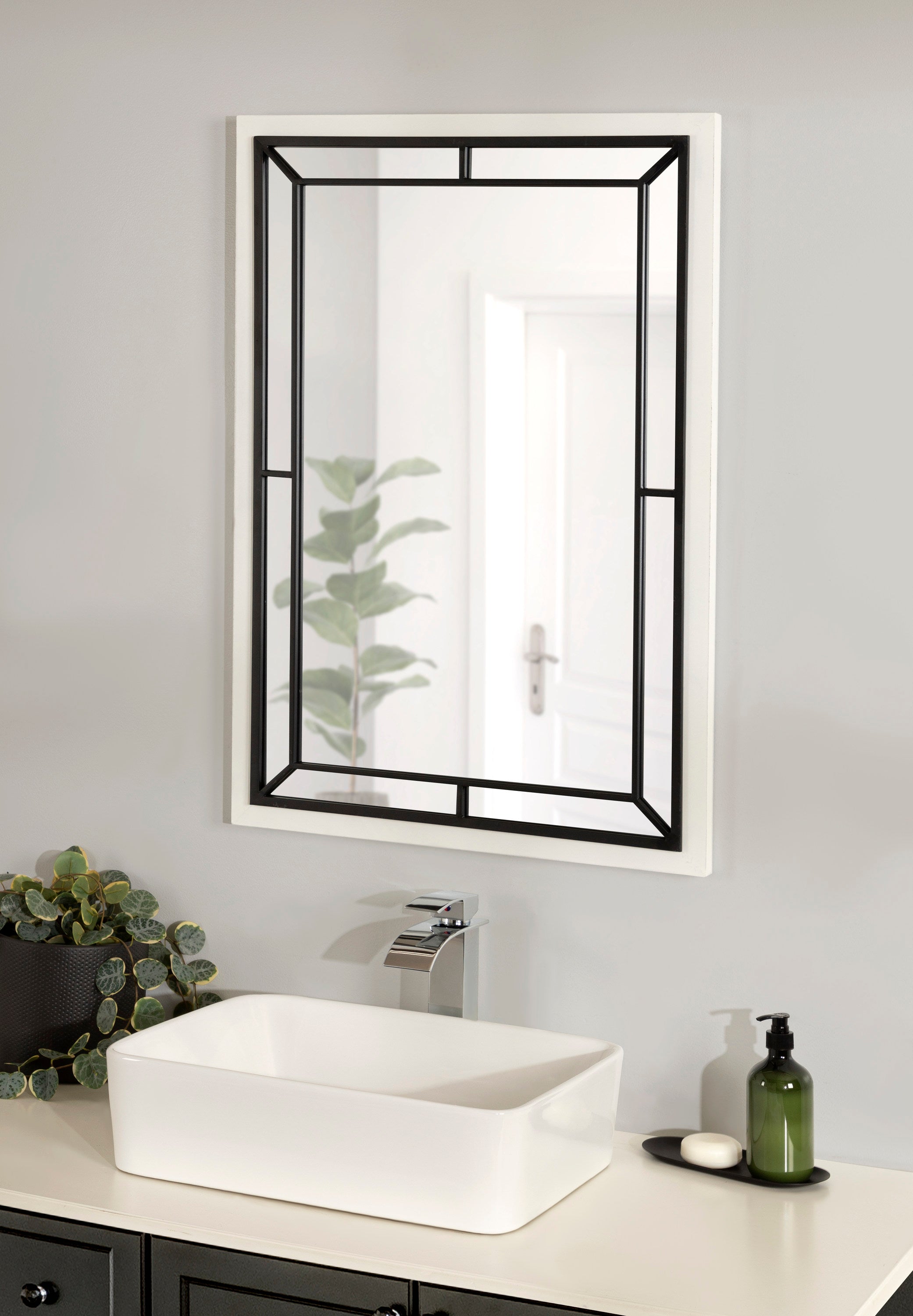 Bring a refined update to farmhouse aesthetics with the Audubon wall mirror. Featuring an iron inlay with a spoke-like design, the Audubon incorporates clean lines while breaking up the reflective glass's visual presentation. The Audubon's rectangular frame looks incredible in vertical and horizontal orientations, making a fantastic complement to a console table, bed, couch, or dresser. It's also excellent for showcasing a modern farmhouse look while fitting into various rooms with a sleek black finish.
