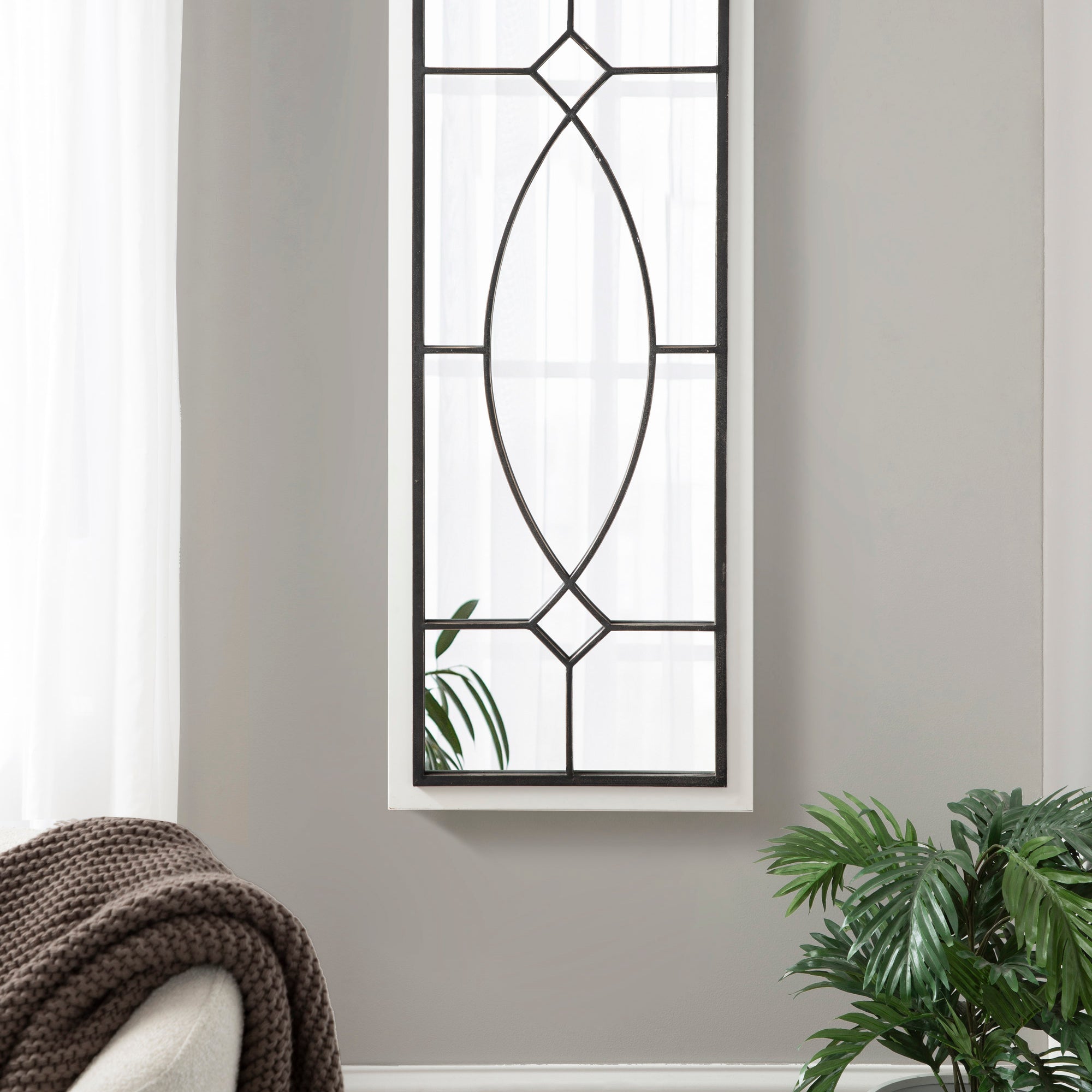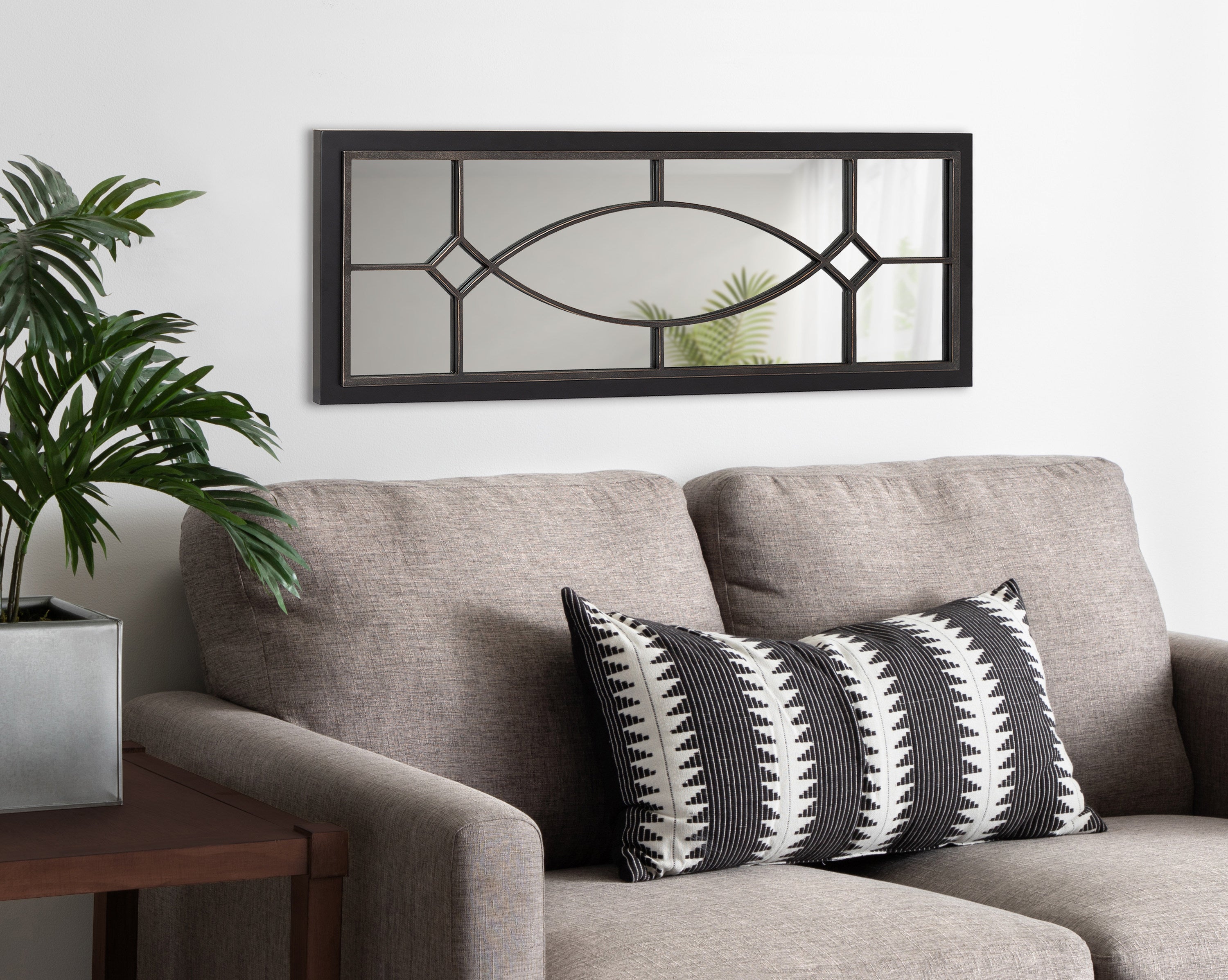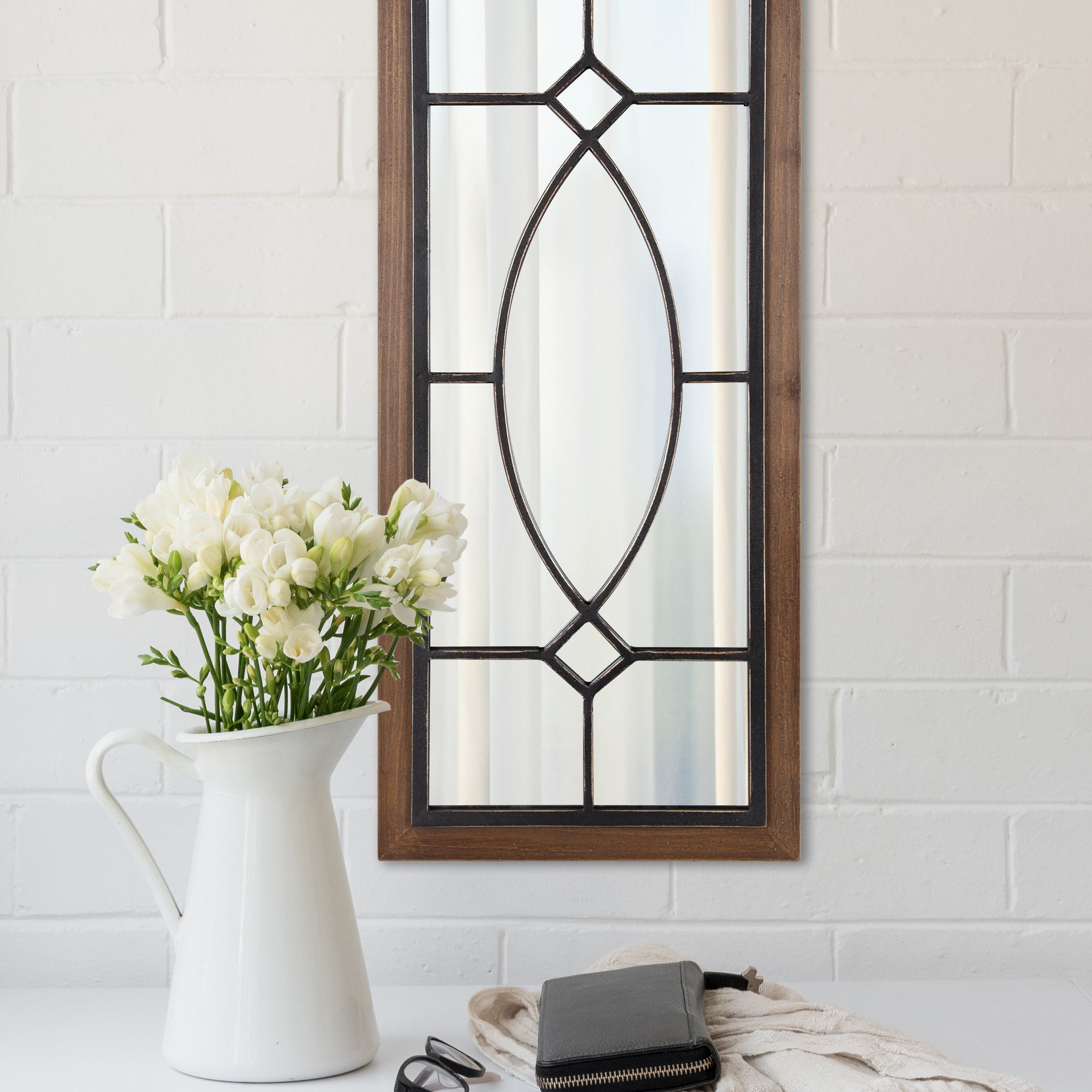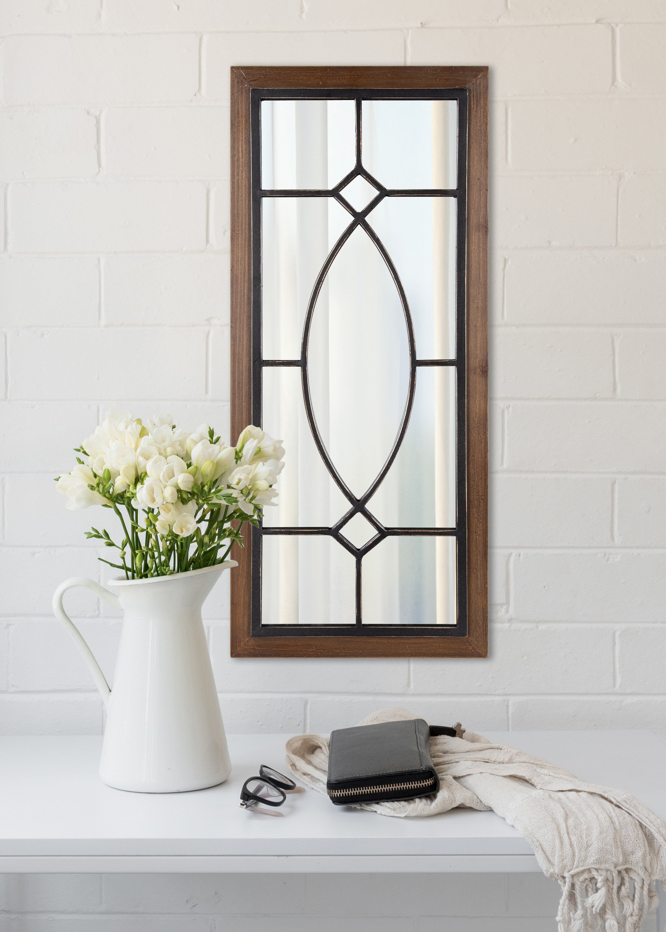 Light up your space with a piece of home decor that reflects traditional farmhouse charm. The Bakersfield mirror takes inspiration from vintage farmhouse windows with a beautiful geometric overlay that incorporates a natural iron finish and curved lines. It's fantastic for making a space appear more dimensional while commanding a presence on any wall.