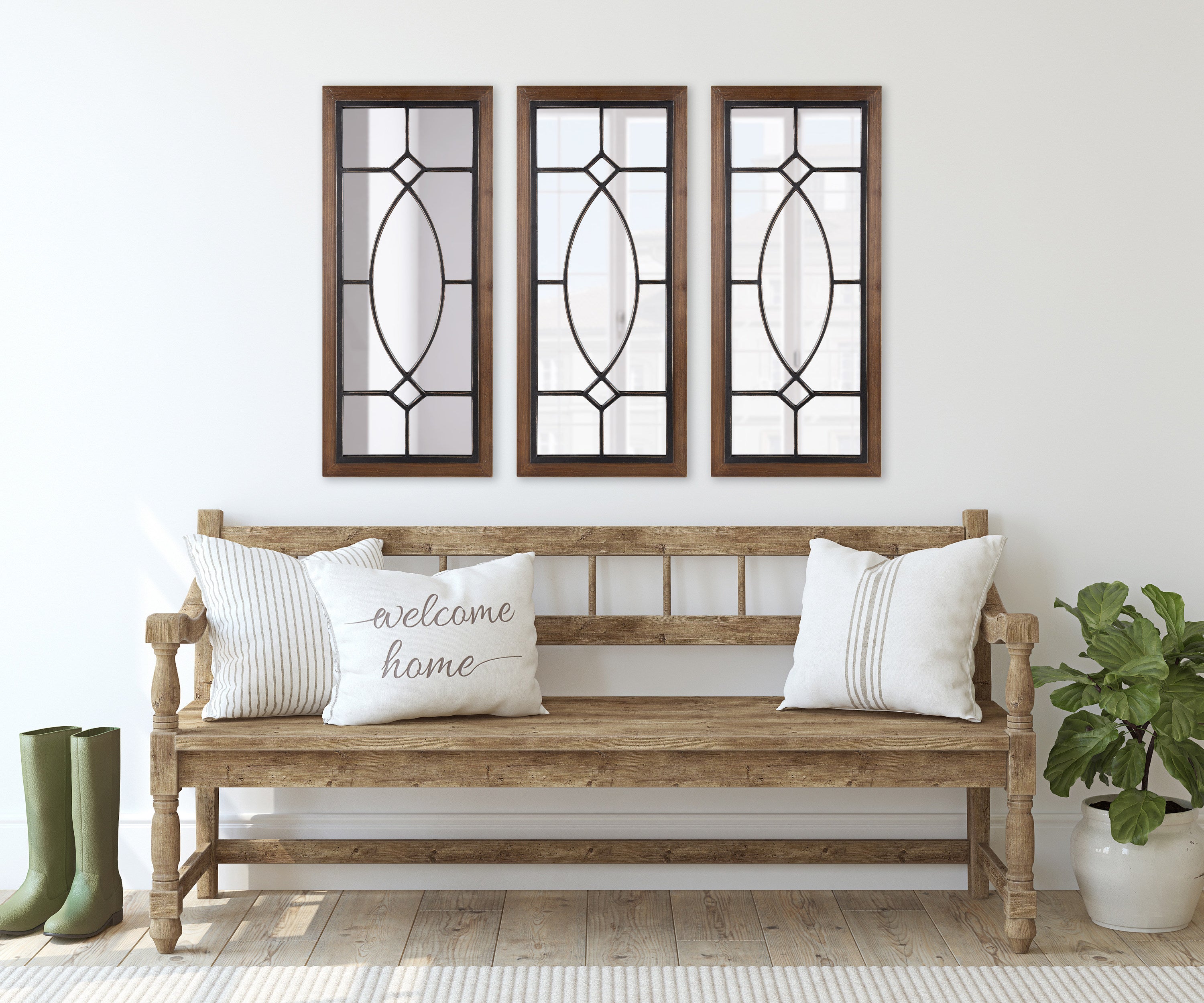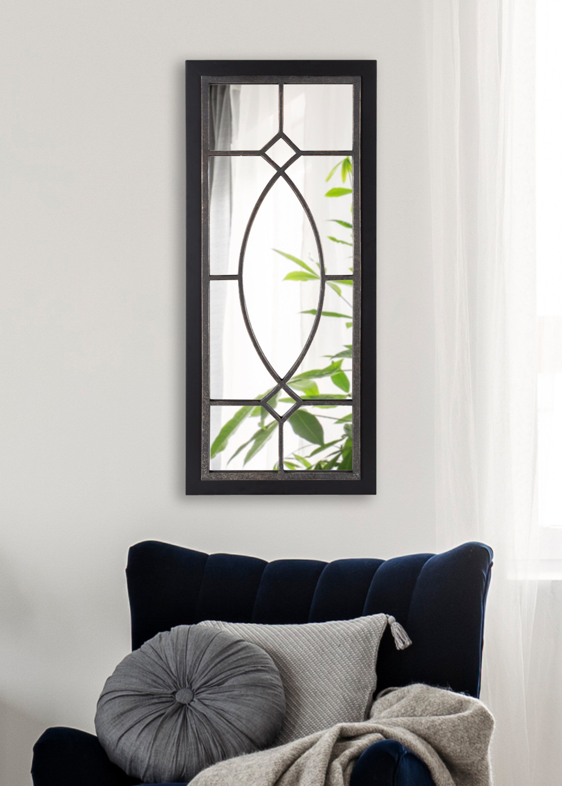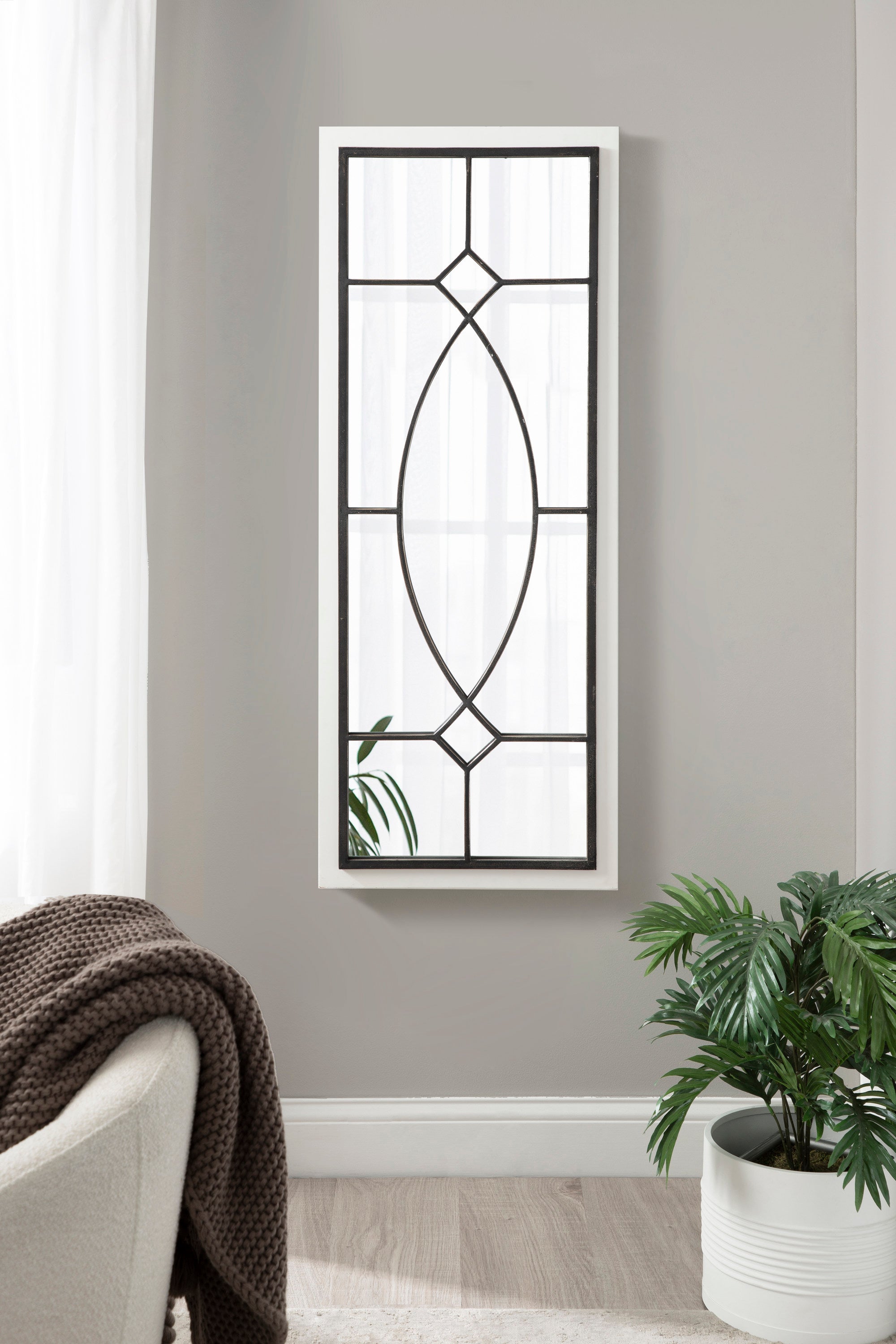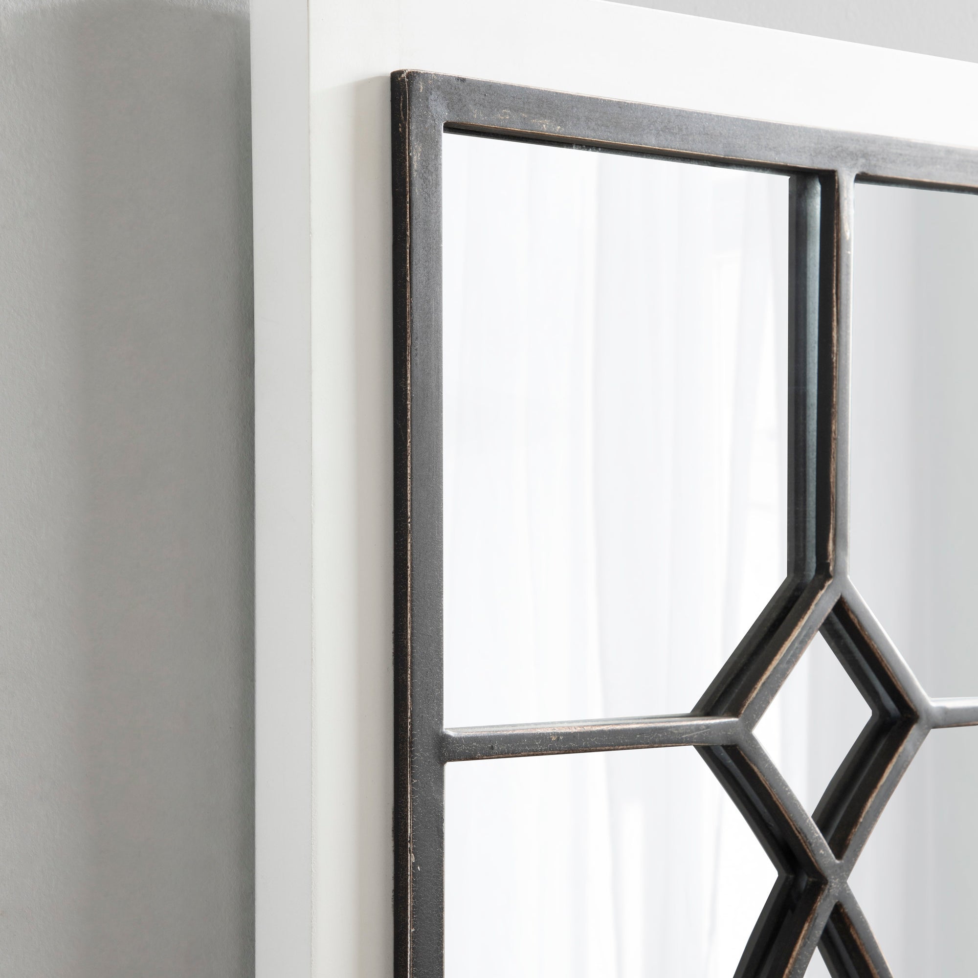 Light up your space with a piece of home decor that reflects traditional farmhouse charm. The Bakersfield mirror takes inspiration from vintage farmhouse windows with a beautiful geometric overlay that incorporates a natural iron finish and curved lines. It's fantastic for making a space appear more dimensional while commanding a presence on any wall.