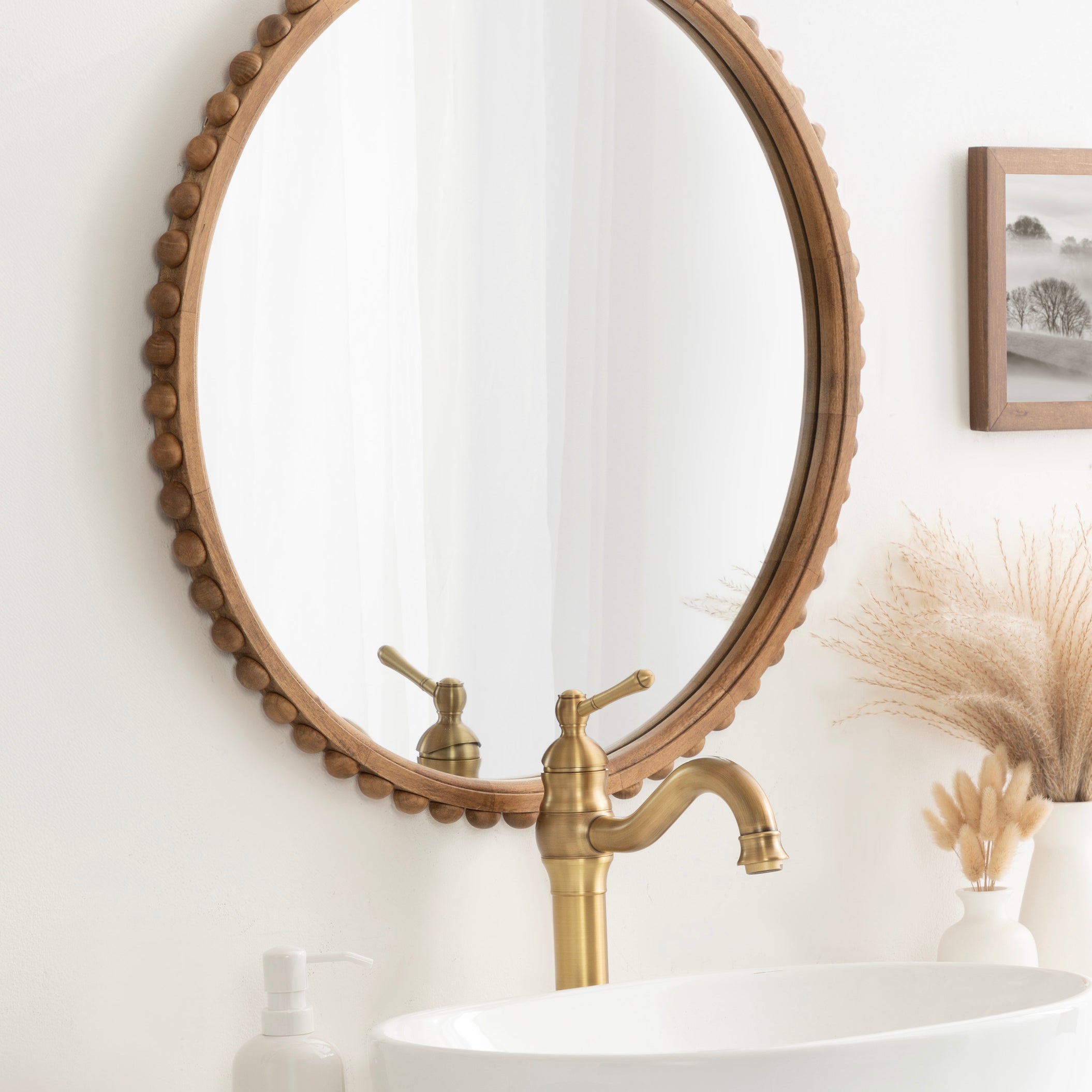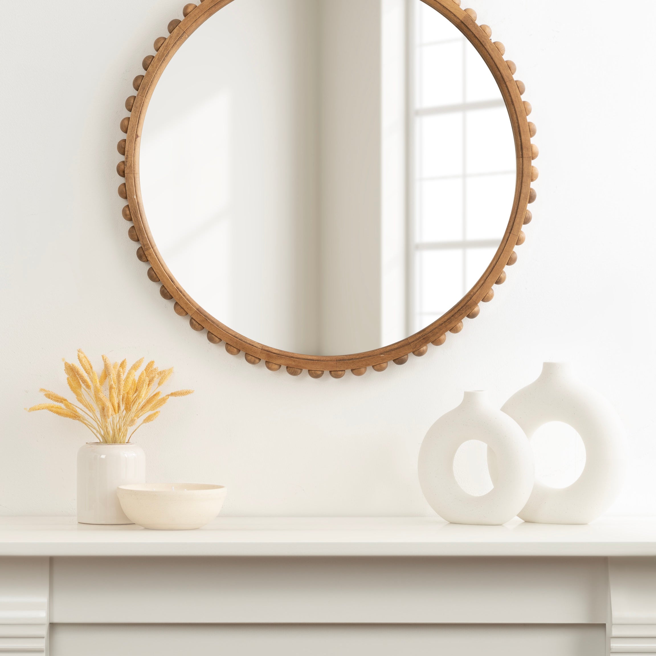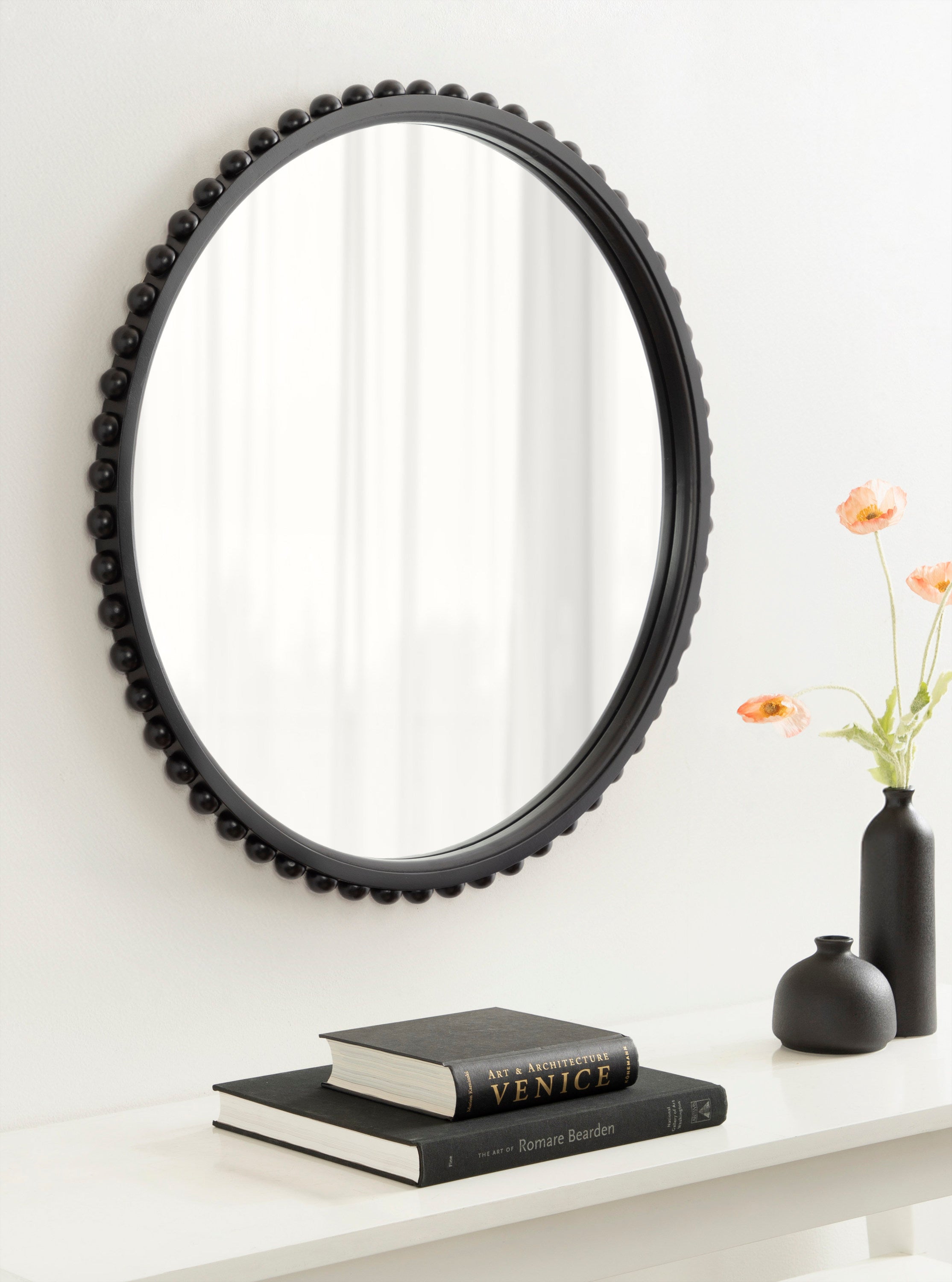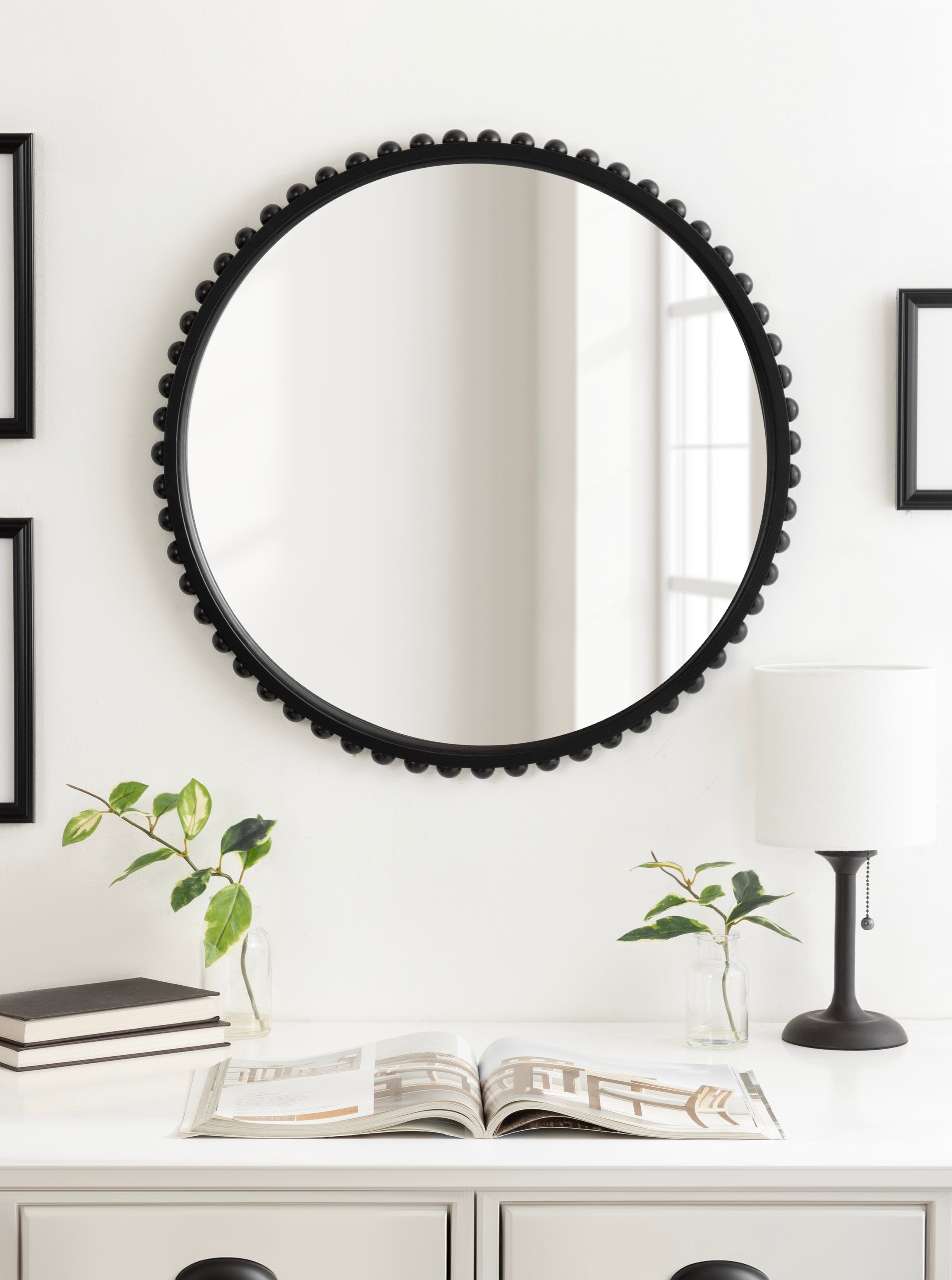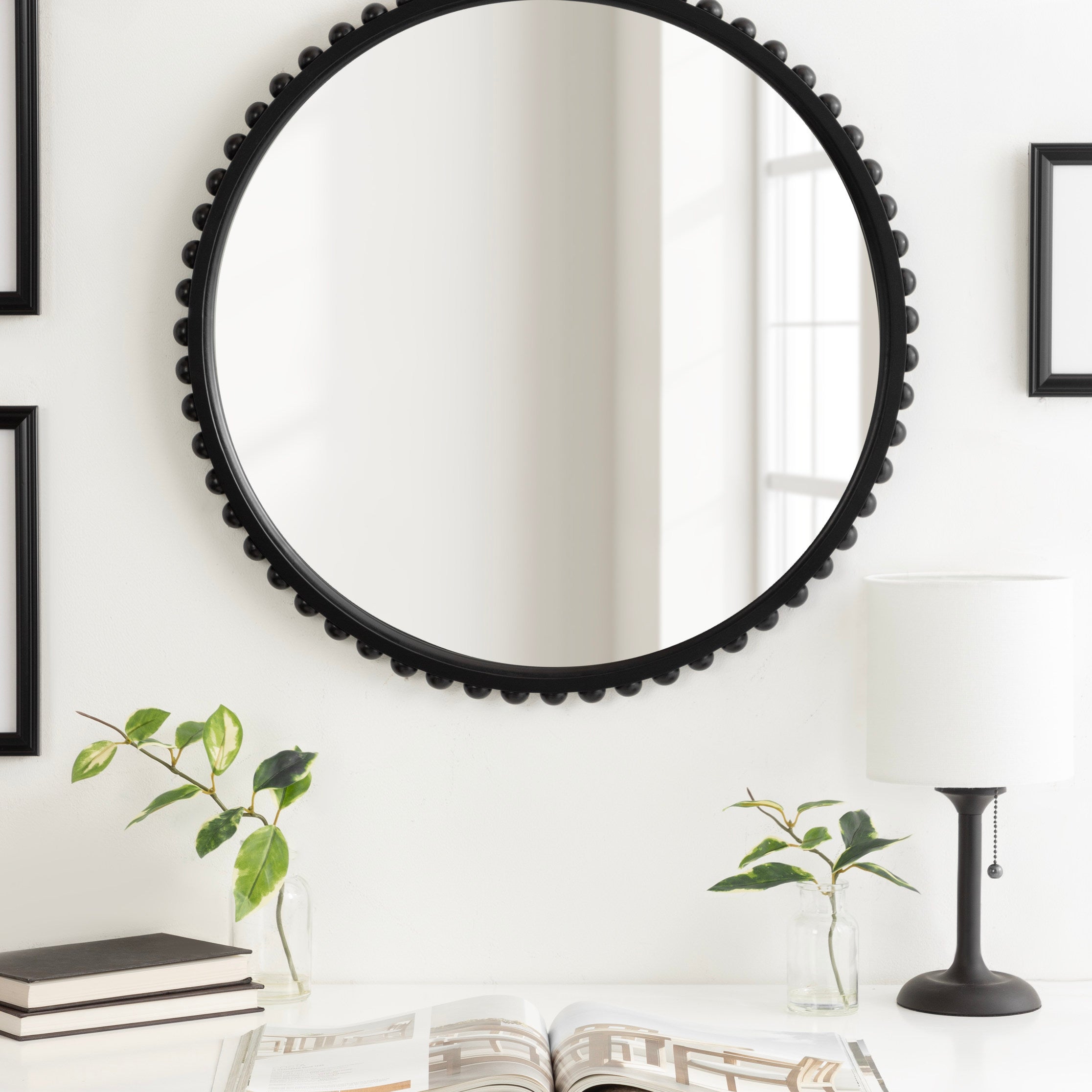 Create a vibrant and sophisticated wall display in your home with the Beadbrook mirror. Created for the modern designer, the unique mirror features a trendy yet simple round shape with an intricate beaded design on the frame that emanates a bold and contemporary style. Create a bold focal point with the Beadbrook with its versatile size, enhancing the dimension and vibrancy of your space by highlighting light sources and brightening darker corners. The Beadbrook's versatile surface area makes it an excellent vanity mirror in your powder room or master bathroom above an elegant sink. Hang the circle mirror in a matter of minutes by using the metal D-ring hangers attached to the back of the frame.