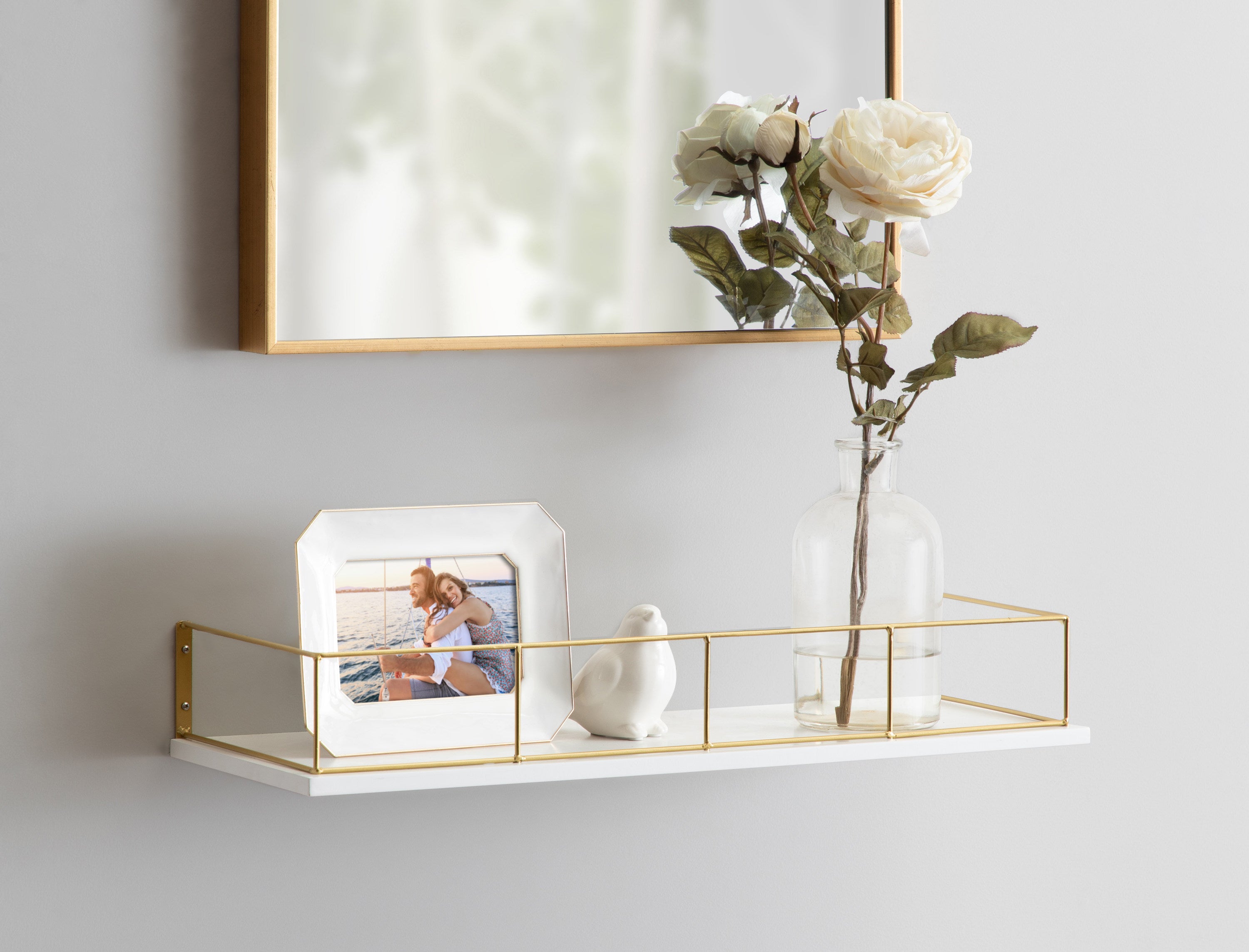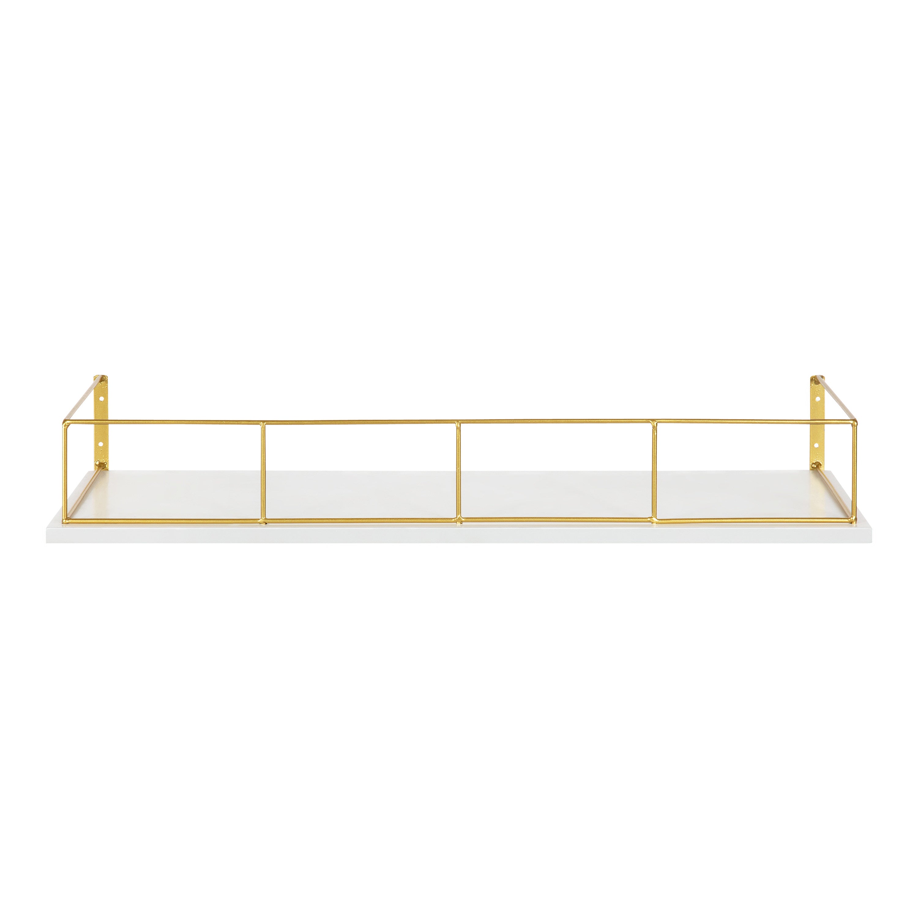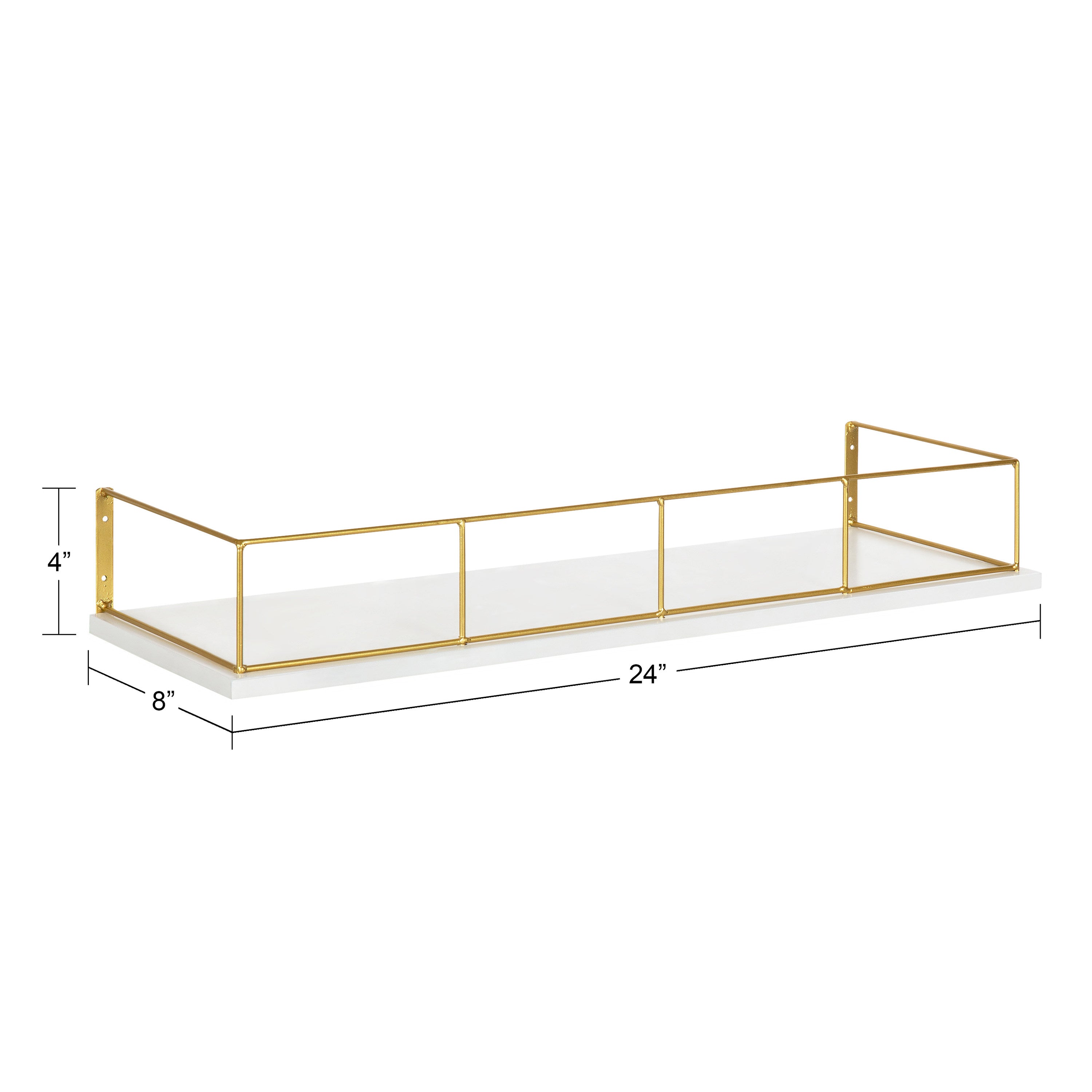 Add a chic storage area to your home with the modern glam-inspired Benbrook shelf. This ample-sized shelf is 24 inches wide by 8 inches deep, making it the perfect size for plants, kitschy keepsakes, or family photos. Mount this shelf in only a matter of seconds with pre-drilled holes within the gold metal frame.