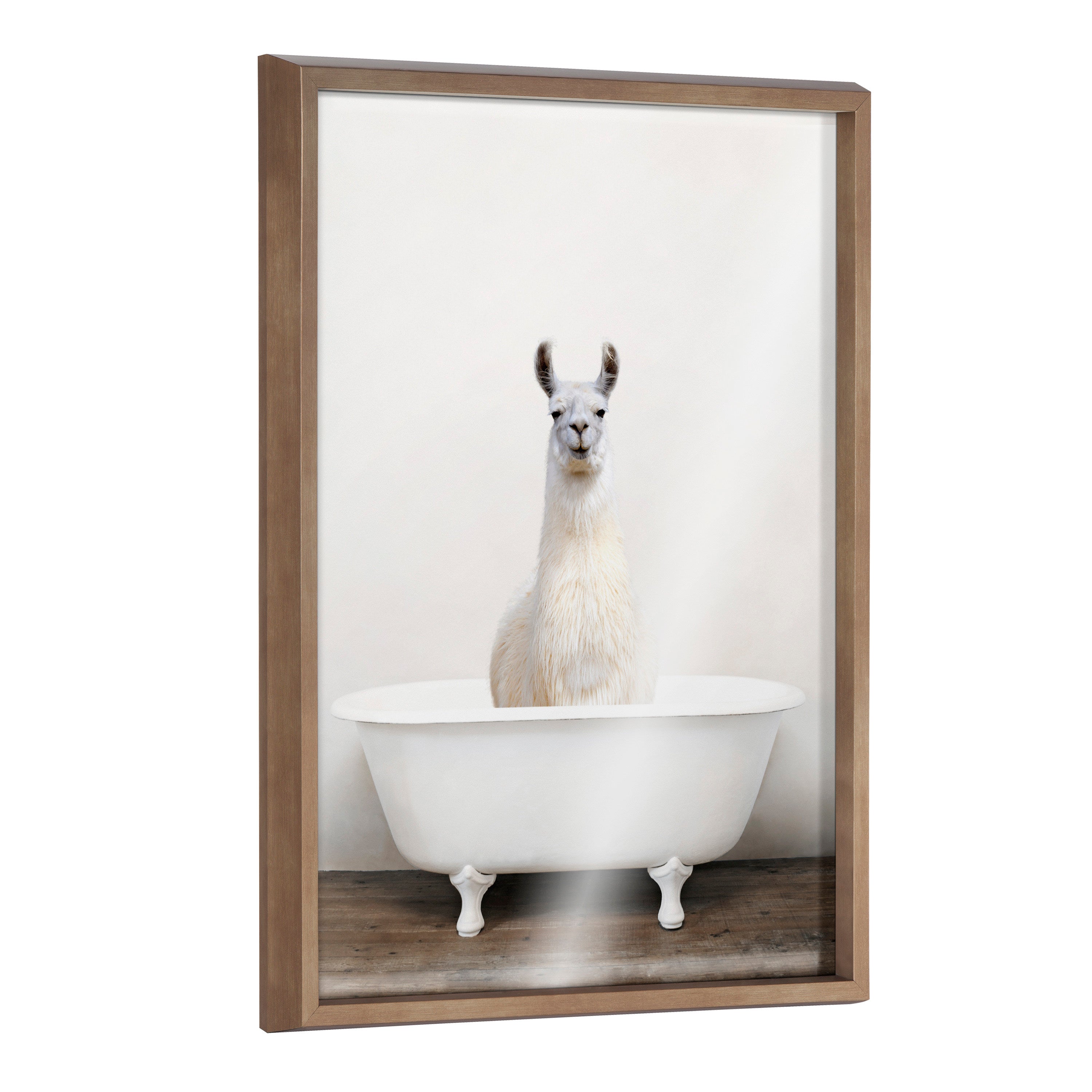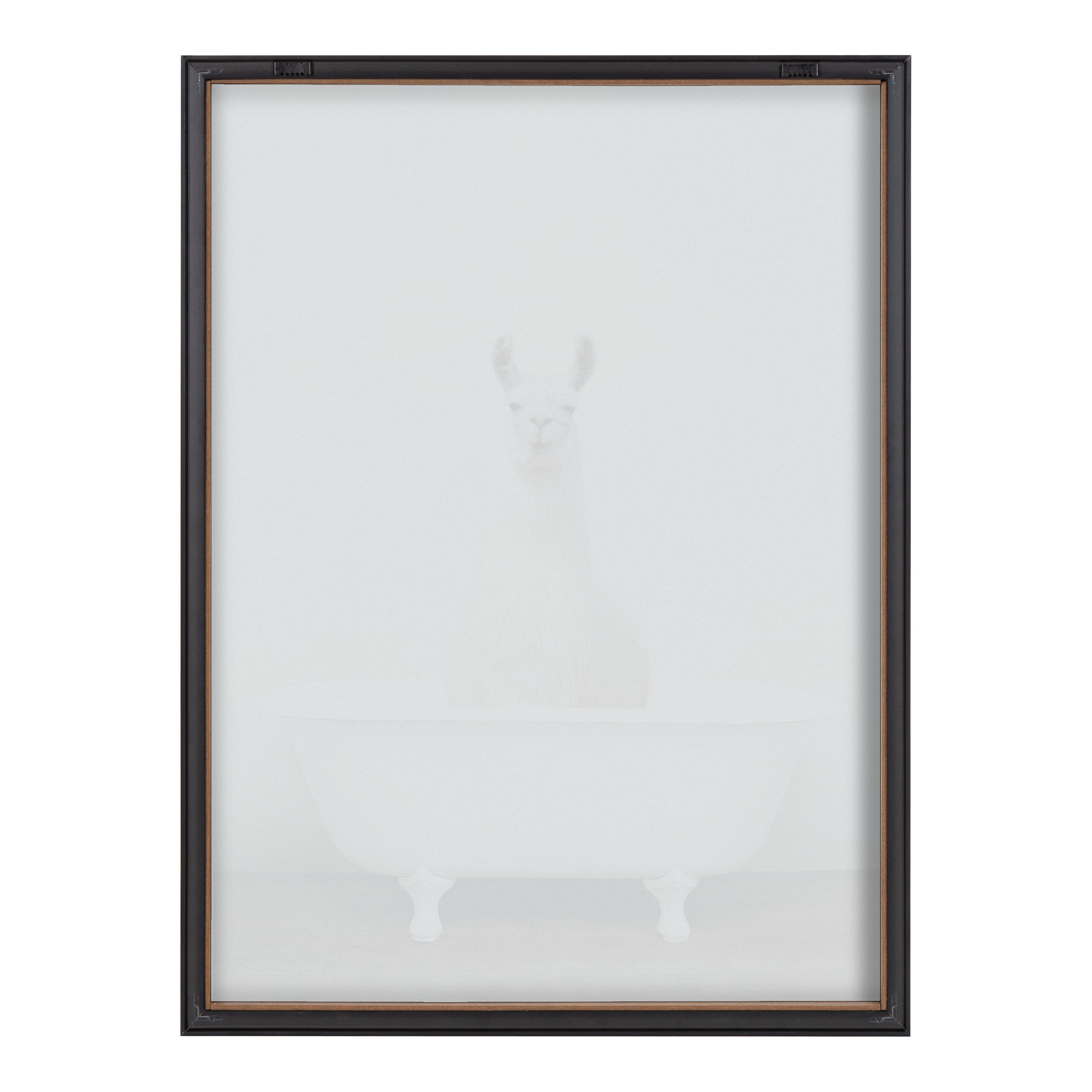 Bring whimsy and silliness to your home with this adorable alpaca art! Printed and framed in the USA in Waunakee, Wisconsin, this framed alpaca in a bathtub glass art will be a pleasure to look at every day in your living room, bedroom, office, or any room in the home. This art print also makes an excellent gift for birthdays, holidays, or house-warming parties. Printed on glass and framed with a lightweight polystyrene frame, this wall art has two hangers already attached to the back for easy wall display.