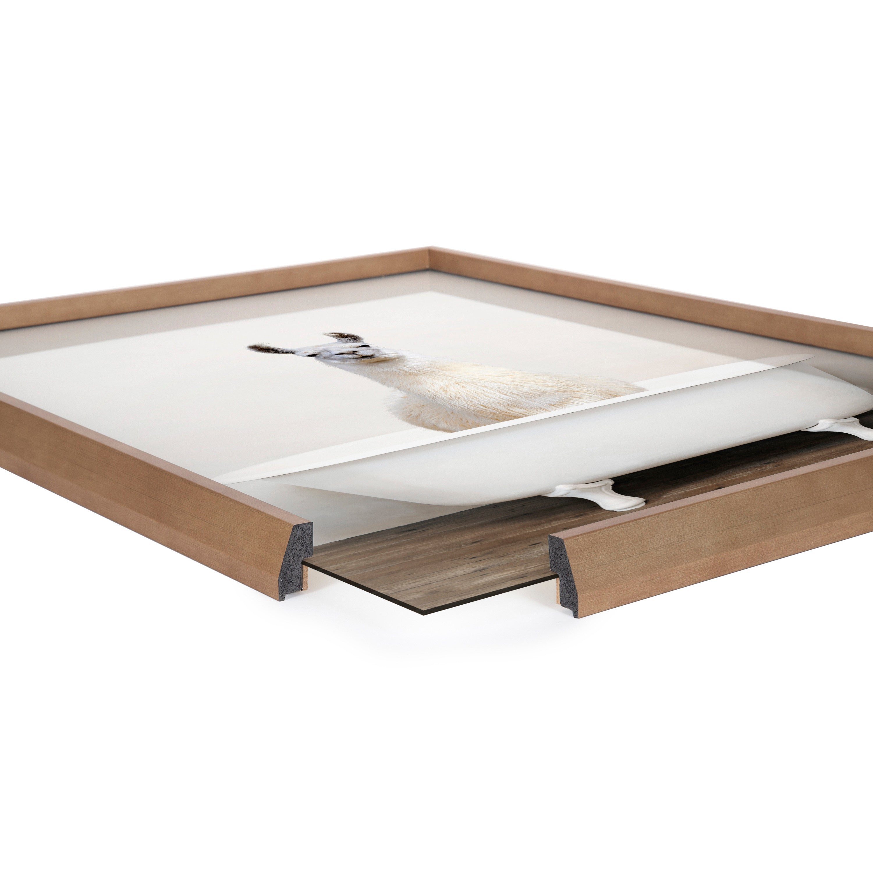 Blake Alpaca in the Tub Color Framed Printed Glass by Amy Peterson Art Studio