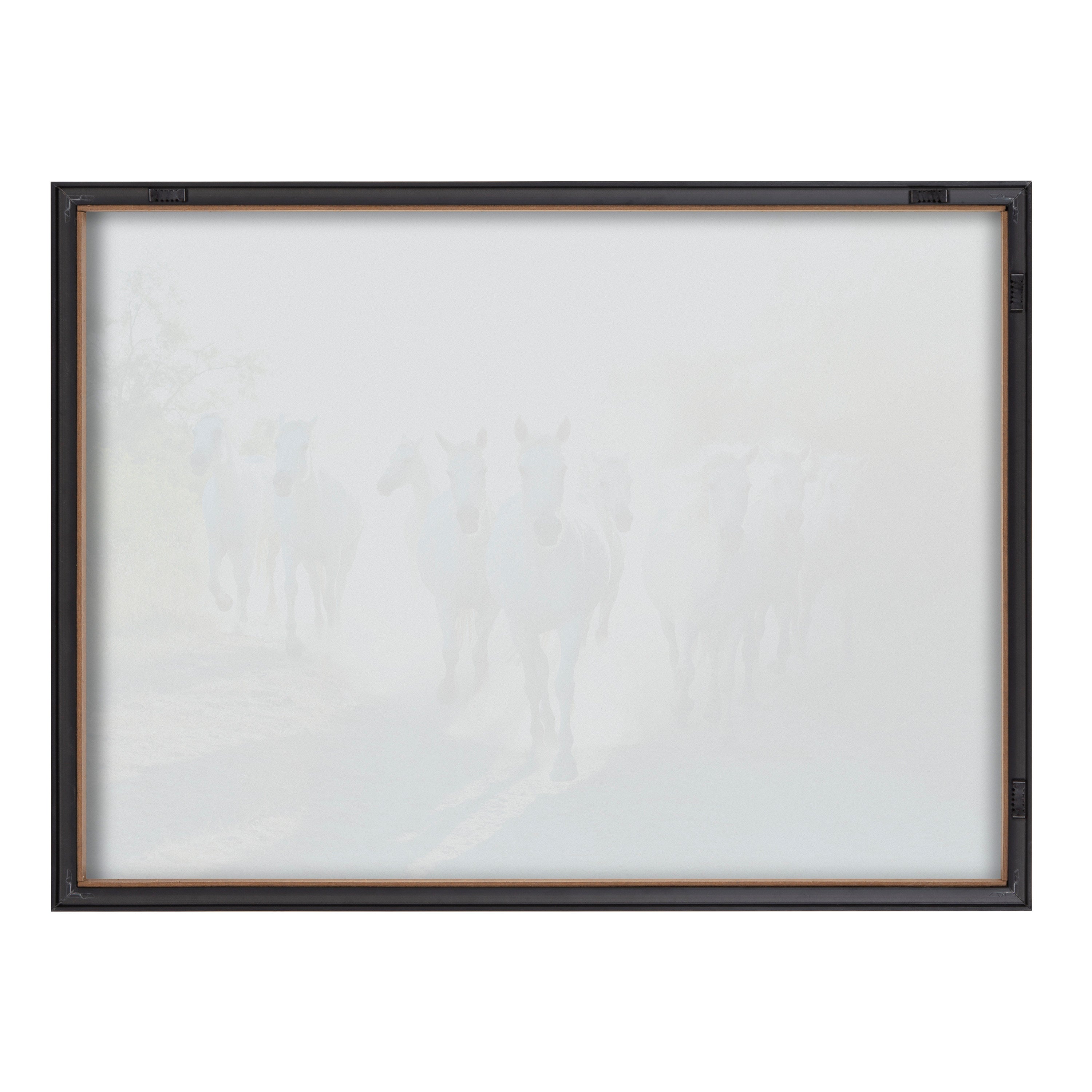 Run free and wild with these majestic horses in this decorative, animal-themed art print. Printed and framed in the USA in Waunakee, Wisconsin, this framed glass art will be a pleasure to look at every day in your living room, bedroom, office, or any room in the home. This art print also makes an excellent gift for birthdays, holidays, or house-warming parties. Printed on glass and framed with a lightweight polystyrene frame, this wall art has two hangers already attached to the back for easy wall display.