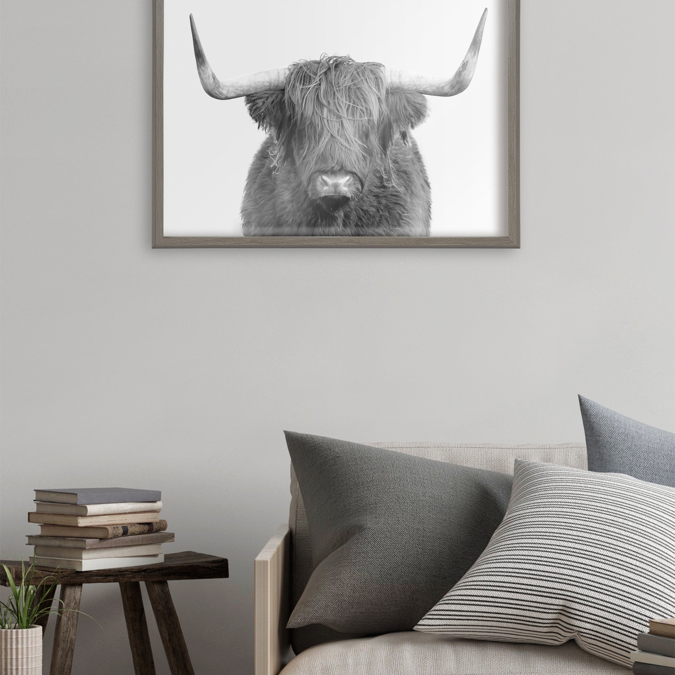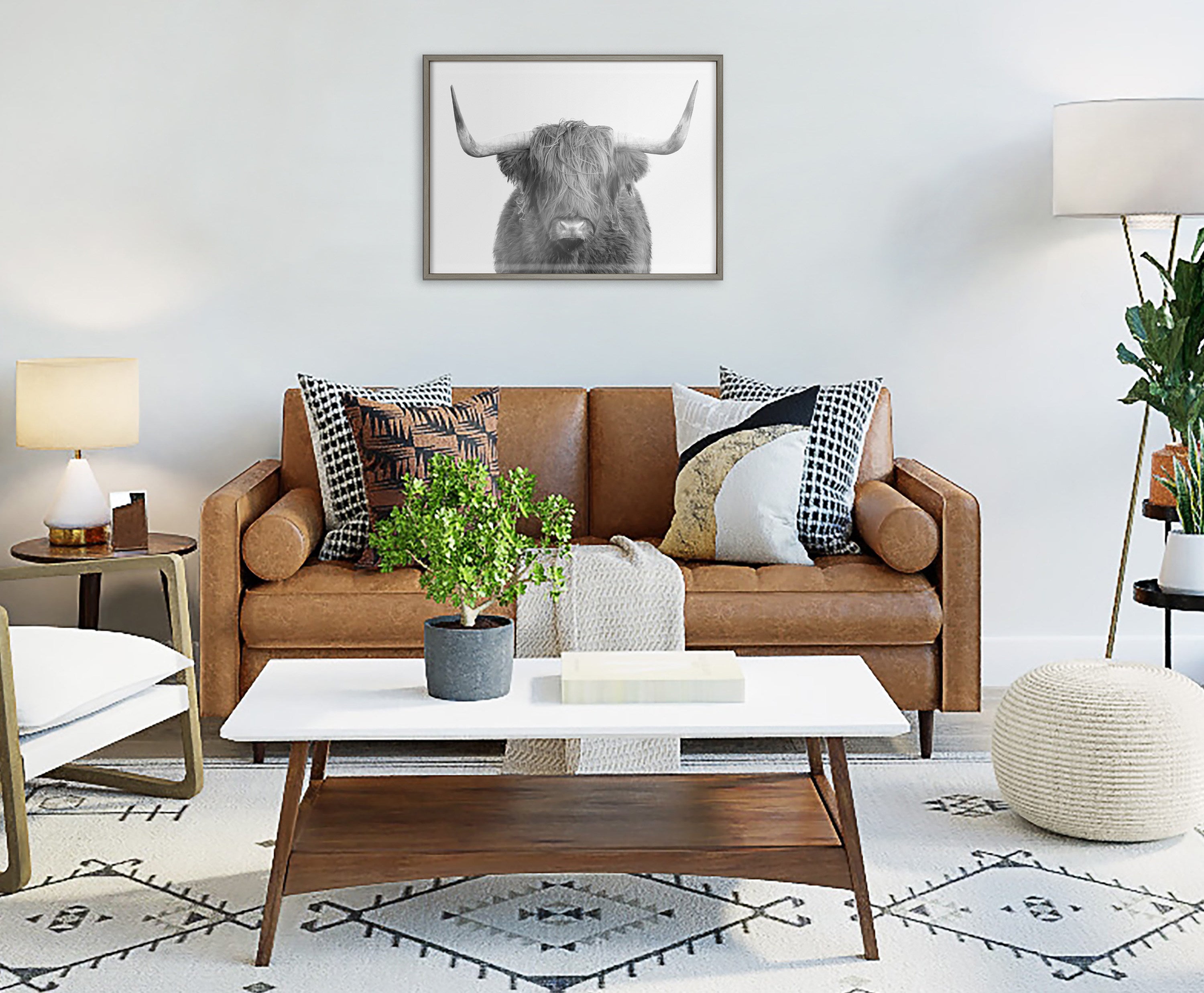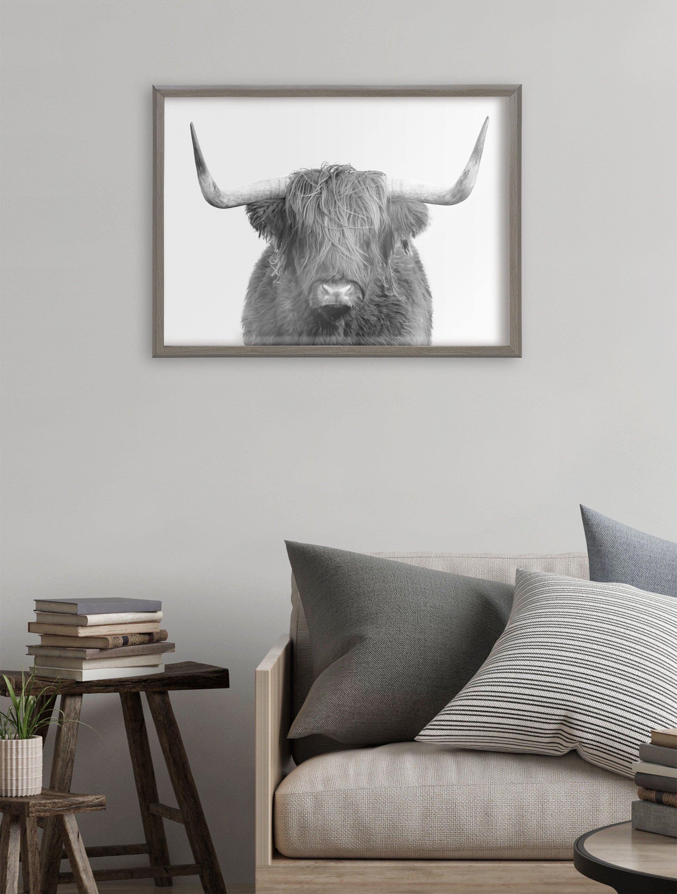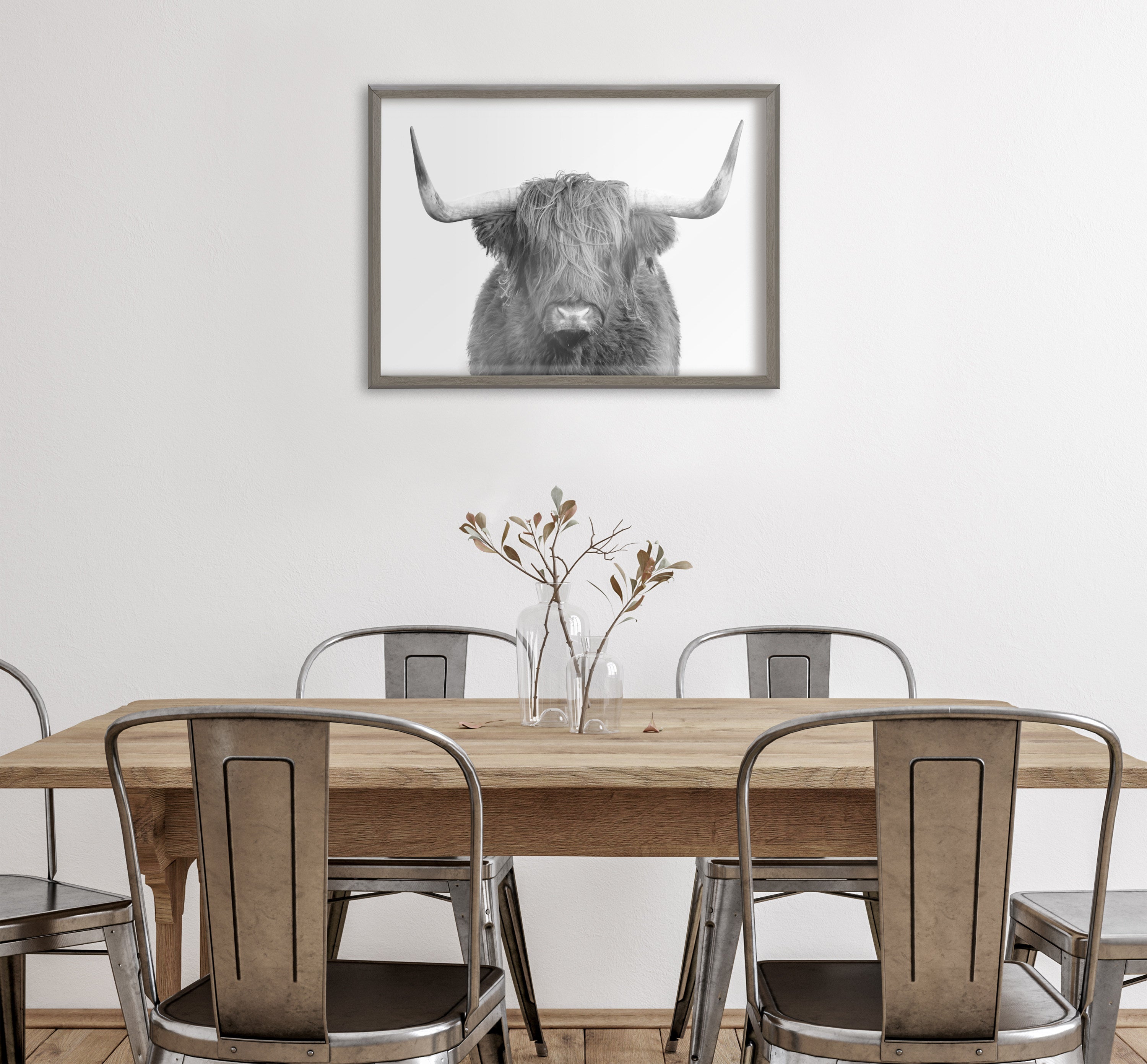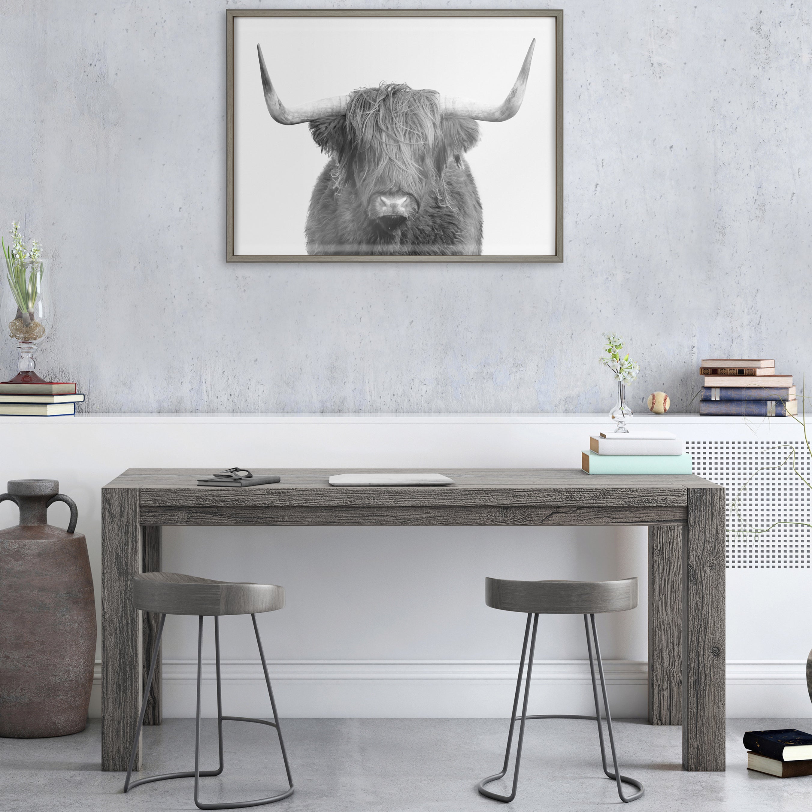 This lovely highland cow portrait print is a fantastic way to introduce some rustic character to your home. Printed and framed in the USA in Waunakee, Wisconsin, this framed art will be a pleasure to look at every day in your living room, bedroom, office, or any room in the home. This art print also makes an excellent gift for birthdays, holidays, or house-warming parties. Printed on a premium solid surface and framed with a lightweight polystyrene frame, this wall art is easy to display on the wall.