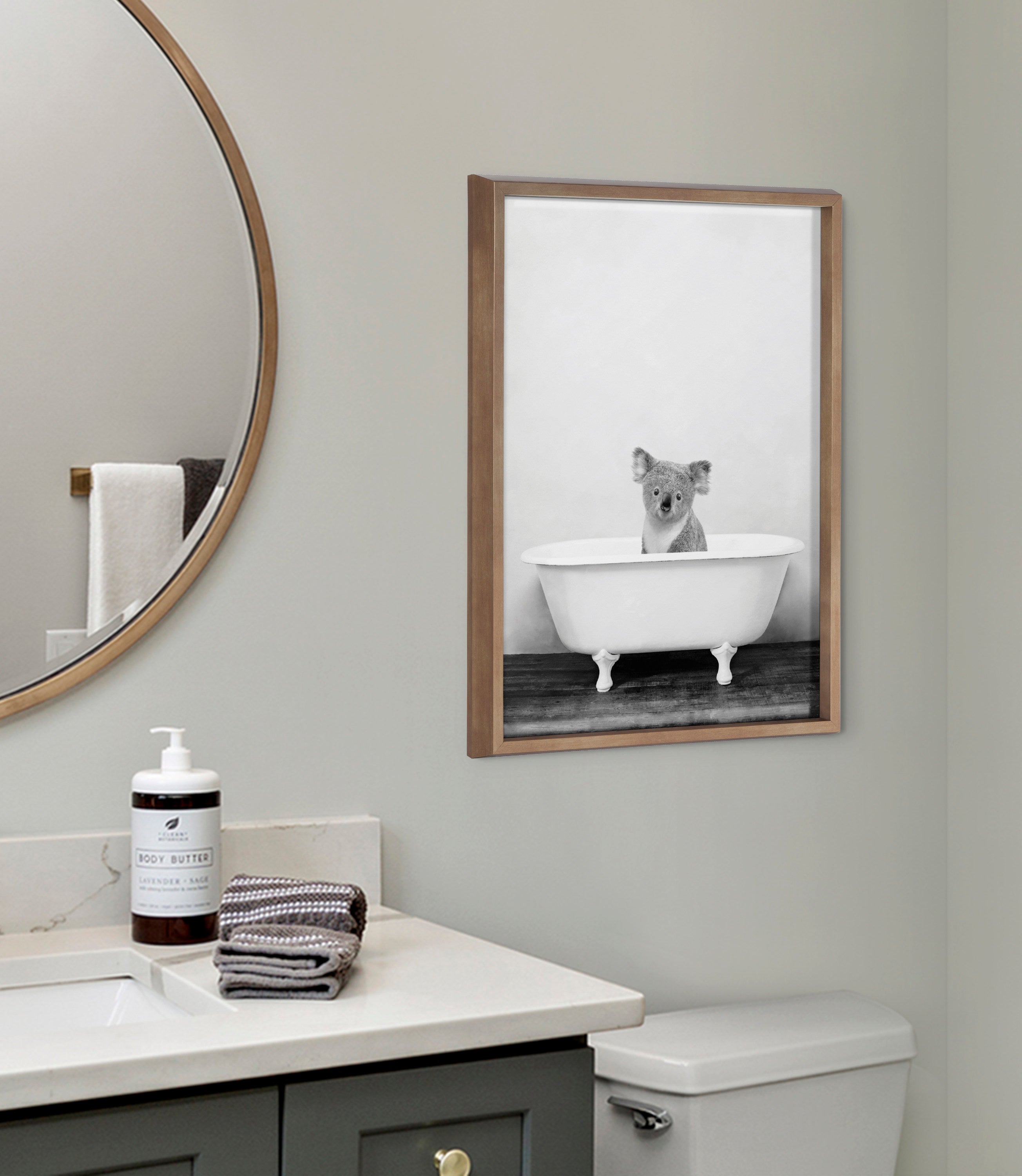- Print "Koala in Bathtub Black and White" ©2022 Amy Peterson Art Studio