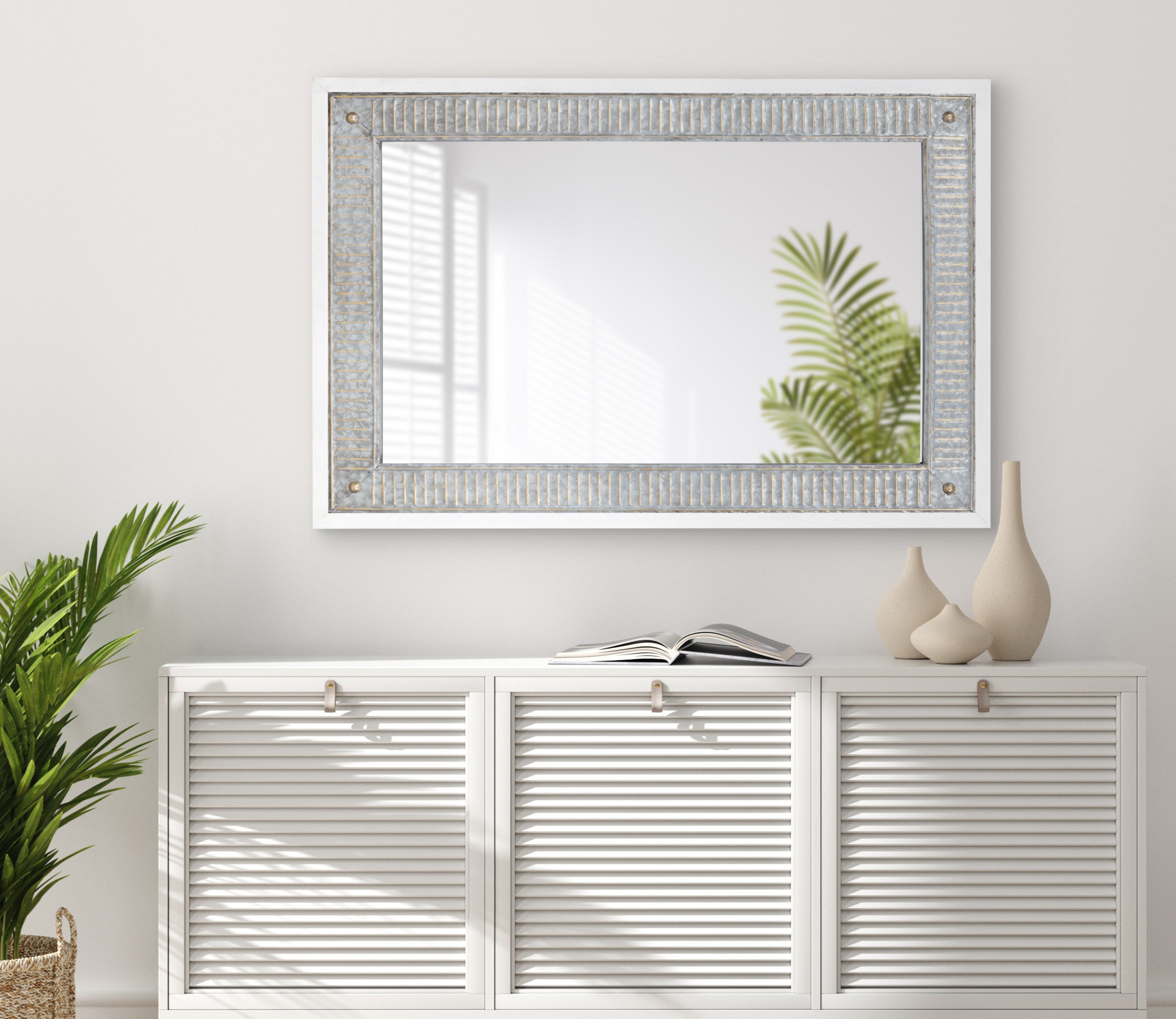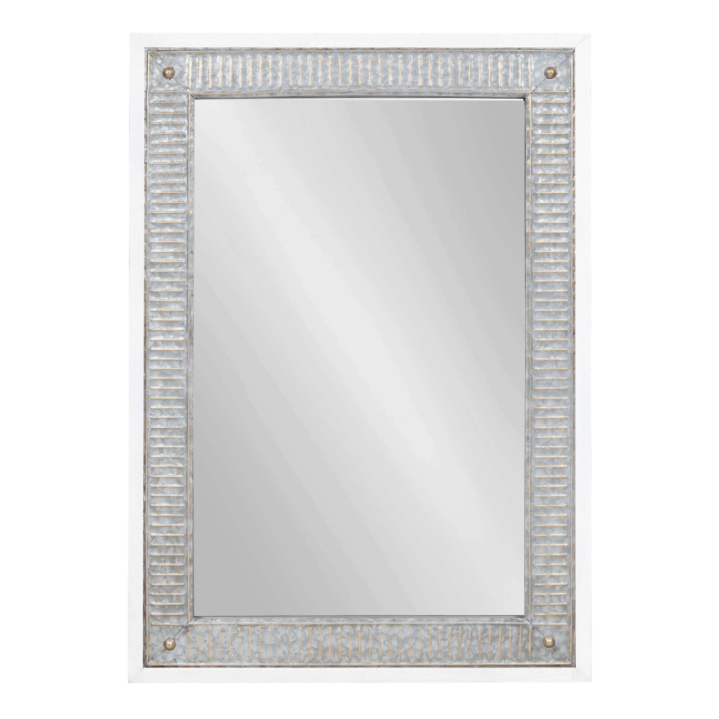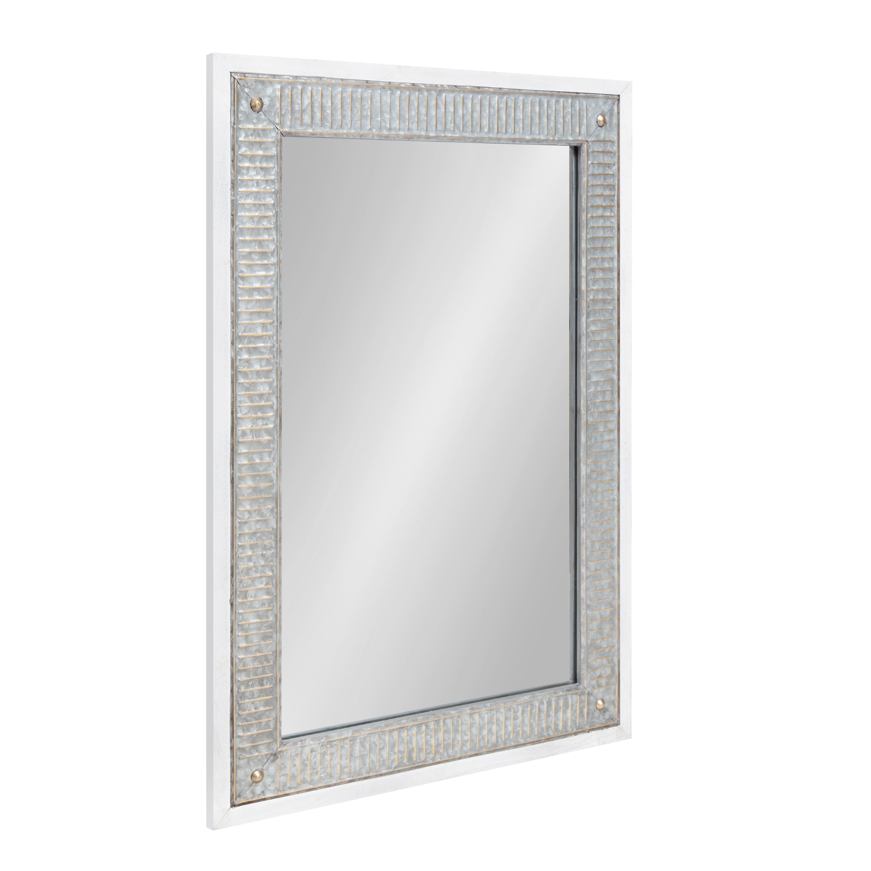 The charming Deely wall mirror is a fantastic way to bring a rustic aesthetic to your home. Inspired by vintage farmhouses, the Deely features a wooden frame with a lovely white finish. Its signature look is amplified by its vintage interior frame, composed of a rustic galvanized metal. This sophisticated wall accent is perfect for delivering the quality craftsmanship of antiquity without the hassle of doing a flea market flip. Use the sophisticated look of the Deely mirror as a way to add dimension and light to your living room, bathroom, entryway, or bedroom. It hangs both vertically and horizontally, giving you an eye-catching statement that's not only beautiful but versatile.