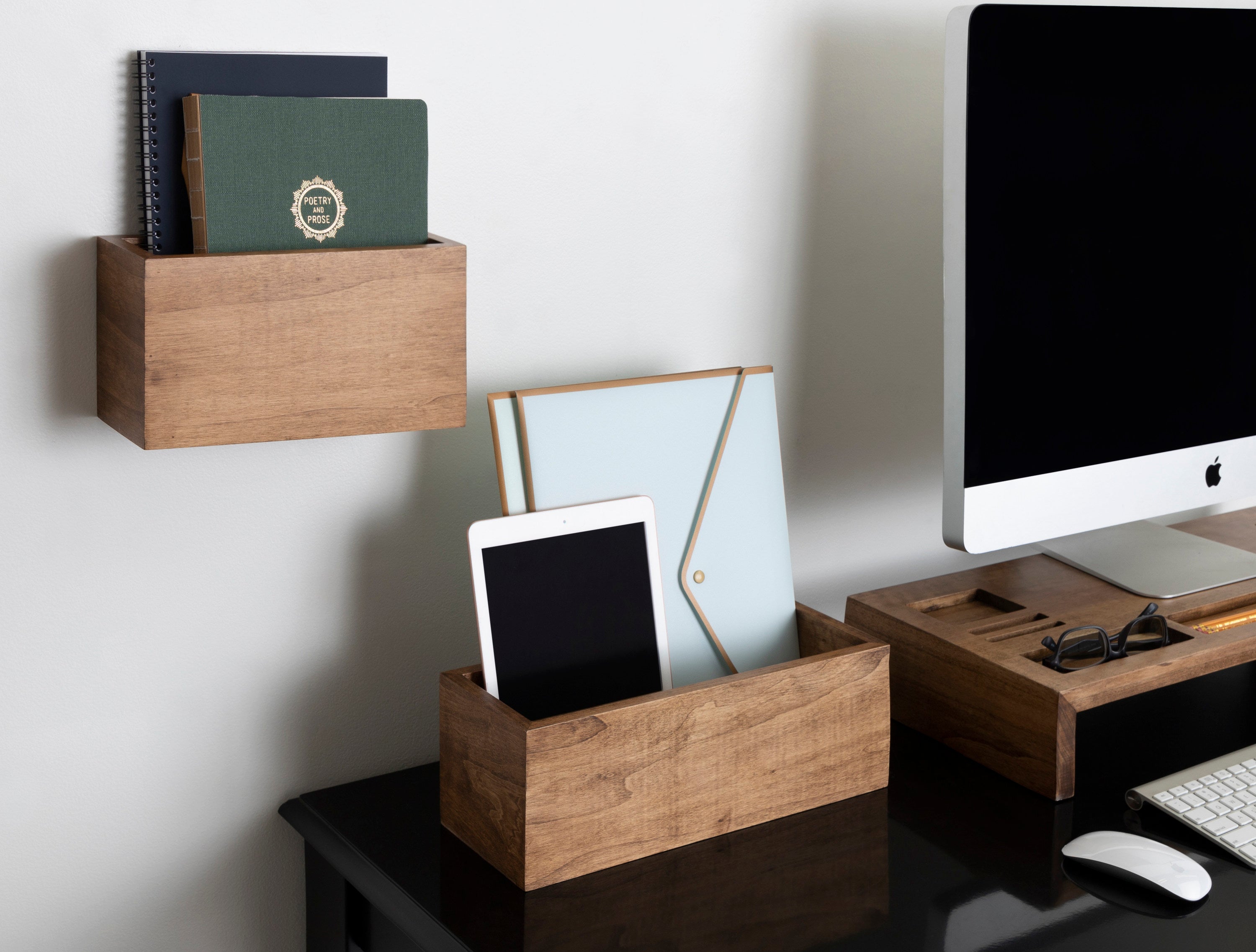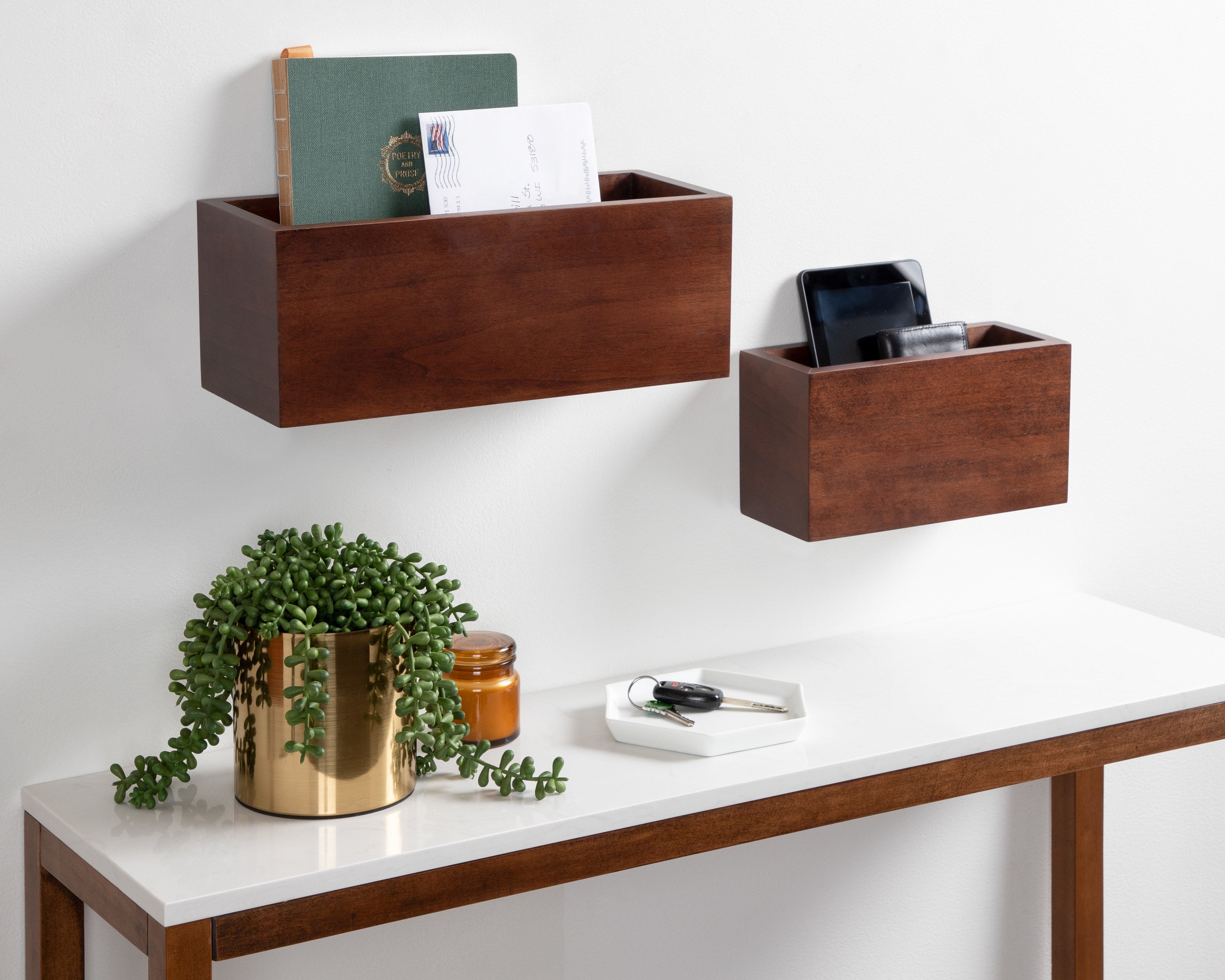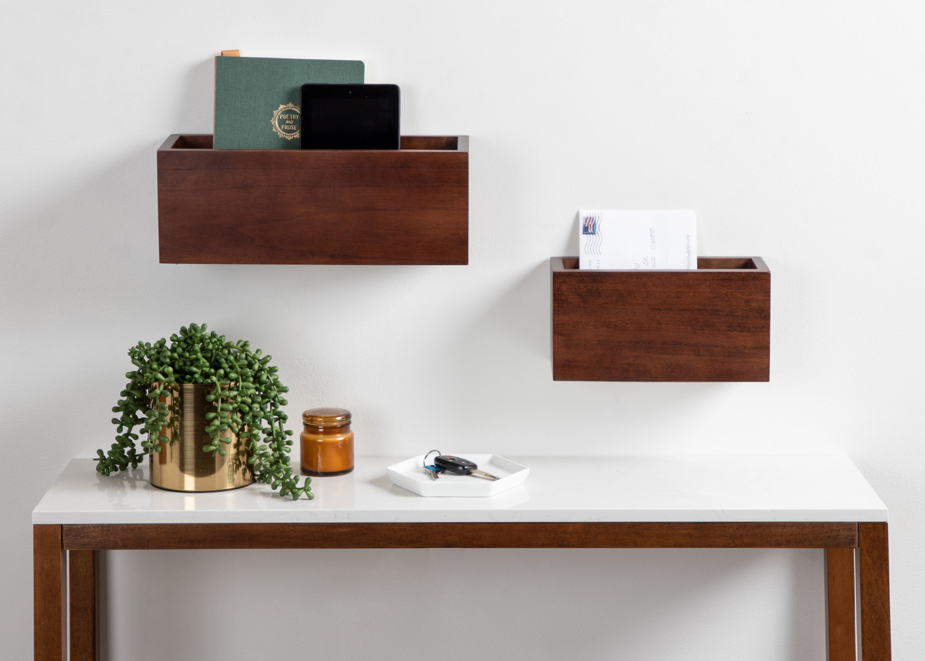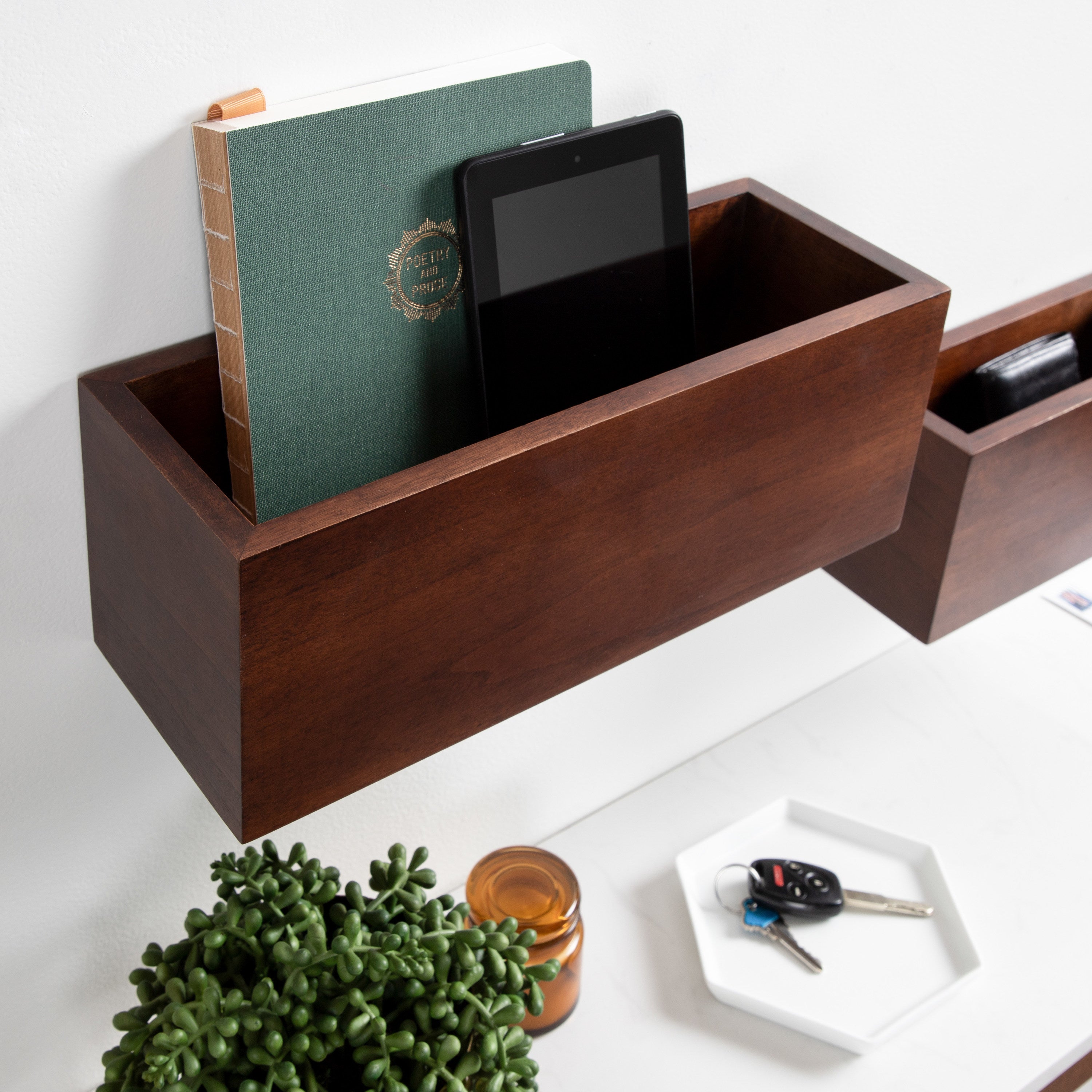 Get your home up and running with this set of wood pocket organizers! The Domio set of wall organizers is perfect for notebooks, file folders, and tech devices in each of their large storage interiors. Its mid-century look and clean lines are perfect for creating an understated decorative statement.