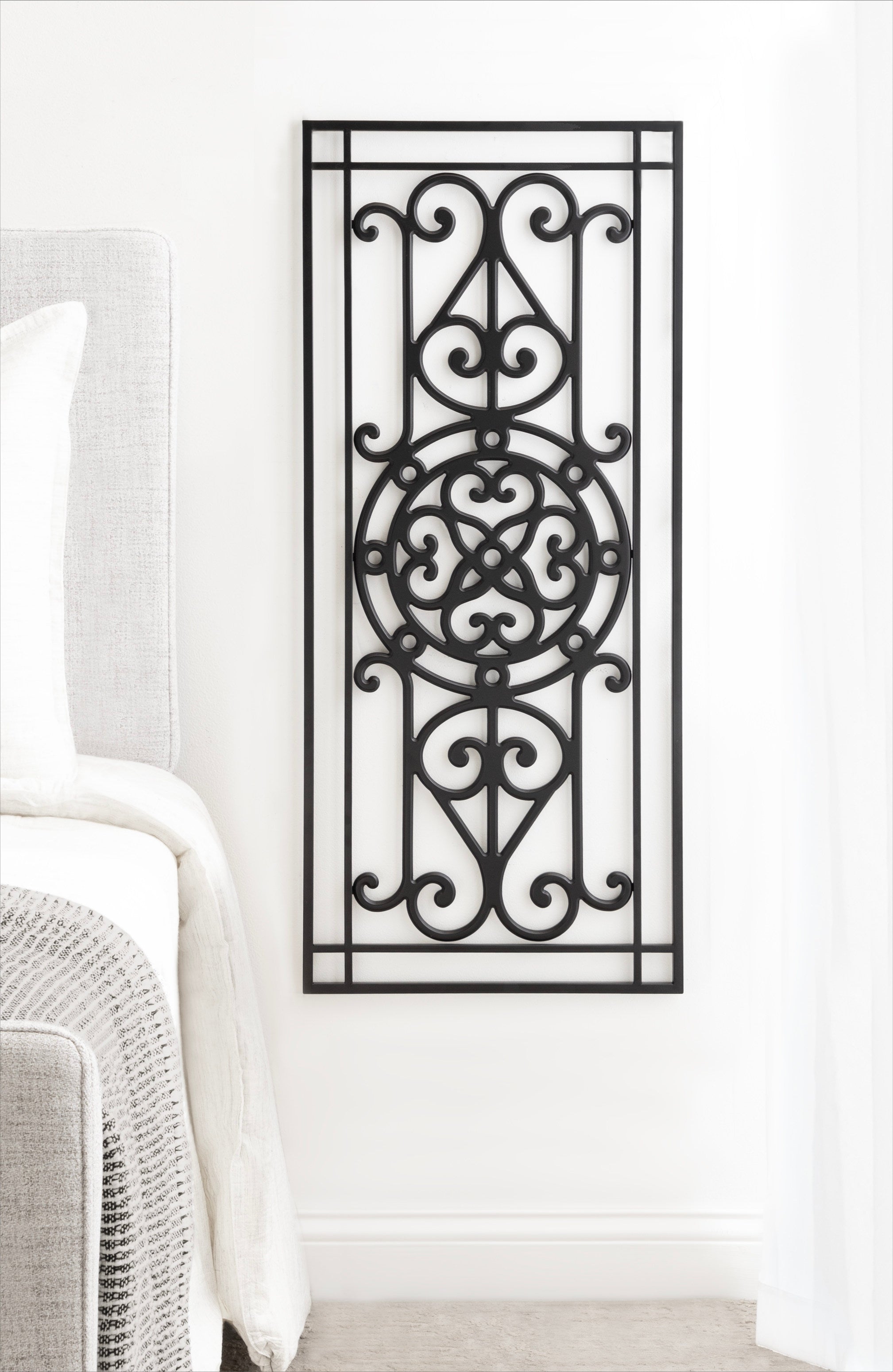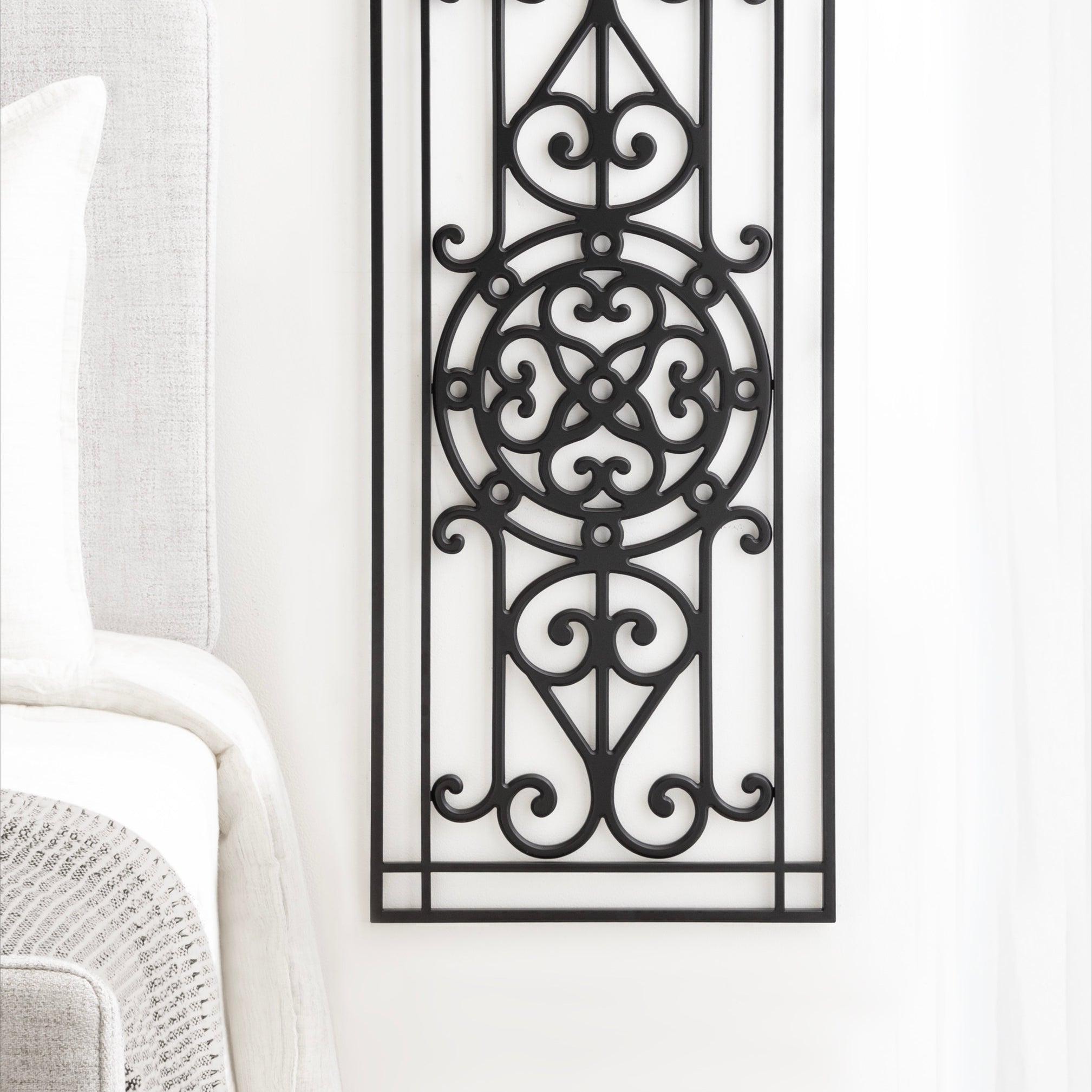 This stunning wall art plaque features an ornate scrollwork design with a painted black frame and detailing. The decorative metal-framed panel wall art is designed with a traditional farmhouse style, blending vintage and rustic elements for a unique and eye-catching look. The wooden scrollwork creates a dimensional effect, adding depth and visual interest to the piece. Crafted with quality in mind, this wall art plaque is made with durable materials that are built to last. Easy to hang, this wall art plaque comes with pre-installed keyhole hangers, allowing you to securely mount it on your wall either vertically or horizontally with minimal effort. It's a great addition to your living room, bedroom, dining room, or any other space that needs a touch of botanical beauty.