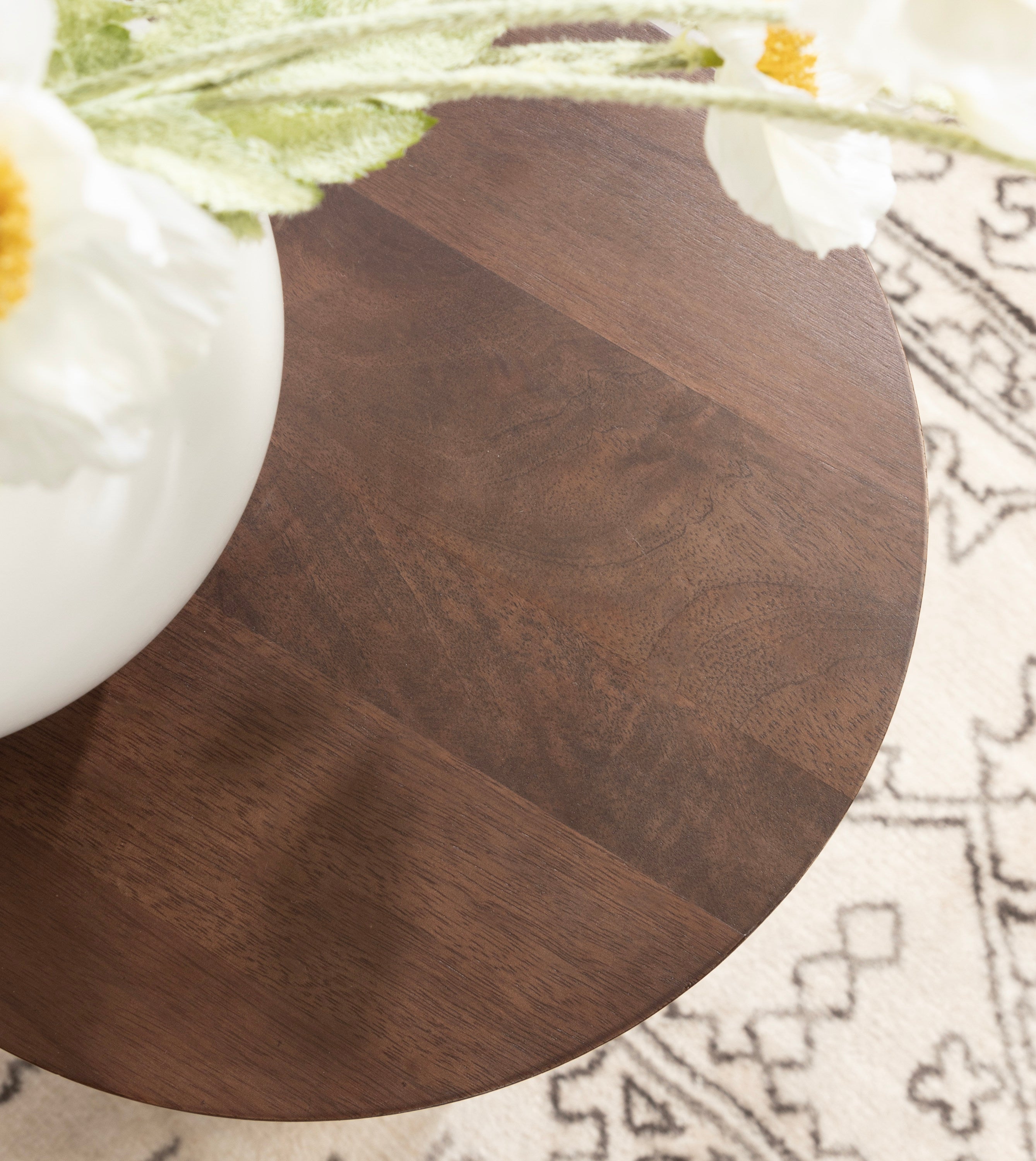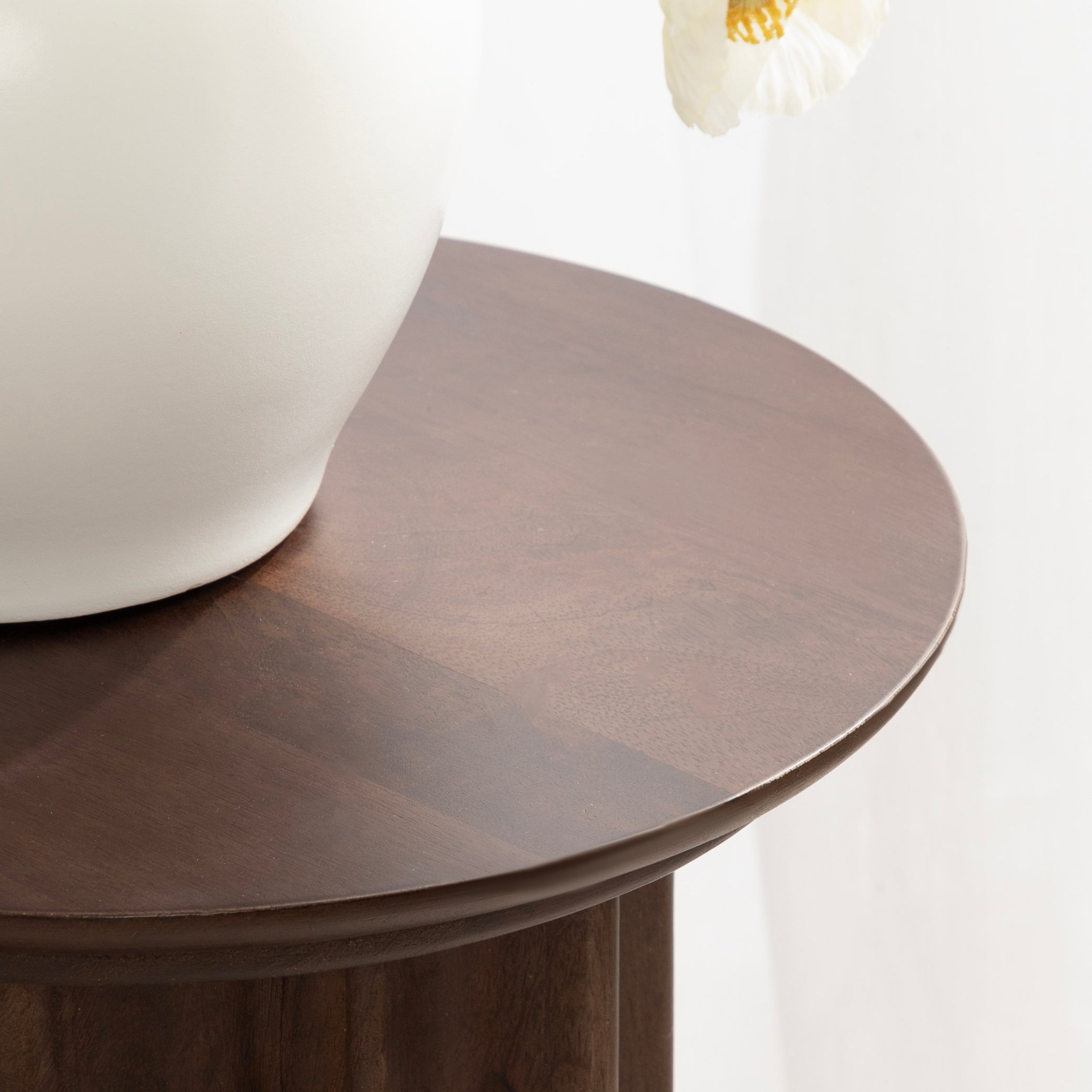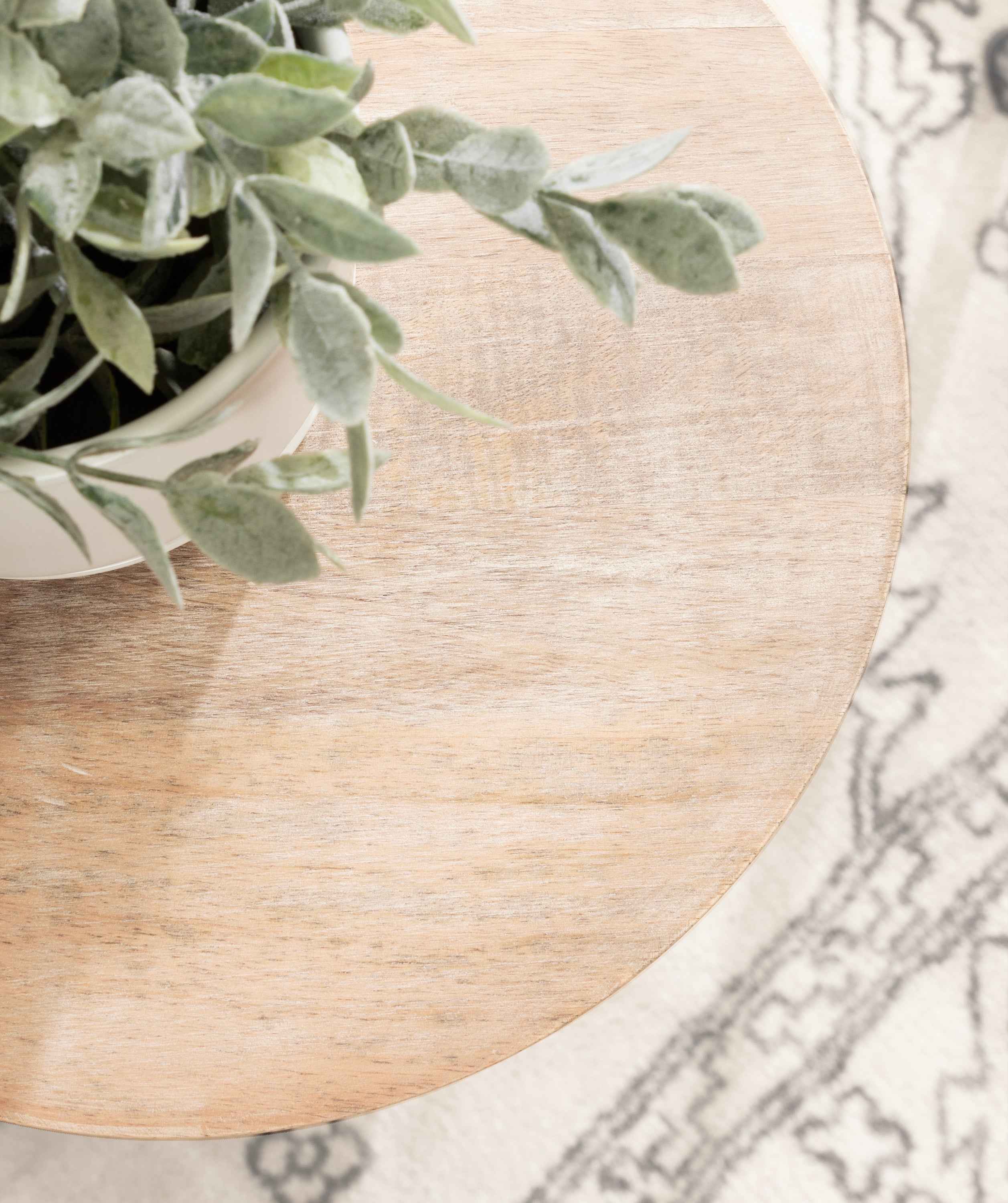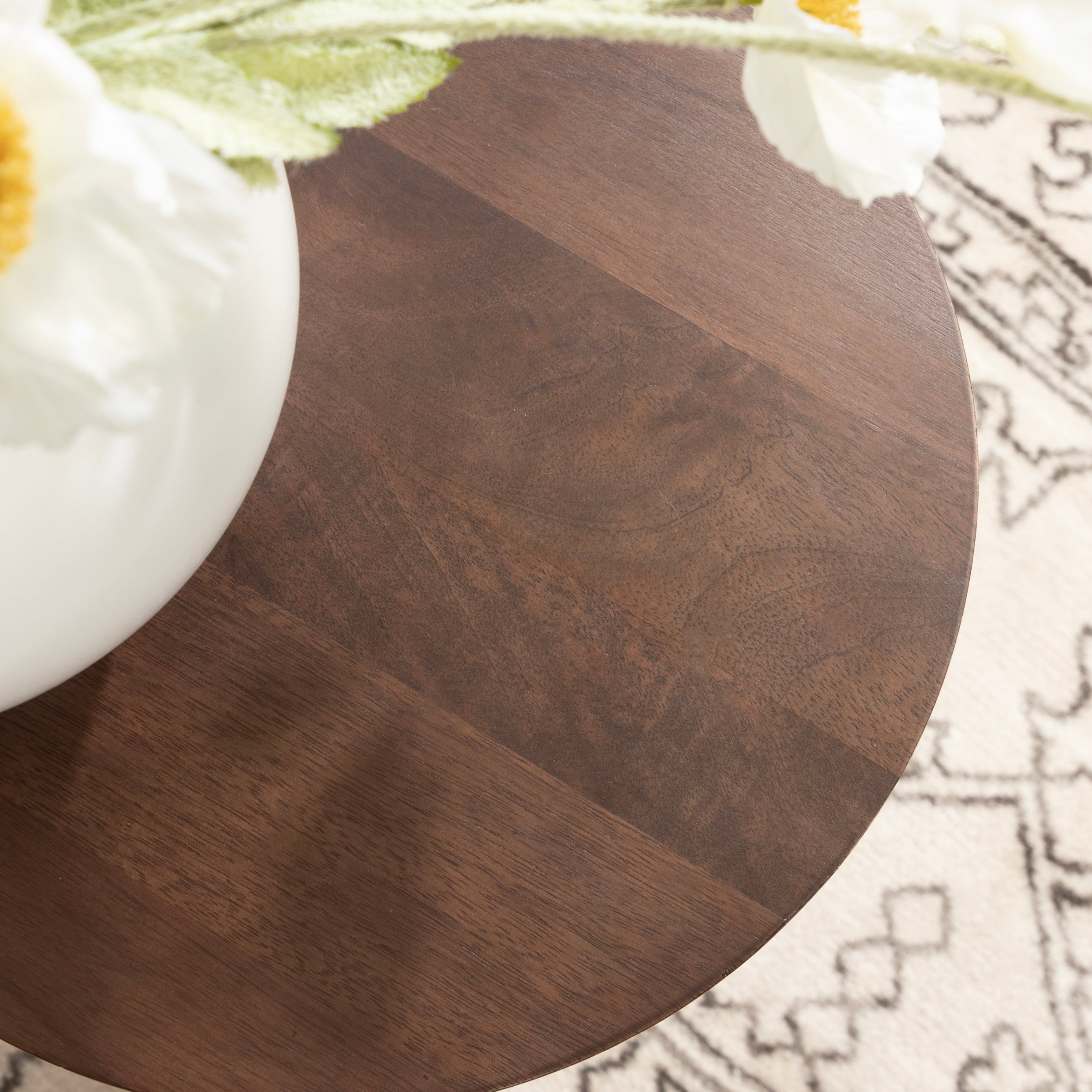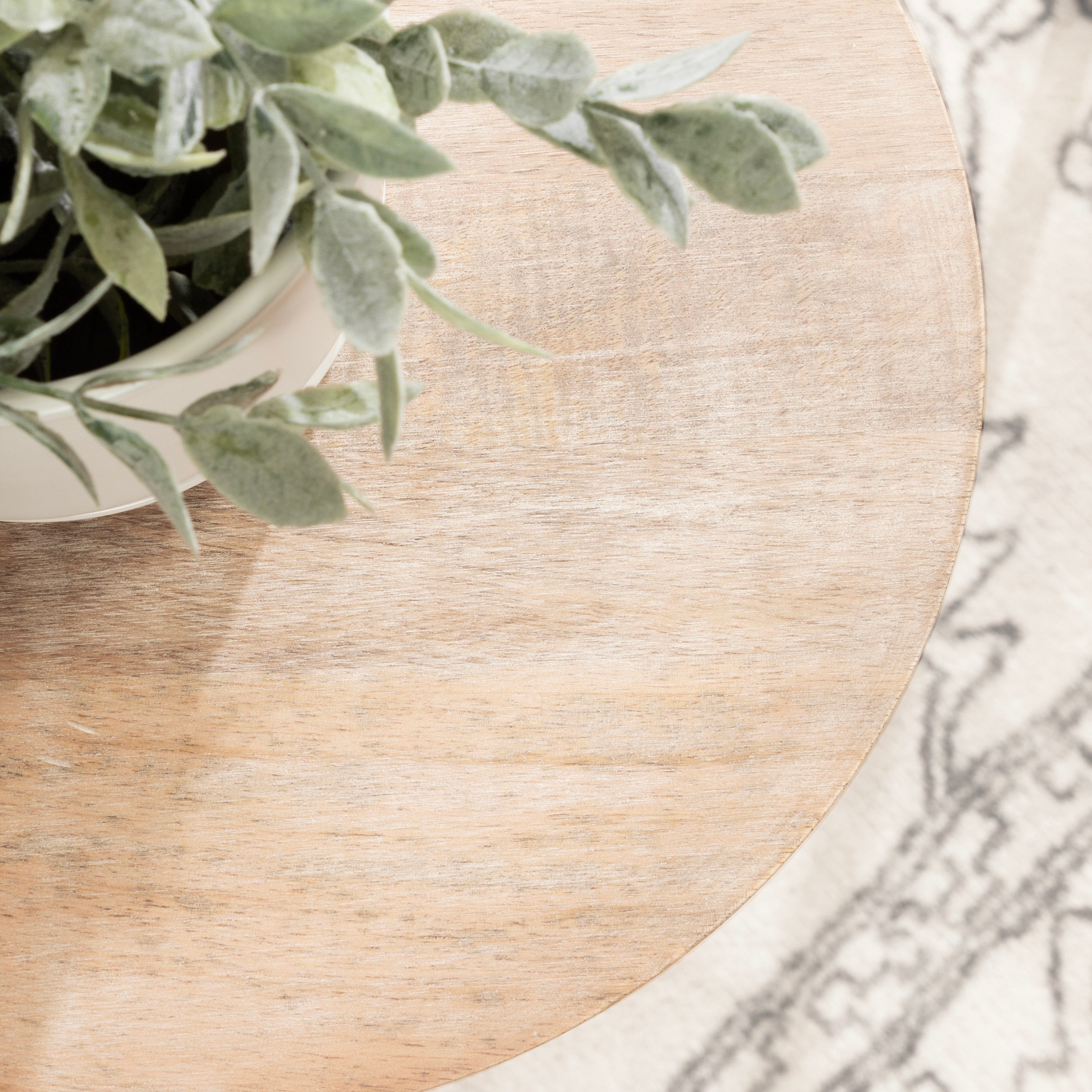 The modern look of this living room table makes it a youthful accent table option. A careful selection of solid mango wood was used to create this beautiful side table, creating a statement that is as durable as it is beautiful. This geometric table boasts a faceted base to ensure stability and is perfect for creating a curated display area for candles, a small lamp, and other accents. This table comes fully assembled, so you can begin to enjoy it right out of the packaging.