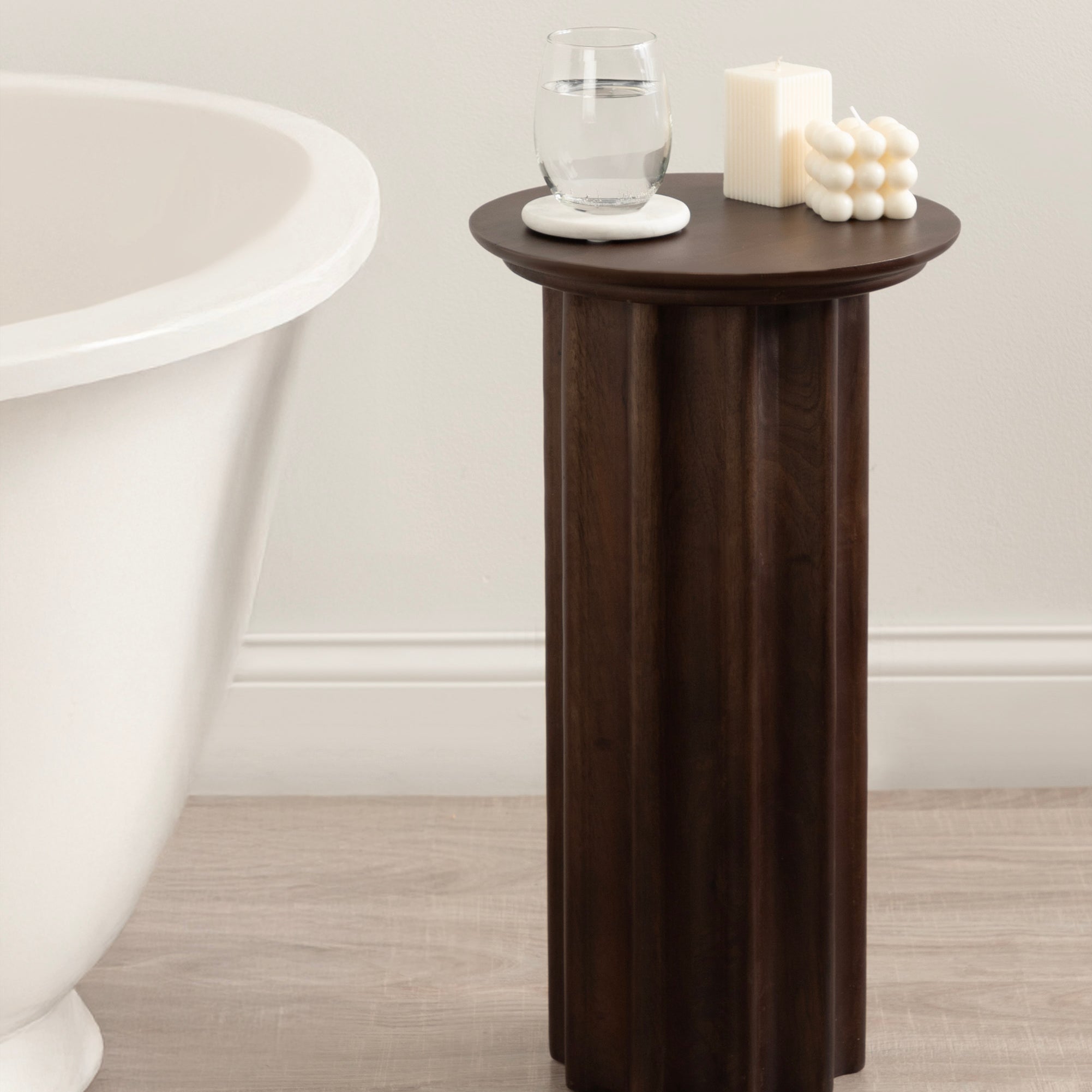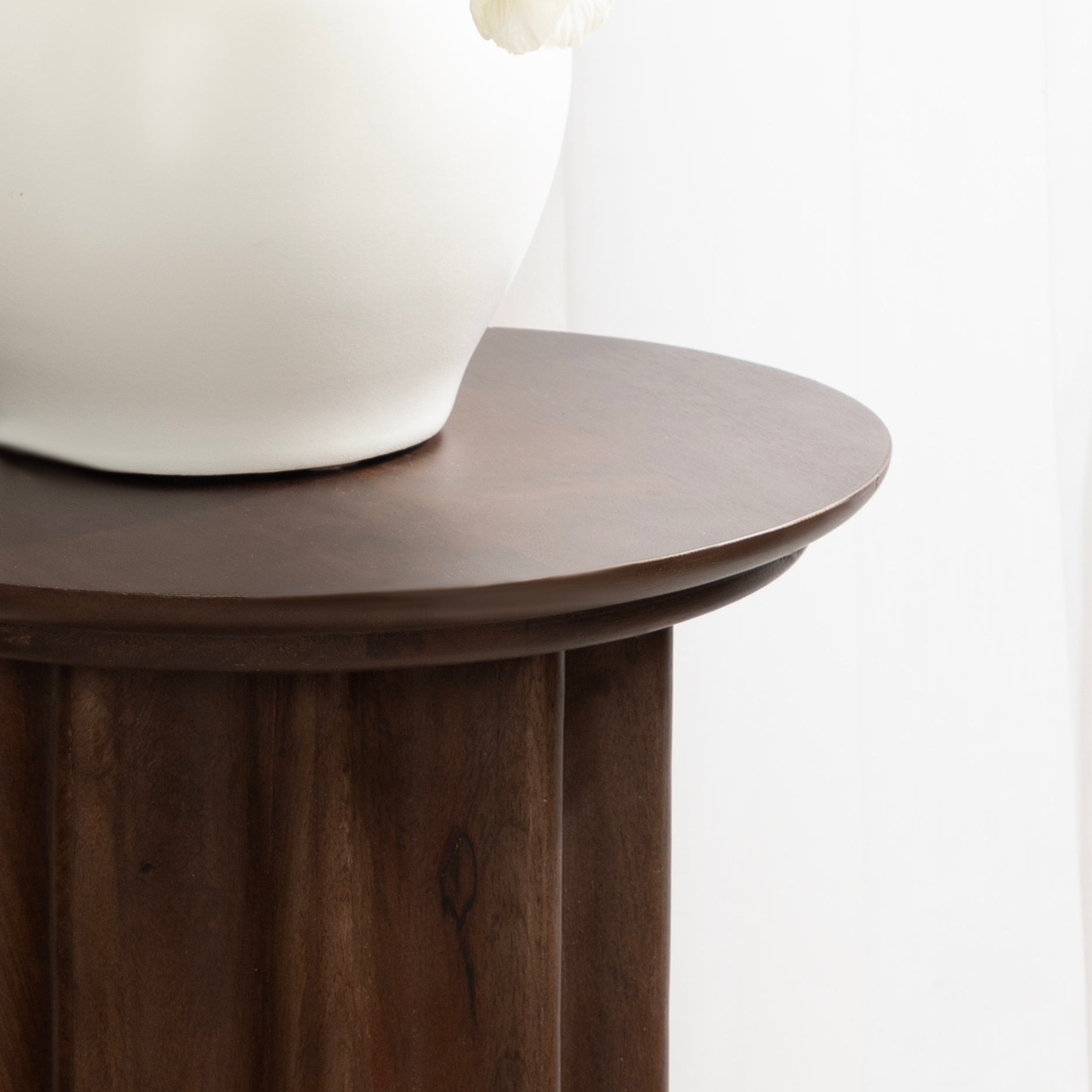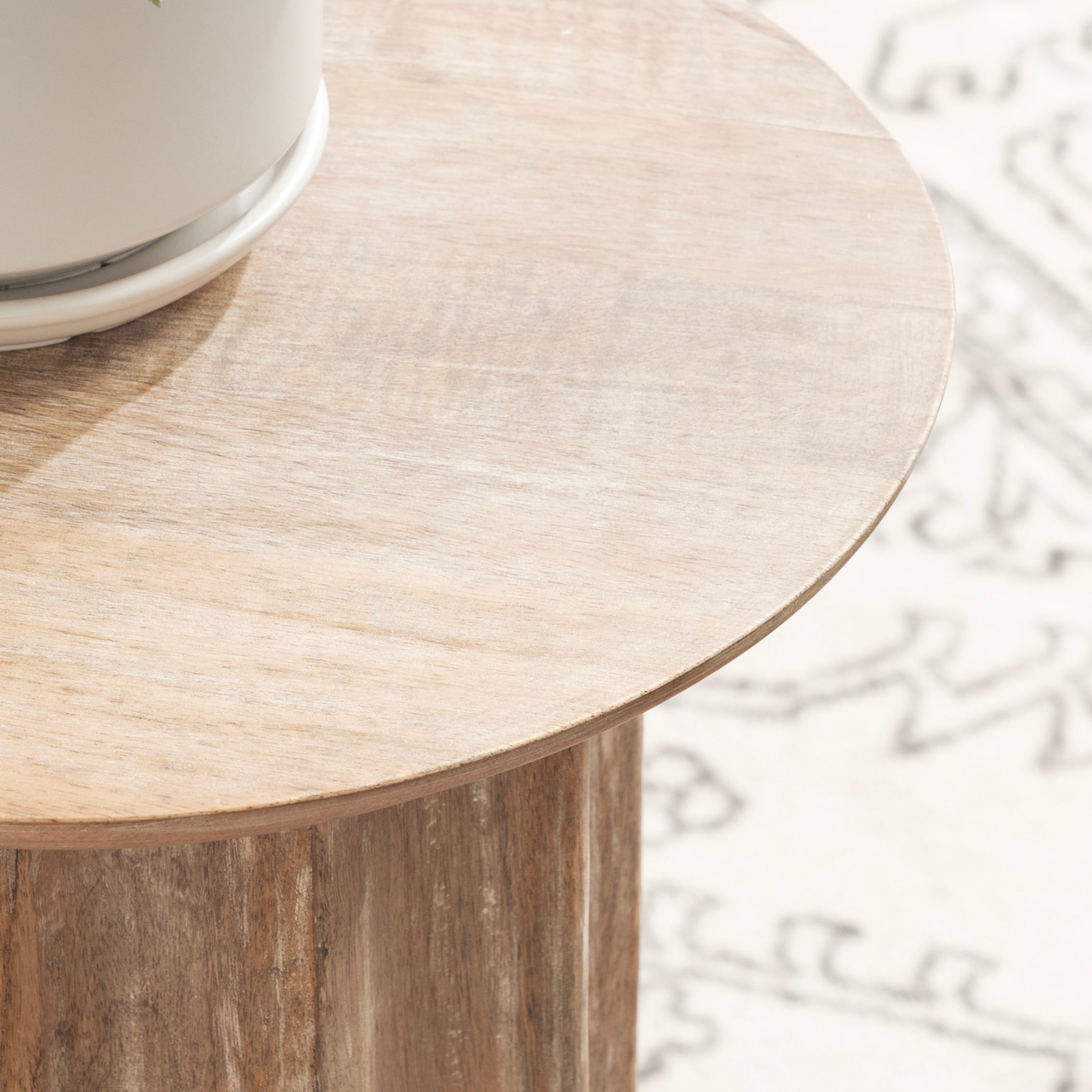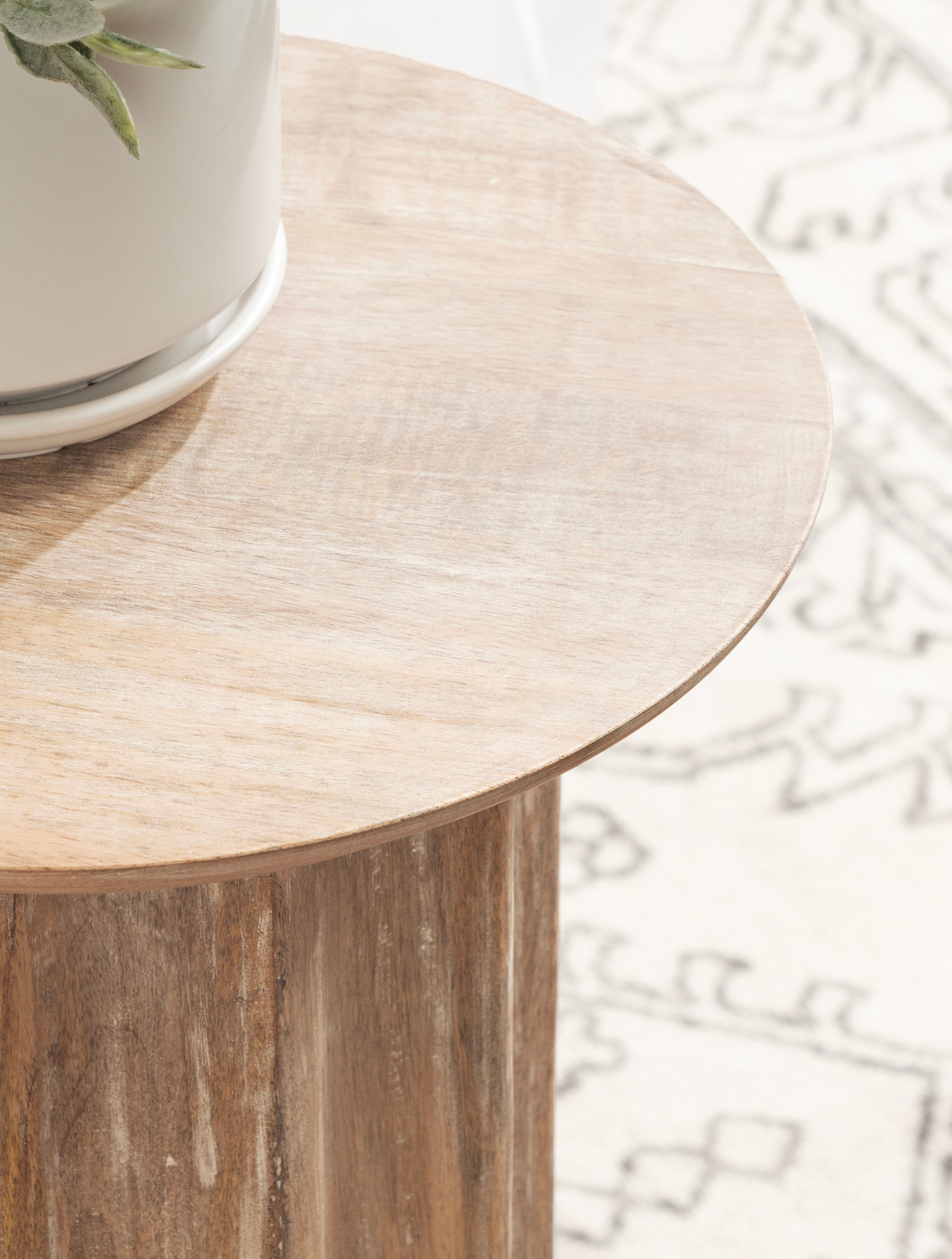 The modern look of this living room table makes it a youthful accent table option. A careful selection of solid mango wood was used to create this beautiful side table, creating a statement that is as durable as it is beautiful. This geometric table boasts a faceted base to ensure stability and is perfect for creating a curated display area for candles, a small lamp, and other accents. This table comes fully assembled, so you can begin to enjoy it right out of the packaging.
