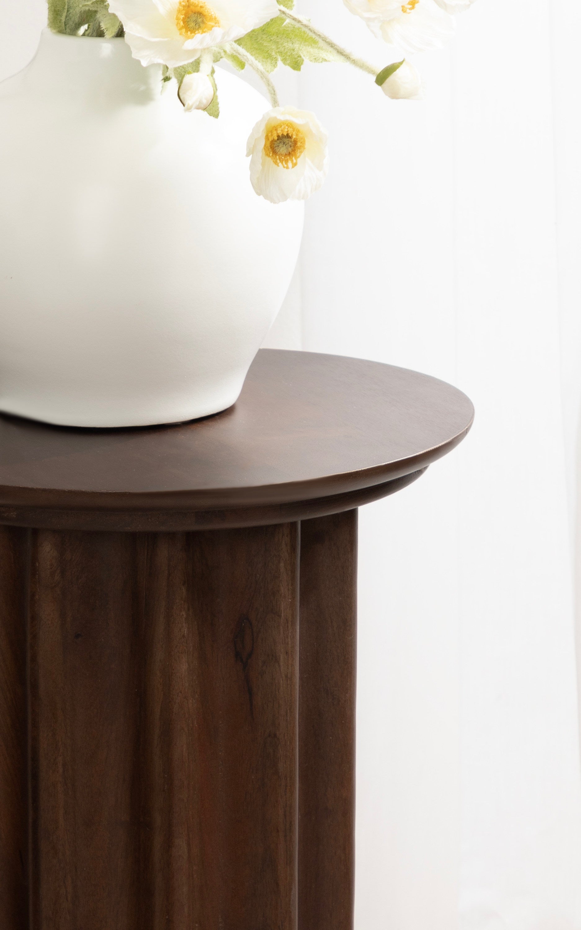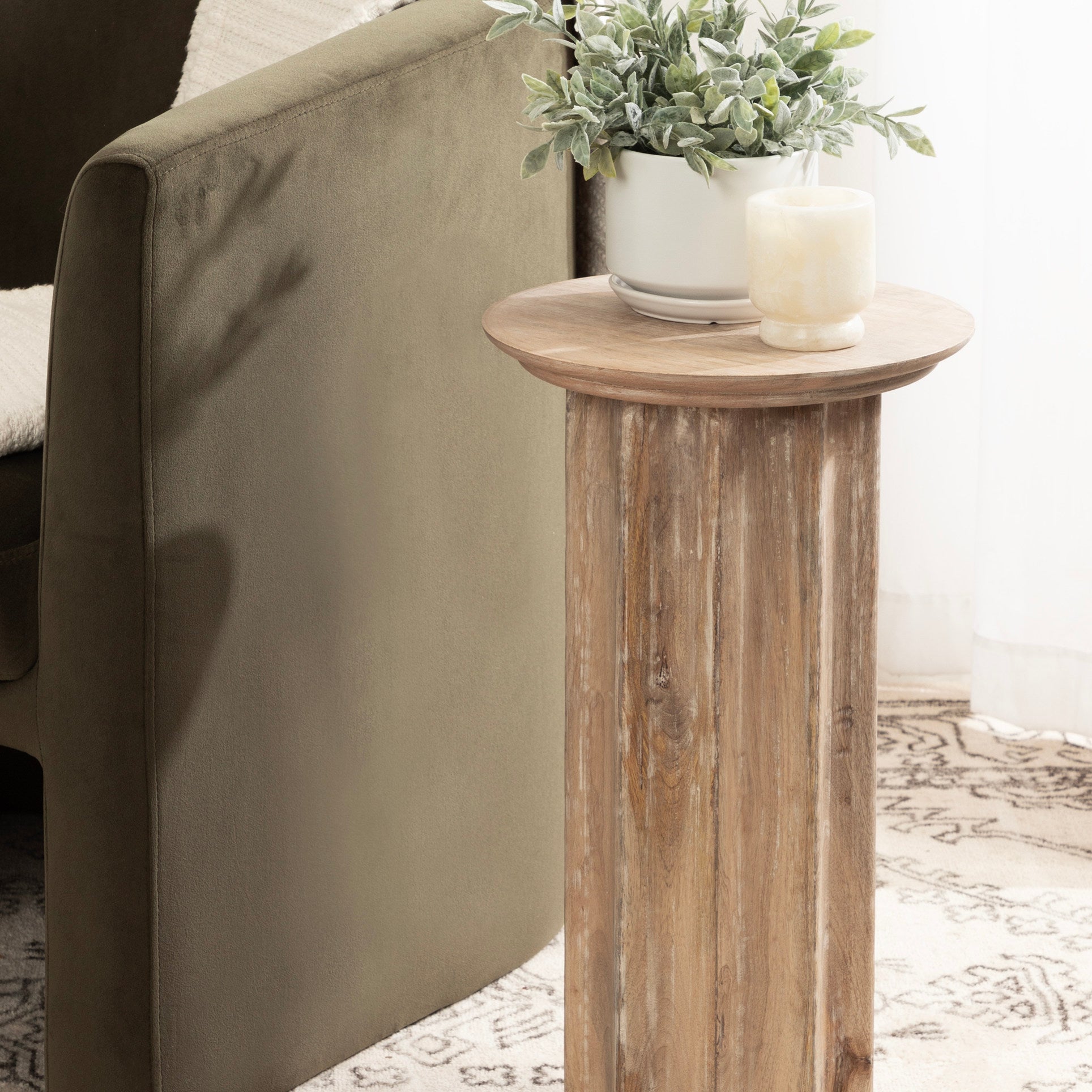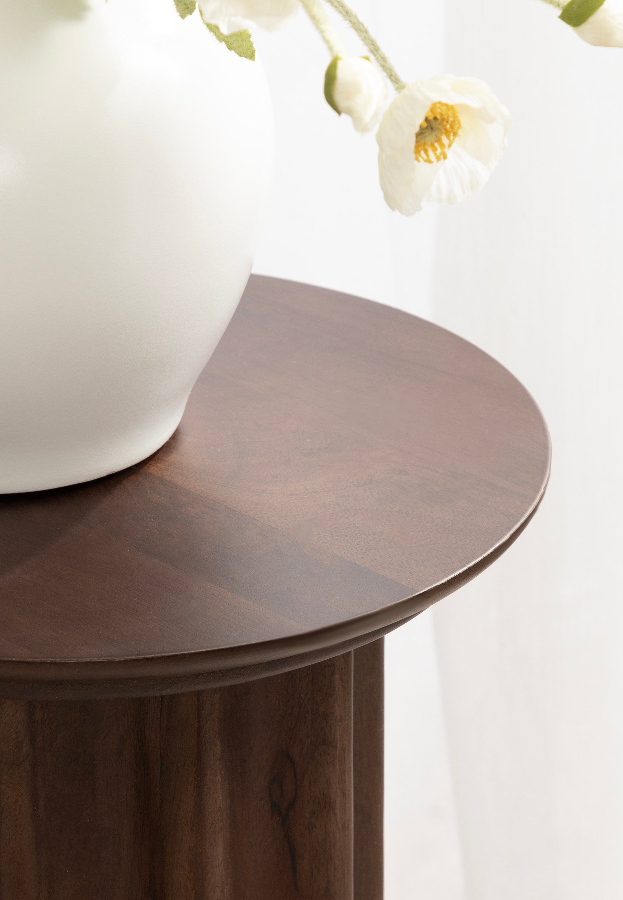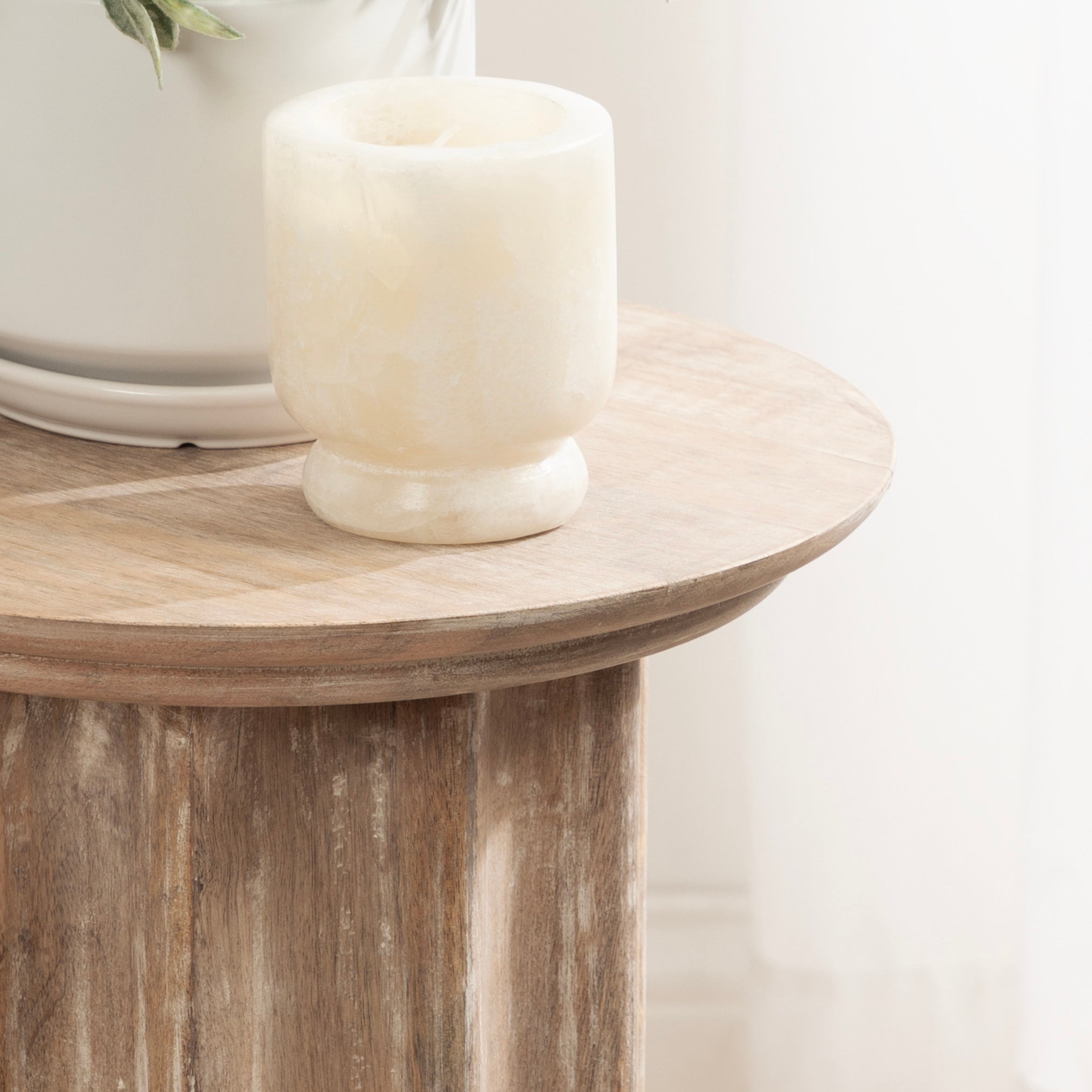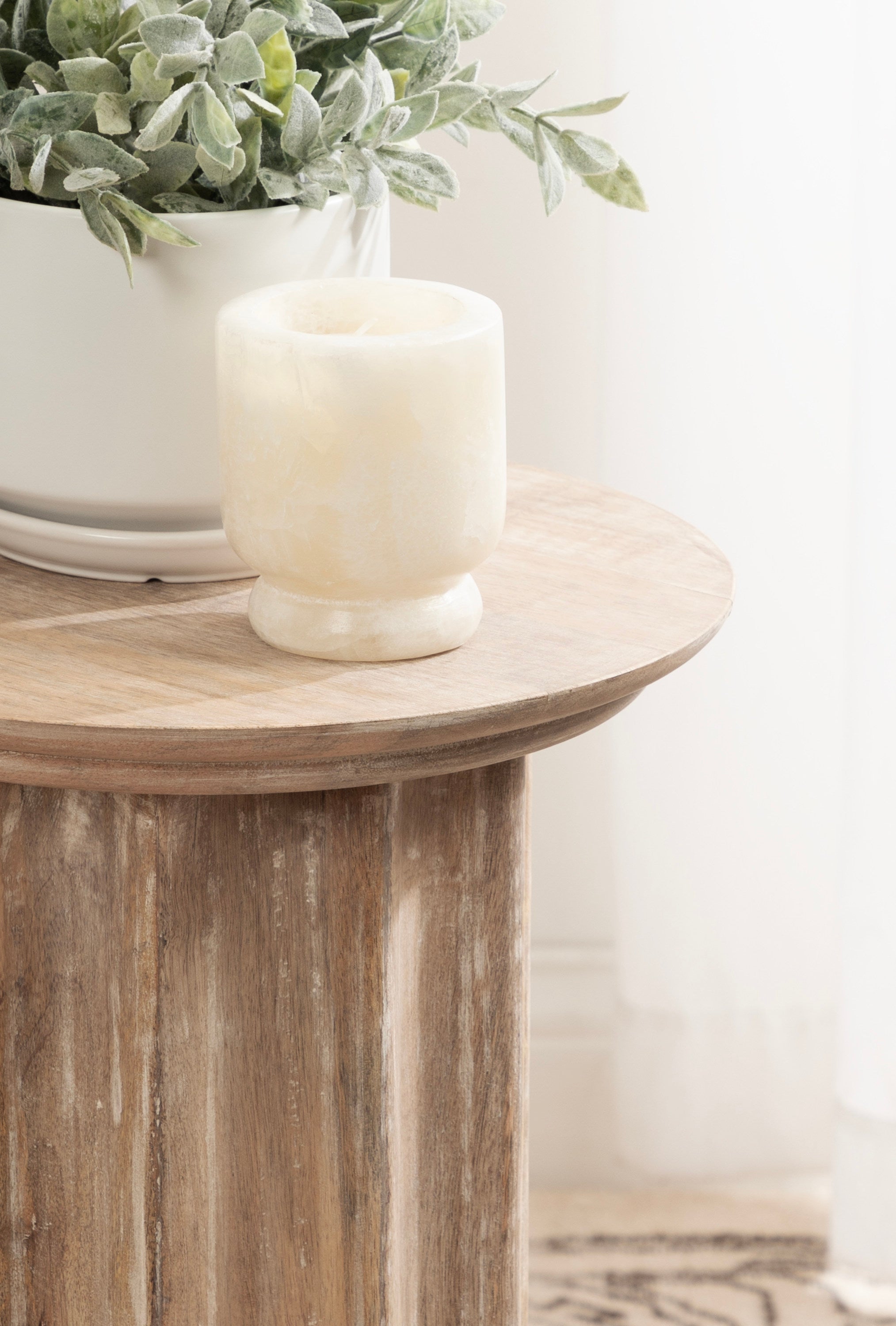 The modern look of this living room table makes it a youthful accent table option. A careful selection of solid mango wood was used to create this beautiful side table, creating a statement that is as durable as it is beautiful. This geometric table boasts a faceted base to ensure stability and is perfect for creating a curated display area for candles, a small lamp, and other accents. This table comes fully assembled, so you can begin to enjoy it right out of the packaging.