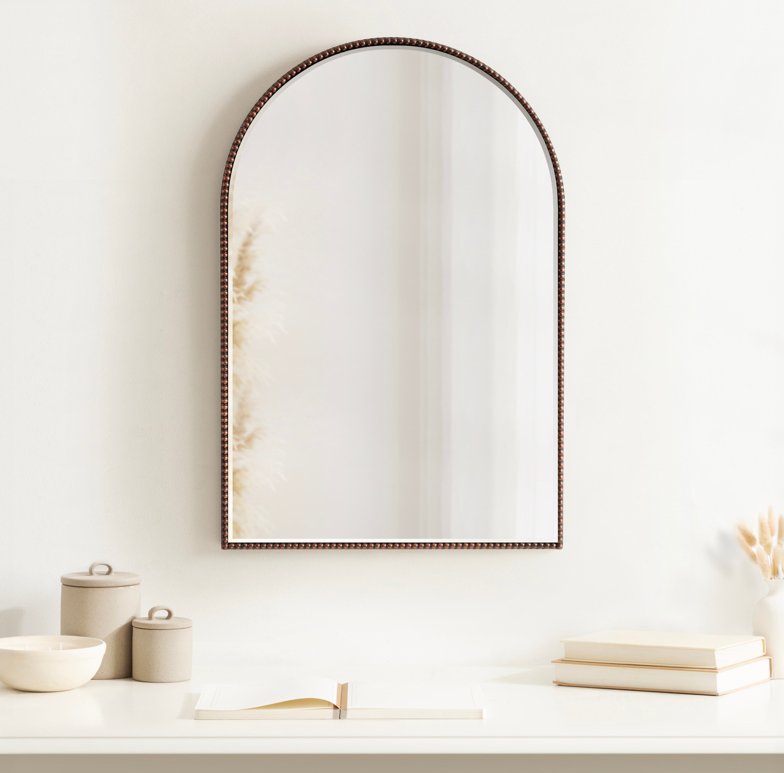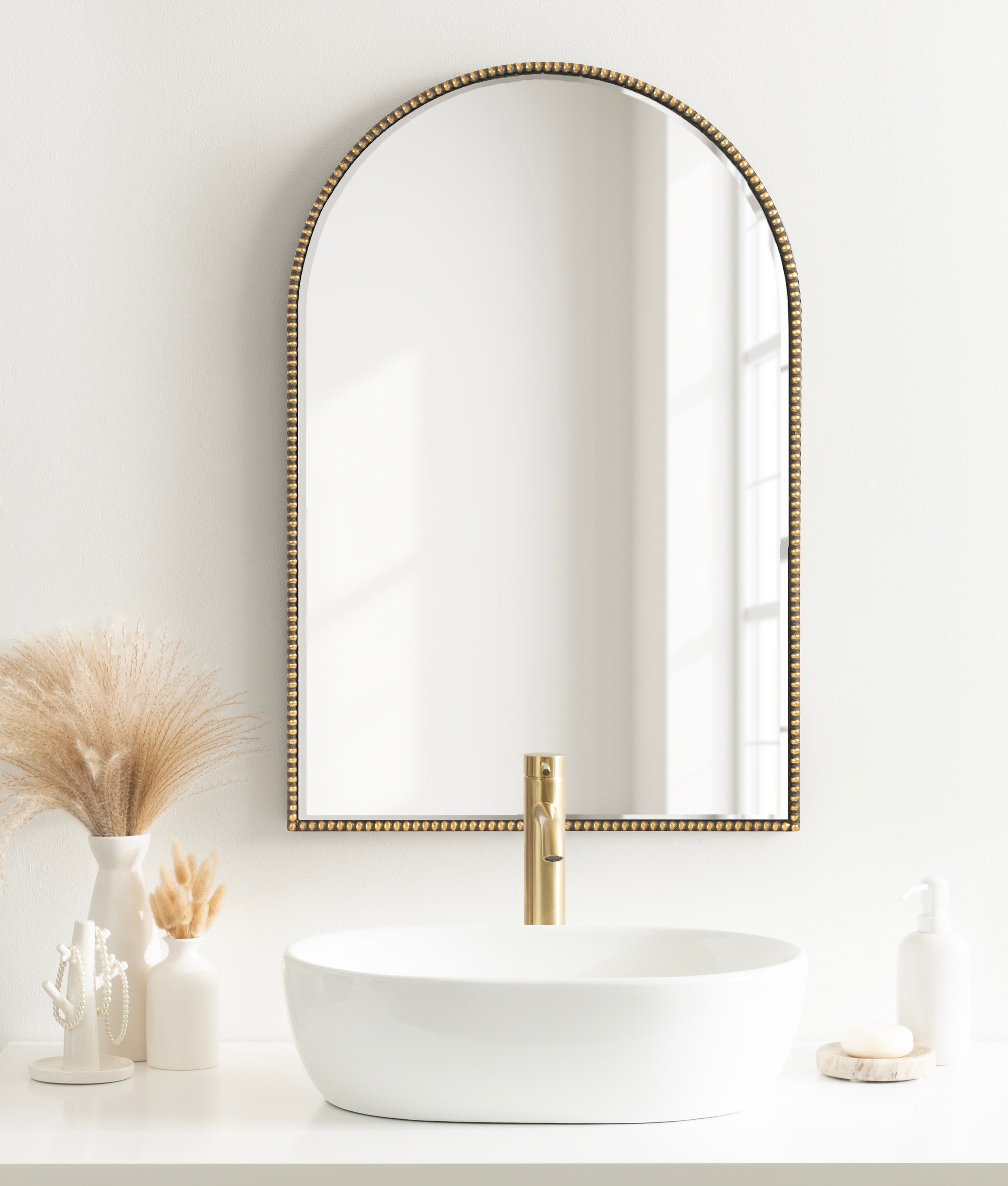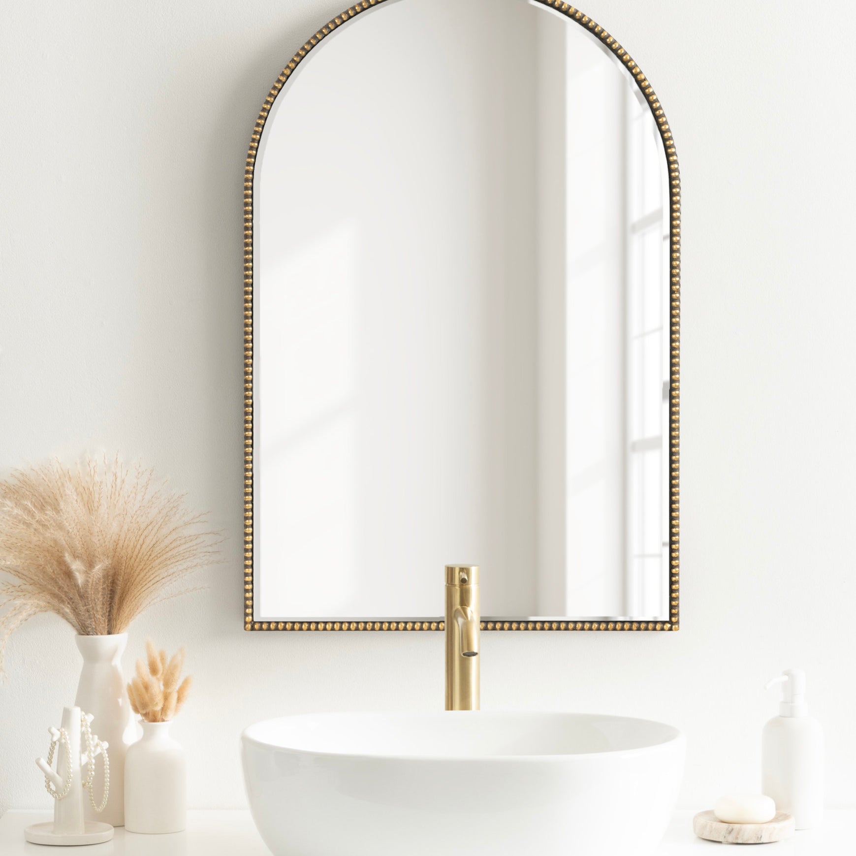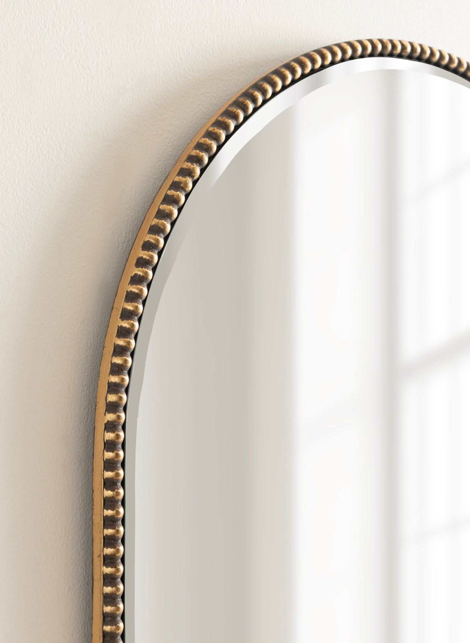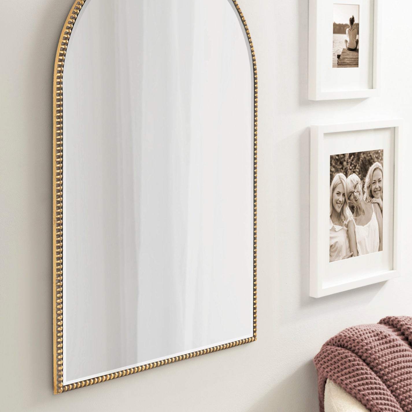The beautiful Gwendolyn mirror showcases a stylish and glamorous aesthetic on your wall. This mirror features a beautiful beaded frame with an elegant finish to offer a textural look to elevate your decor. In addition, its versatile size and modern shape make this the perfect mirror to create a dazzling focal point in your home, highlighting your elevated modern taste. Showcase it in the bedroom, over a console, on your living room mantle, or in your bathroom above your modern vanity.