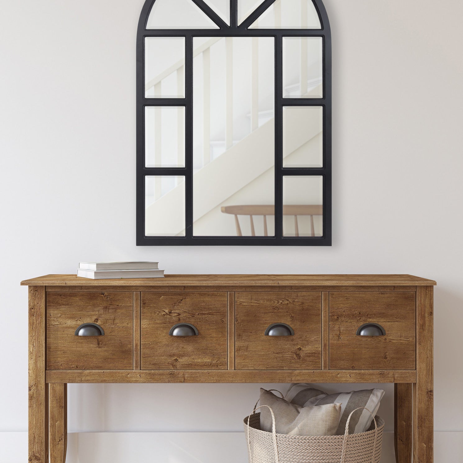 The Hogan wall mirror presents your home with a grand statement piece that enhances and expands your space. The sophisticated, multi-pane mirror has an arched, cathedral-like look, and at 36 inches tall, it's great for an eye-catching focal point in any room. Use it as a functional powder room mirror or a decorative statement in your living room, bedroom, entryway, or dining room.