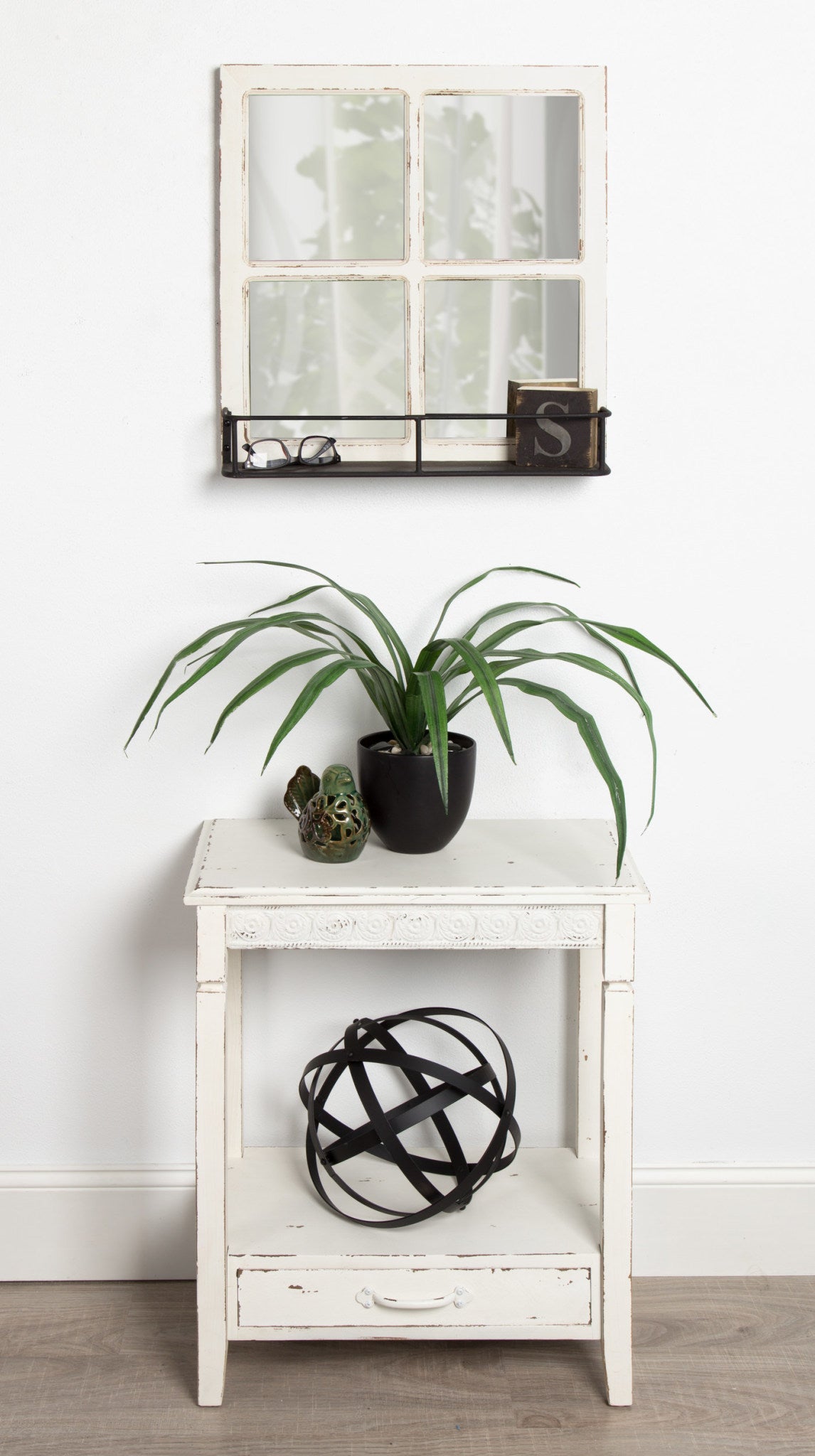 - Finished in antique "farmhouse cream" giving it a timeless country cottage look