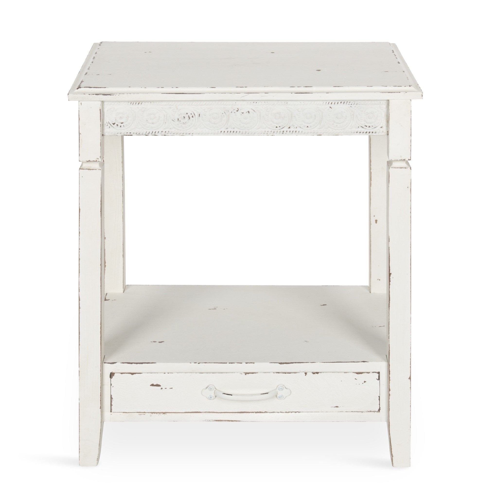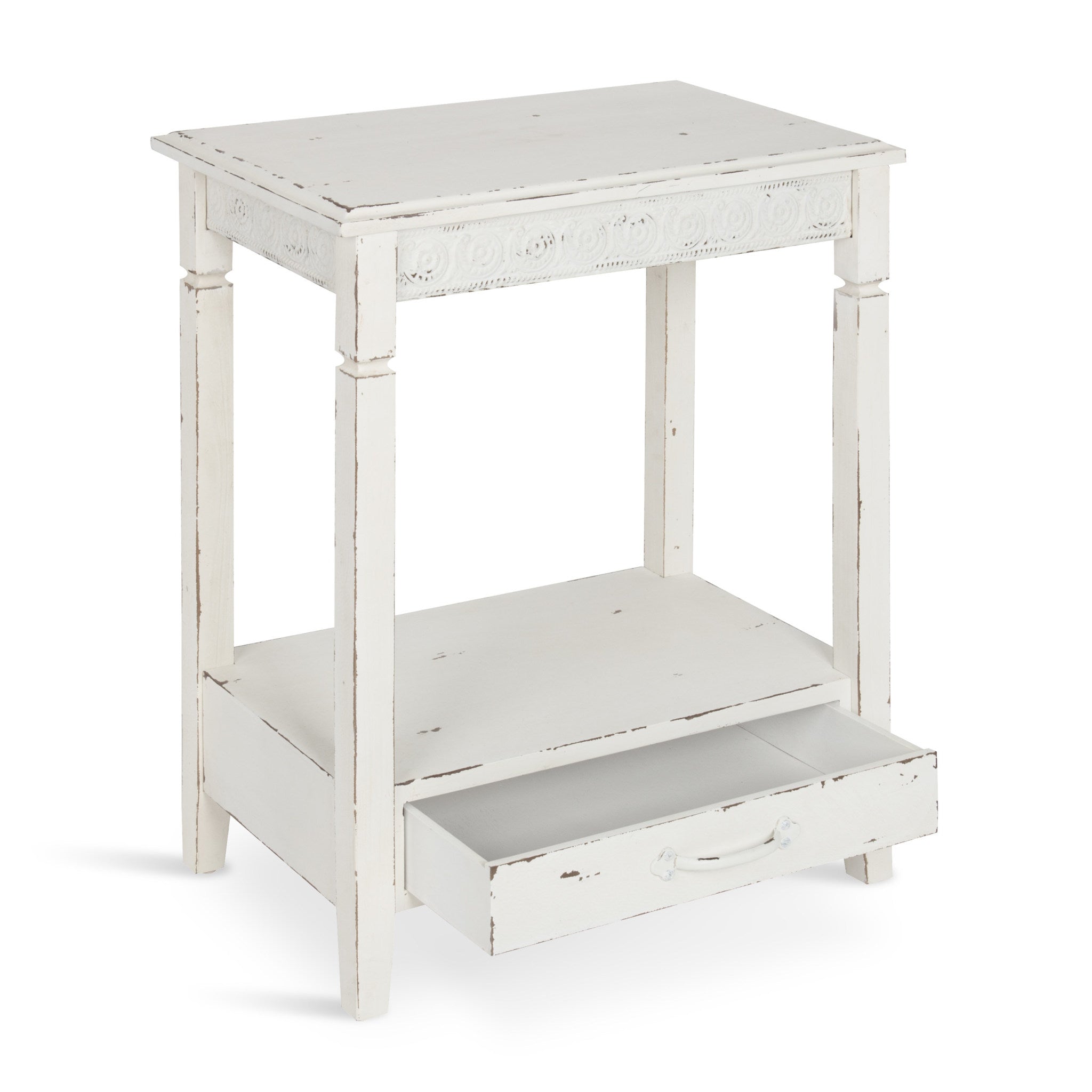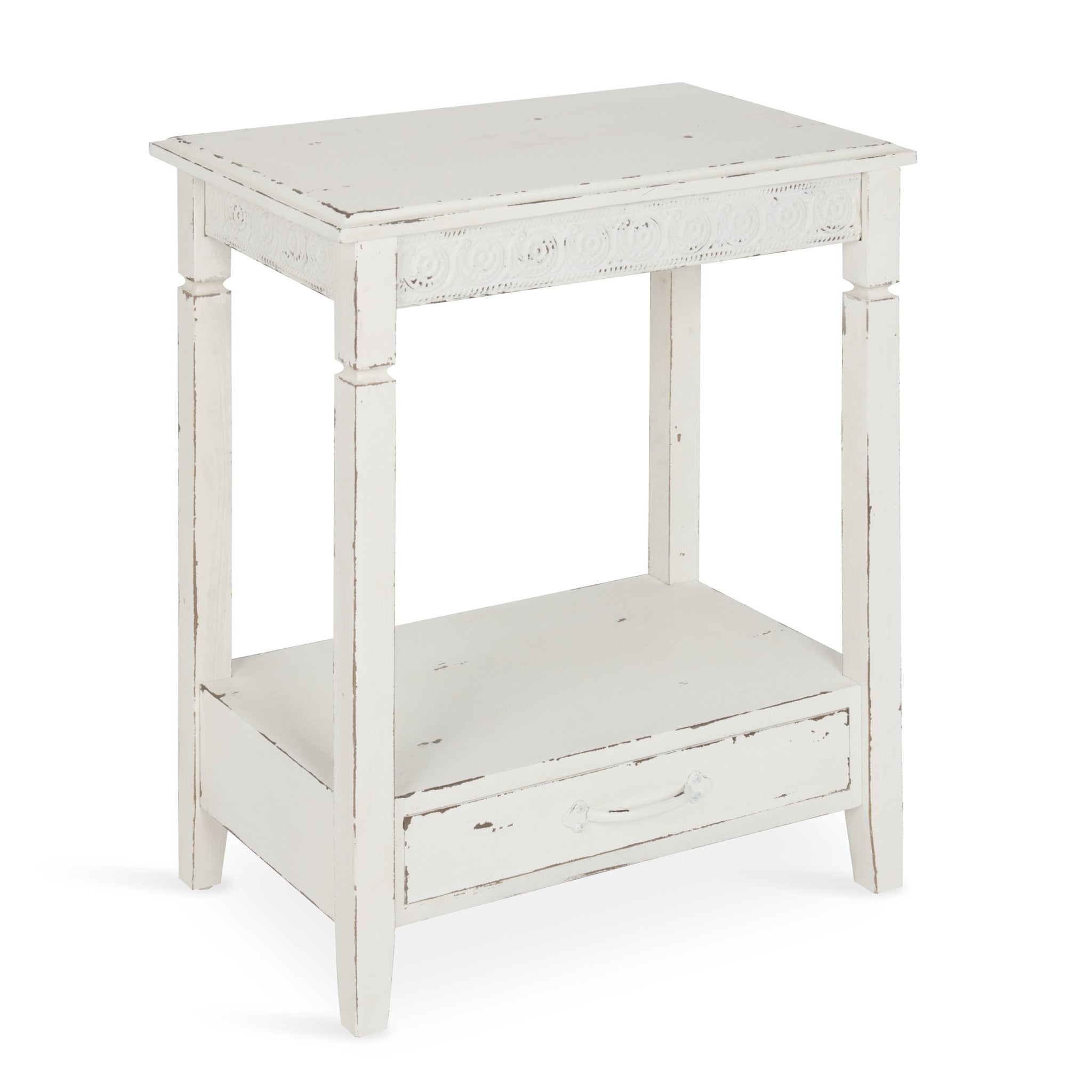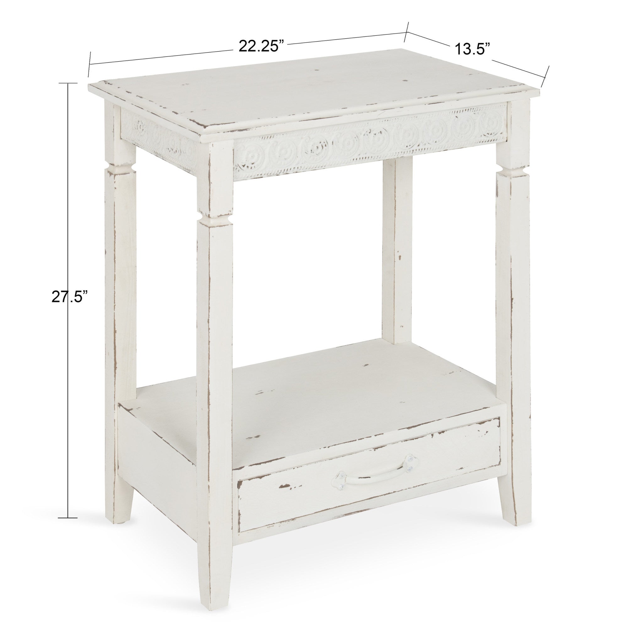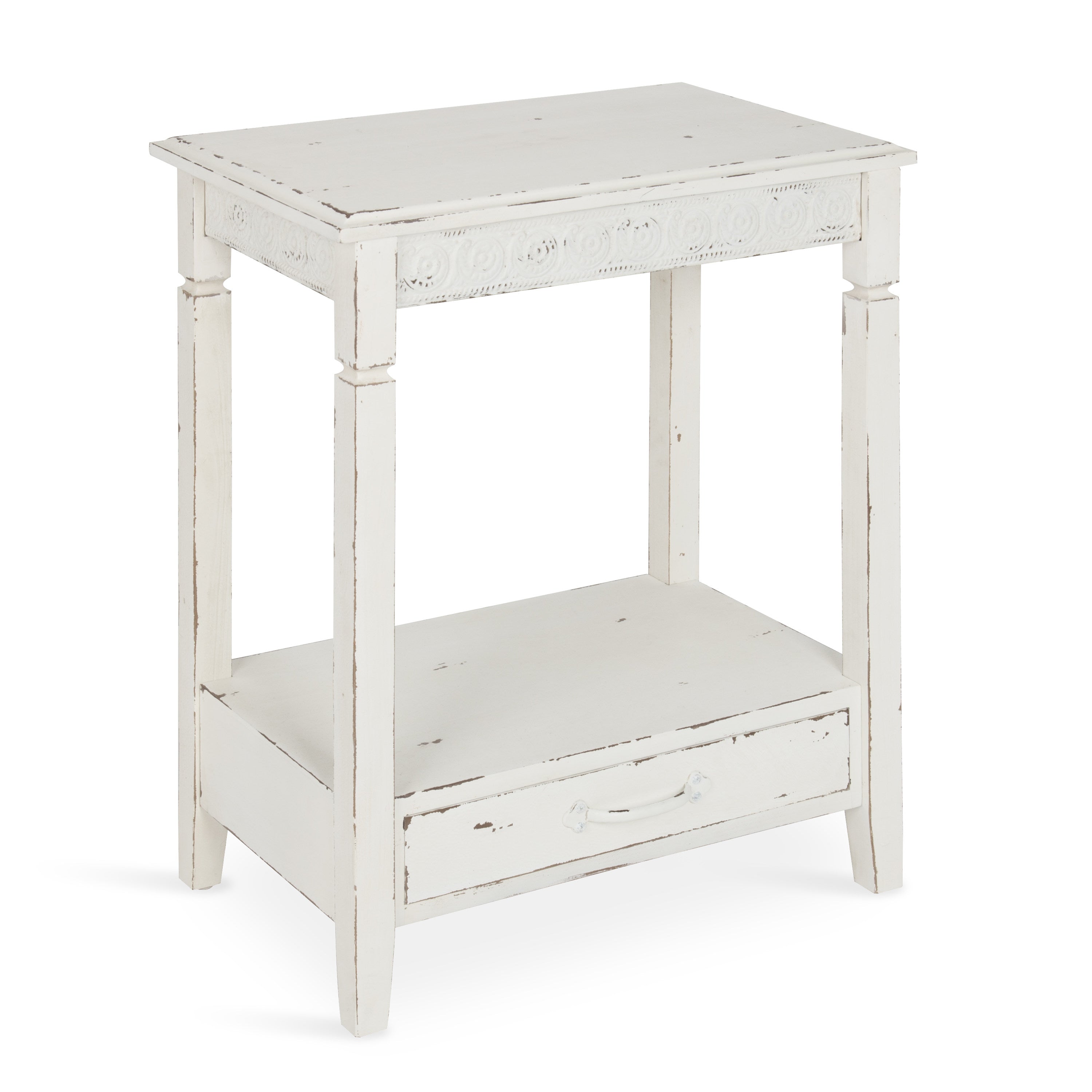 The Idabelle side table's country cottage style combines the charm of simplicity with solid design. A well-placed lamp or a funky accent piece will complete the look in a bedroom, hallway or anywhere in your home, you need a pretty but practical end table.