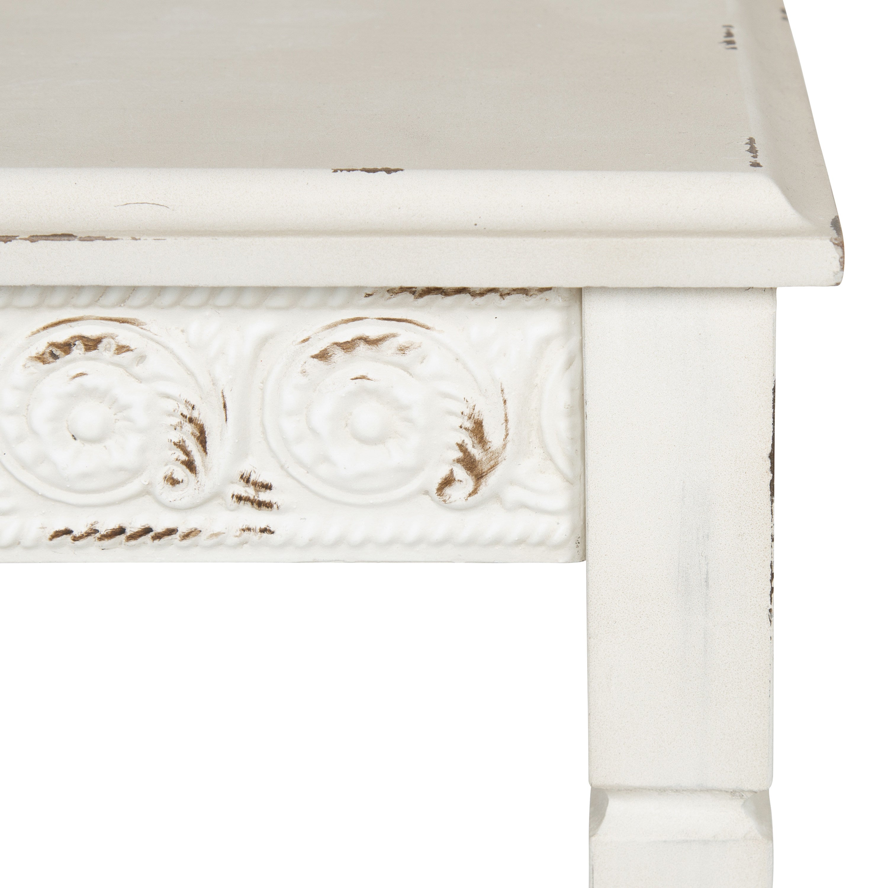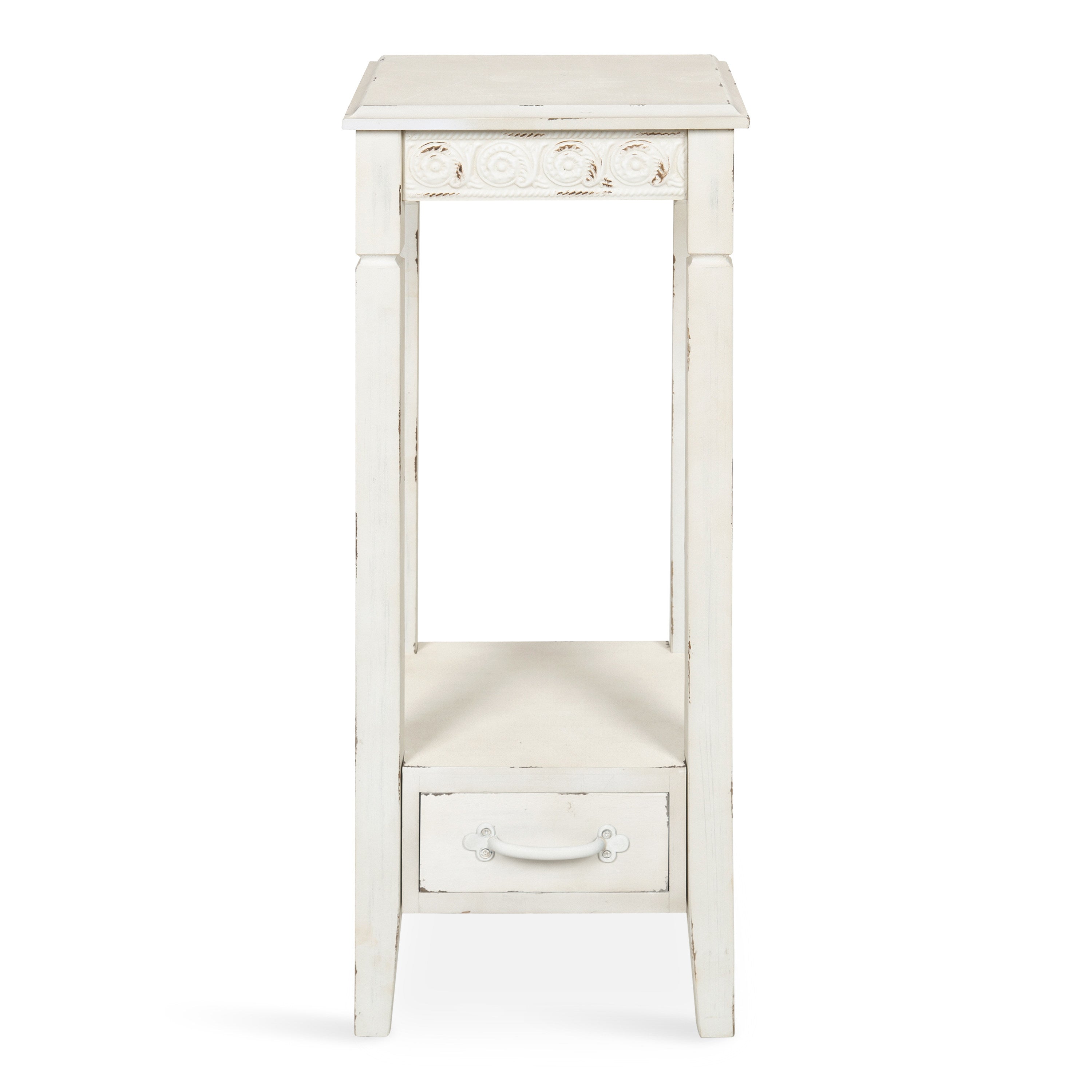 The Idabelle accent table's country cottage style combines the charm of simplicity with solid design. A well-placed lamp or a funky accent piece will complete the look in a bedroom, hallway or anywhere in your home, you need a pretty but practical end table.