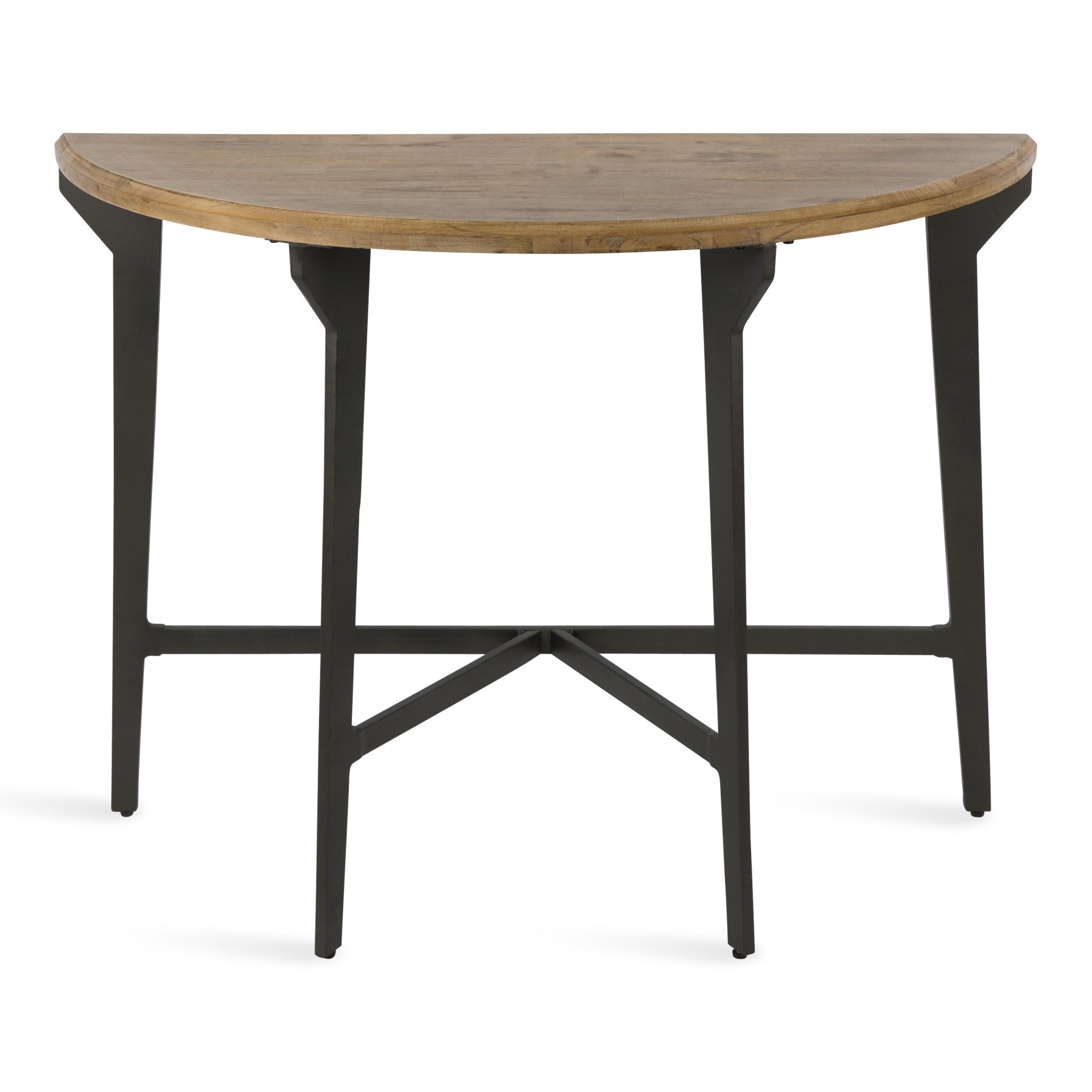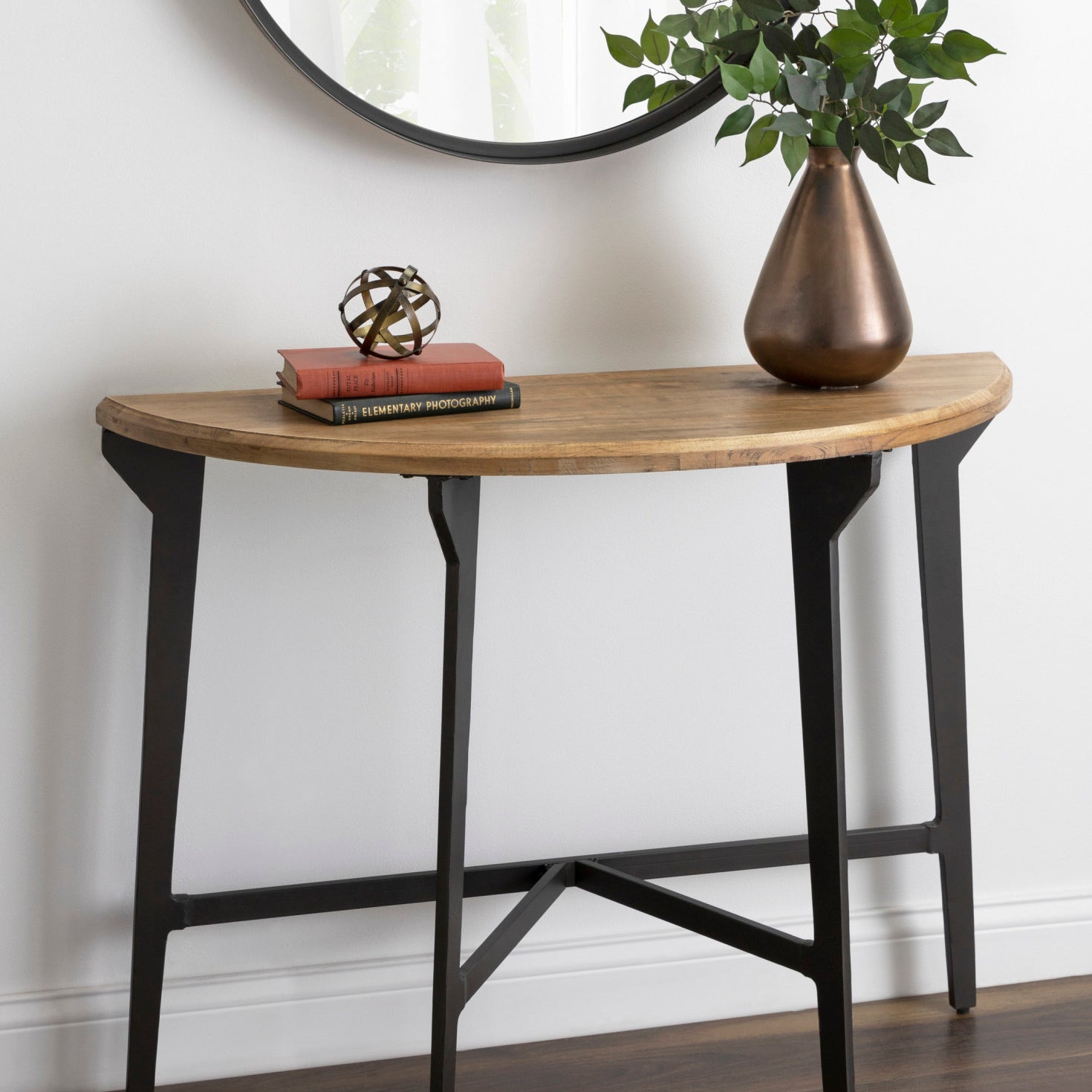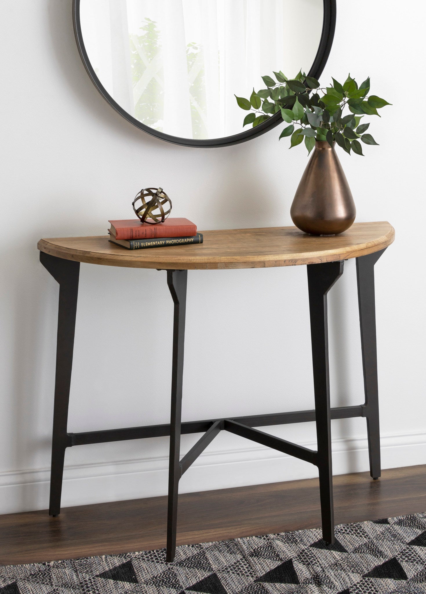 Decorate your home with a rustic, minimalist farmhouse accent piece with the Langdon console table. It has a wood top that is hand-distressed, giving you a one-of-a-kind statement for any room of your home. It's the perfect piece to use for display or storage in any entryway, living room, bedroom, or bathroom.