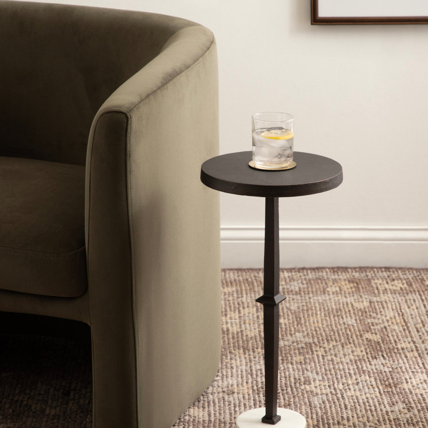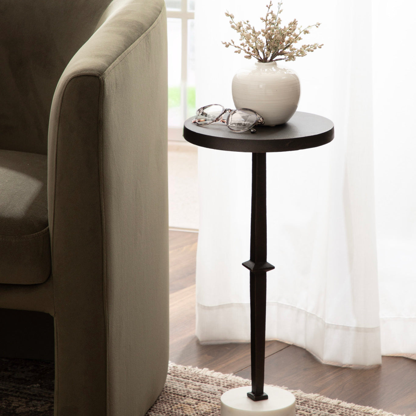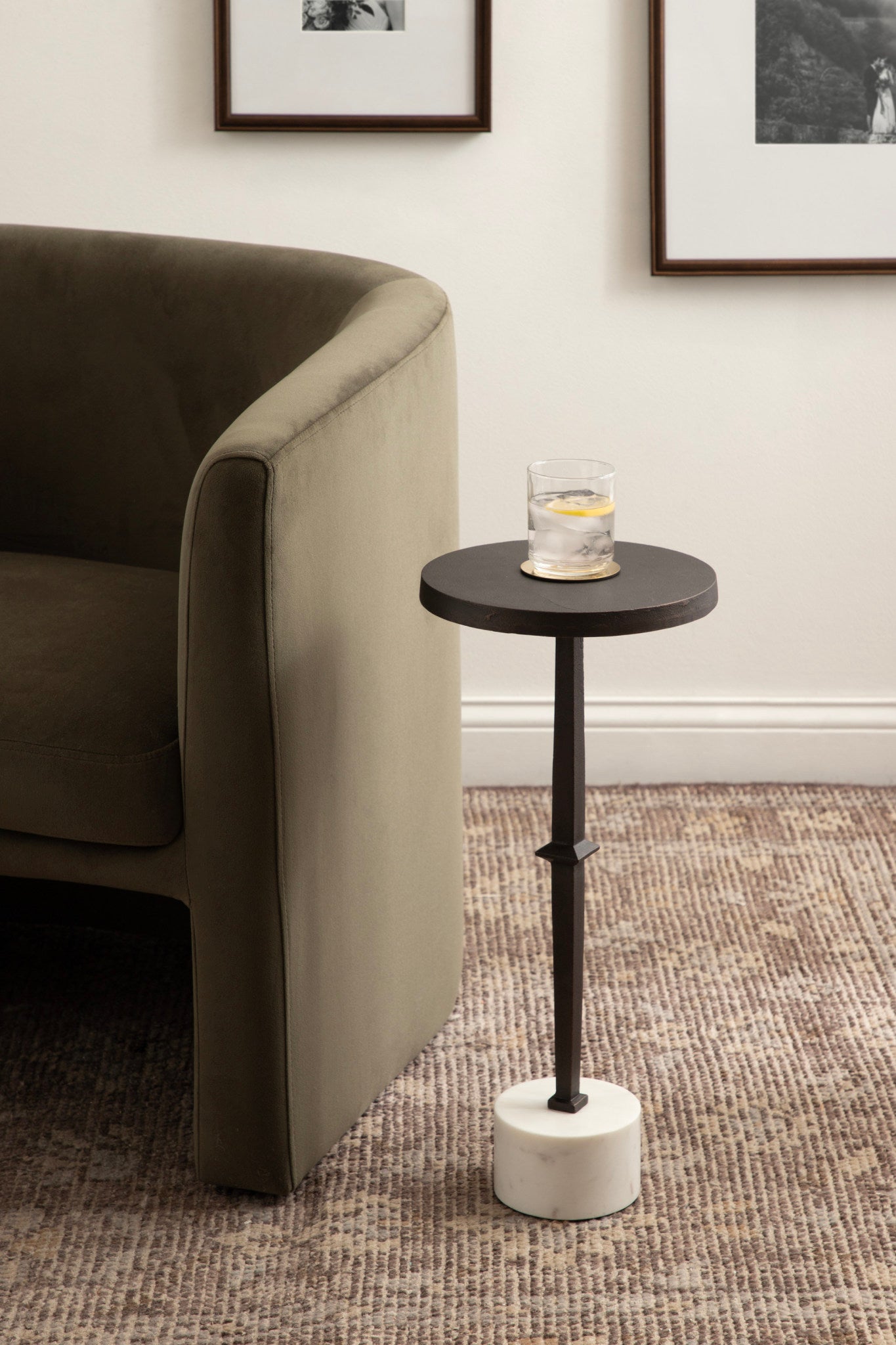 Showcase your nightly drink or a favorite houseplant with this stunning Lazaro drink table. The two-tone finish effortlessly elevates your home decor by aligning well with various decor styles. The Lazaro's marble base not only wows as a stunning natural stone, but it also provides weight for stability. Handcrafted by artisans in India, each Lazaro is truly one-of-a-kind. The marble base is made from natural marble stone, meaning there will be variations within the veining in each piece. The Lazaro is a versatile pedestal table that provides elegance and sophistication to various settings throughout your home: living room, bedroom, bathroom, entryway, or family room.