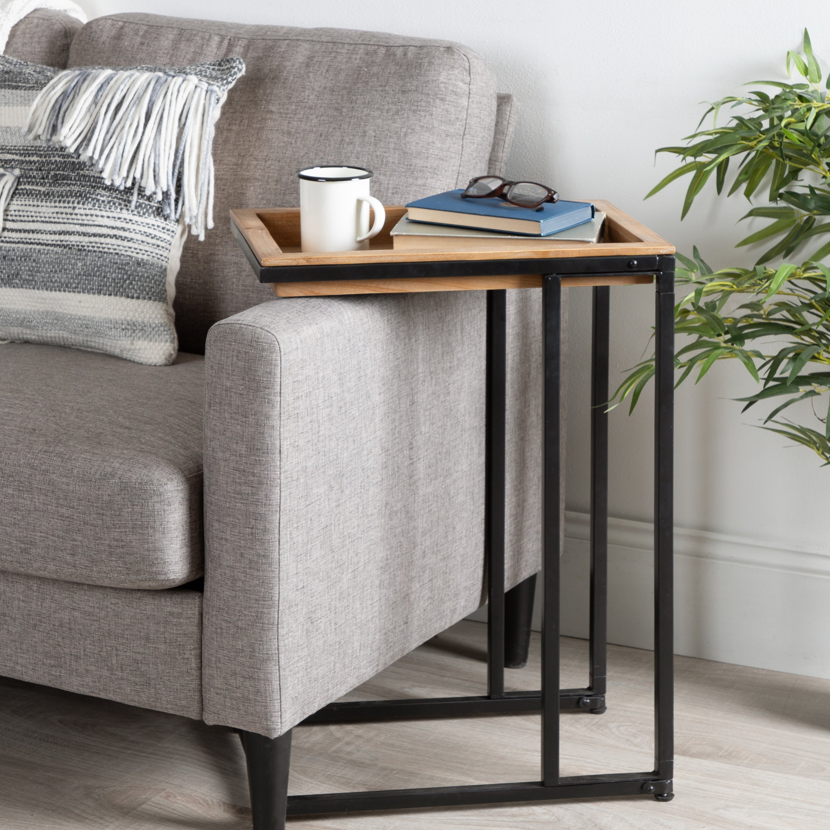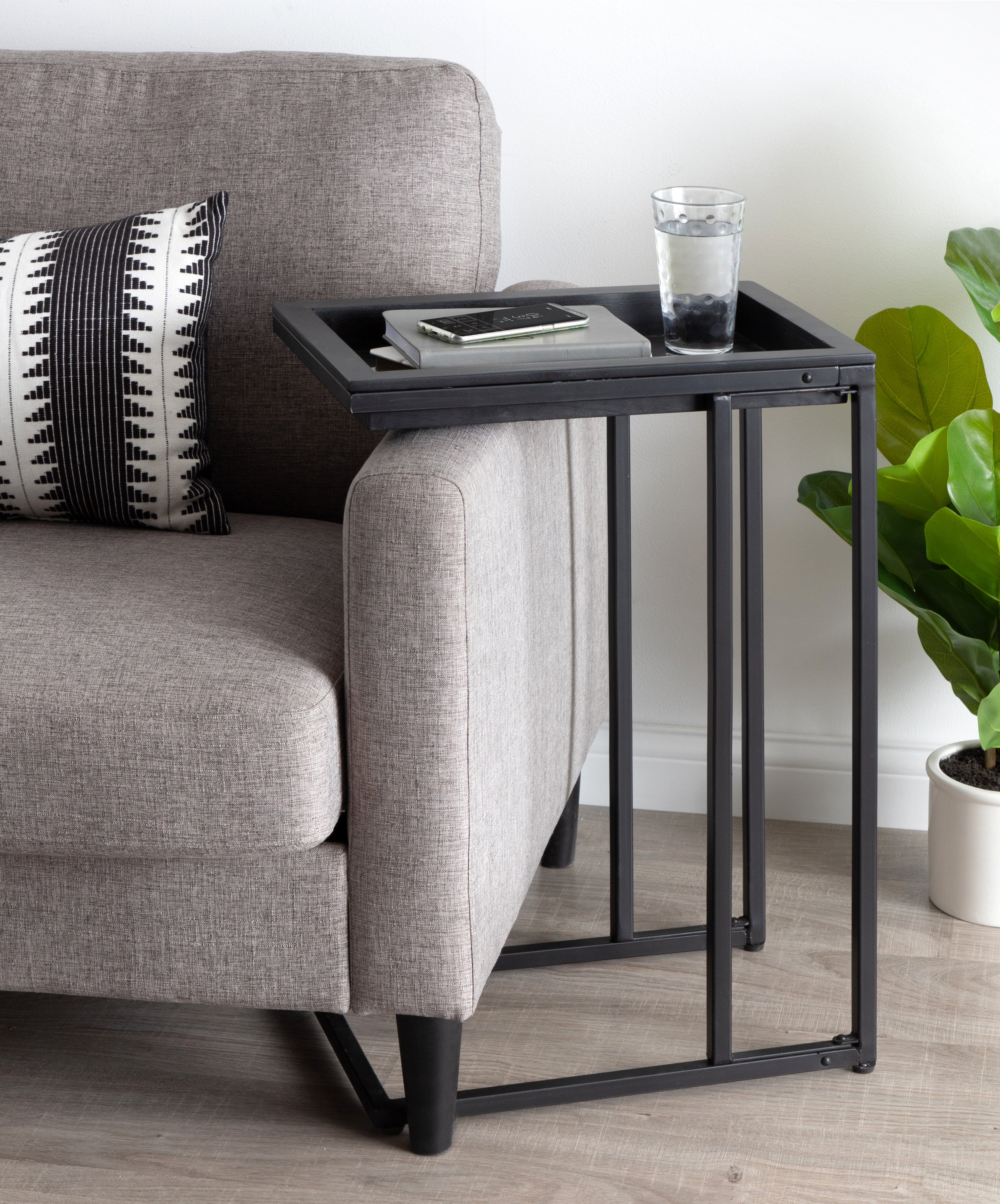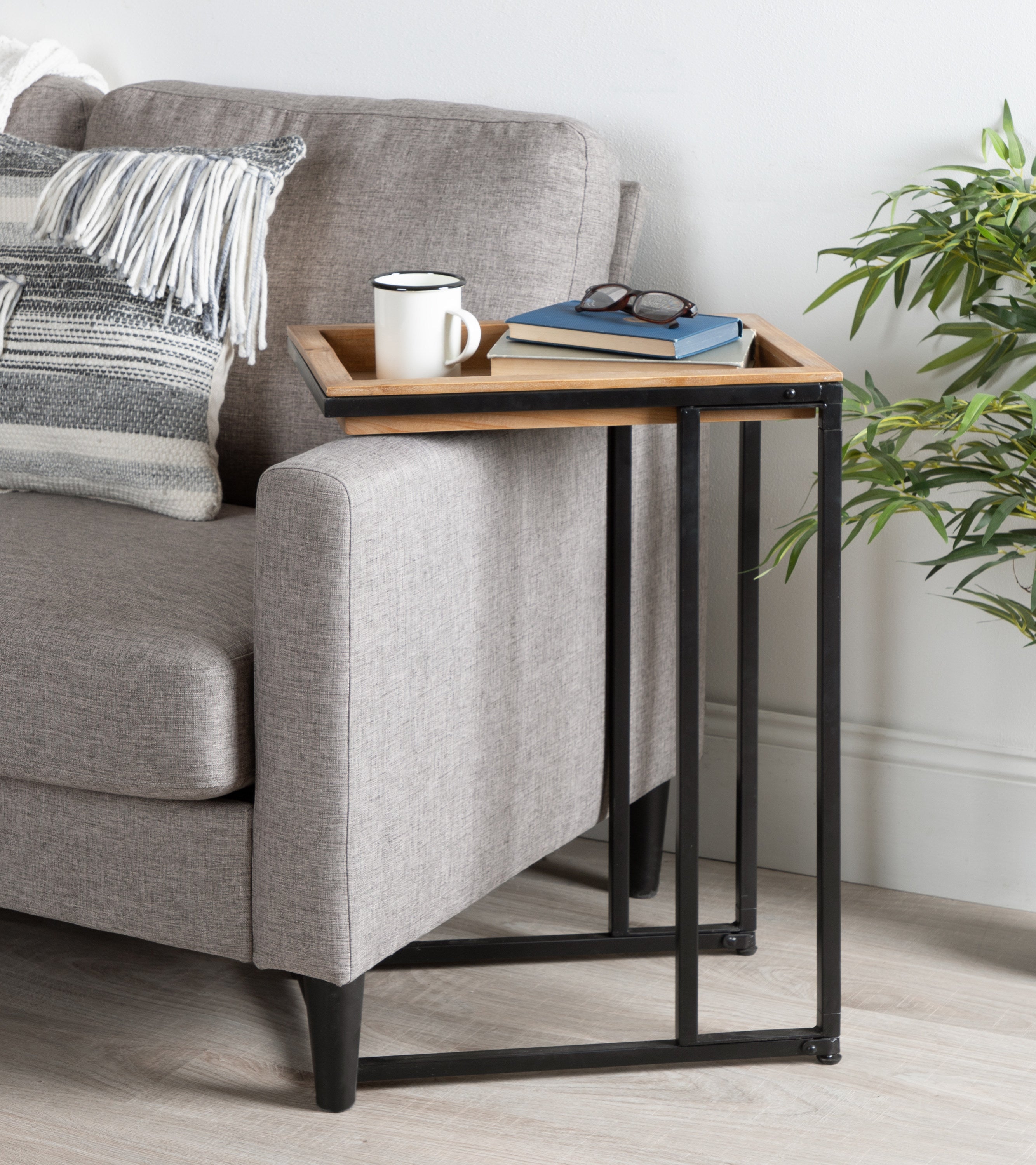 Constructed of a sturdy metal base and a wooden tray top, this table was made for not only style but also convenience. With the sleek "c" shape, it easily slides under a sofa, a chair, or a bed. The wooden top removes, creating an ideal serving tray for entertaining while the metal stand is fully collapsible and easy to store.