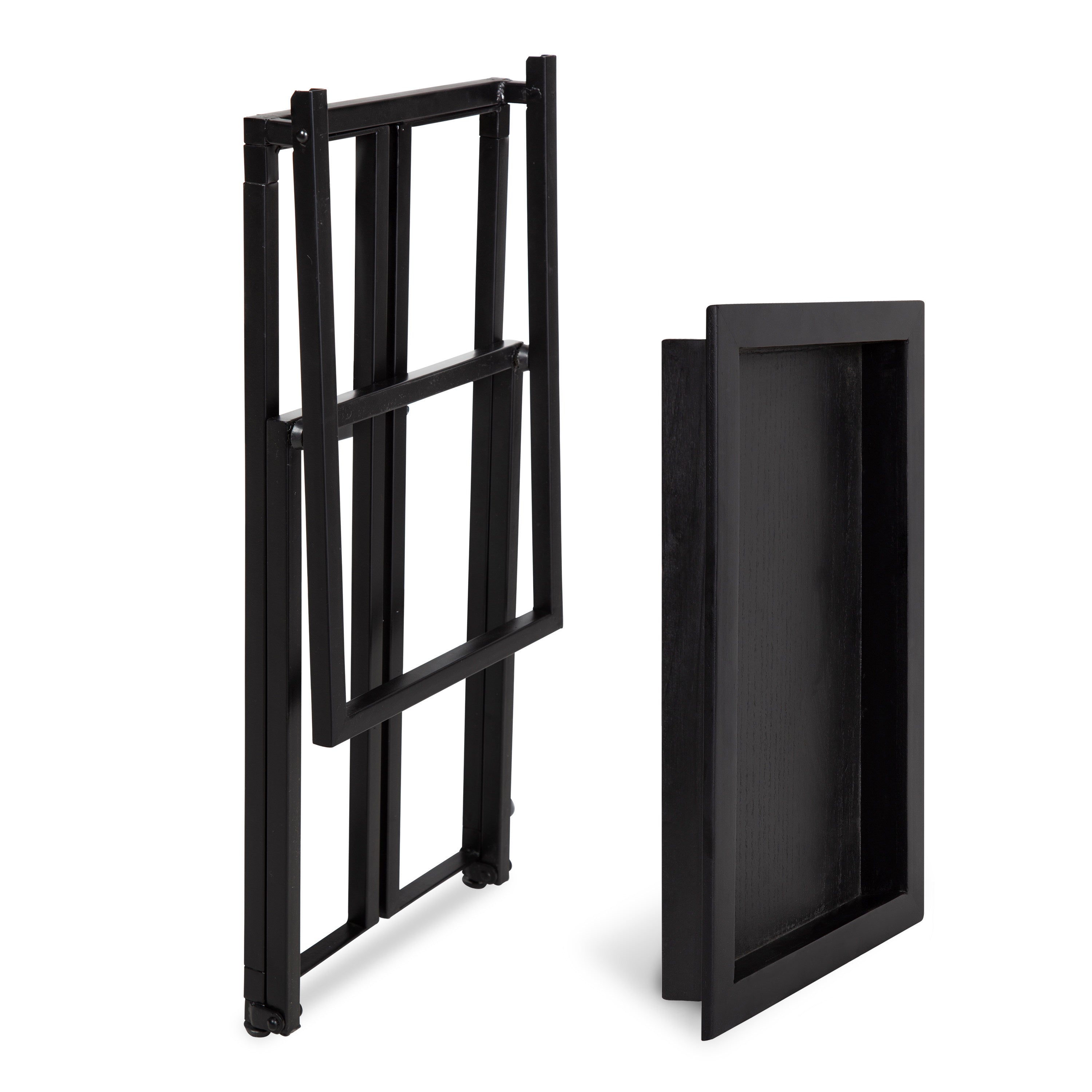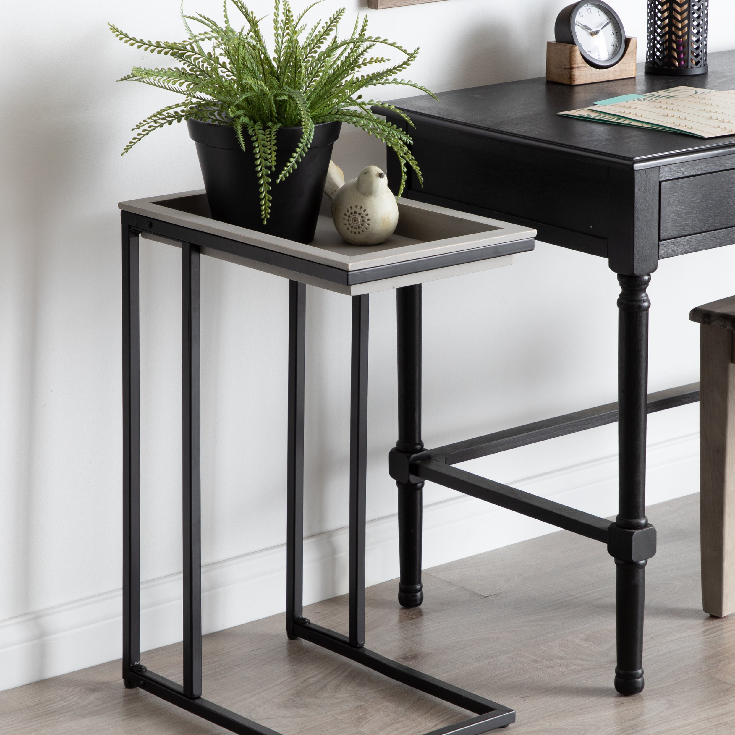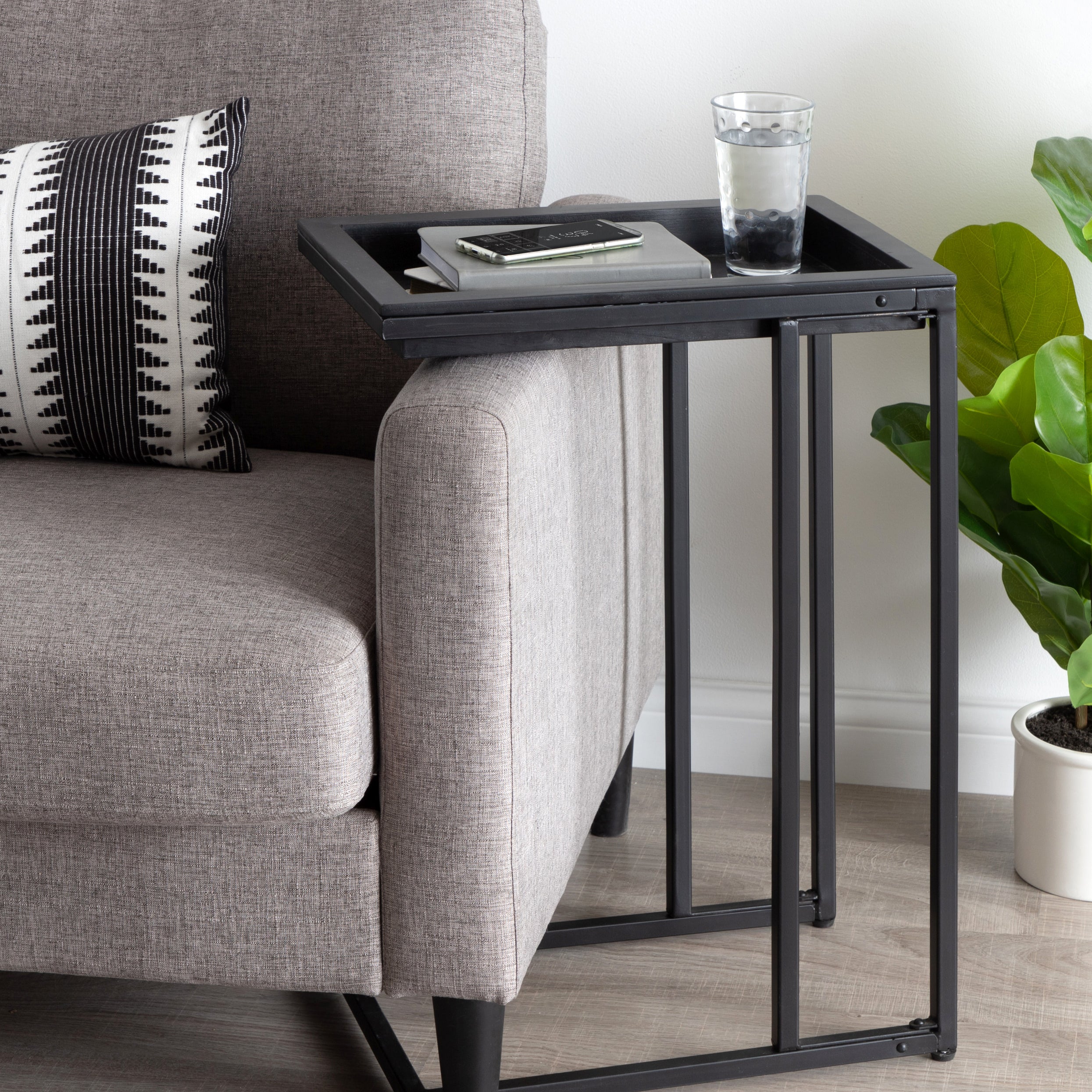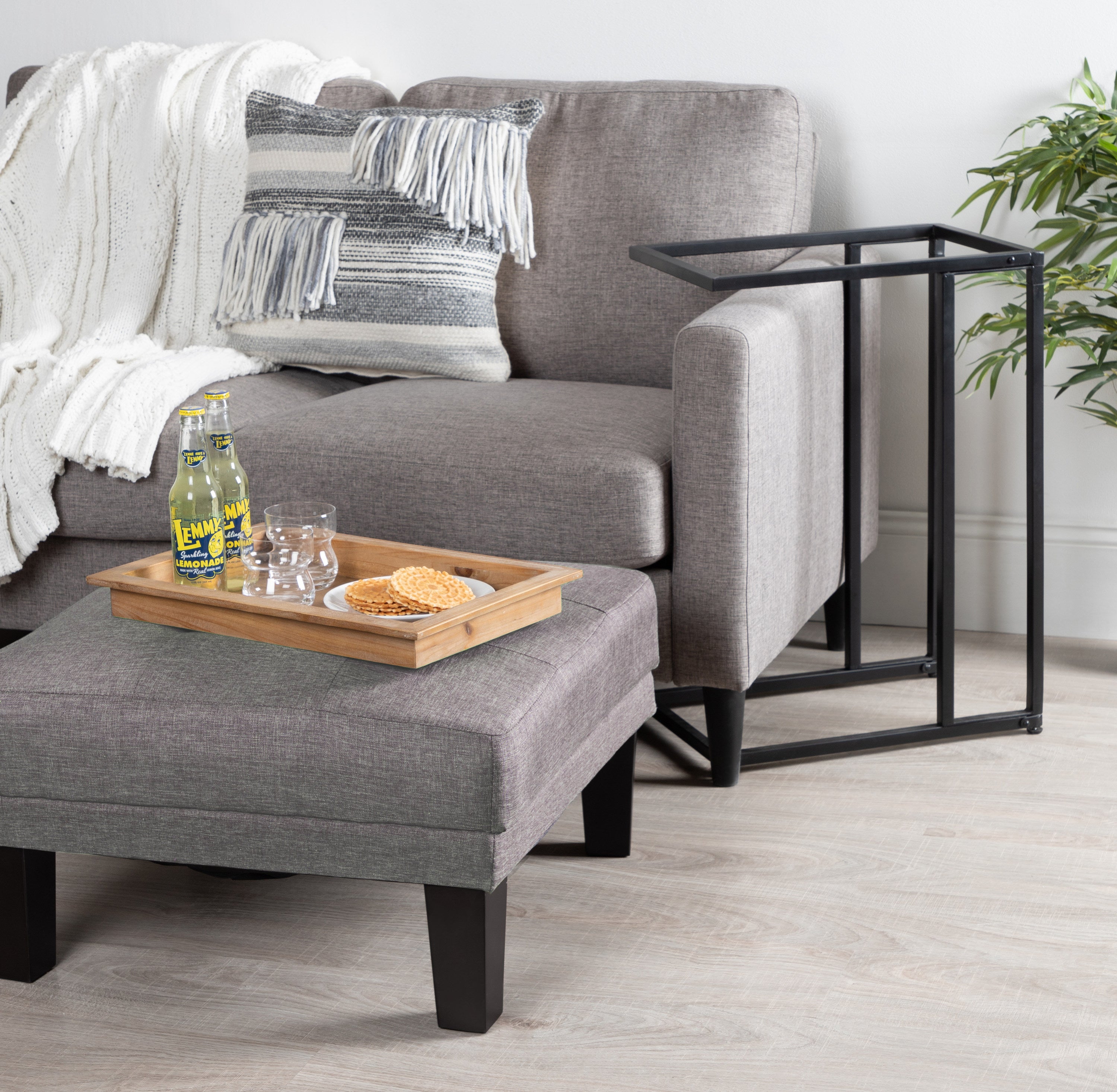Constructed of a sturdy metal base and a wooden tray top, this table was made for not only style but also convenience. With the sleek "c" shape, it easily slides under a sofa, a chair, or a bed. The wooden top removes, creating an ideal serving tray for entertaining while the metal stand is fully collapsible and easy to store.