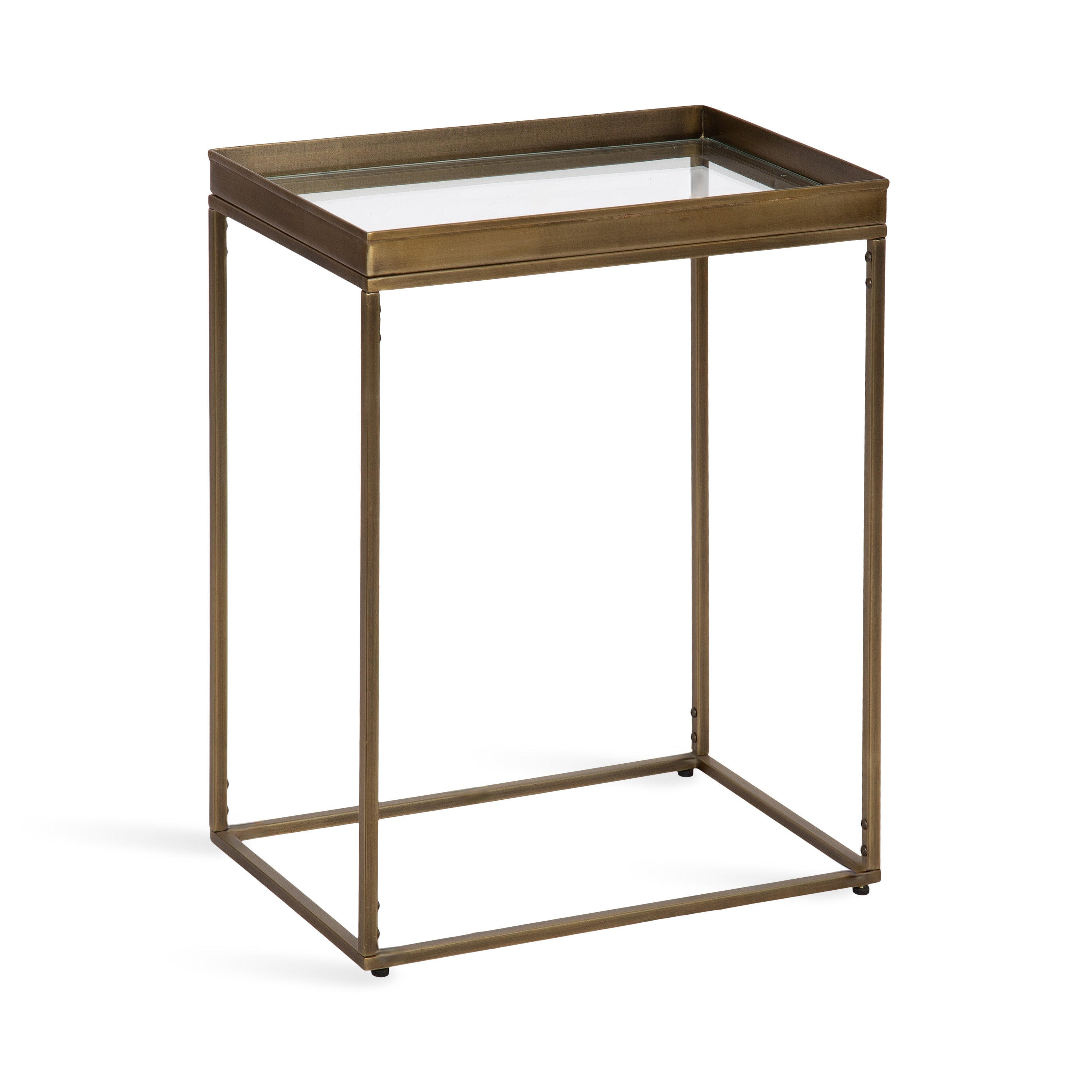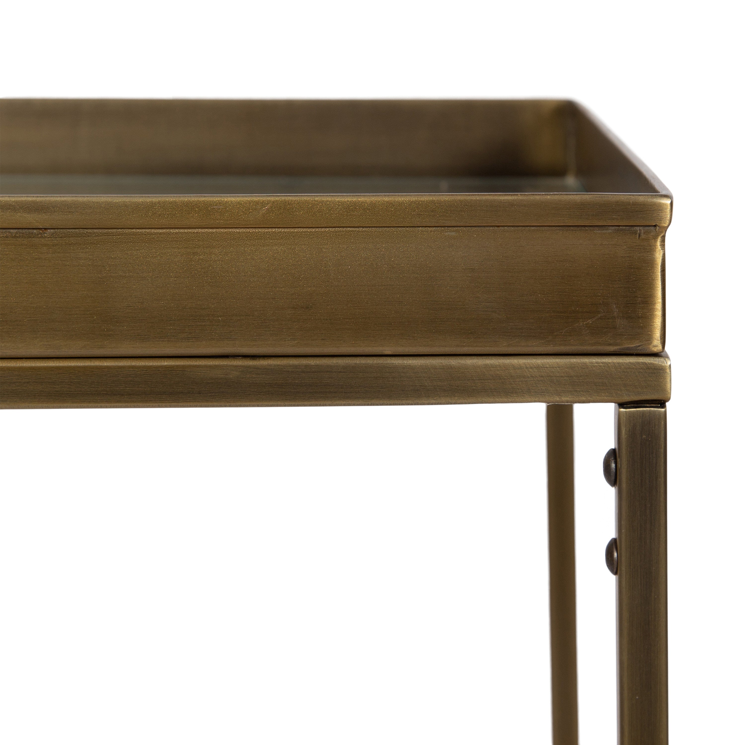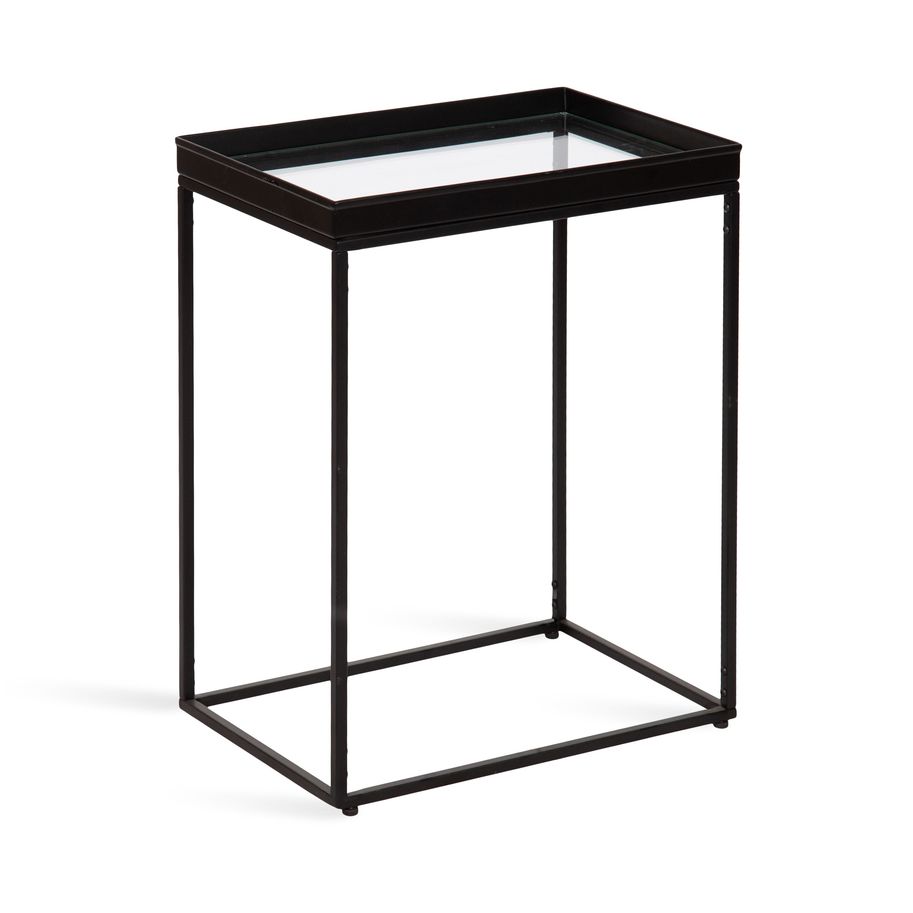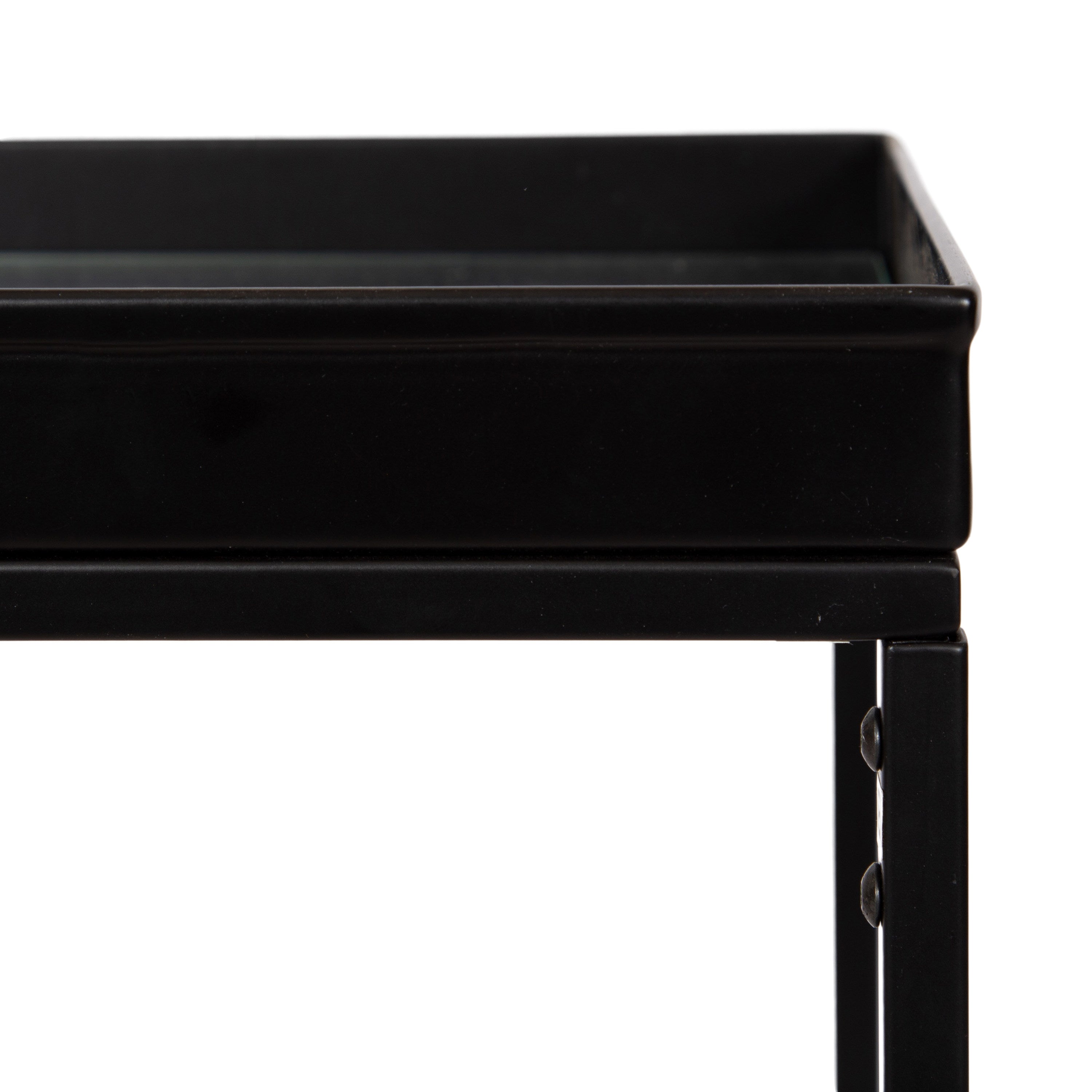 The Lonsdale end table brings classic sophistication to your home with its sharp and unique design. Inspired by modern design, this beautiful end table features a rectangular shape and clean, uncomplicated lines. To add a touch of elegance to your space, this beautiful table also has a stunning finish, commanding attention in any room of your home. The Lonsdale is crafted from a rich and premium iron material, with a recessed tempered glass tabletop to add sleekness and refinement. It's fantastic to create a small display of your favorite accent pieces, store small household necessities like media remotes, jewelry, or books, or act as a catch-all for those "out-the-door" items you need before you leave.