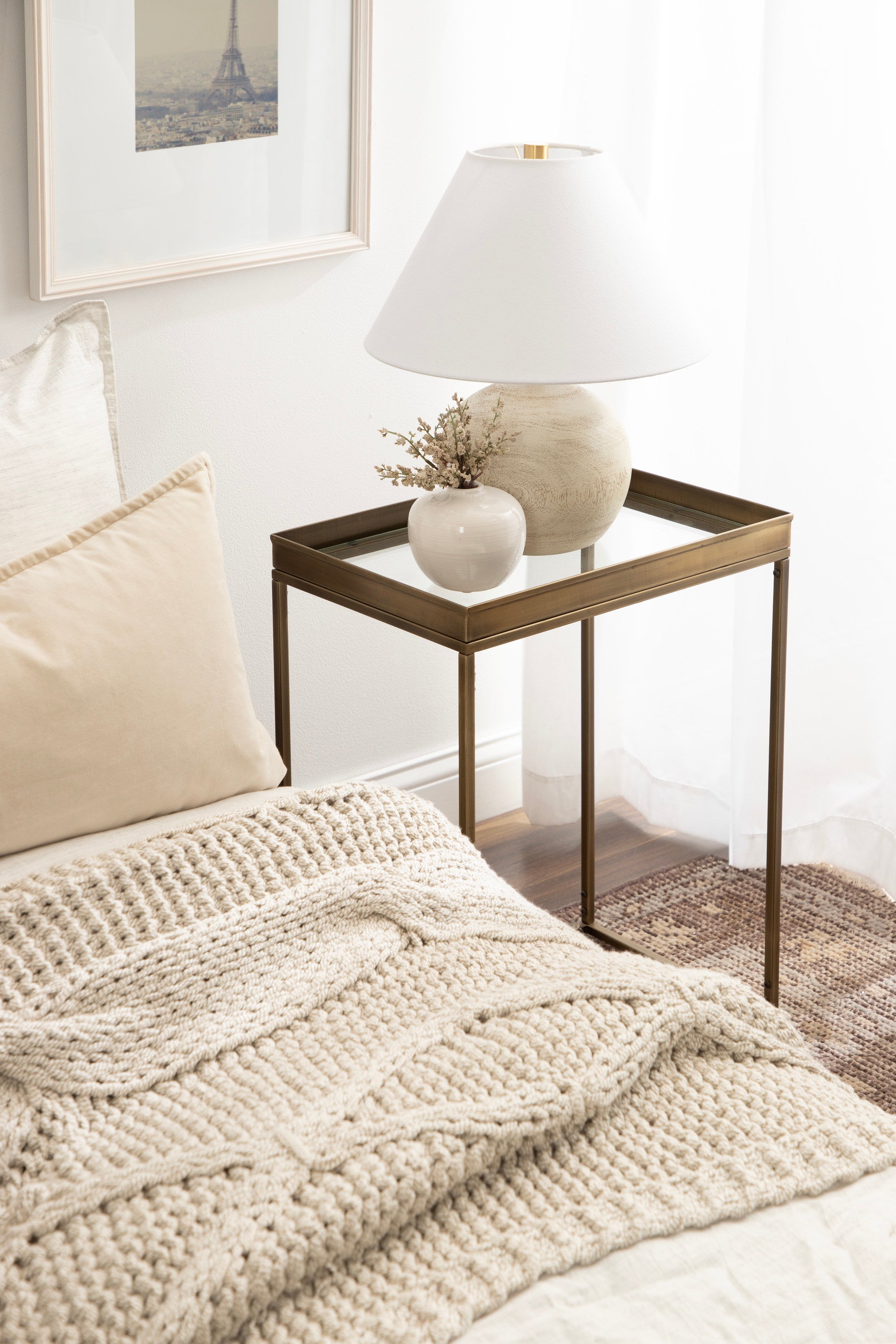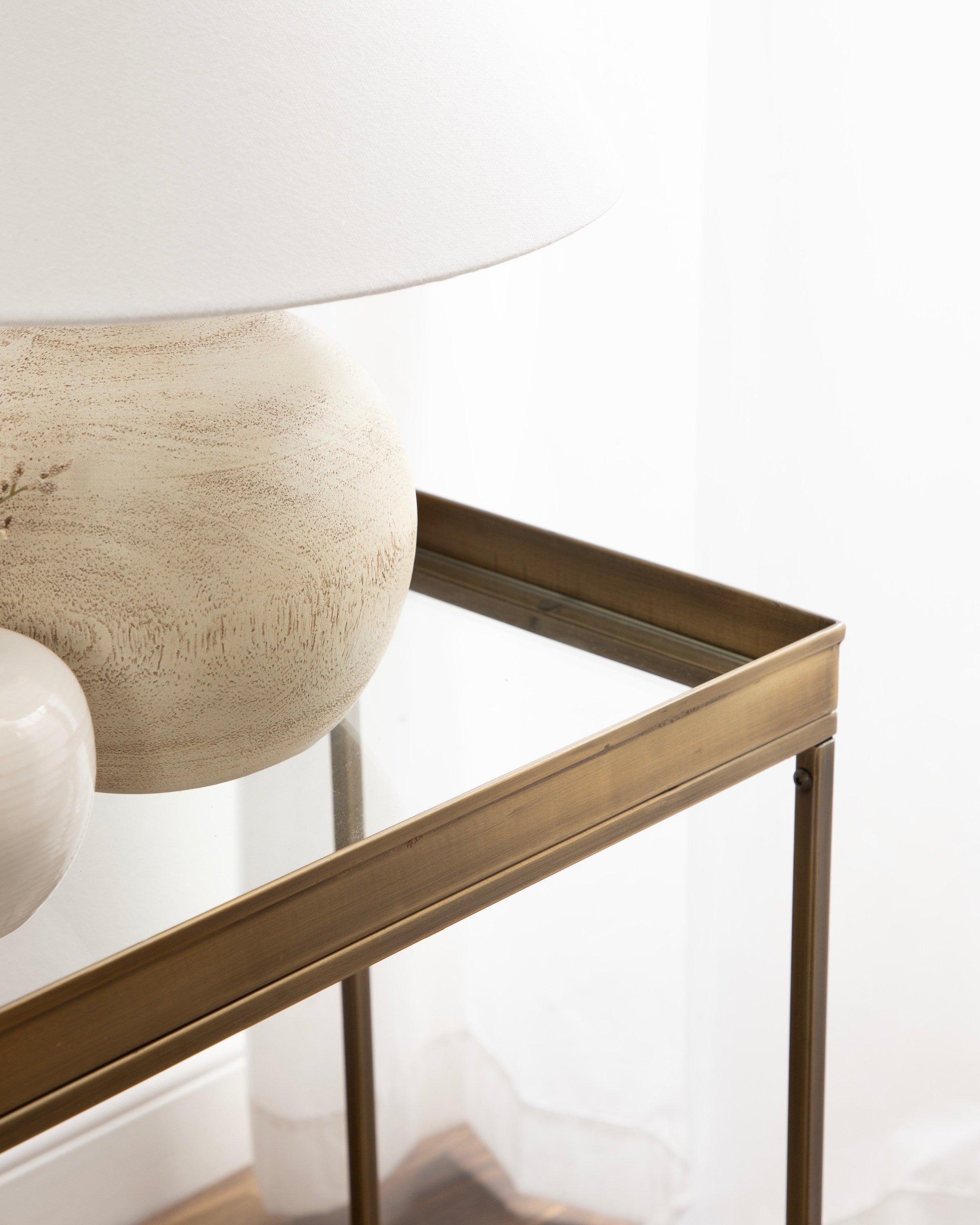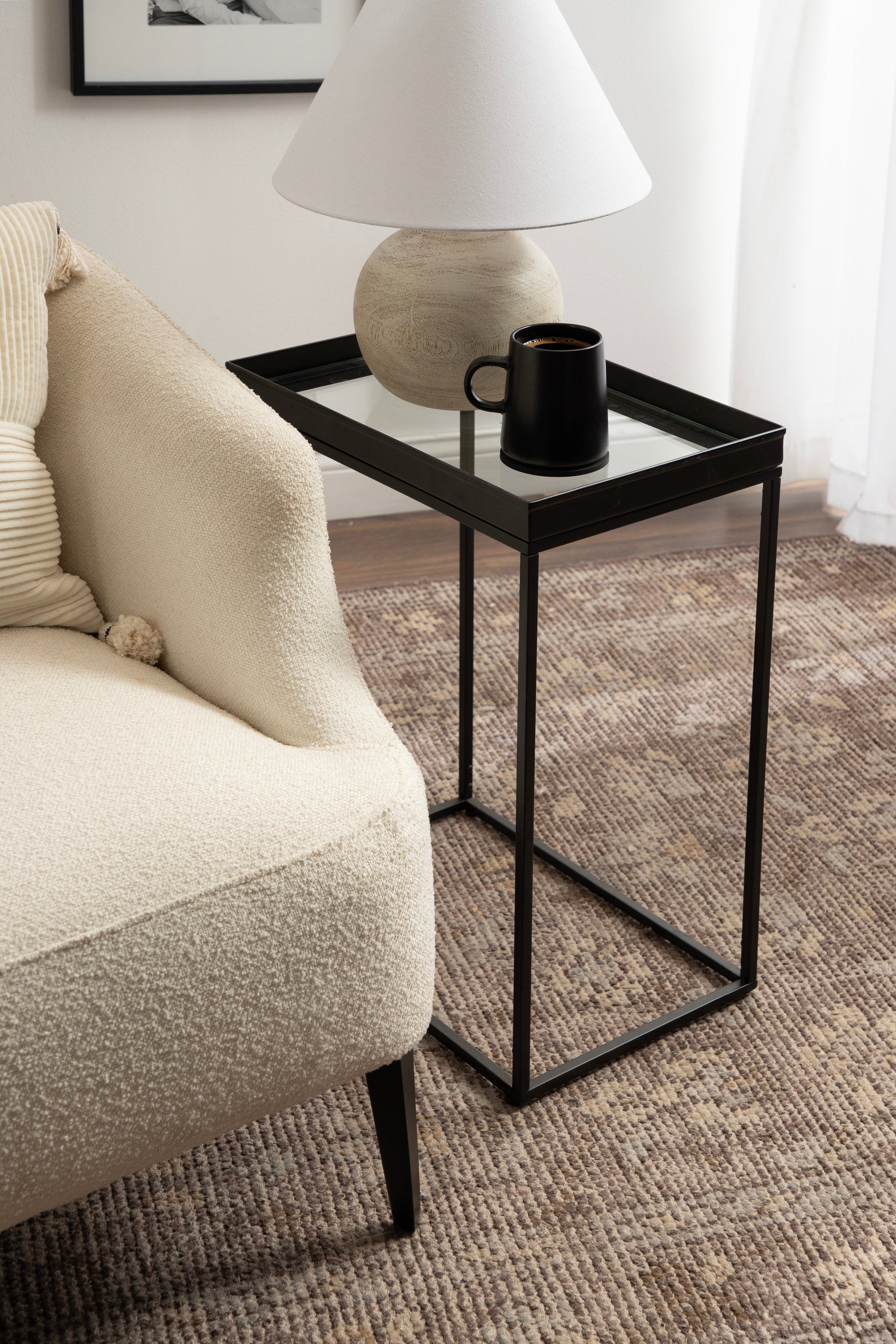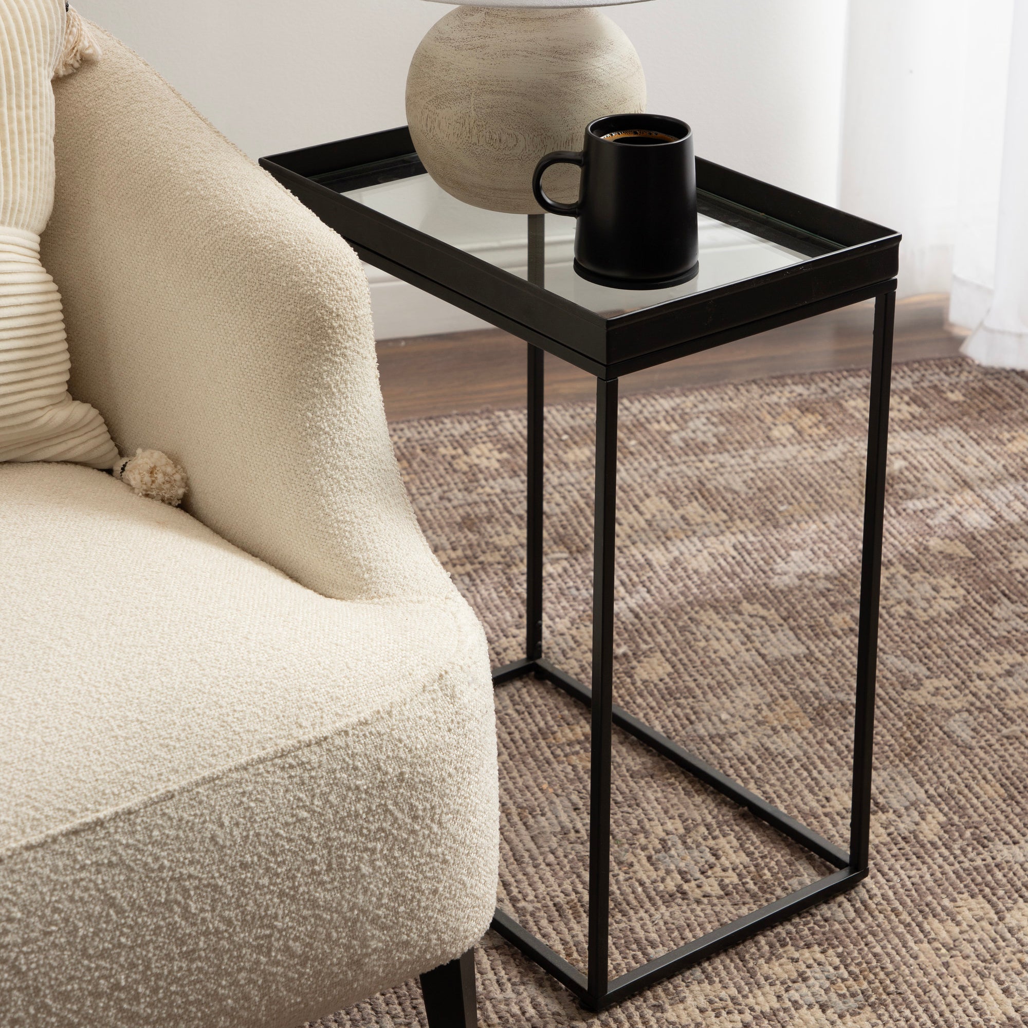 The Lonsdale end table brings classic sophistication to your home with its sharp and unique design. Inspired by modern design, this beautiful end table features a rectangular shape and clean, uncomplicated lines. To add a touch of elegance to your space, this beautiful table also has a stunning finish, commanding attention in any room of your home. The Lonsdale is crafted from a rich and premium iron material, with a recessed tempered glass tabletop to add sleekness and refinement. It's fantastic to create a small display of your favorite accent pieces, store small household necessities like media remotes, jewelry, or books, or act as a catch-all for those "out-the-door" items you need before you leave.