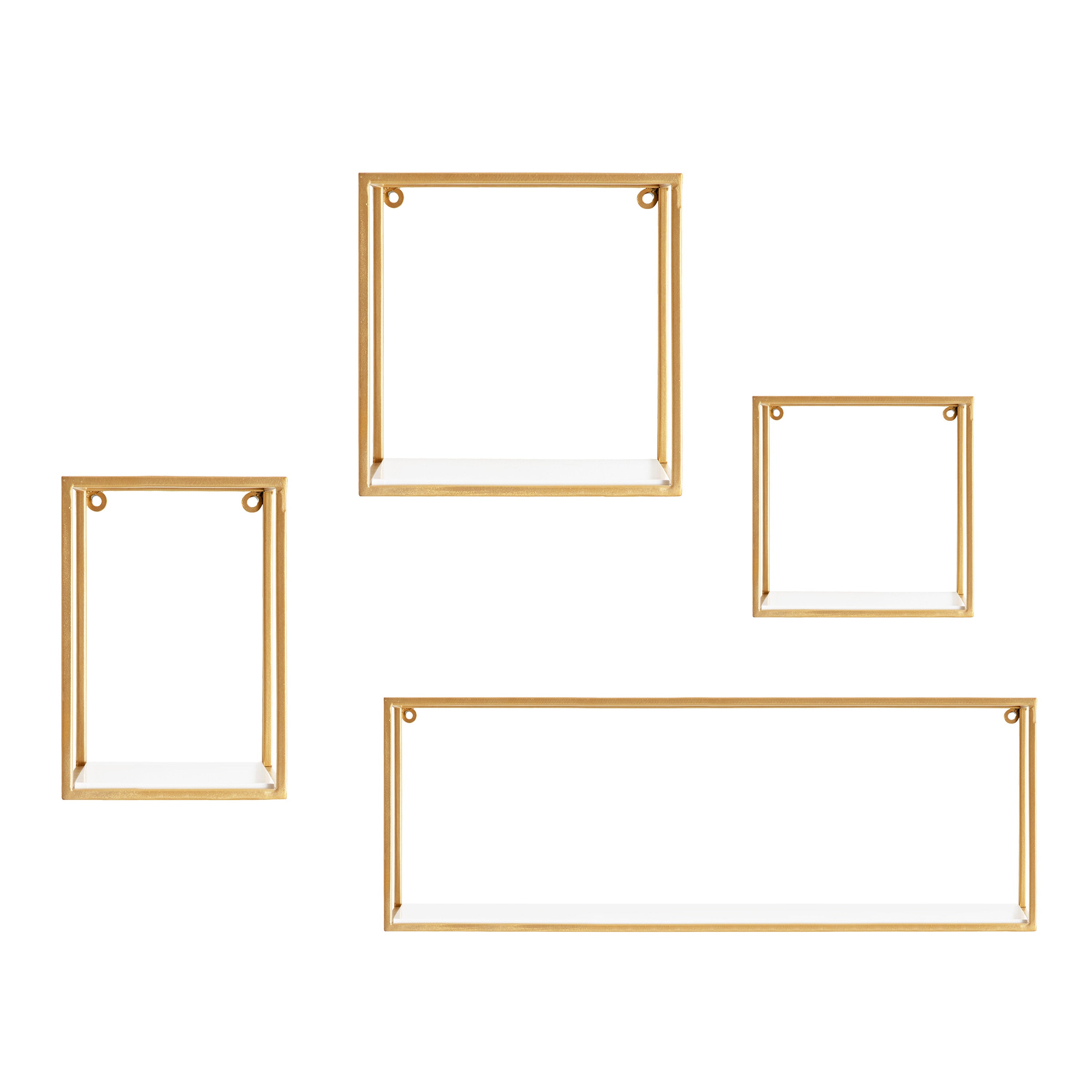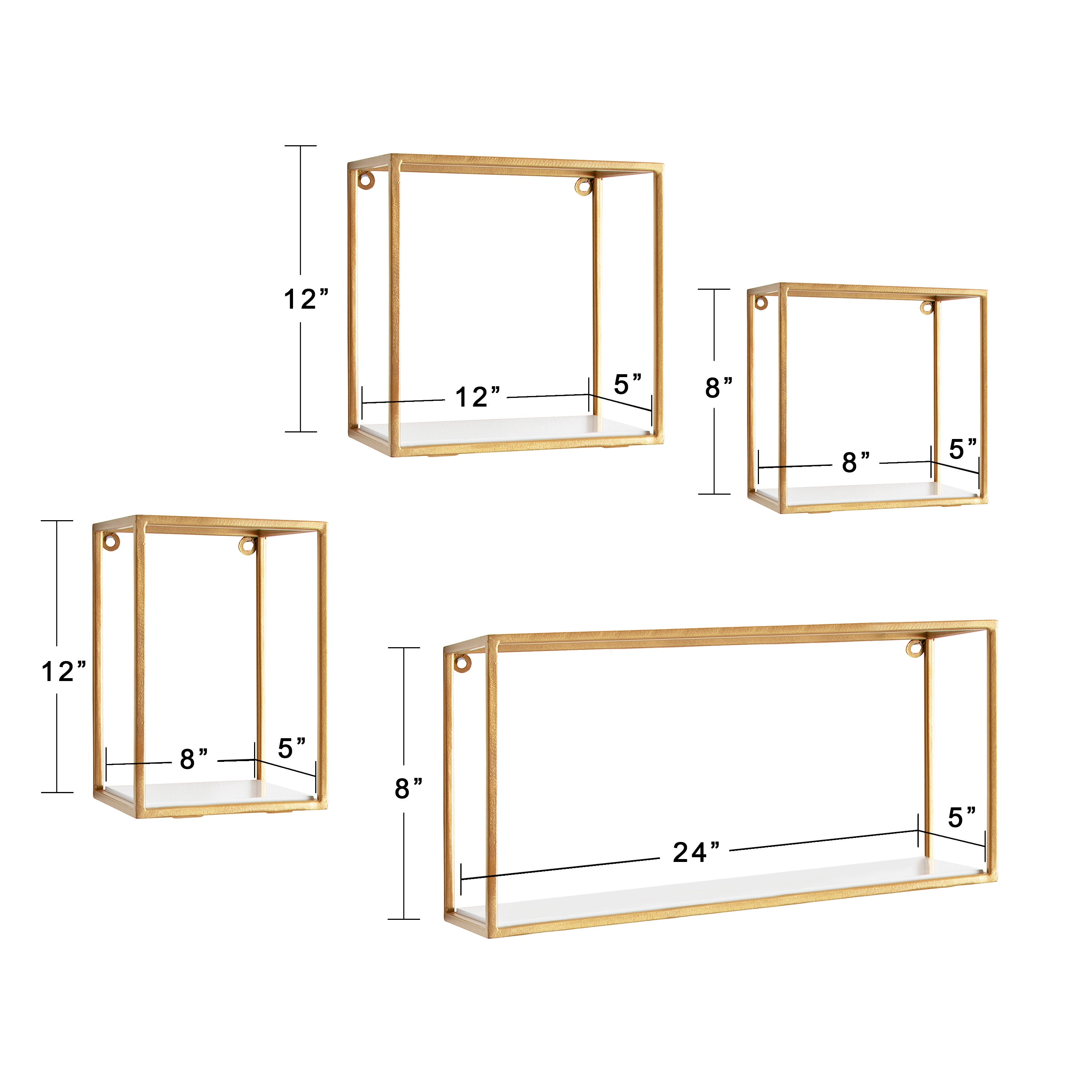 Create an unforgettable, industrial wall display with this chic set of shelves. The Mallory wall shelves feature a variety of sizes with a 5" shelf depth for small plants, photos, lotions, and more. It's an excellent way to showcase your prized keepsakes while also creating an industrial wall display.