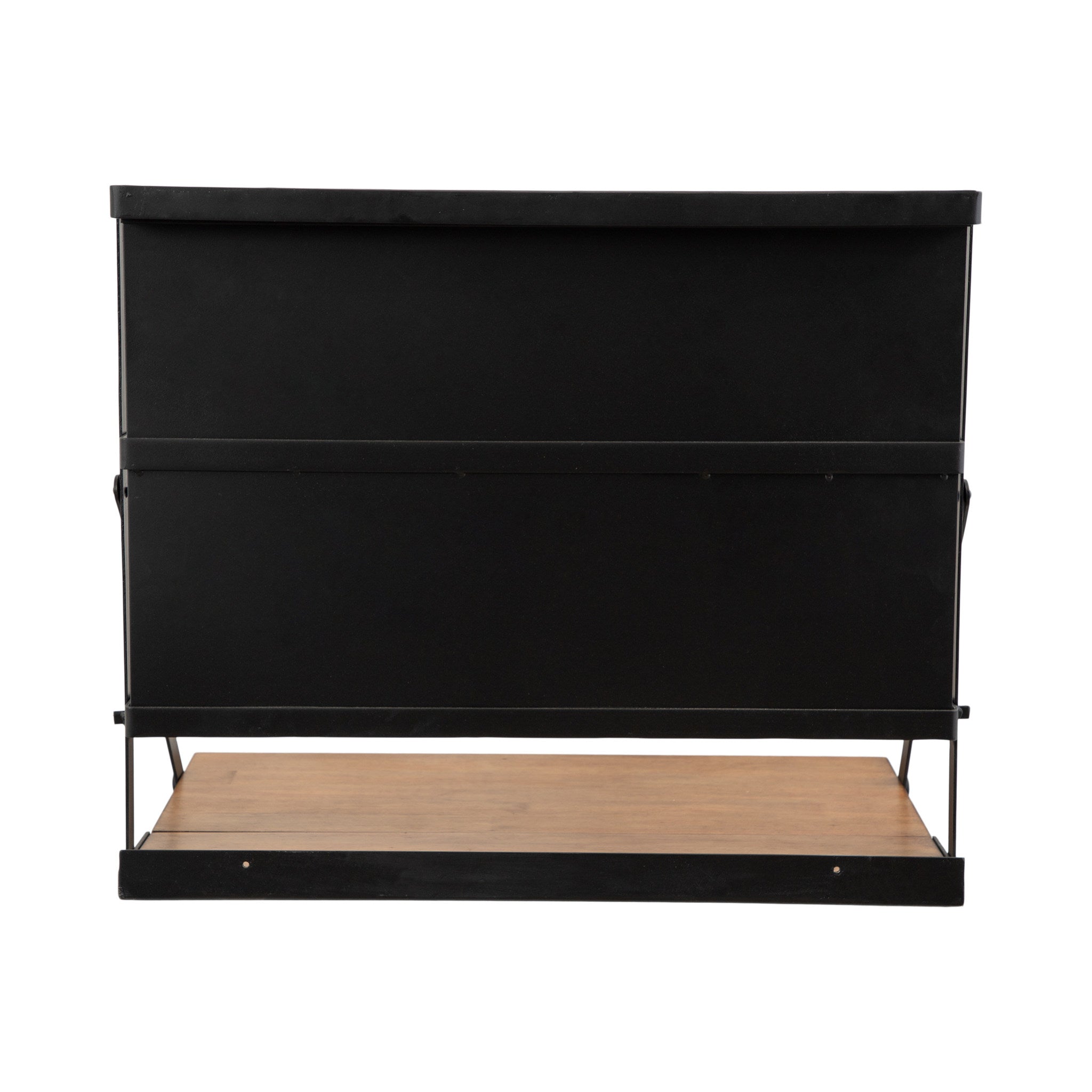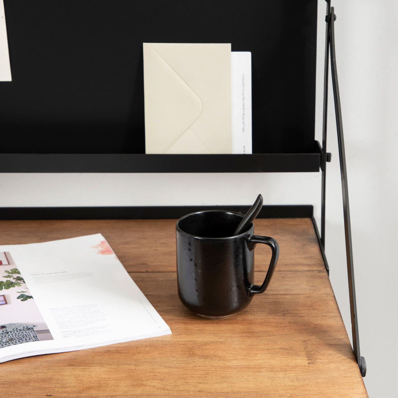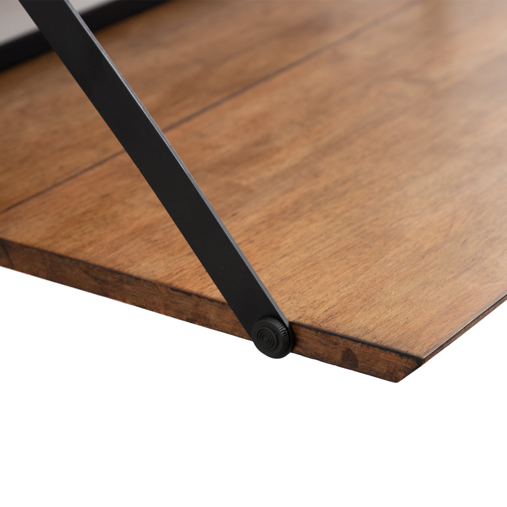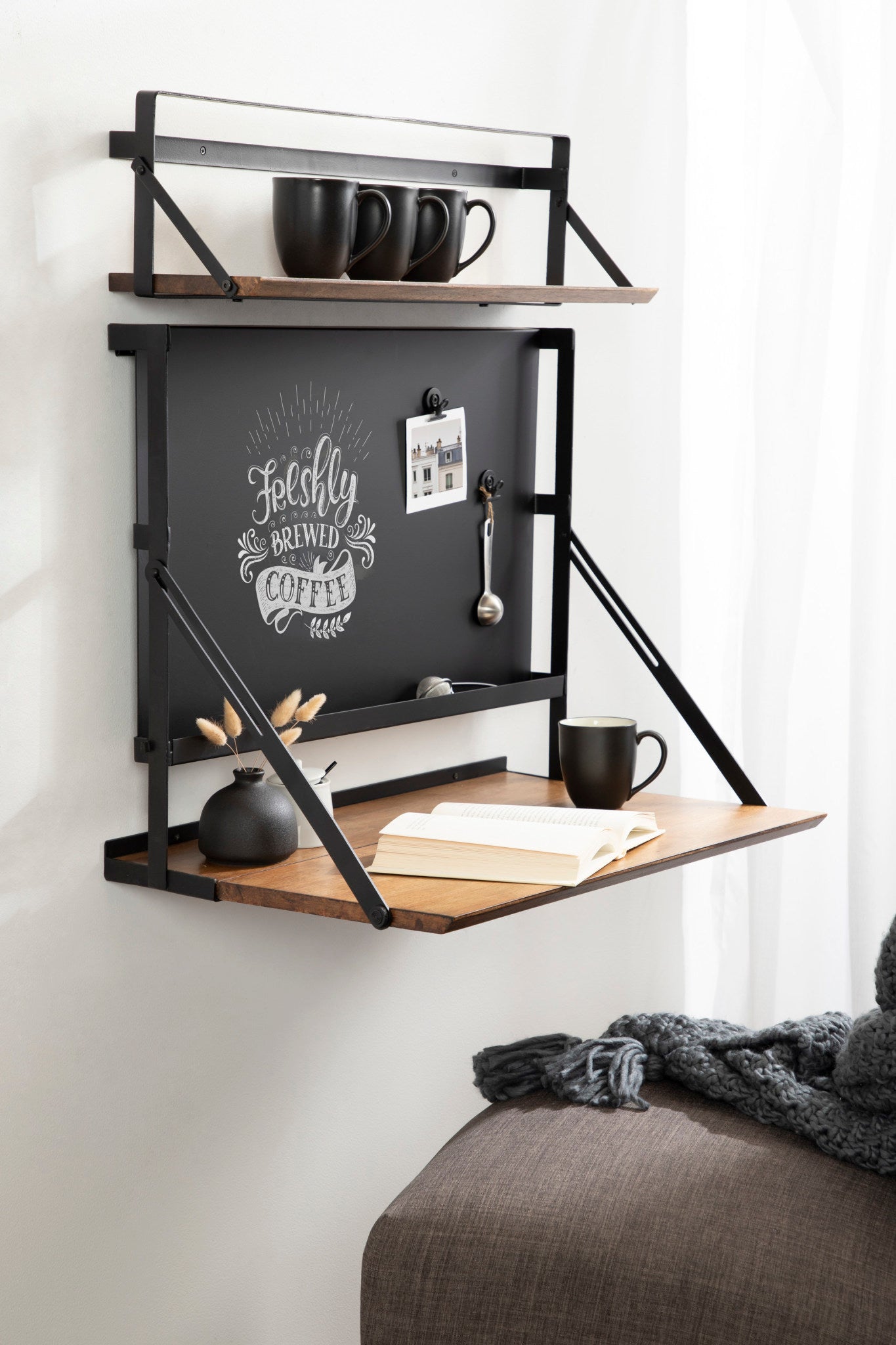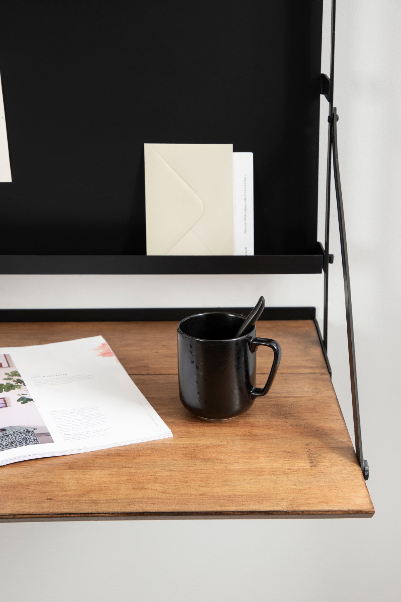 Thanks to the McAllister's unique and purposeful design, you can get a highly-versatile floating desk that provides your space with style, charm, and function. The McAllister floating desk is an excellent solution for creating a functional home office without taking up too much floor space. This modern, foldable desk features a tabletop that folds up, plus a magnetic chalkboard and shelves for display and storage. Each McAllister desk is crafted with robust wood and resilient iron, making this desk unique in woodgrain and finish.