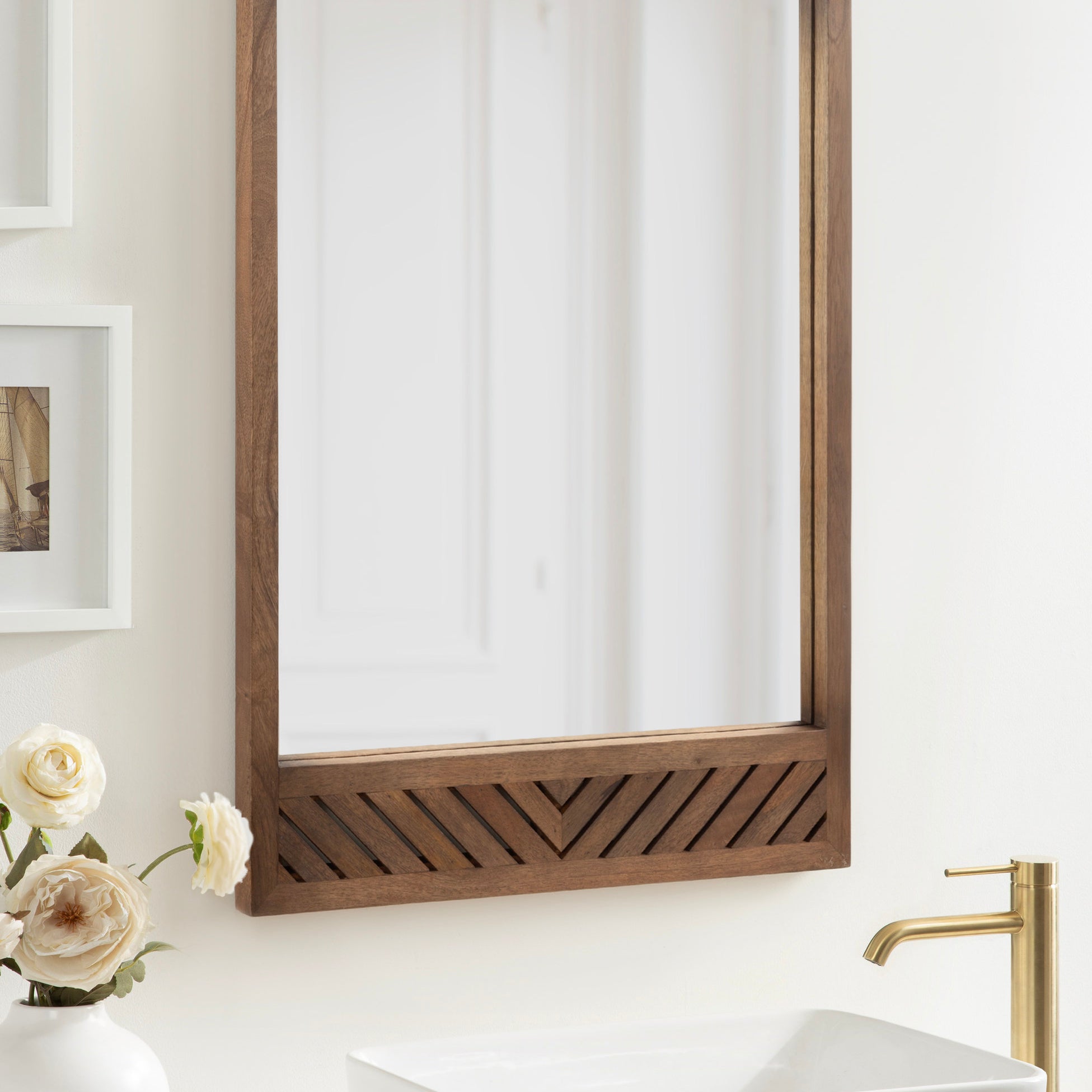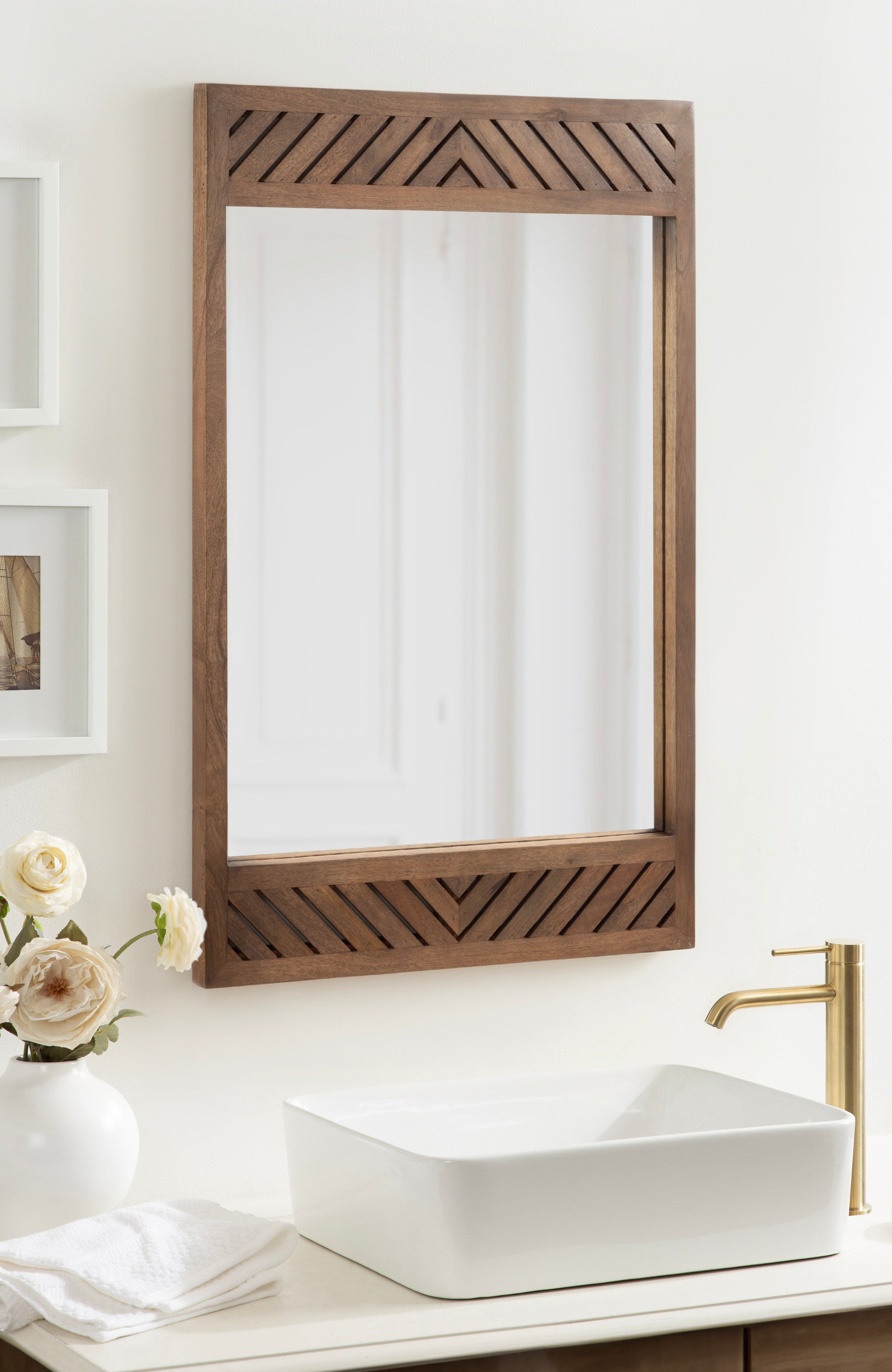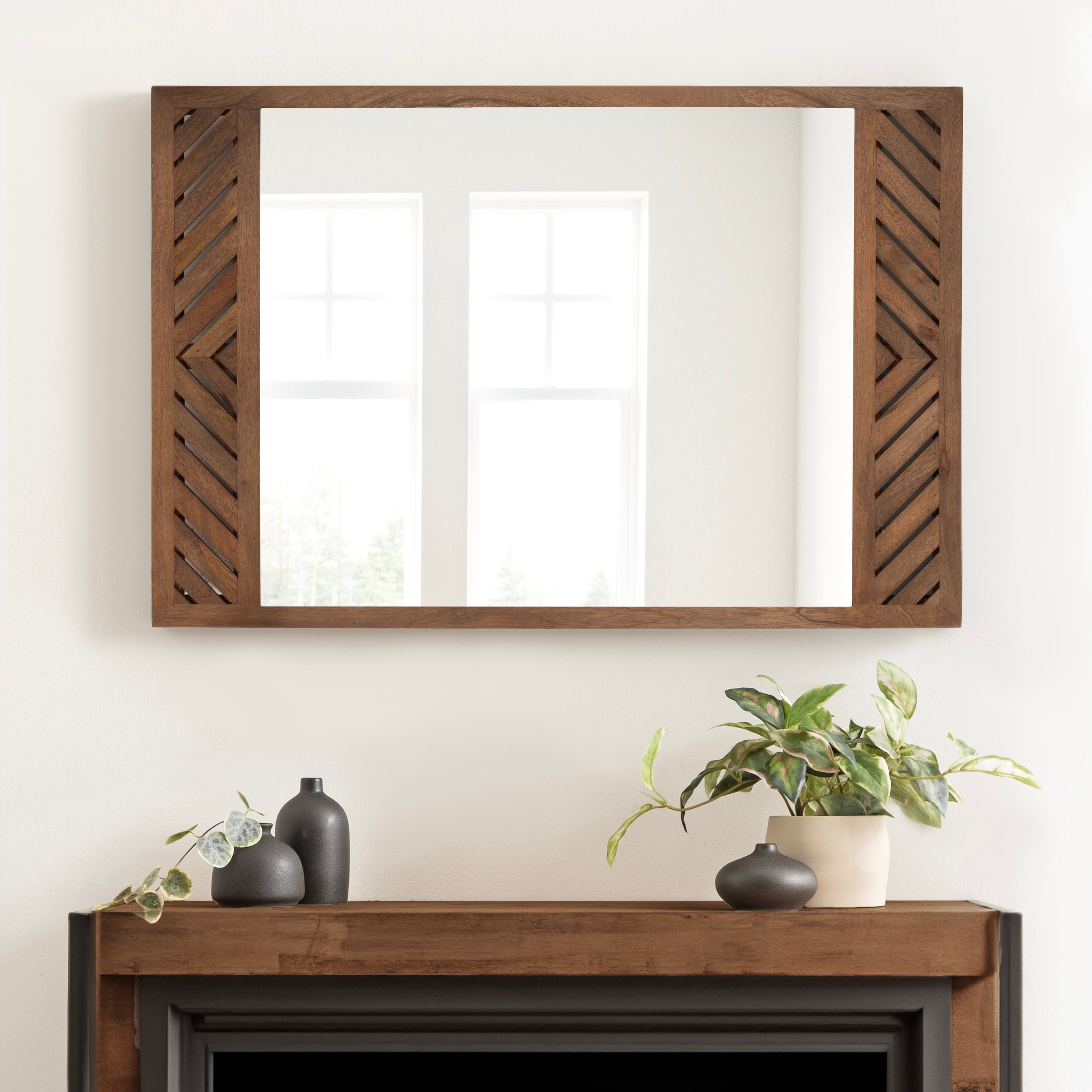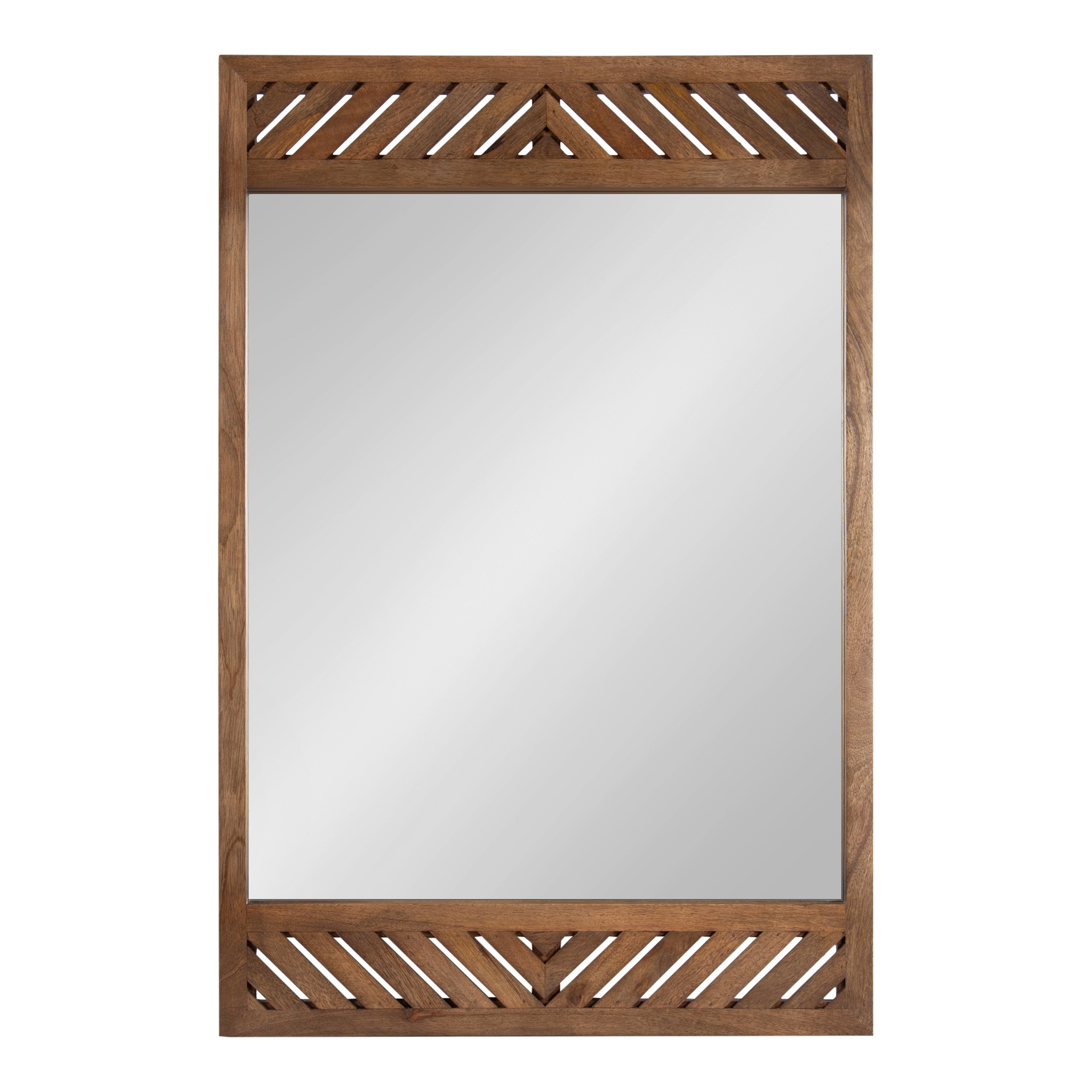 Transform your space with the Kate and Laurel Mezzeta rectangle mirror, a perfect blend of simplicity and elegance. Its unique slatted chevron pattern and rectangular shape make it a versatile piece that fits effortlessly into various decor styles, from modern to transitional. Whether you’re updating your bathroom with a new vanity mirror or adding a statement piece to your fireplace mantel, this wall mirror offers both style and functionality. Use it in your bathroom to add a touch of natural elegance to your daily routine, or place it in your bedroom or hallway for a stylish and functional accent. Wherever you choose to hang it, the attached D-ring hangers allow you to hang this mirror vertically or horizontally to adequately fit your available wall space.