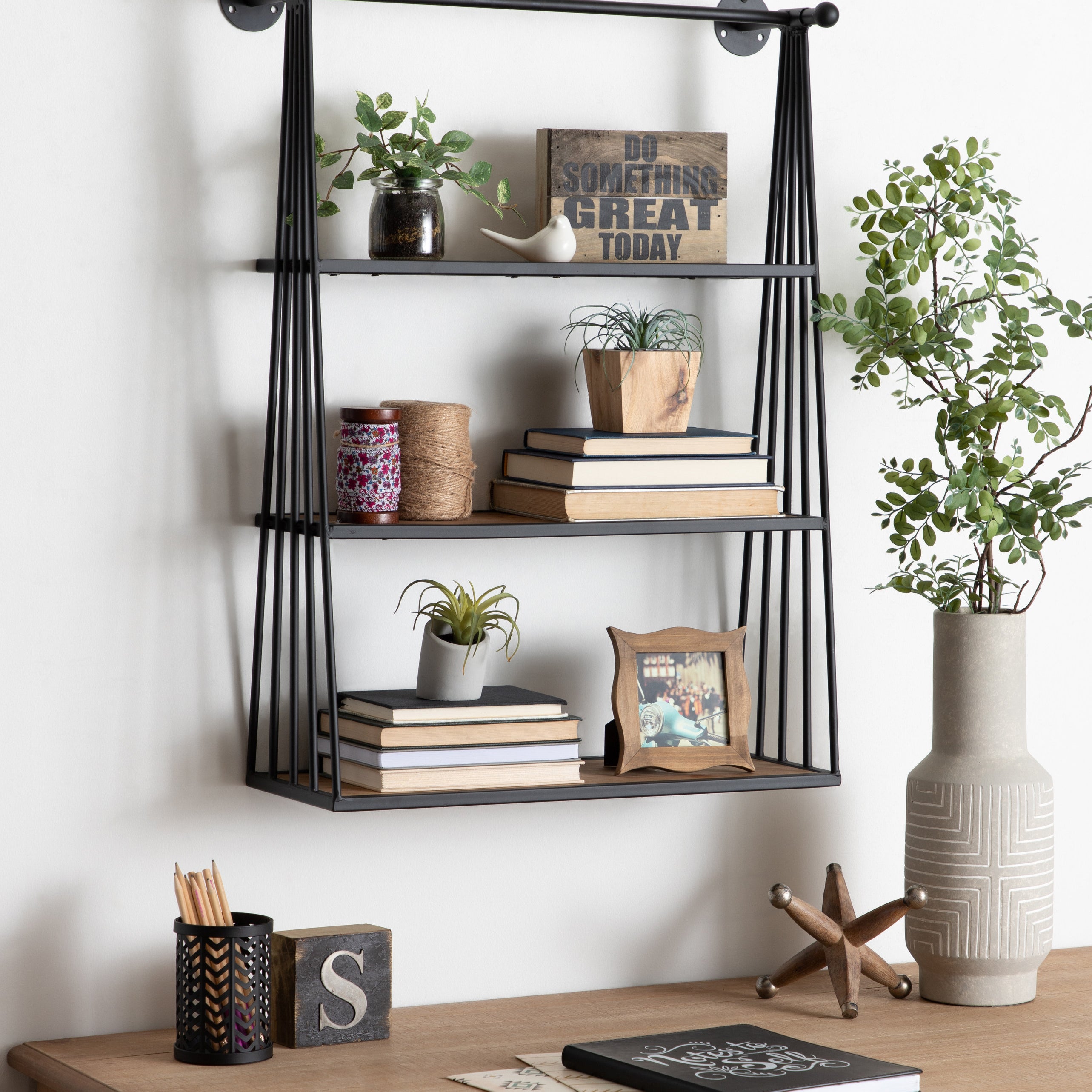 The Nevin Hanging Wall Shelf is a modern accent piece with a functional purpose. With graduated shelf sizes and stylish design, the Nevin shelf is the perfect storage space for small items in your office, bedroom, or bathroom. Save desk or counter space while adding a touch of modern to your workspace or living area.
