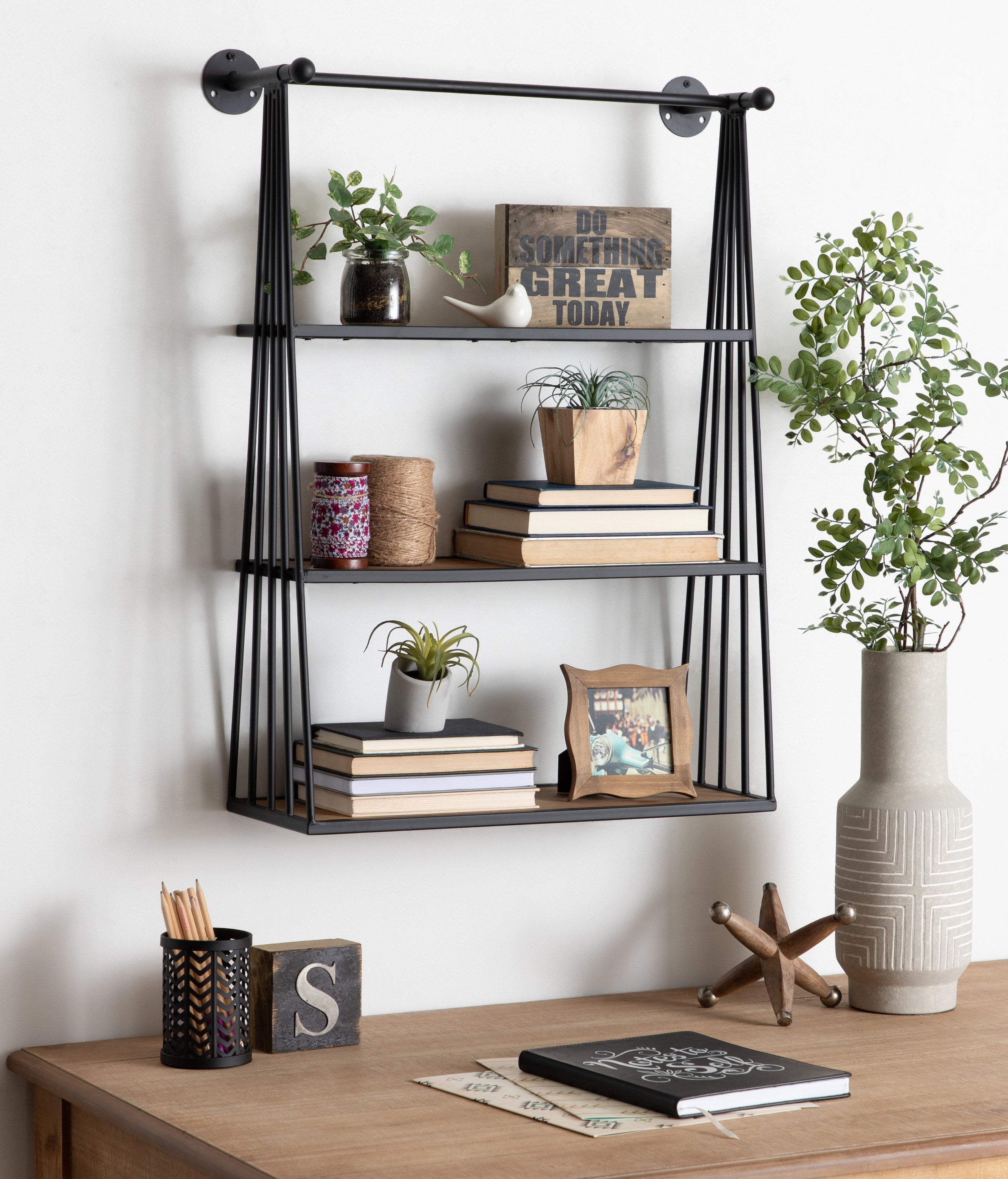 - Three graduated shelves are perfect for displaying small collectibles, picture frames or books