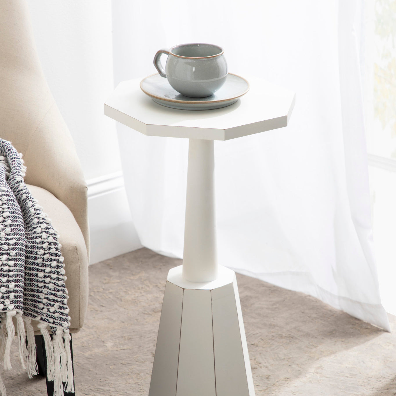 Create an atmosphere of warmth and coastal flair with the Octavia drink table. The Octavia features a farmhouse-inspired, distressed finish to create that antique look you crave. This wood table makes a lasting impression with a 11.25-inch diameter made to display plants and candles or serve cocktails and other beverages.