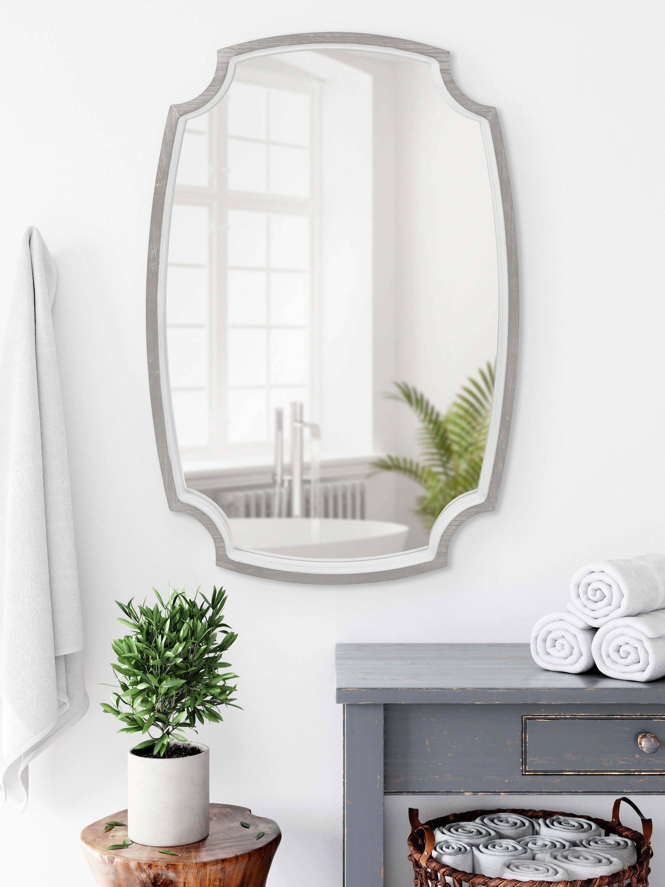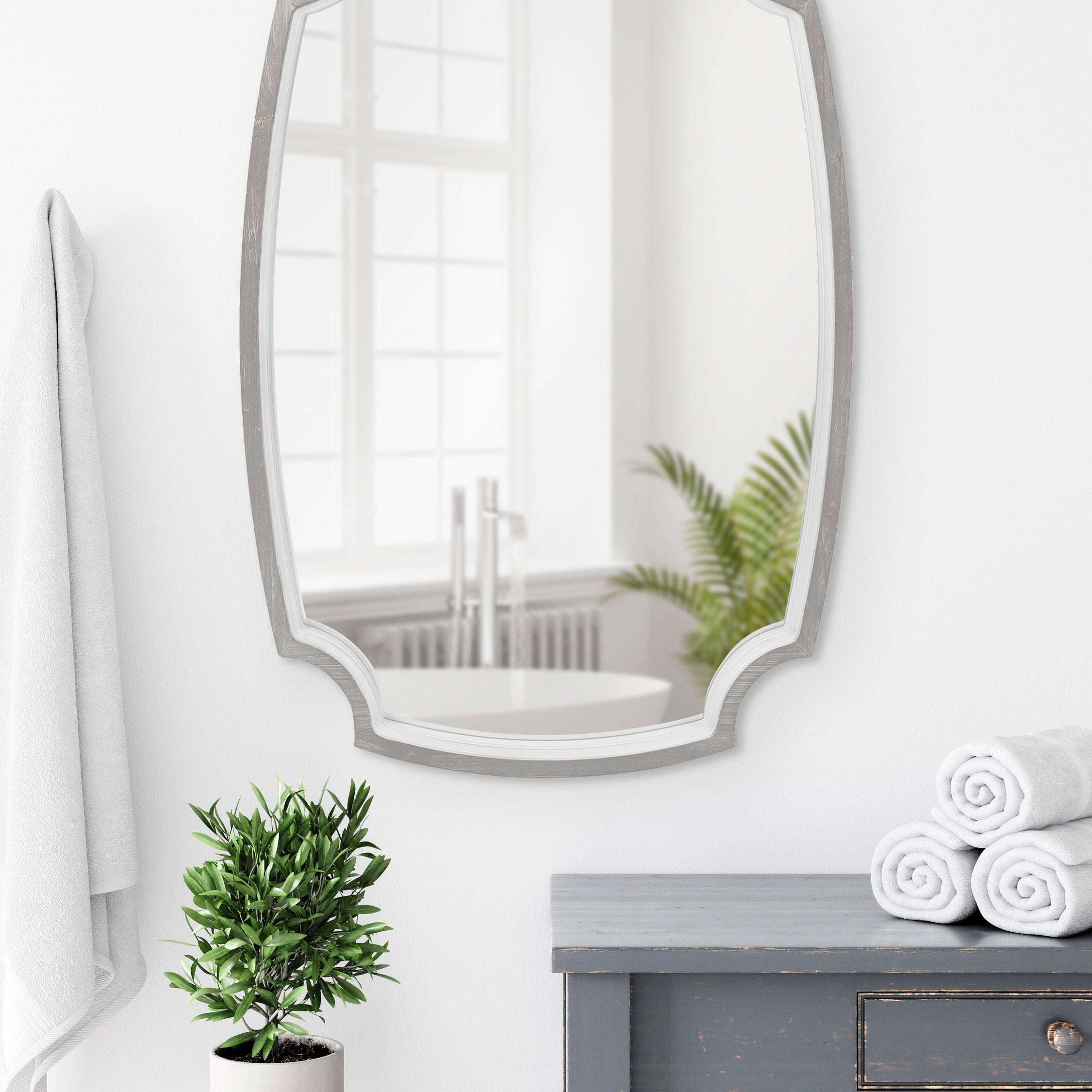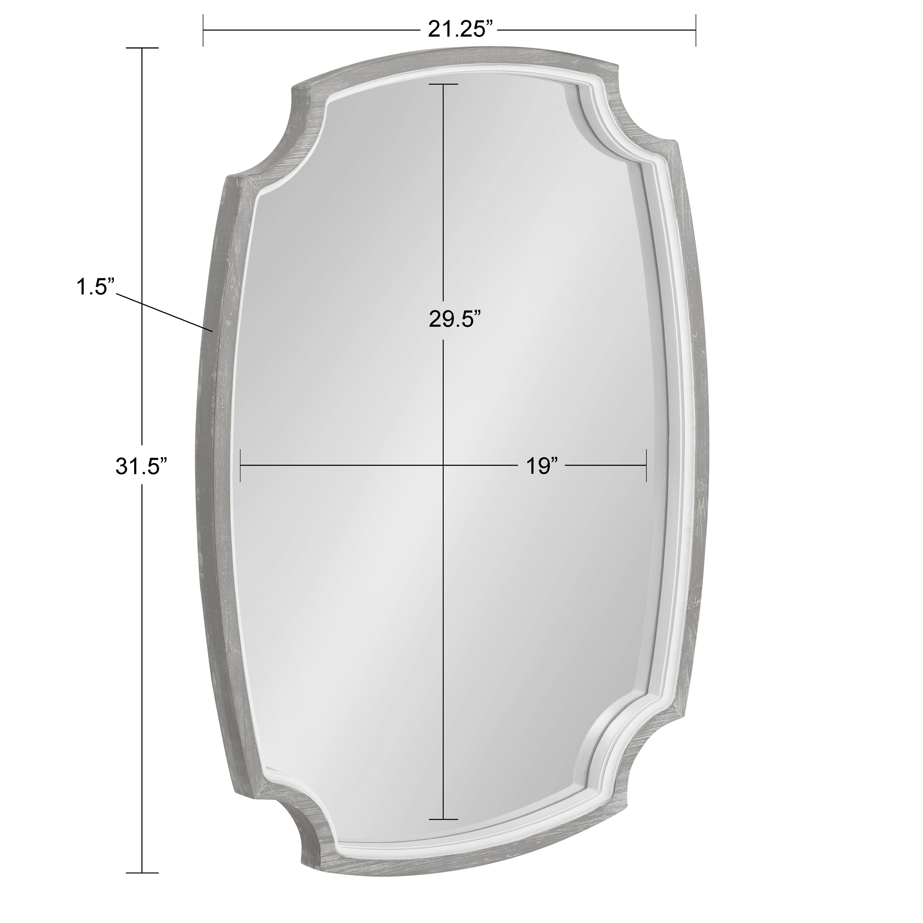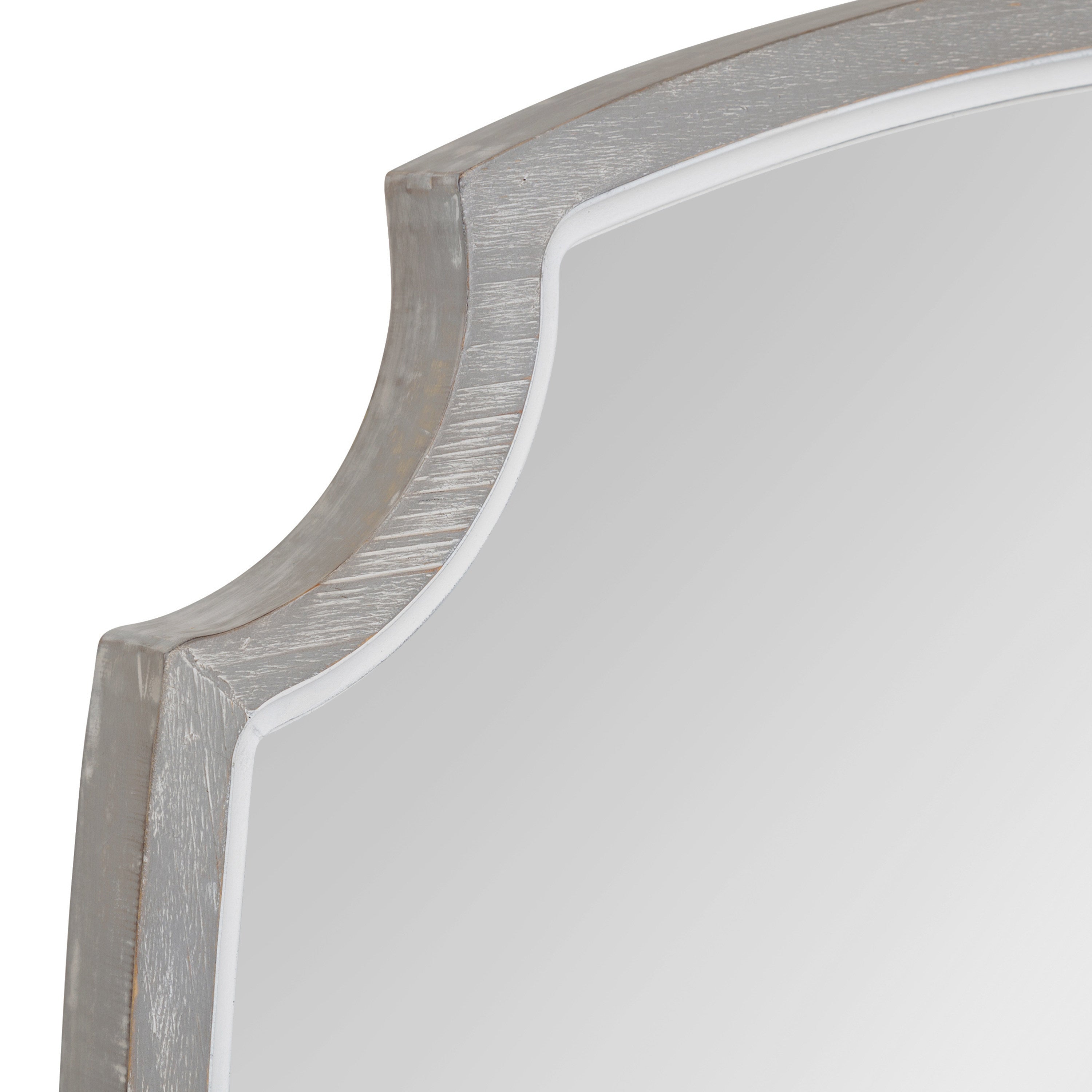 The sophisticated Orianne wall mirror brings a subtle coastal vibe to any wall with its scalloped corners and beautiful finish. Its wooden frame is distressed by hand to deliver a one-of-a-kind, rustic look. The large surface area is perfect for use as a bathroom mirror or a decorative accent piece for any wall.