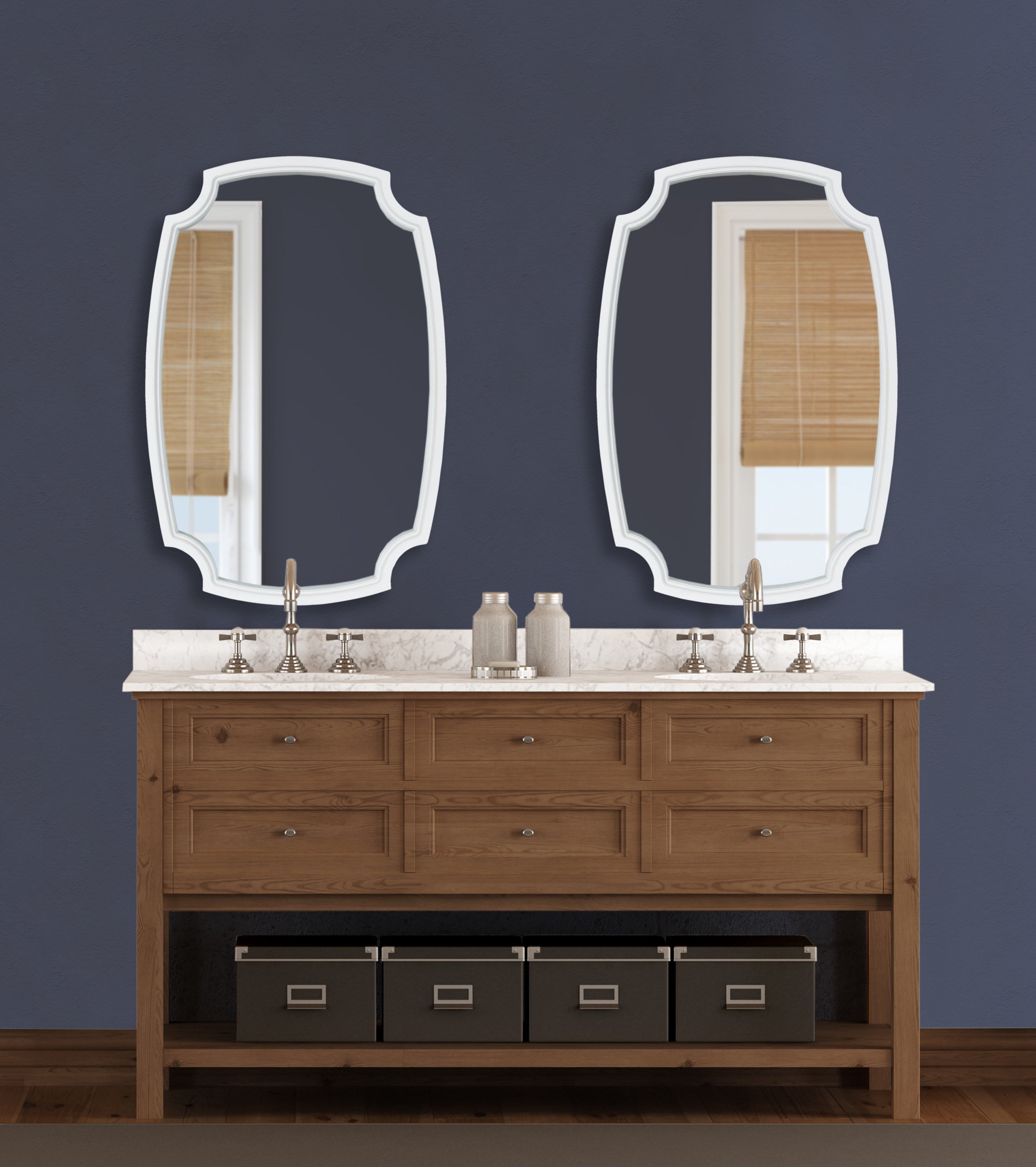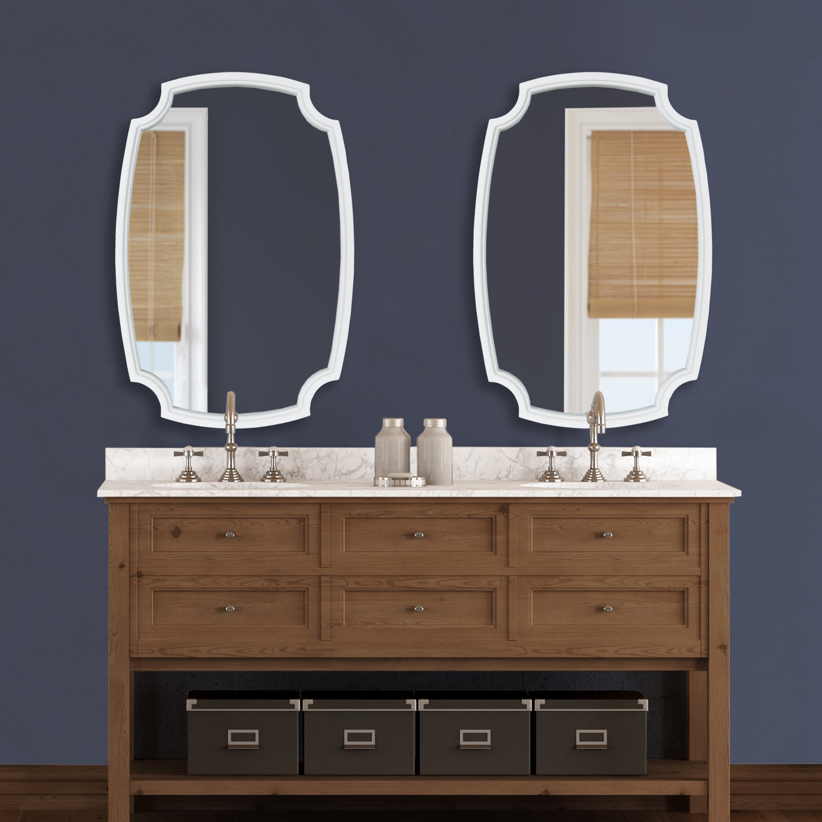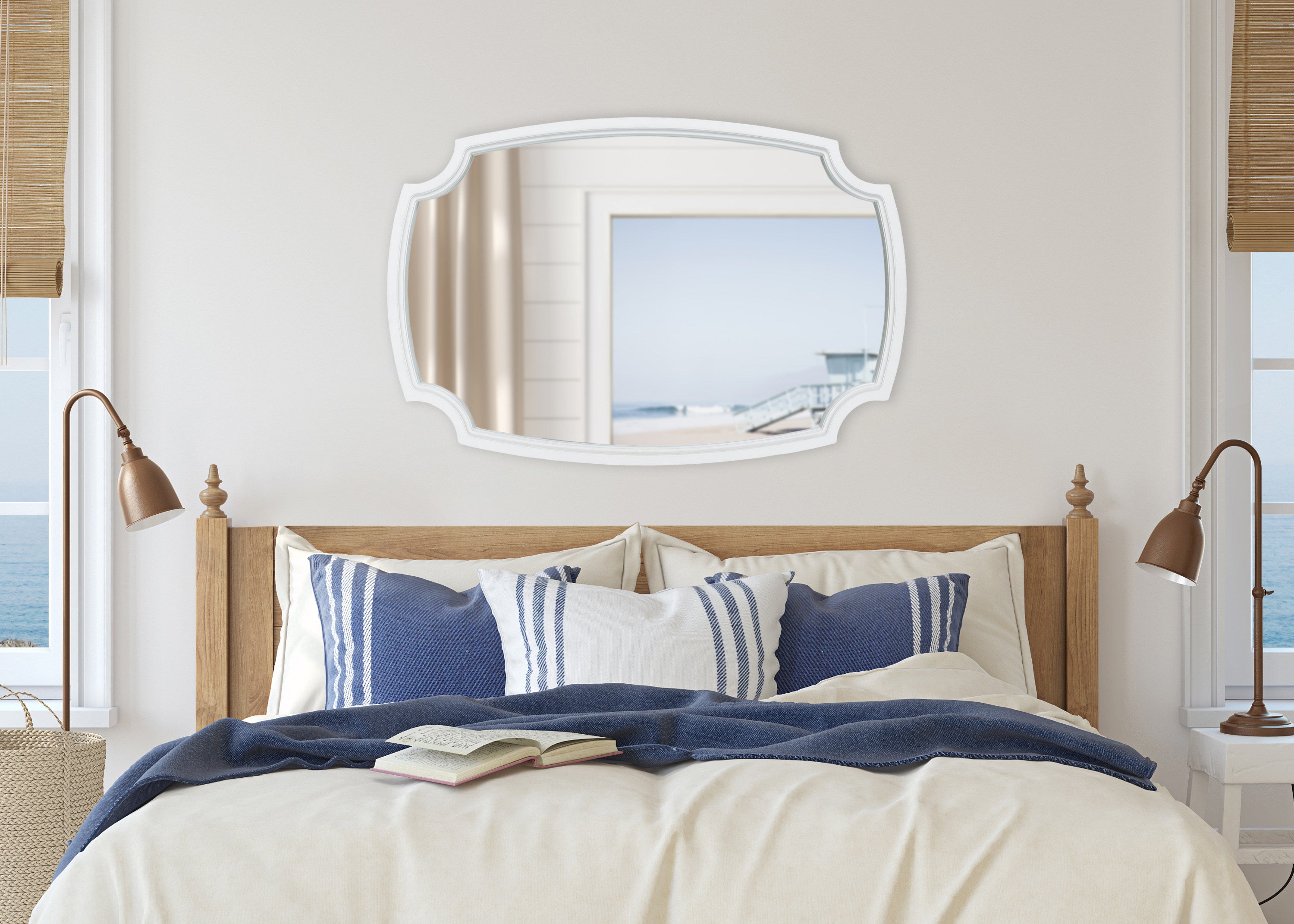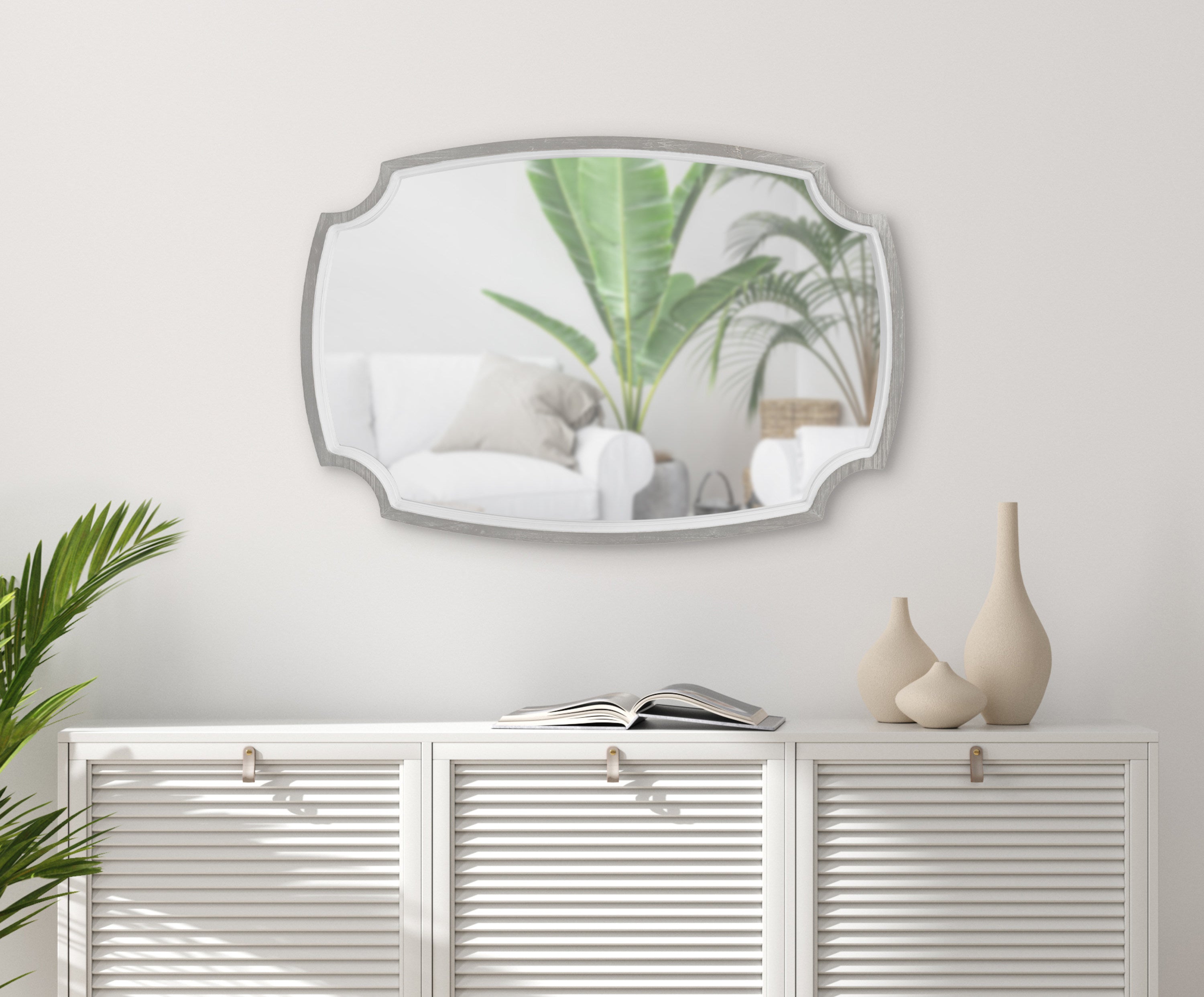 The sophisticated Orianne wall mirror brings a subtle coastal vibe to any wall with its scalloped corners and beautiful finish. Its wooden frame is distressed by hand to deliver a one-of-a-kind, rustic look. The large surface area is perfect for use as a bathroom mirror or a decorative accent piece for any wall.