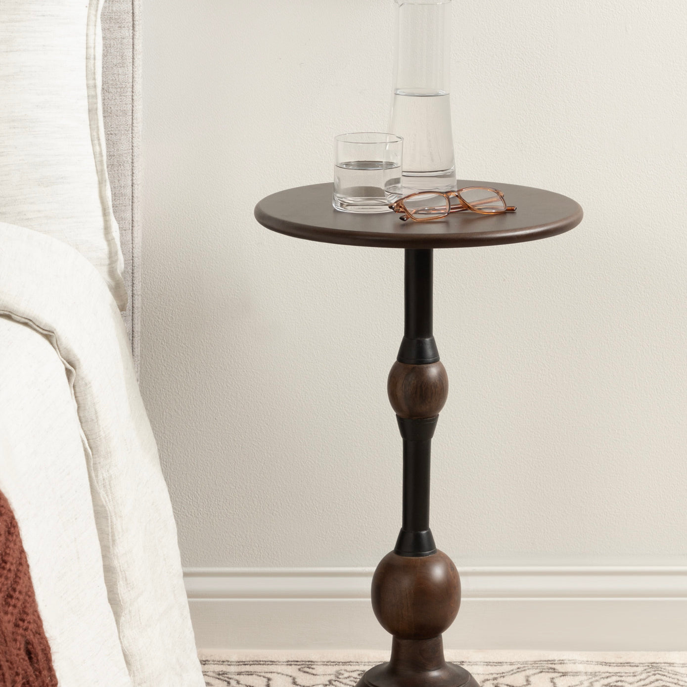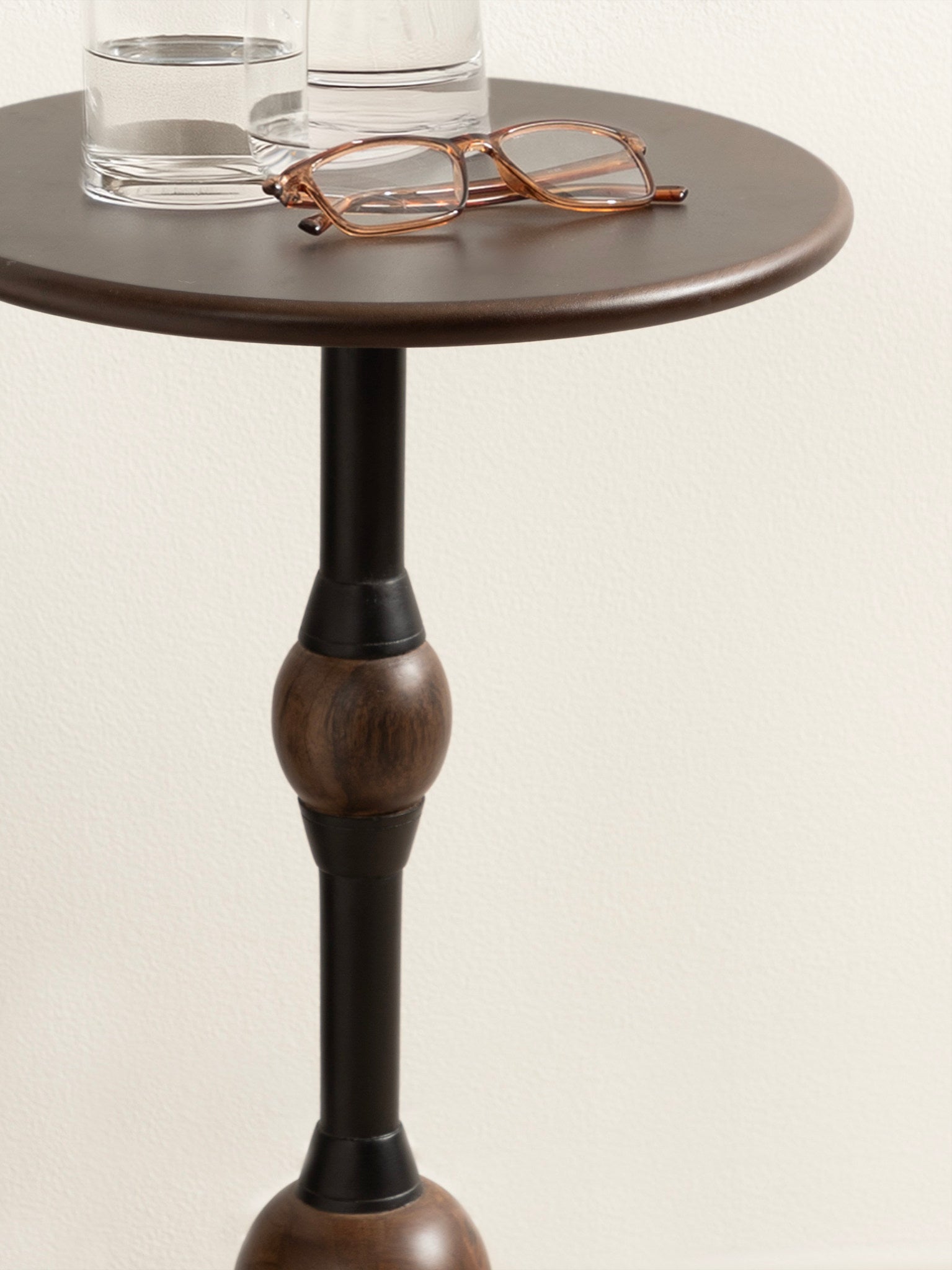 Made from high-quality mango wood, this side table offers a stylish turned leg design and a sturdy, reliable surface to hold your drinks, plants, or any items you may need within reach. The refined two-tone finish woven throughout the table provides an elegant and timeless look that complements any decor style. Not only is this wooden end table functional and stylish, but it's also durable and long-lasting. The mango wood construction ensures that it can withstand regular use and will feature unique variations within the woodgrain based on its organic wood structure. Plus, its useful size makes it easy to move around and store when not in use. This versatile table is perfect for enjoying a relaxing evening at home or hosting a gathering with friends and family. The two-step assembly is quick and easy with no hardware needed. The instructions are clear and concise, making it a breeze to put together in just a few minutes.