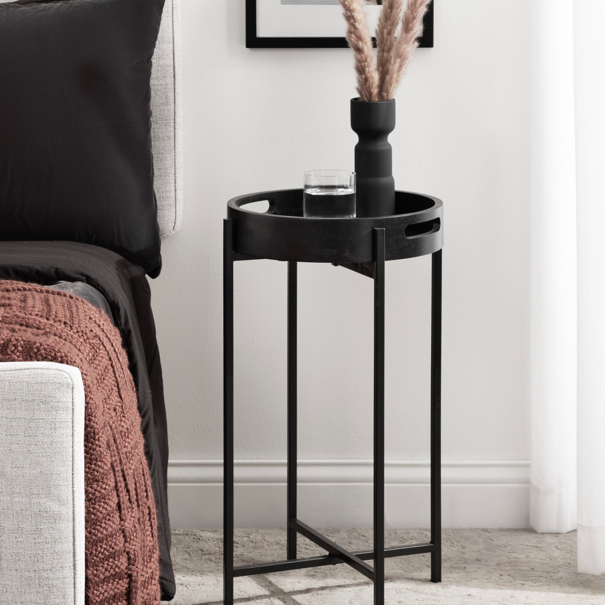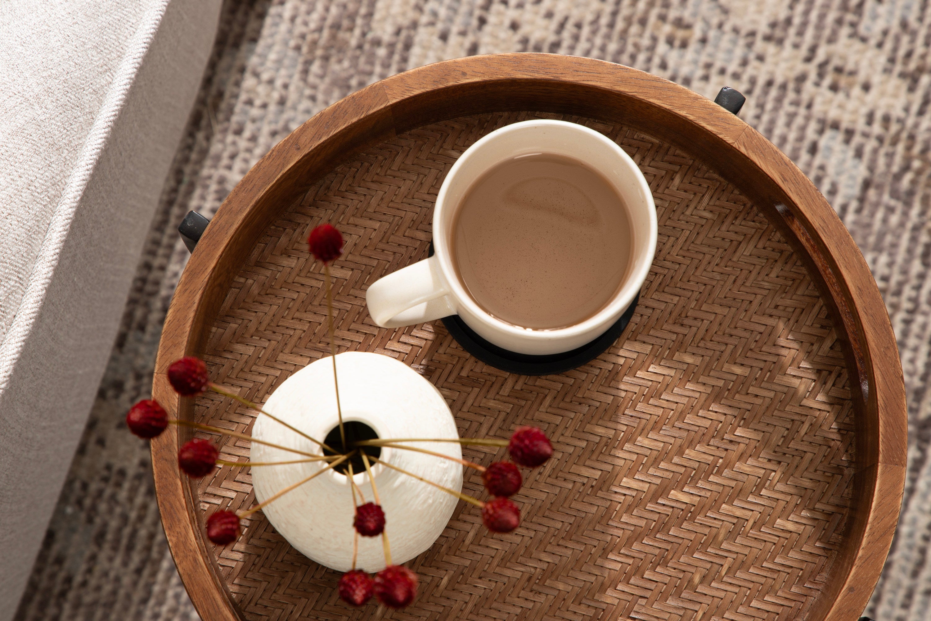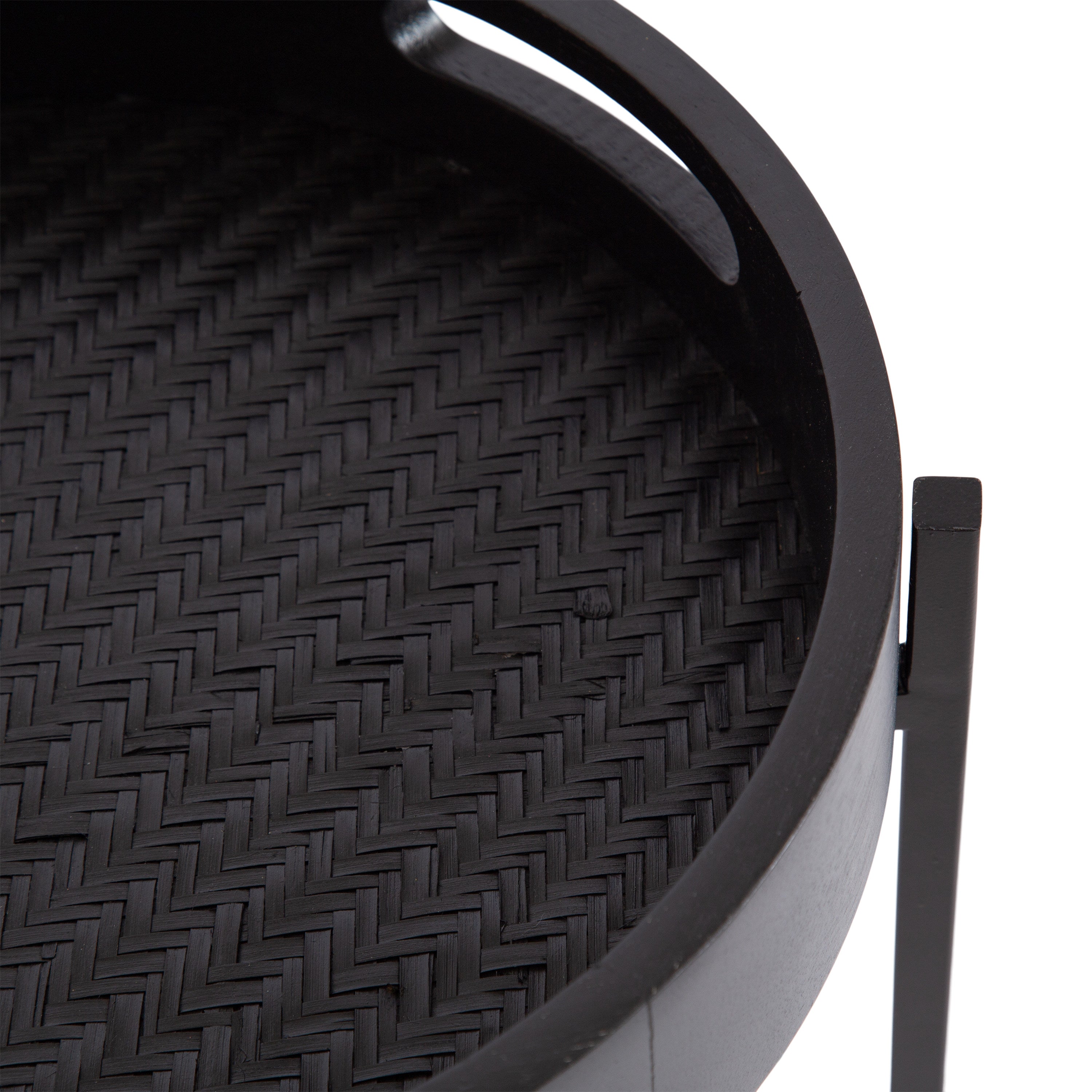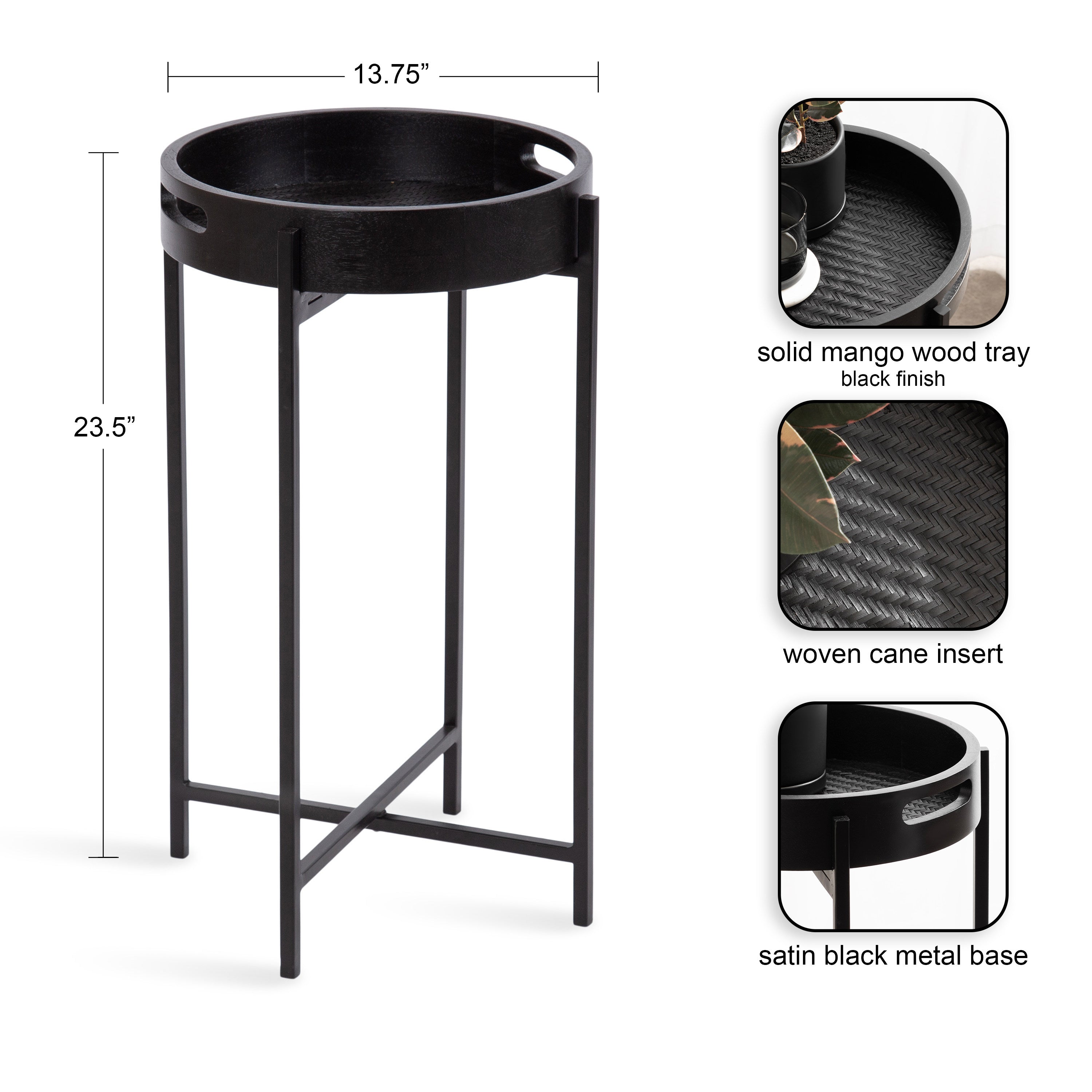 Looking for a versatile and stylish accent table that can complement any room in your home? Look no further than the Kate and Laurel Smita round accent table! One of the standout features of this tray table is its removable wooden tray tabletop, which makes it easy to clean and provides a convenient spot for holding drinks, snacks, or small items like your phone or keys. The tabletop is crafted from solid mango wood, giving you a resilient tray that features a natural woodgrain. The removable tray also features an inset woven cane texture, giving your items more security and your decor an additional touch of refinement.