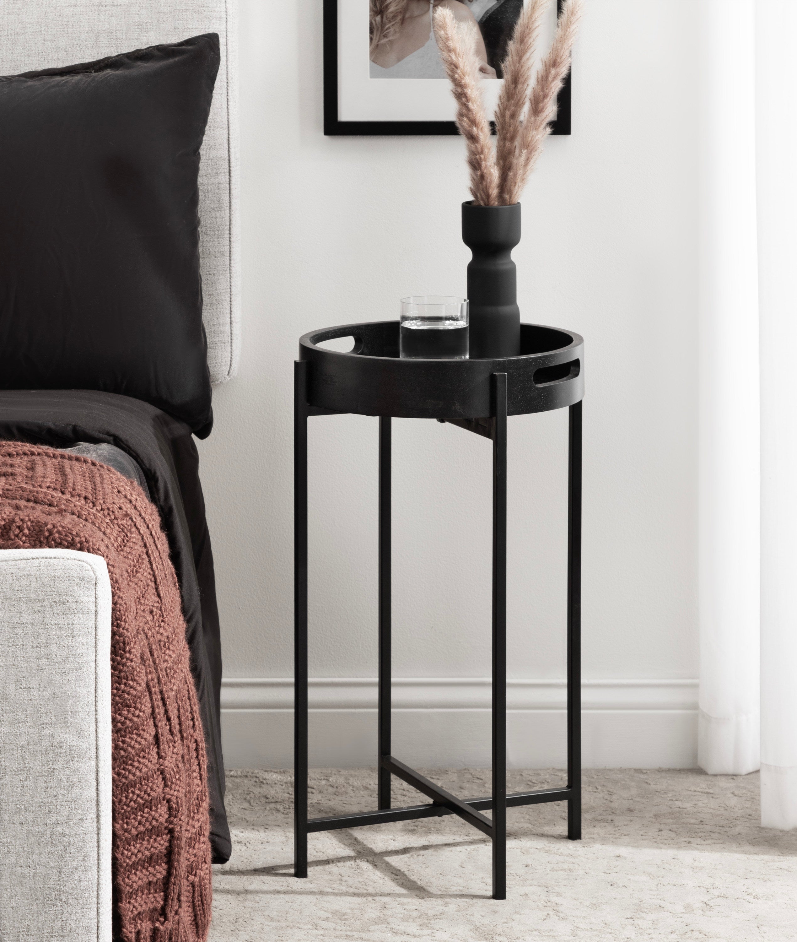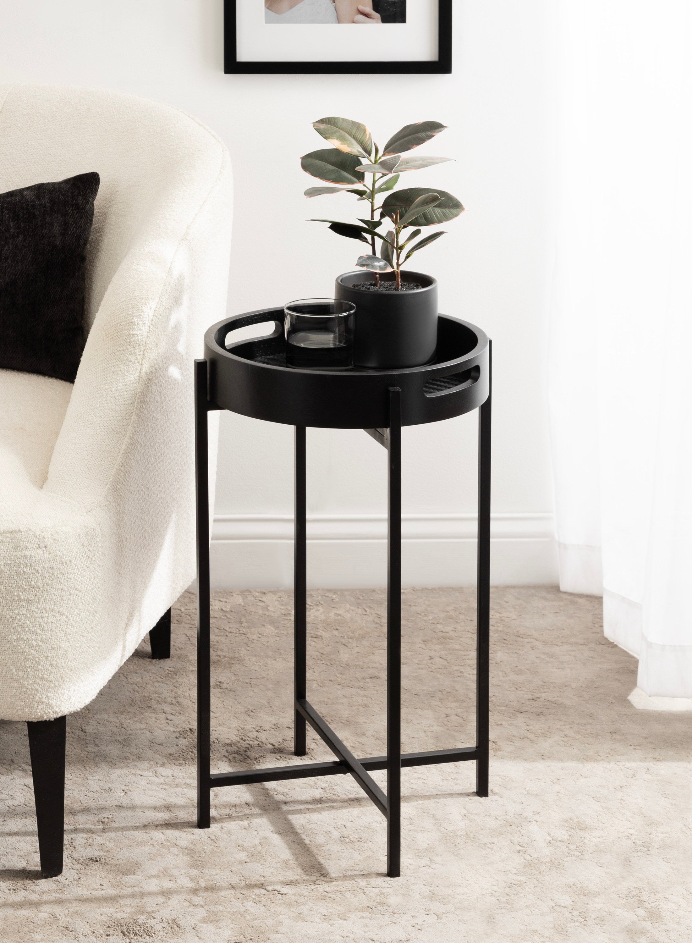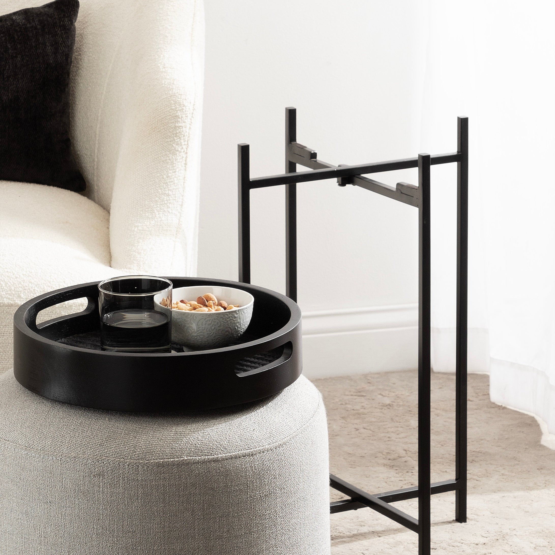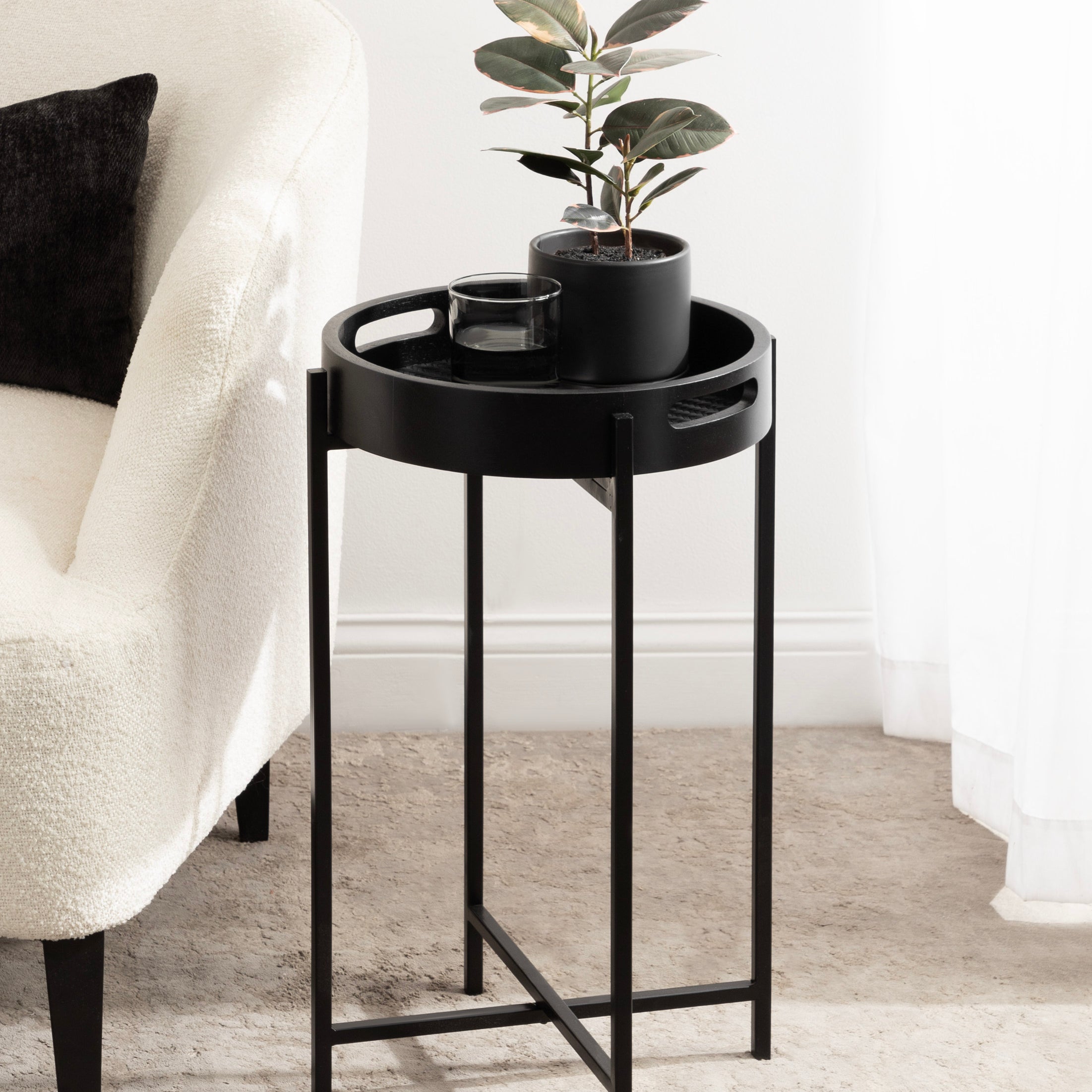 Looking for a versatile and stylish accent table that can complement any room in your home? Look no further than the Kate and Laurel Smita round accent table! One of the standout features of this tray table is its removable wooden tray tabletop, which makes it easy to clean and provides a convenient spot for holding drinks, snacks, or small items like your phone or keys. The tabletop is crafted from solid mango wood, giving you a resilient tray that features a natural woodgrain. The removable tray also features an inset woven cane texture, giving your items more security and your decor an additional touch of refinement.