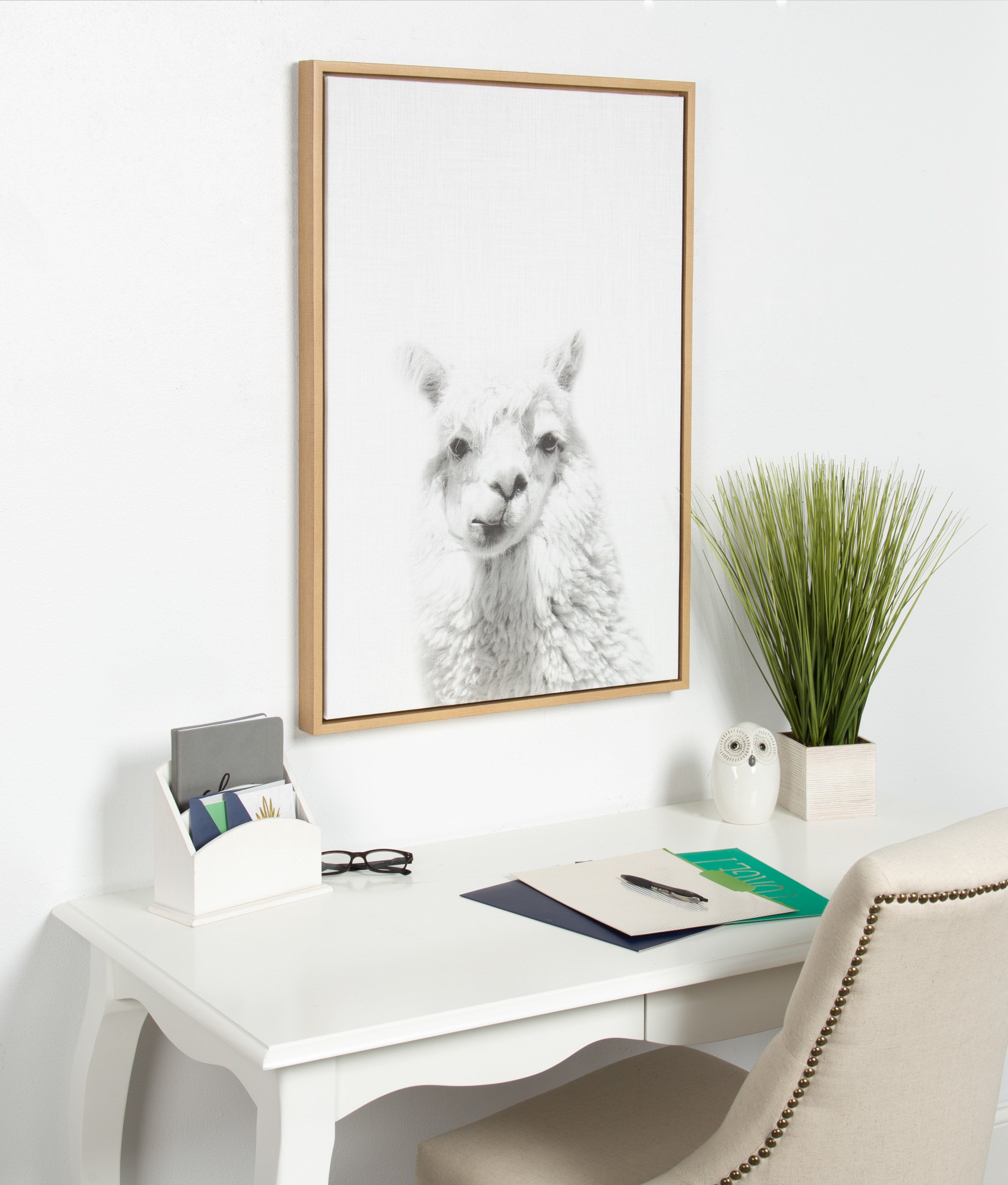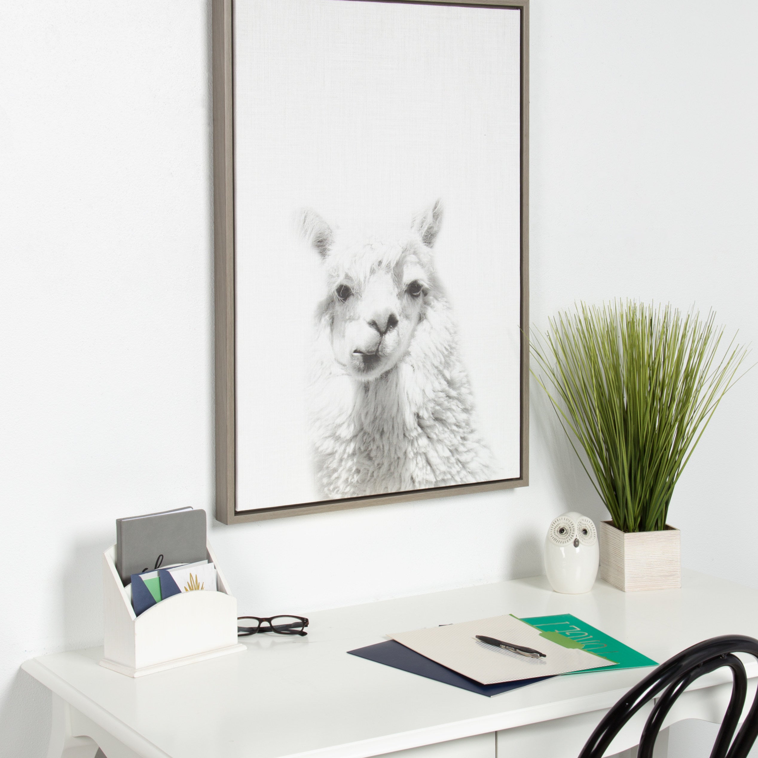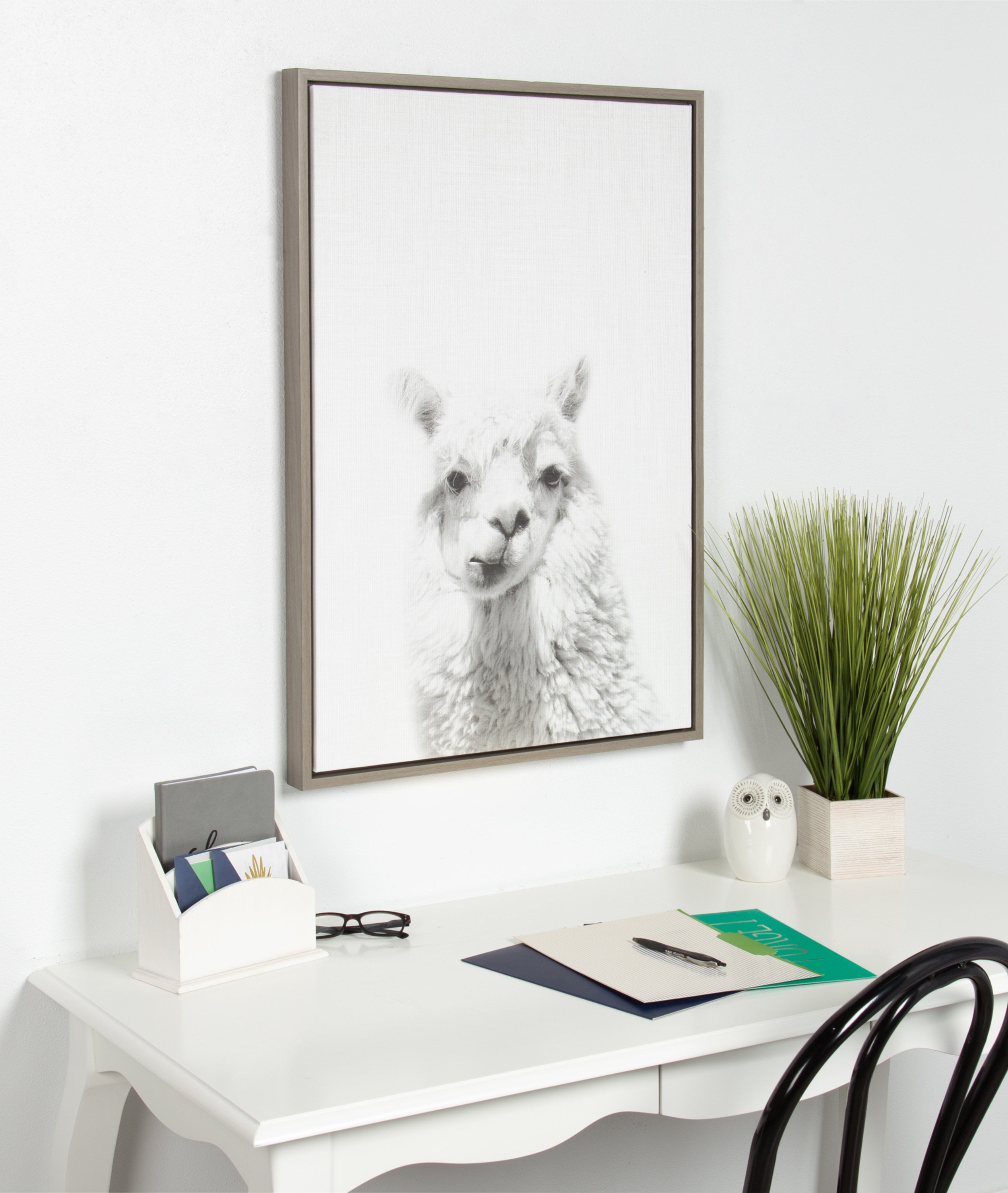 Serene yet somewhat silly, this animal print of a very handsome alpaca captures it all. Printed and framed in the USA in Waunakee, Wisconsin, this framed floating canvas art will be a pleasure to look at every day in your living room, bedroom, office, or any room in the home. This art print also makes an excellent gift for birthdays, holidays, or house-warming parties. Printed on gallery-wrapped canvas and framed with a lightweight polystyrene frame, this wall art has two hangers already attached to the MDF back for easy wall display.