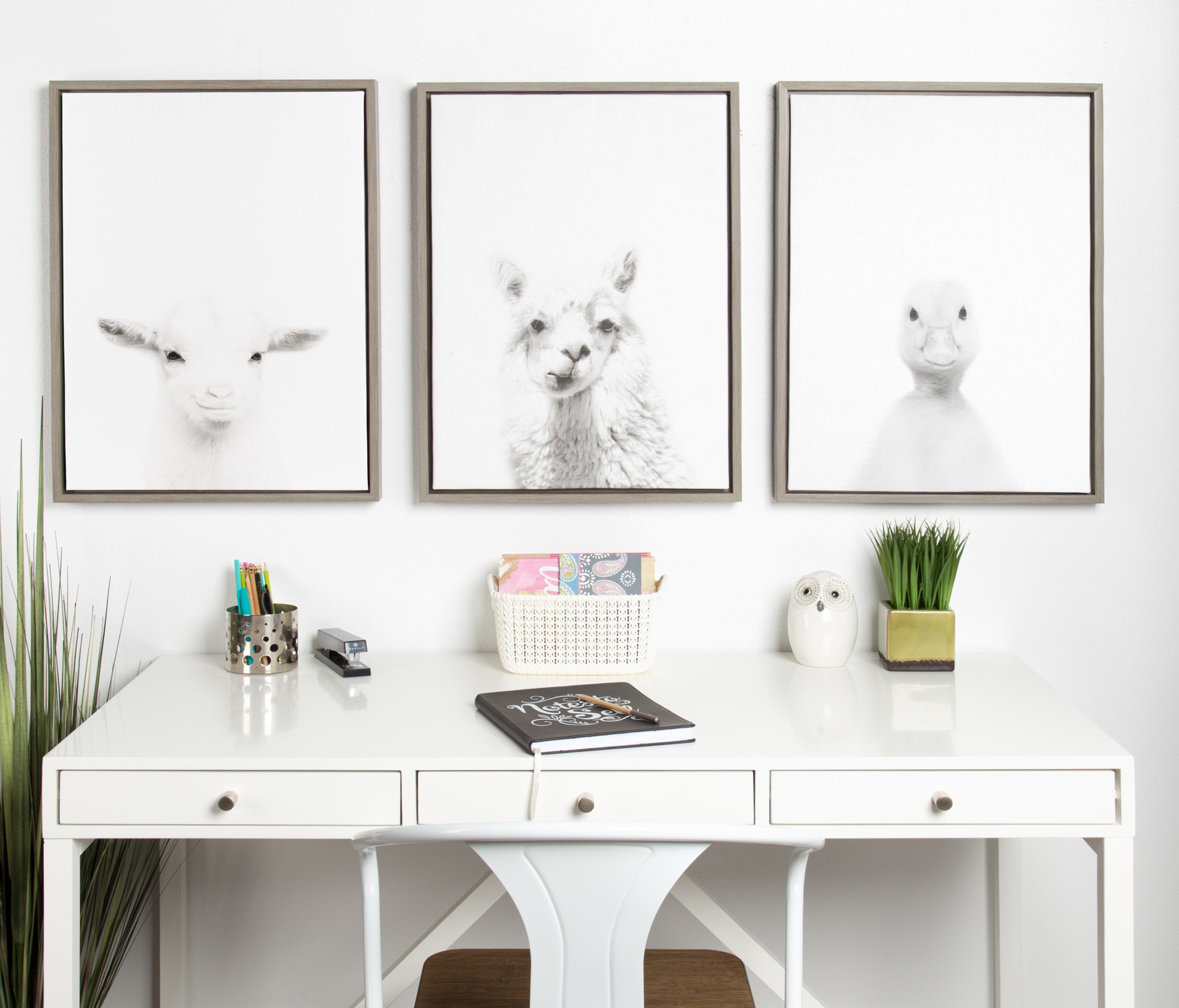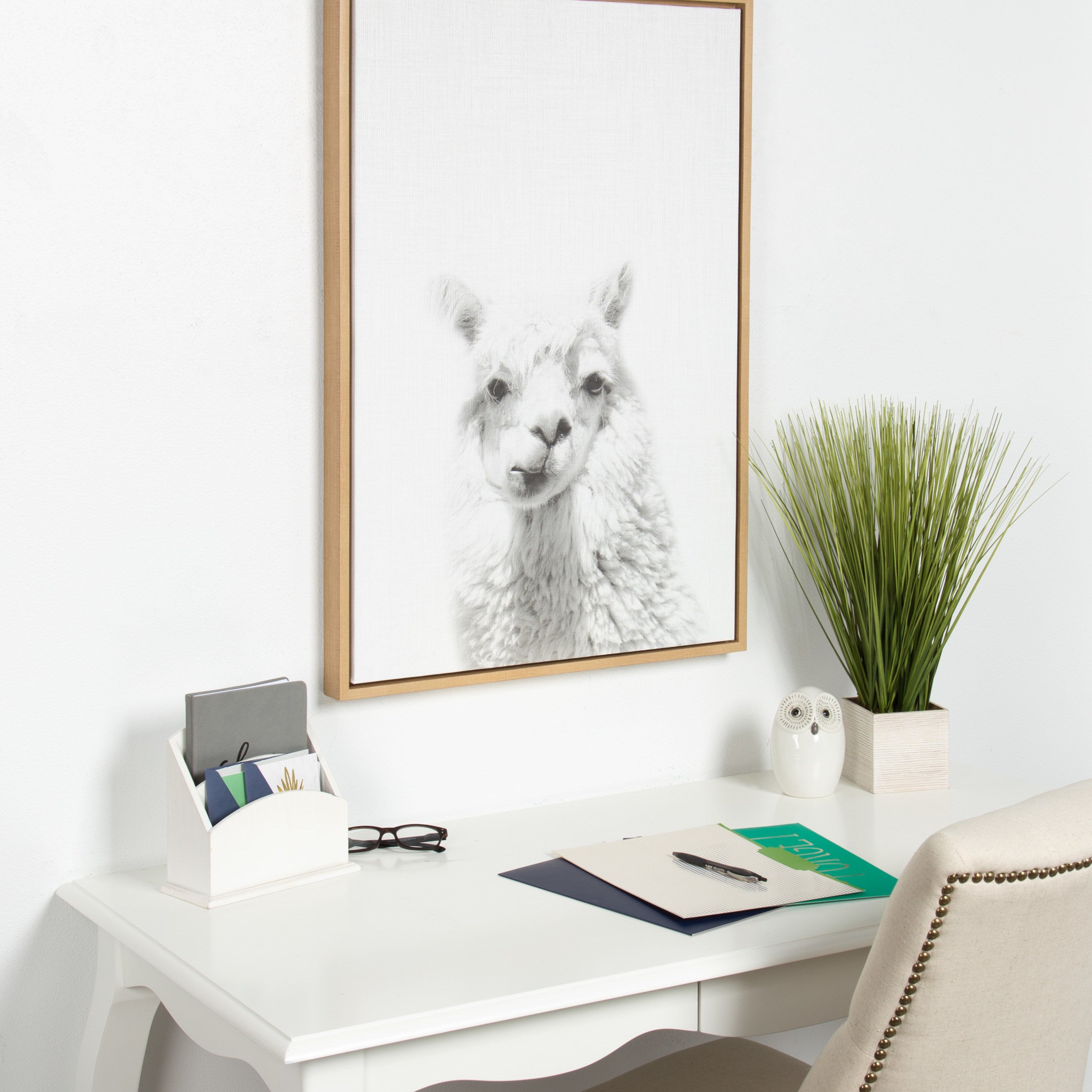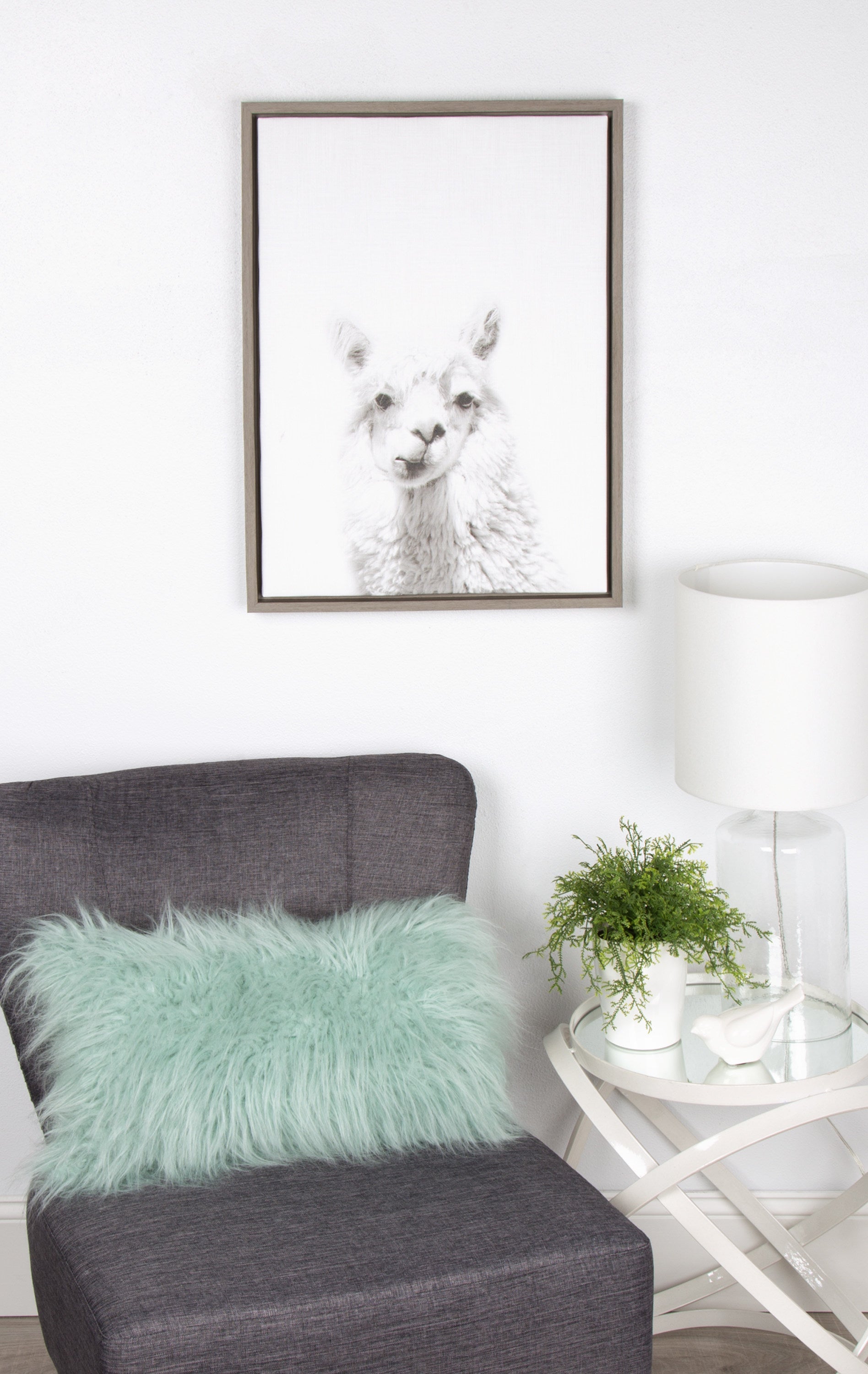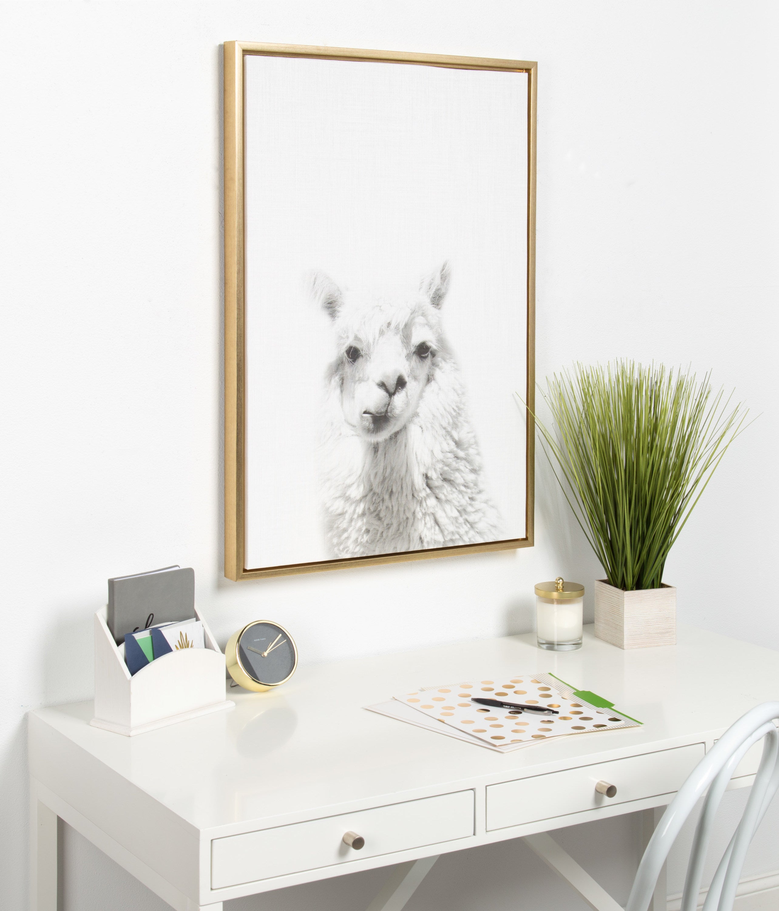 Serene yet somewhat silly, this animal print of a very handsome alpaca captures it all. Printed and framed in the USA in Waunakee, Wisconsin, this framed floating canvas art will be a pleasure to look at every day in your living room, bedroom, office, or any room in the home. This art print also makes an excellent gift for birthdays, holidays, or house-warming parties. Printed on gallery-wrapped canvas and framed with a lightweight polystyrene frame, this wall art has two hangers already attached to the MDF back for easy wall display.